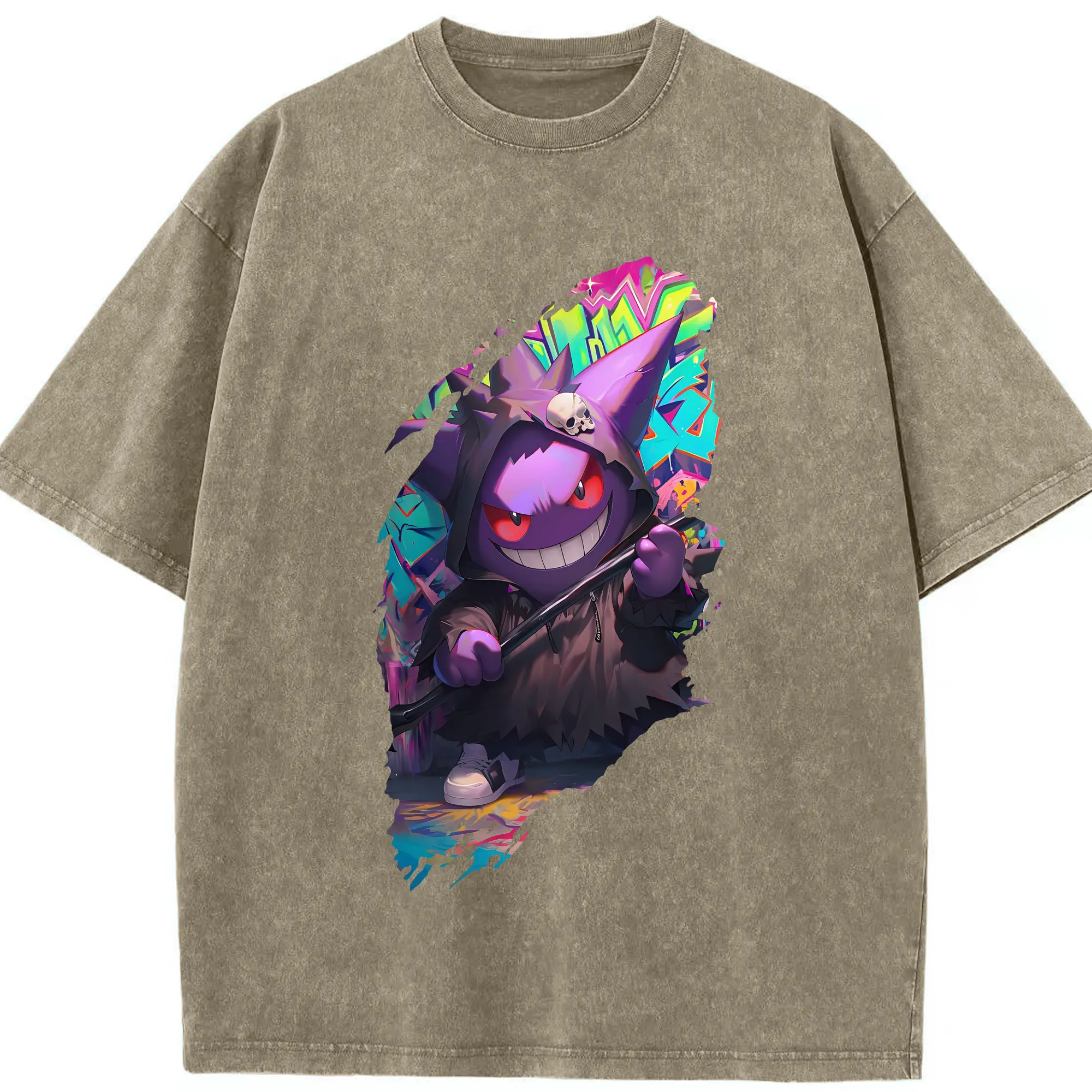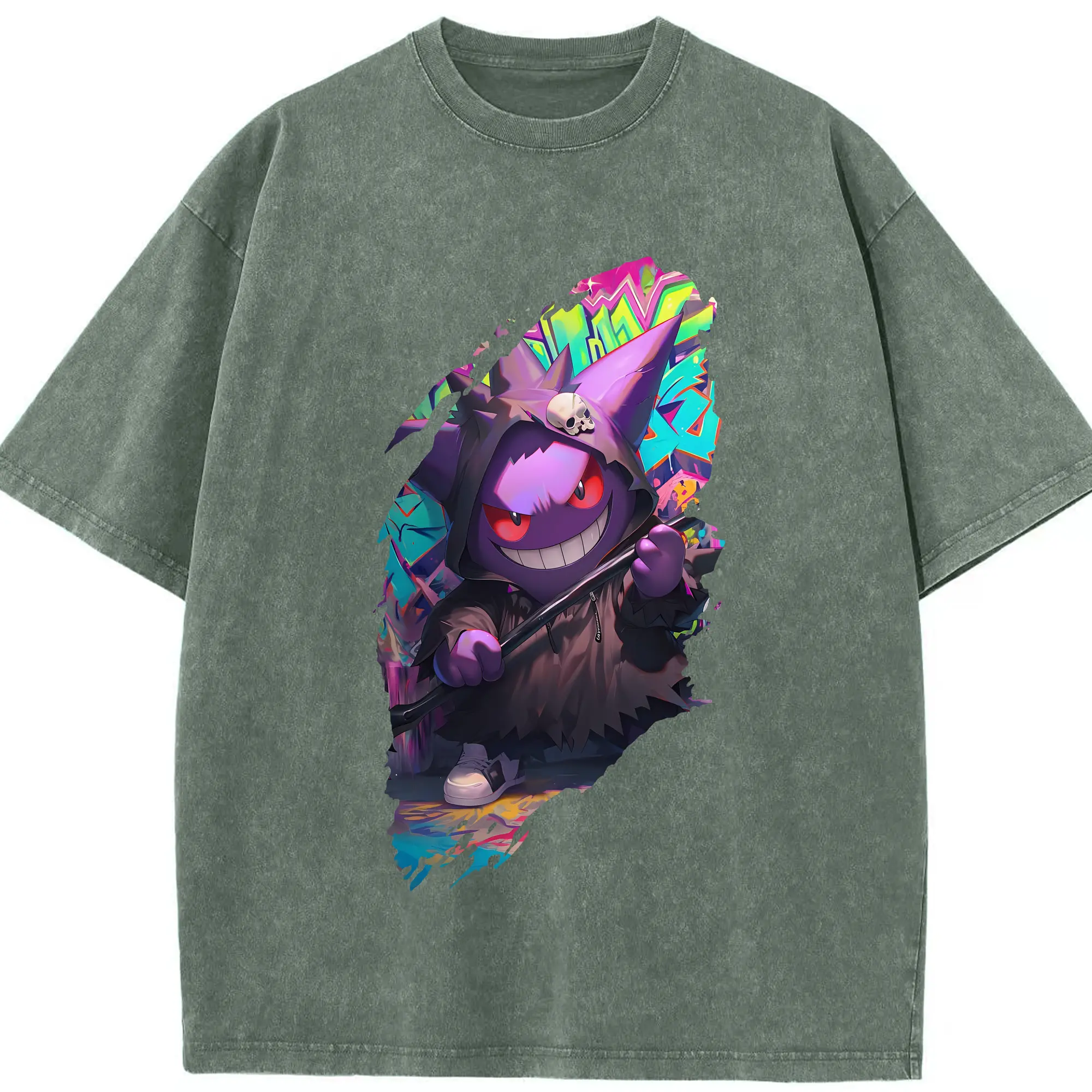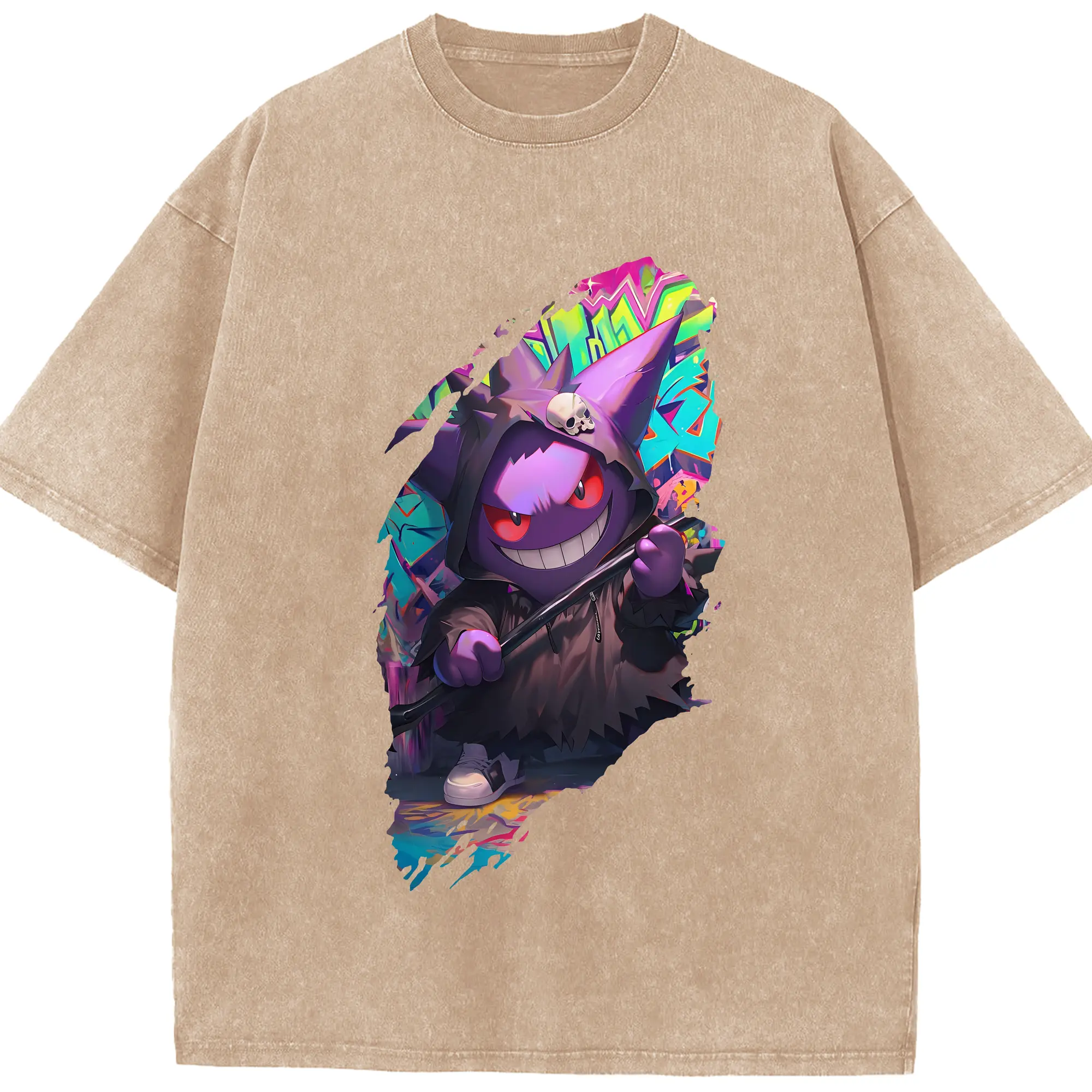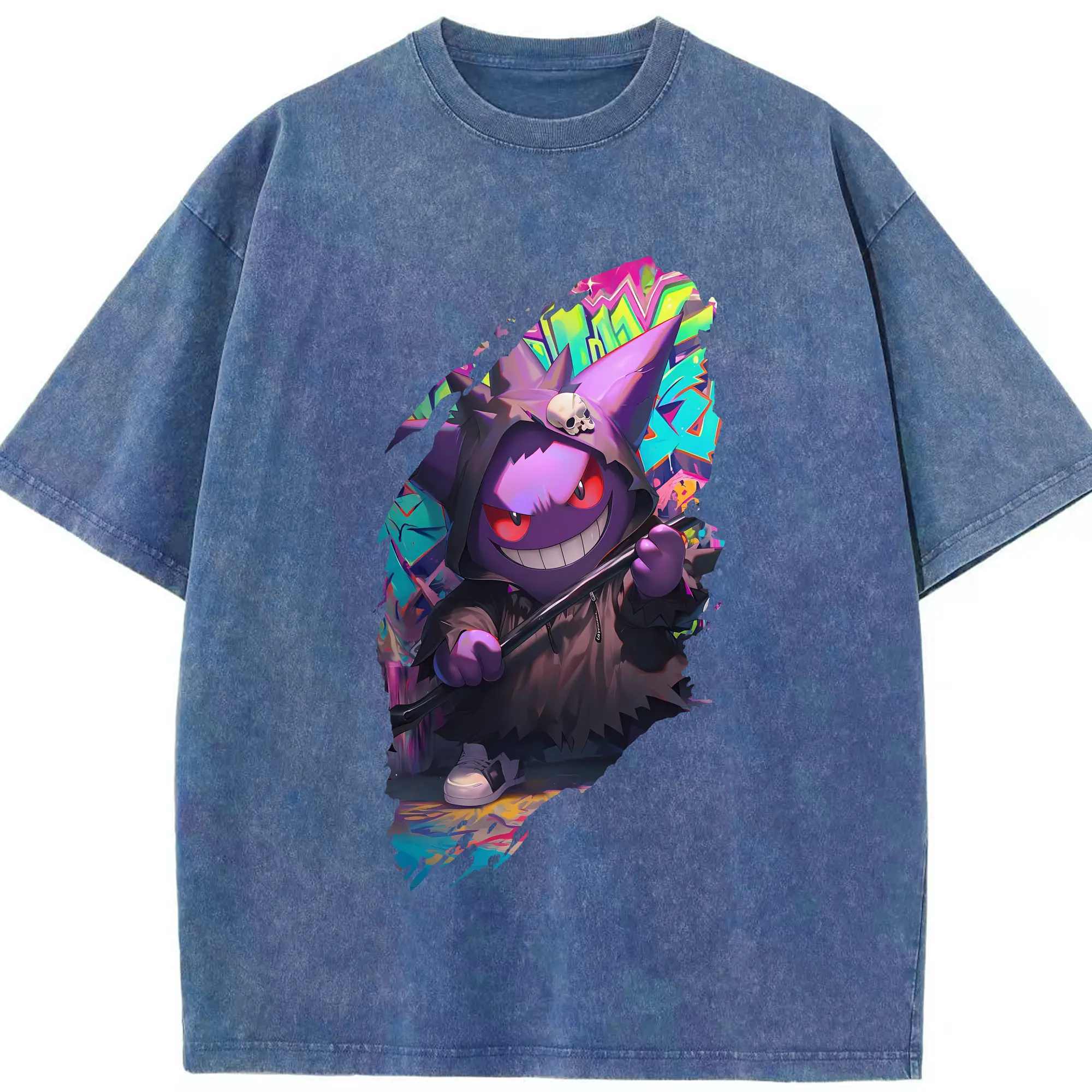 ポケモン グッズ,ゲンガー - 綿100% ヴィンテージ風 半袖Tシャツ ・ 背面プリント ・ 柔らか肌触り ・ 通気性 快適 ・ スポーツ カジュアル 外出用