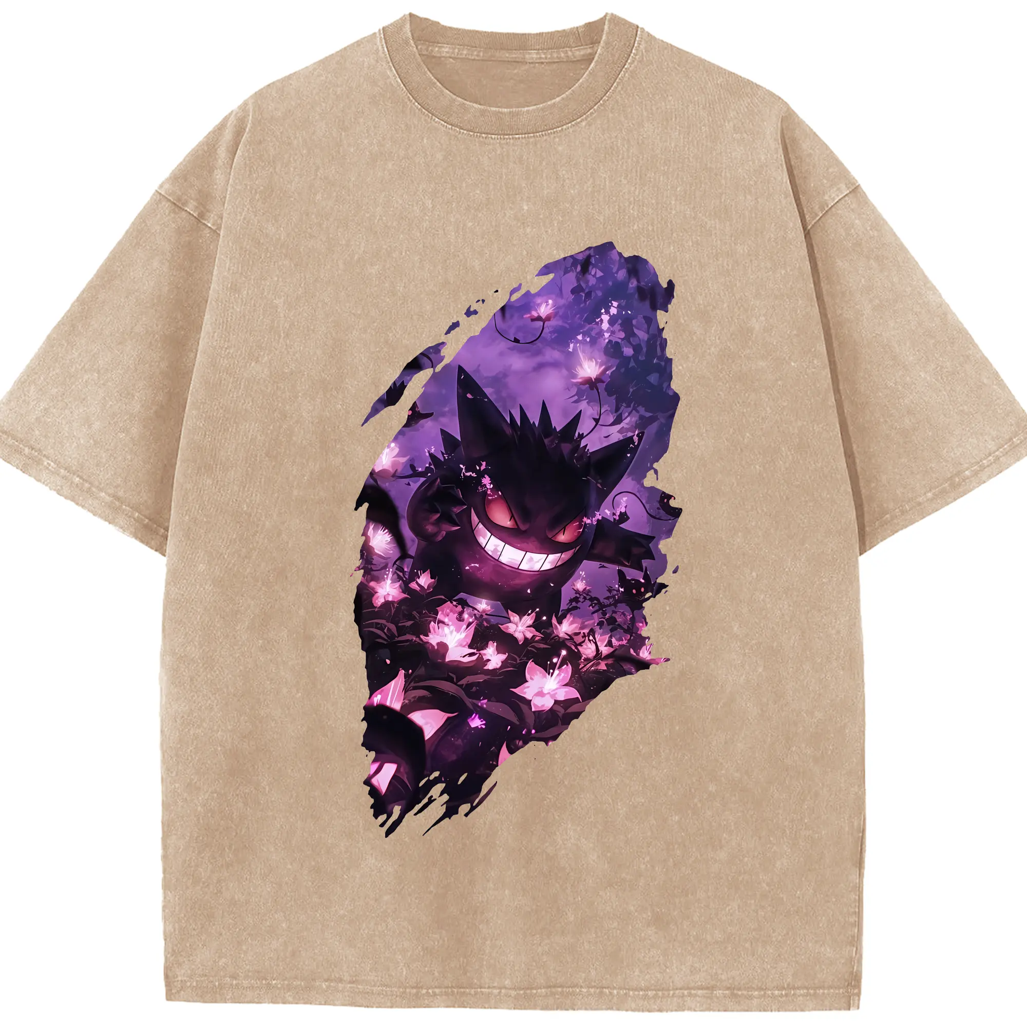 ポケモン グッズ,ゲンガー - 綿100% ヴィンテージ風 半袖Tシャツ ・ 背面プリント ・ 柔らか肌触り ・ 通気性 快適 ・ スポーツ カジュアル 外出用