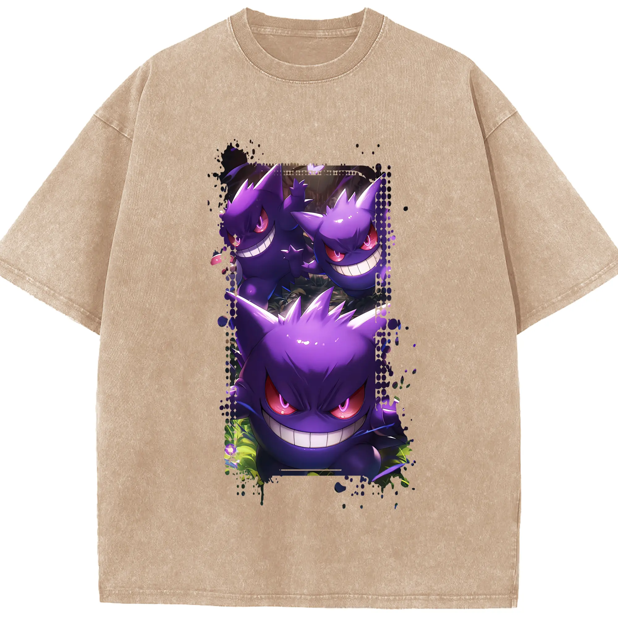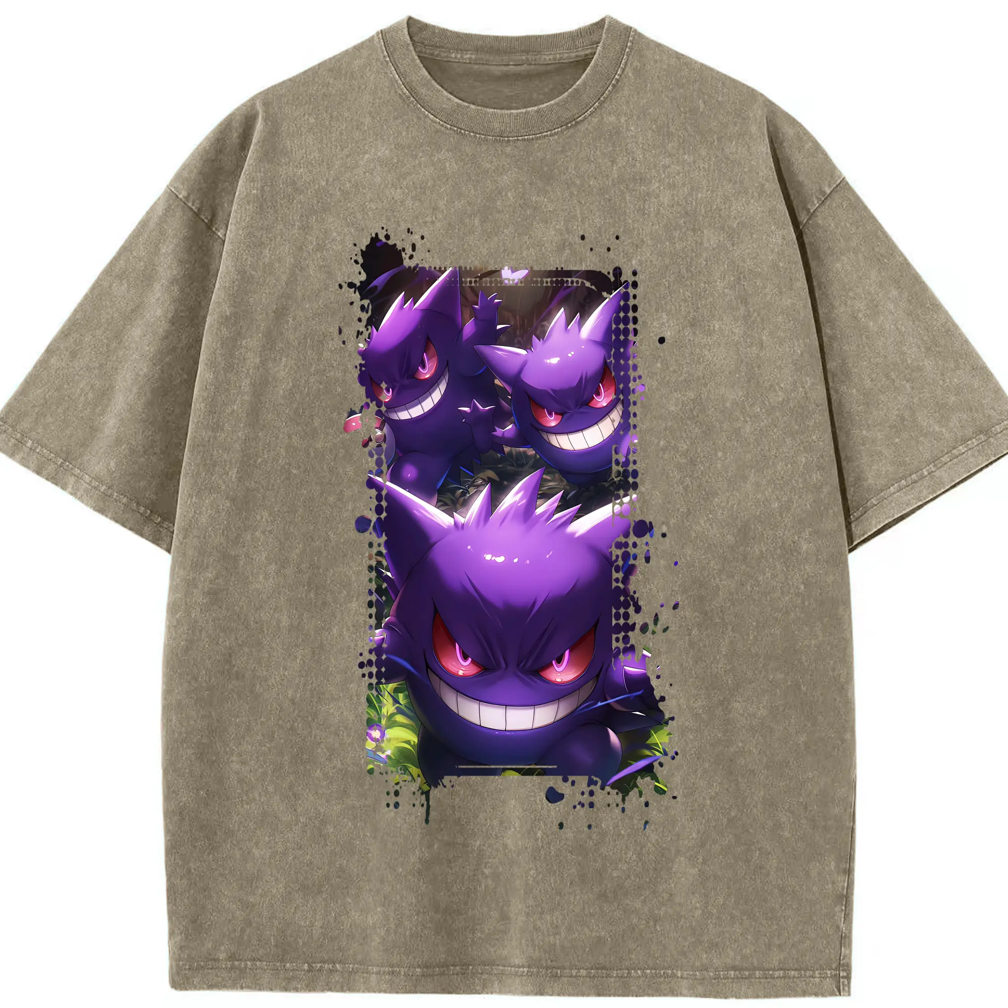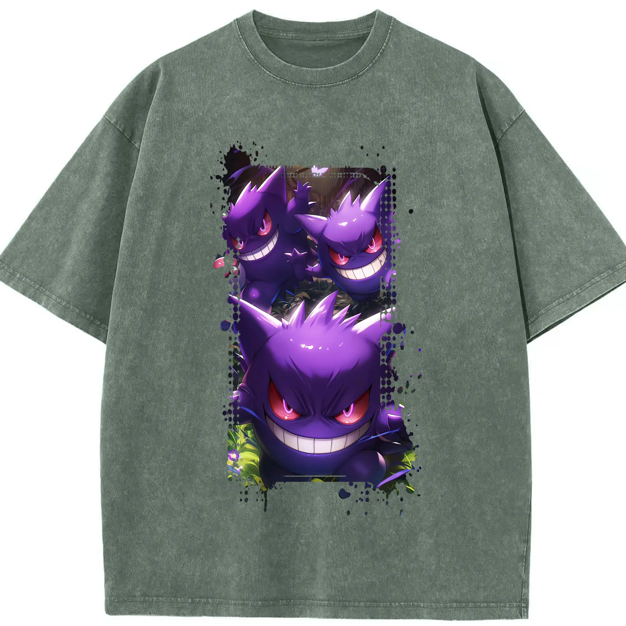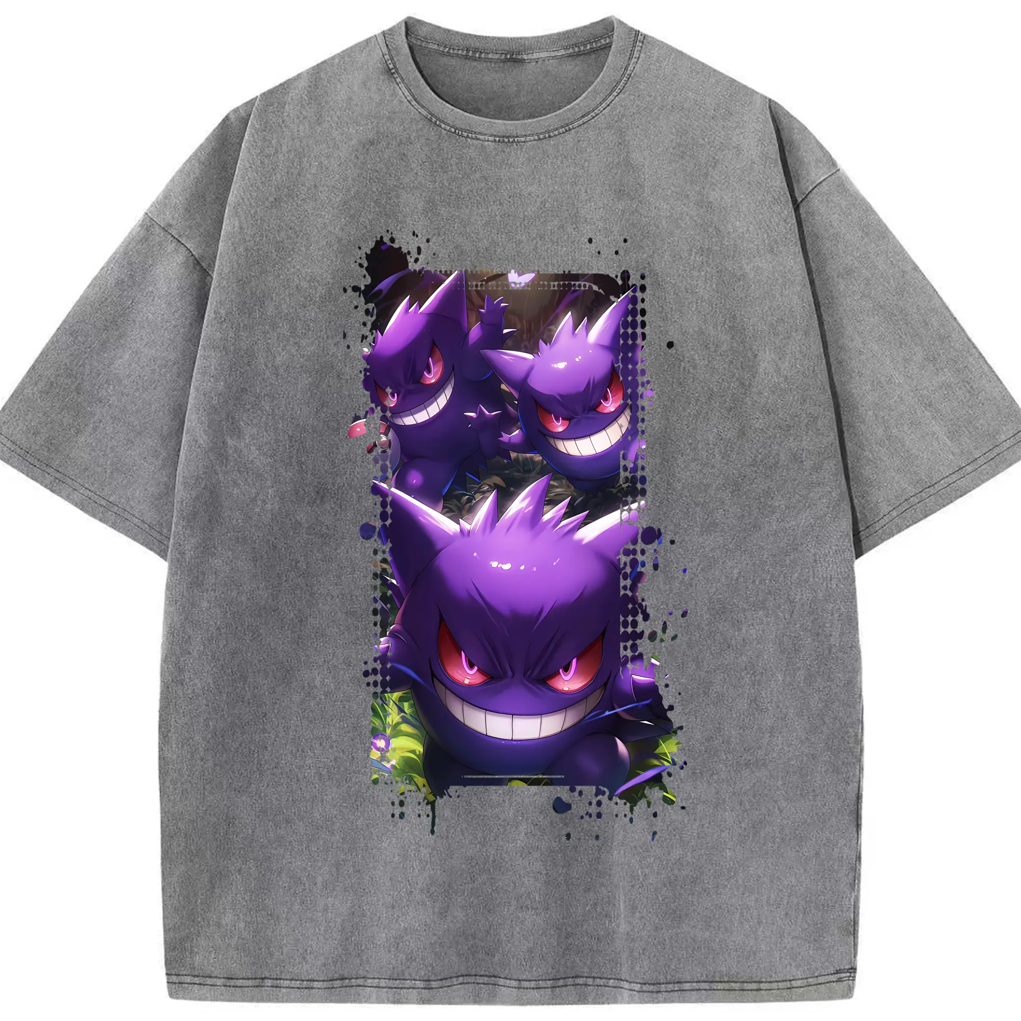 ポケモン グッズ,ゲンガー - 綿100% ヴィンテージ風 半袖Tシャツ ・ 背面プリント ・ 柔らか肌触り ・ 通気性 快適 ・ スポーツ カジュアル 外出用