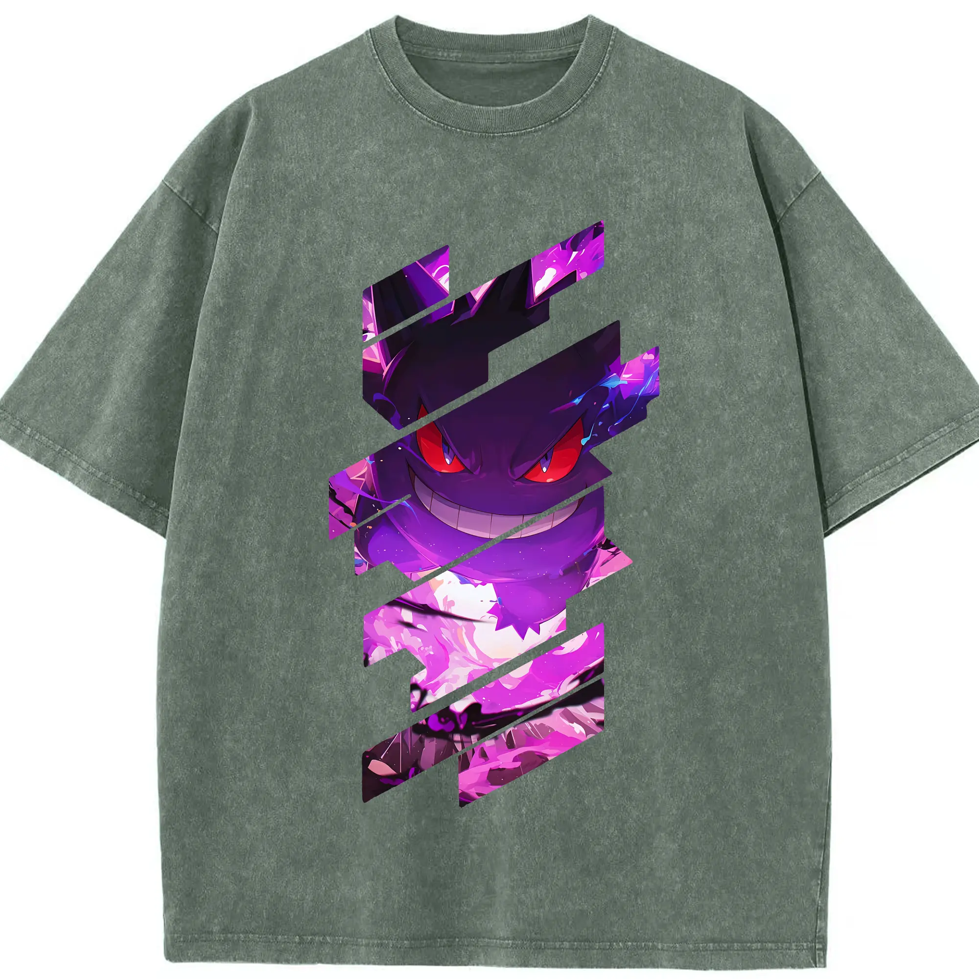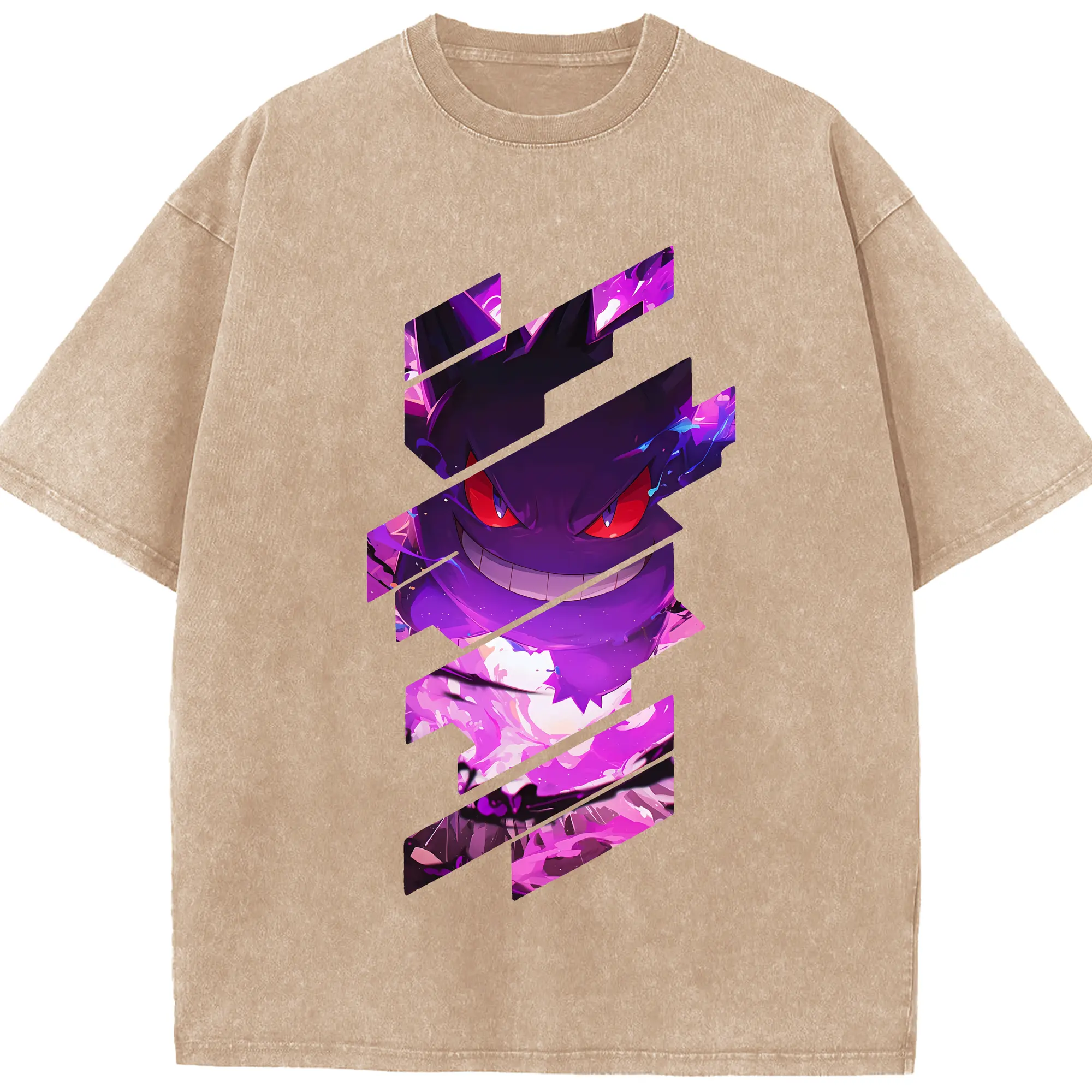 ポケモン グッズ,ゲンガー - 綿100% ヴィンテージ風 半袖Tシャツ ・ 背面プリント ・ 柔らか肌触り ・ 通気性 快適 ・ スポーツ カジュアル 外出用