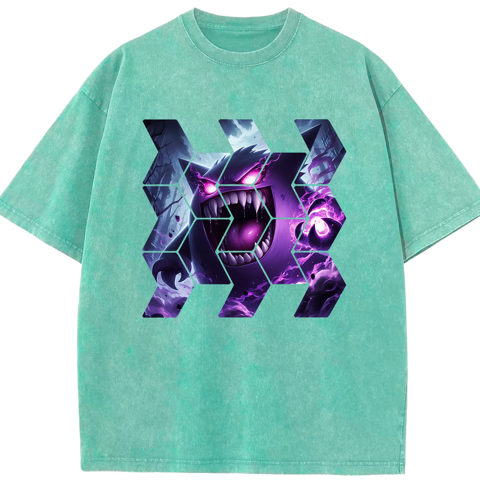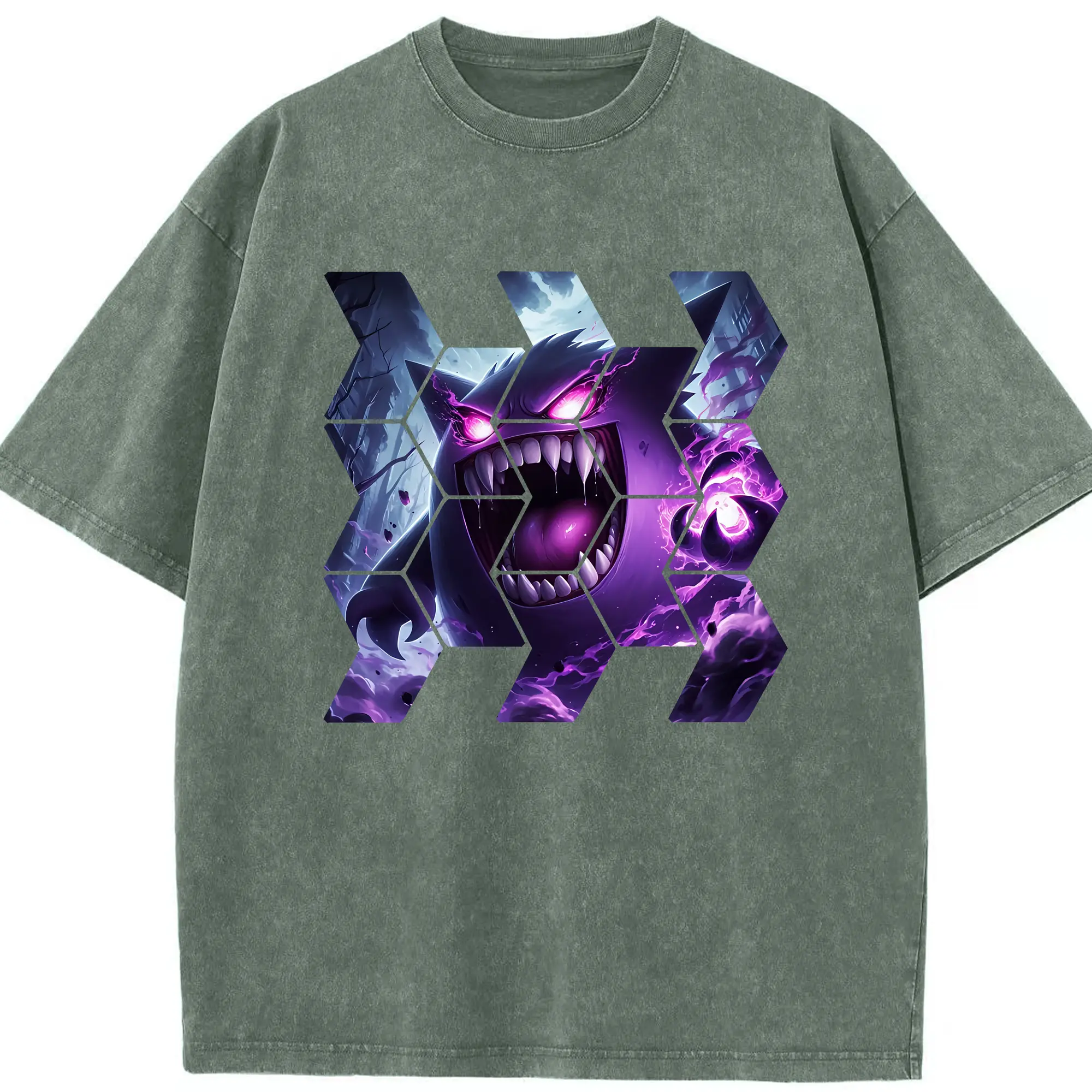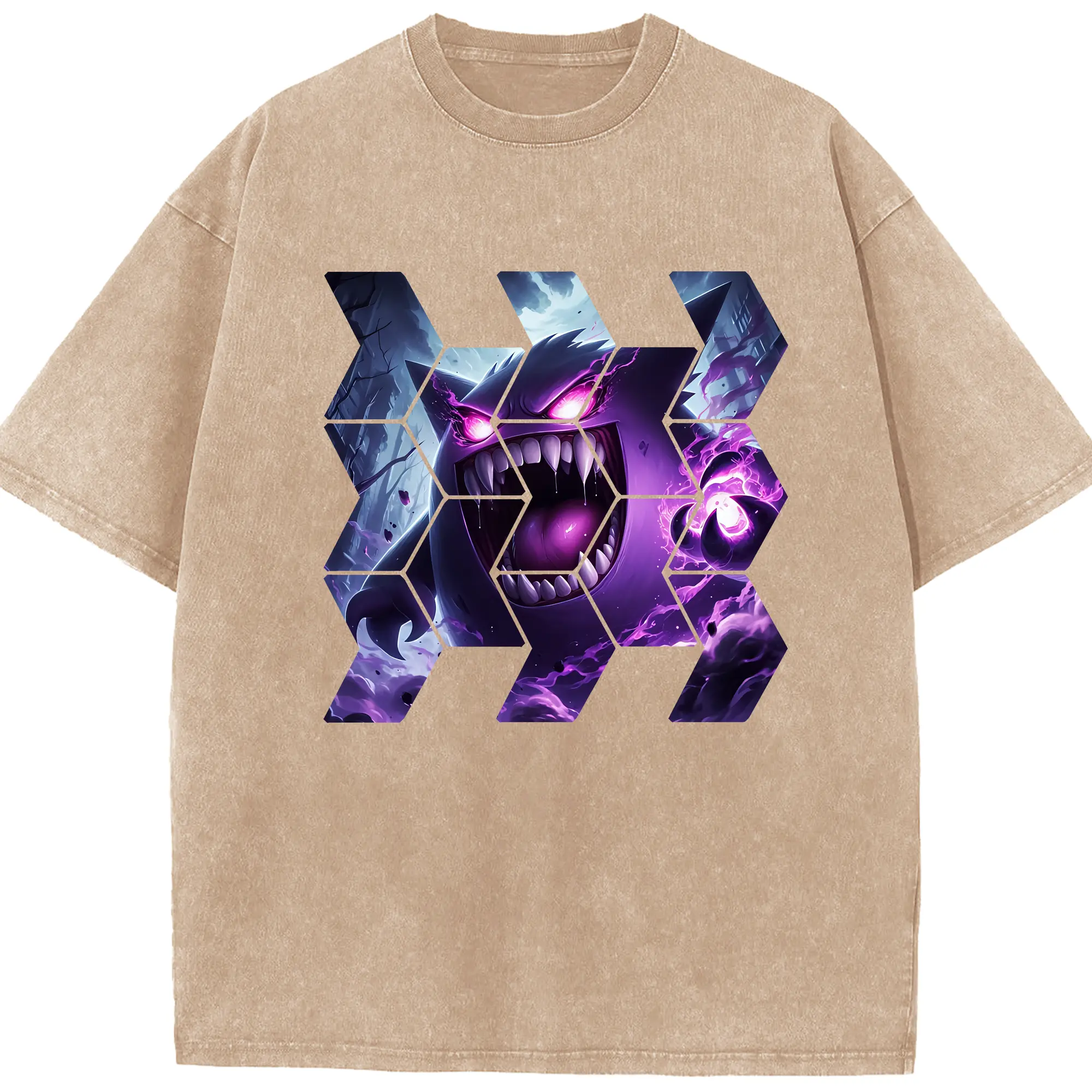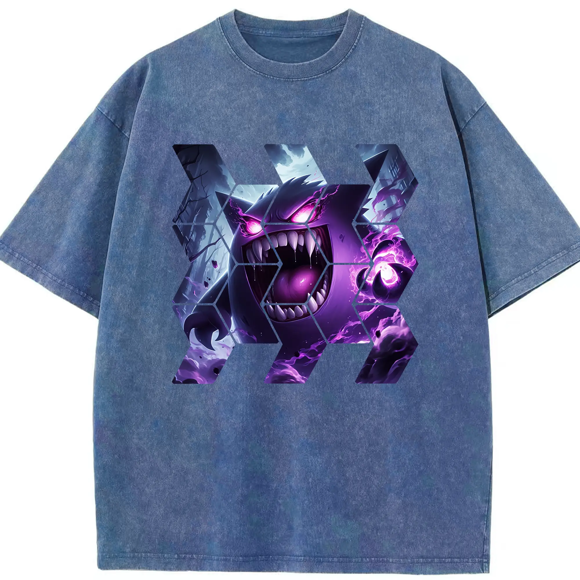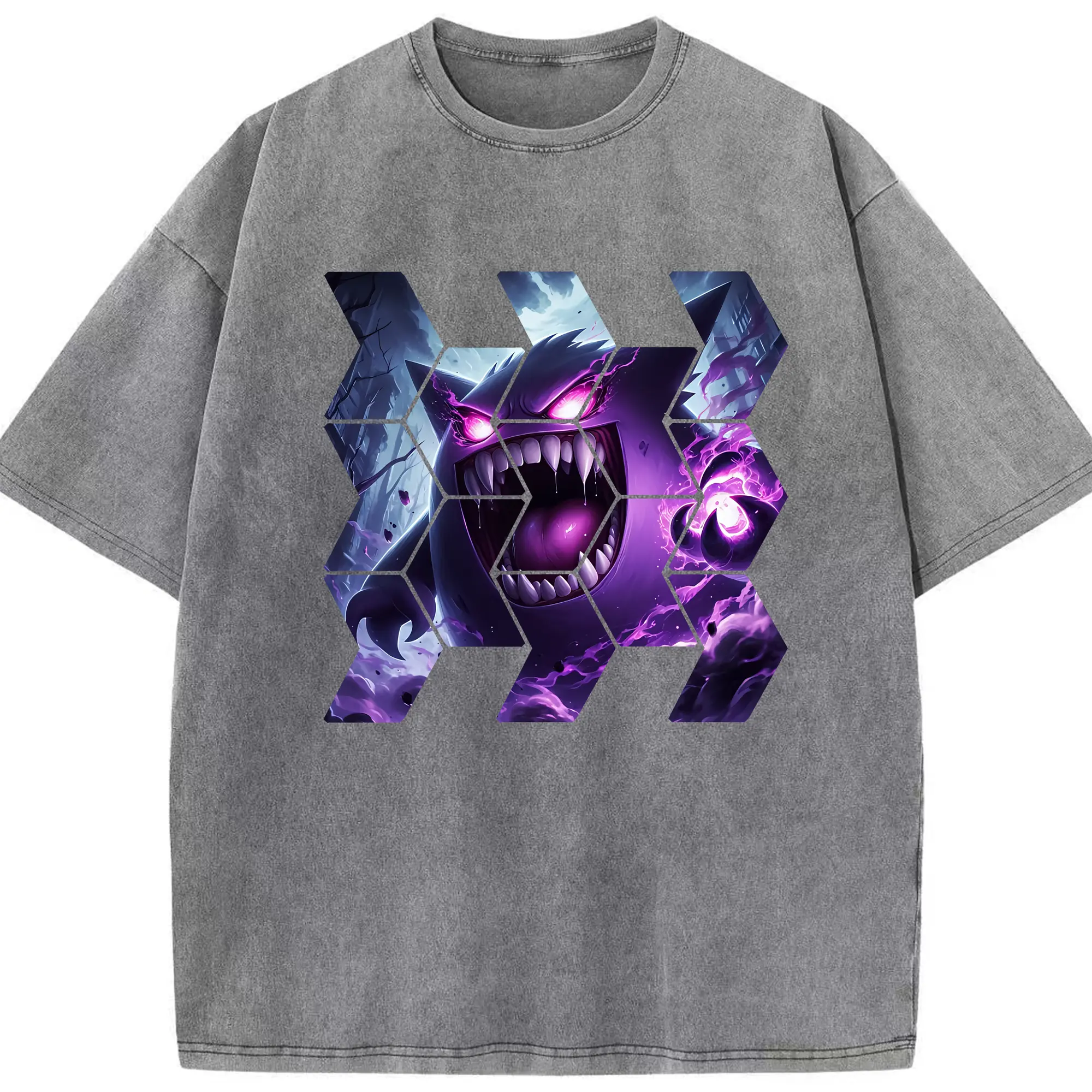 ポケモン グッズ,ゲンガー - 綿100% ヴィンテージ風 半袖Tシャツ ・ 背面プリント ・ 柔らか肌触り ・ 通気性 快適 ・ スポーツ カジュアル 外出用