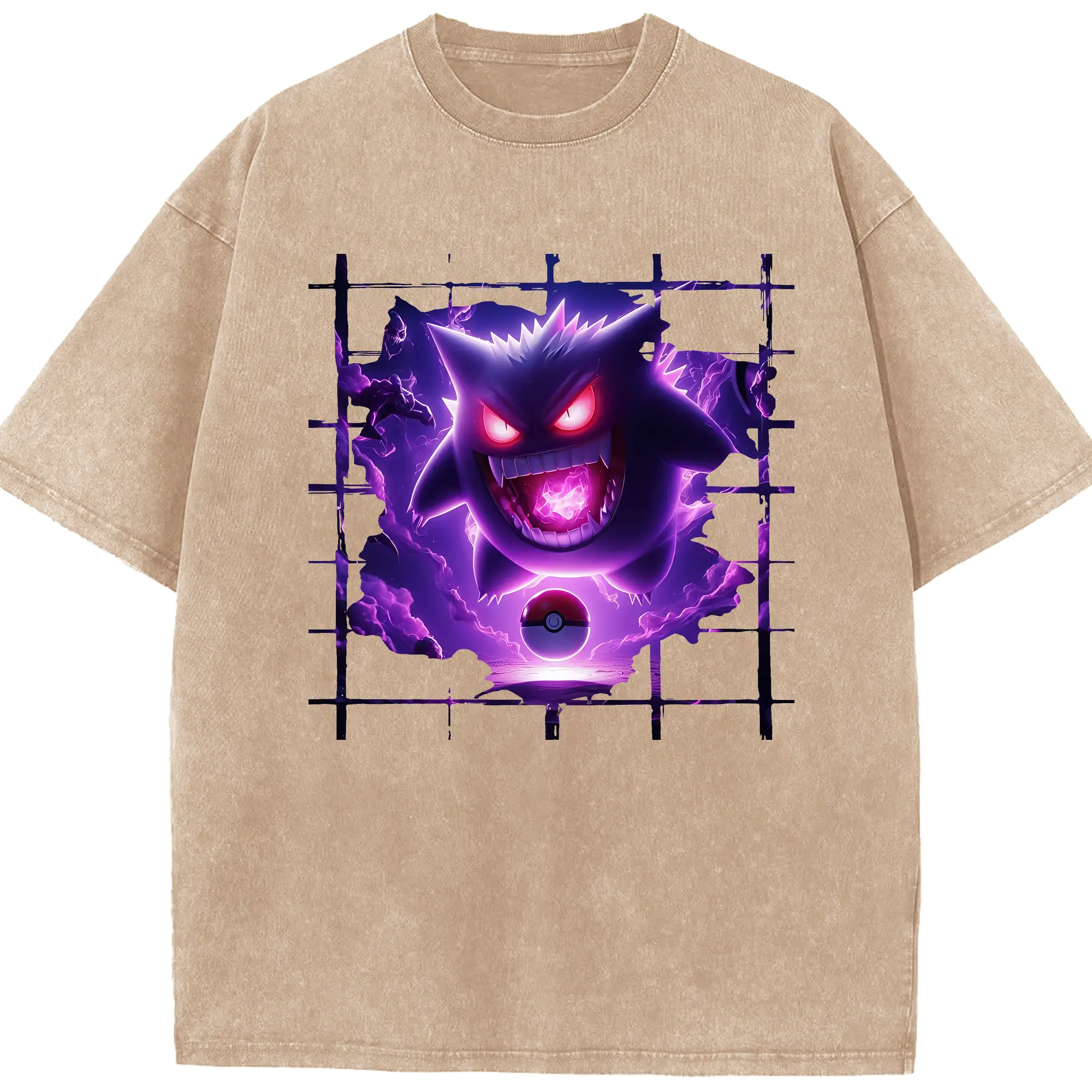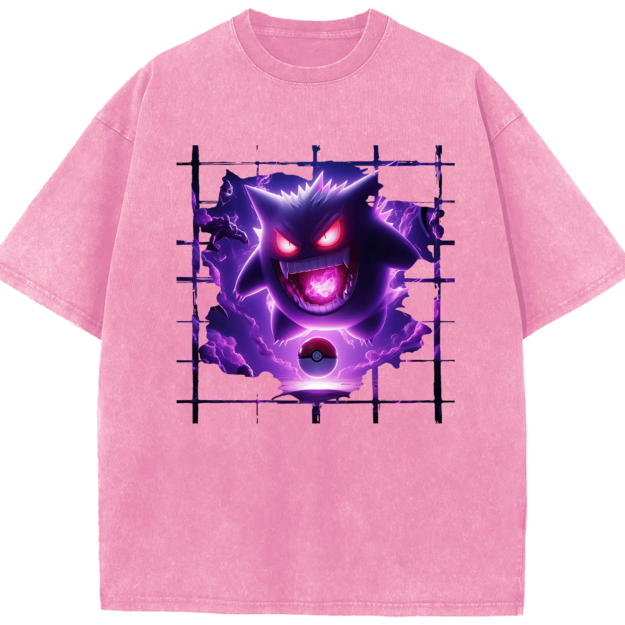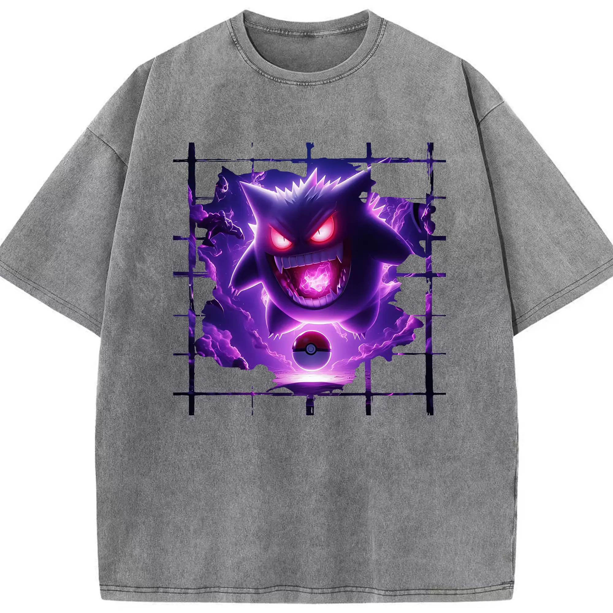 ポケモン グッズ,ゲンガー - 綿100% ヴィンテージ風 半袖Tシャツ ・ 背面プリント ・ 柔らか肌触り ・ 通気性 快適 ・ スポーツ カジュアル 外出用