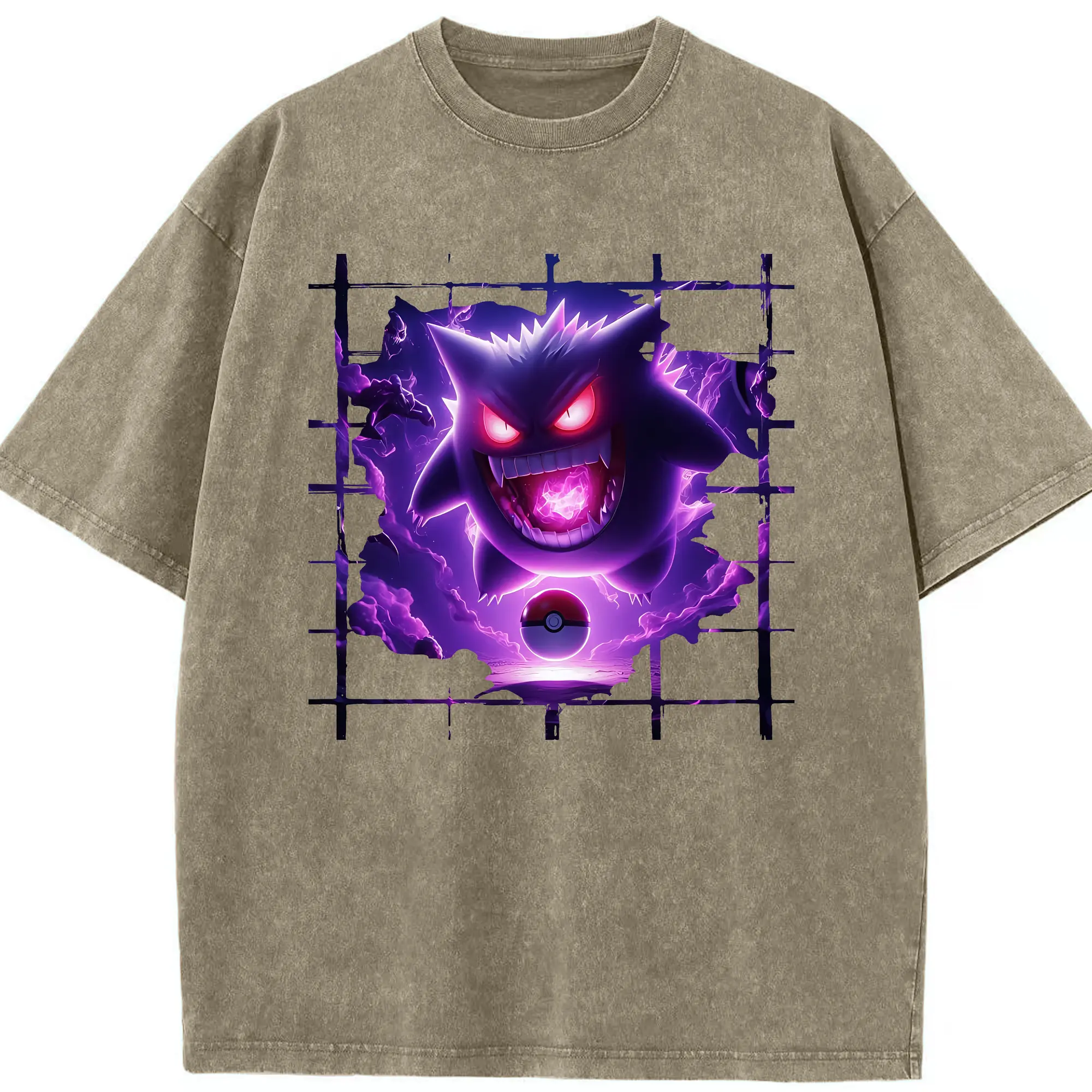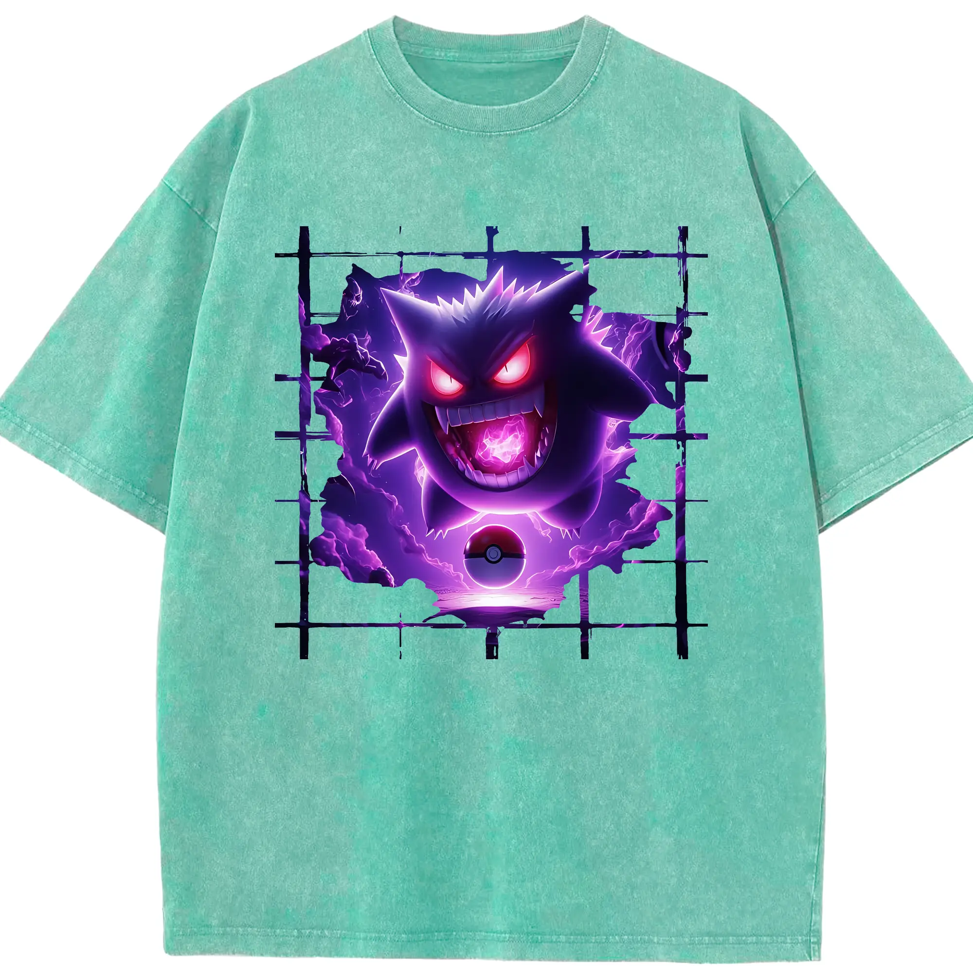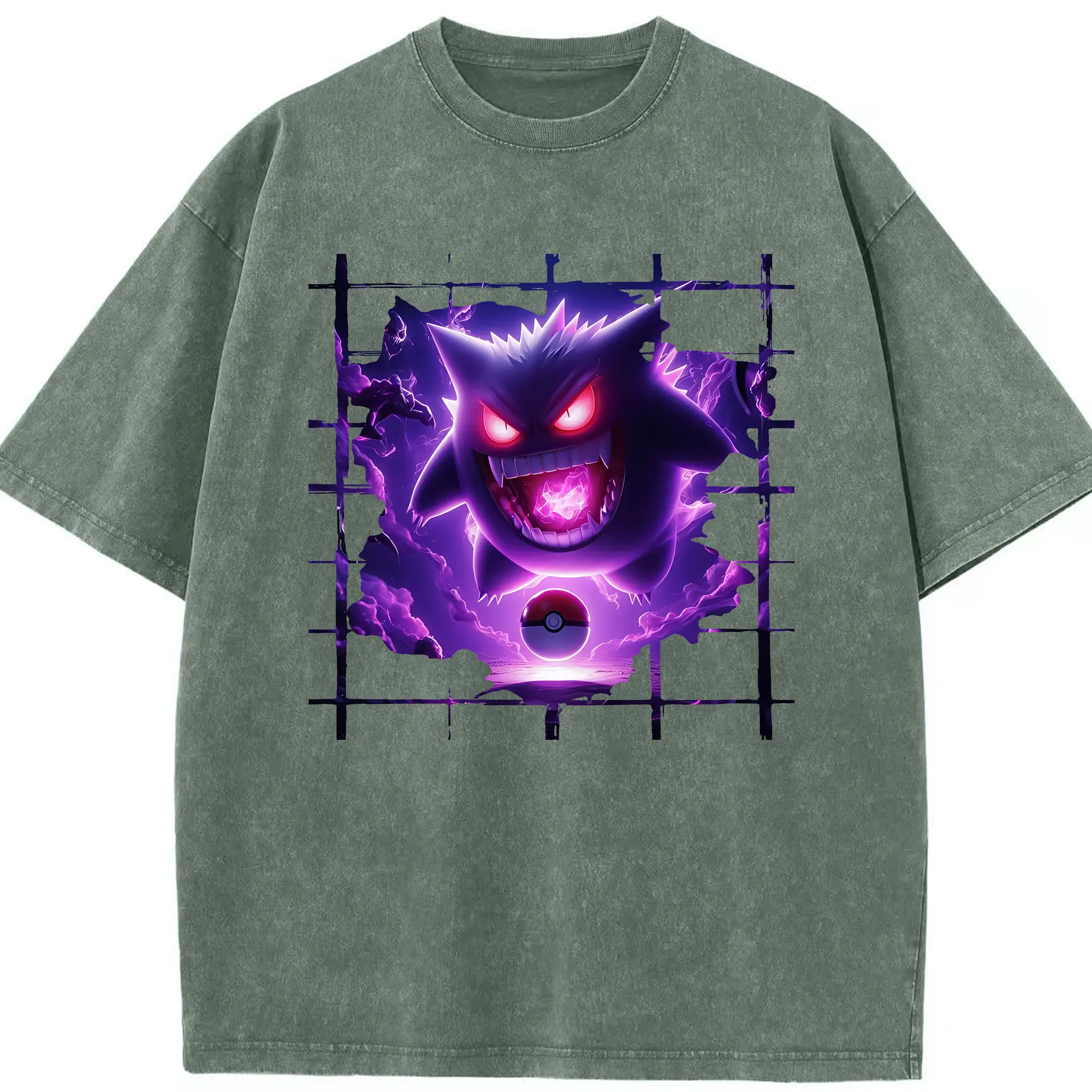 ポケモン グッズ,ゲンガー - 綿100% ヴィンテージ風 半袖Tシャツ ・ 背面プリント ・ 柔らか肌触り ・ 通気性 快適 ・ スポーツ カジュアル 外出用