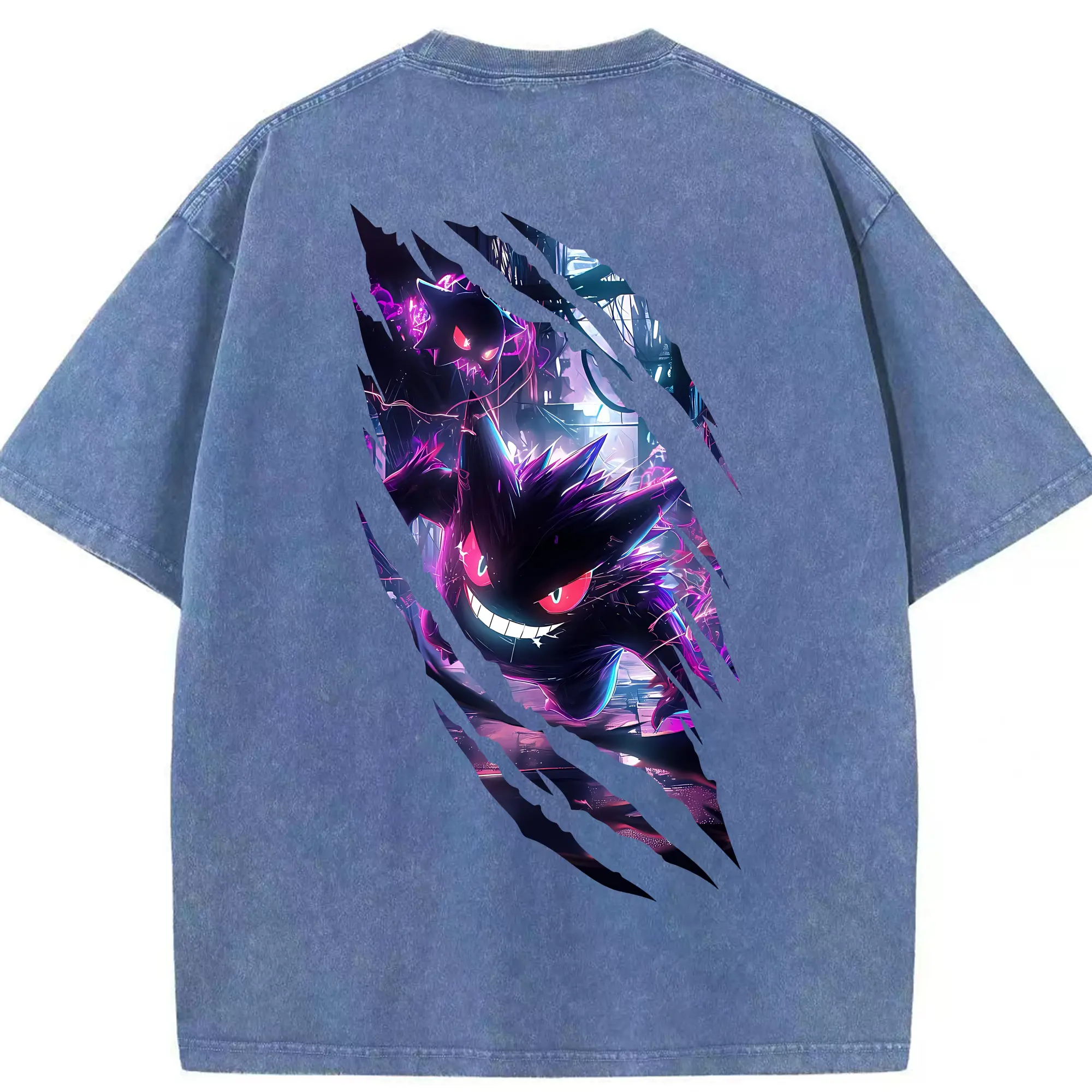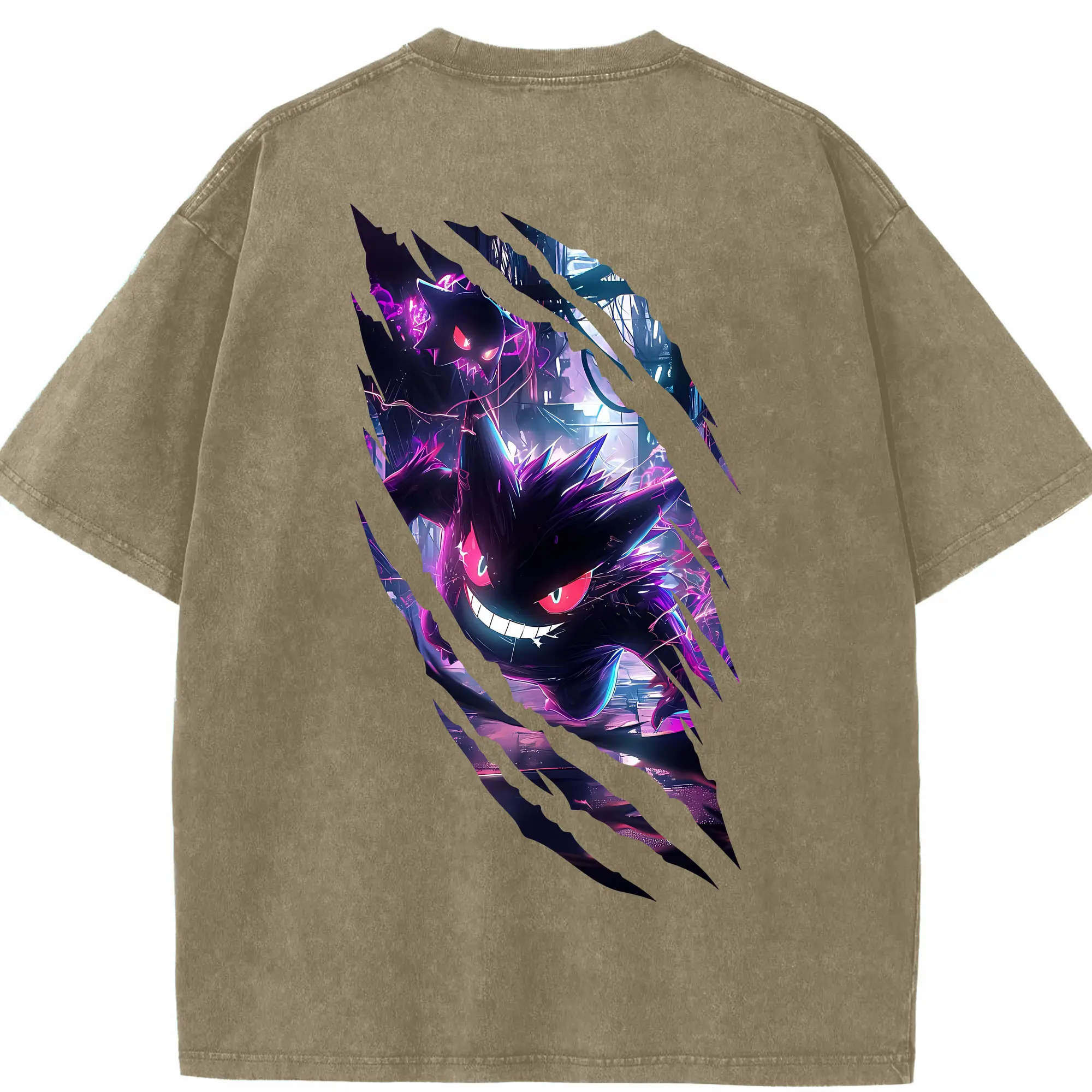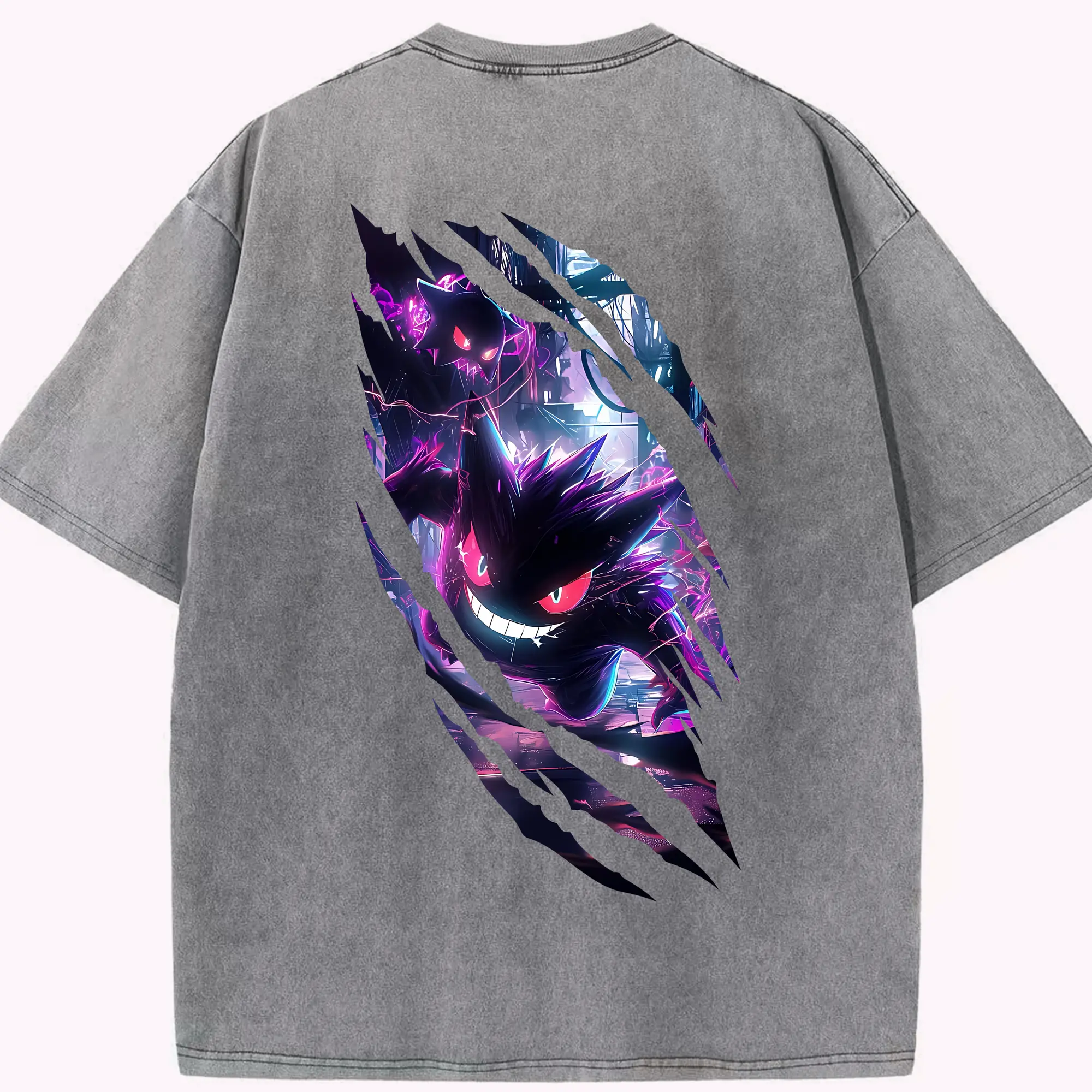 ポケモン グッズ,ゲンガー - 綿100% ヴィンテージ風 半袖Tシャツ ・ フロントプリント ・ 柔らか肌触り ・ 通気性 快適 ・ スポーツ カジュアル 外出用