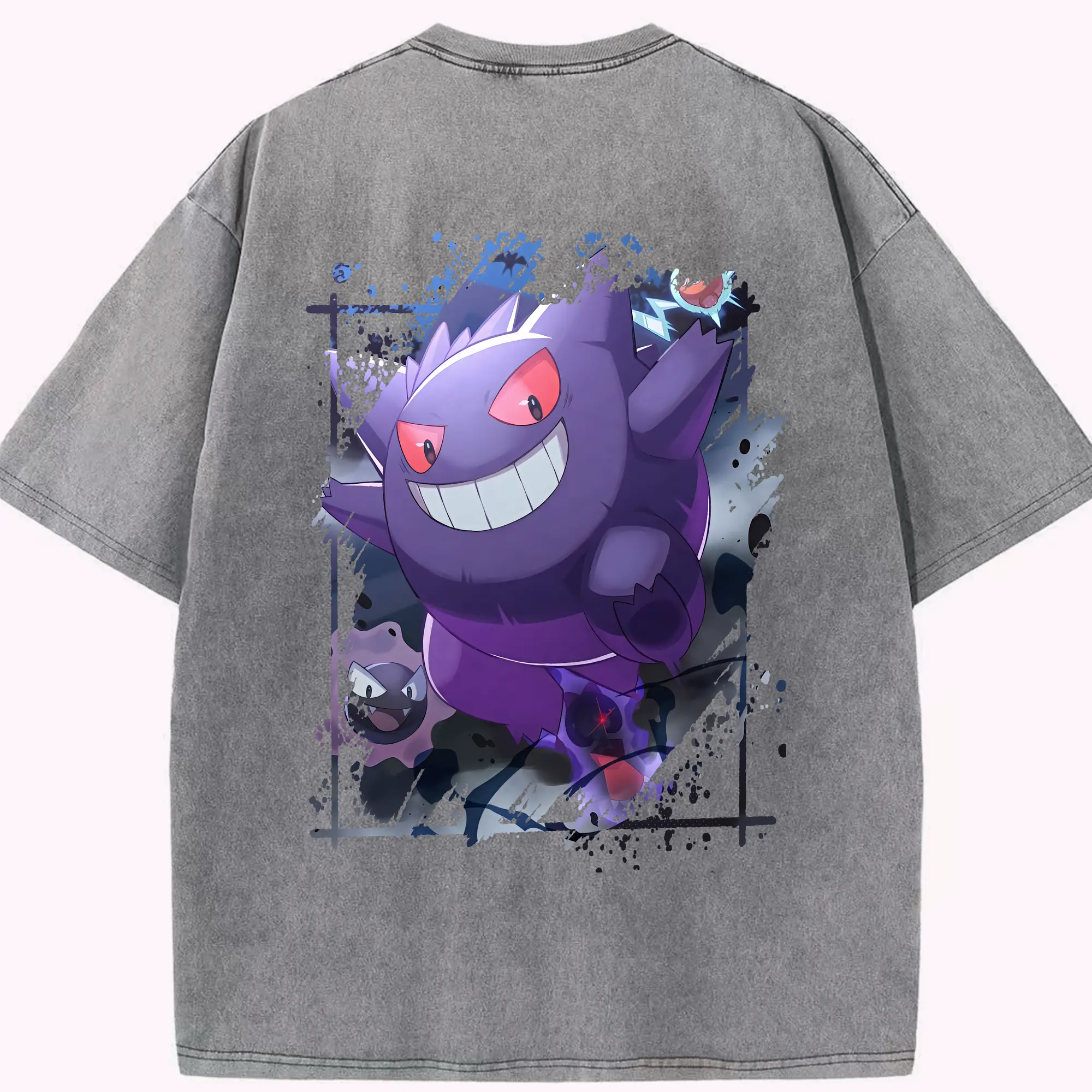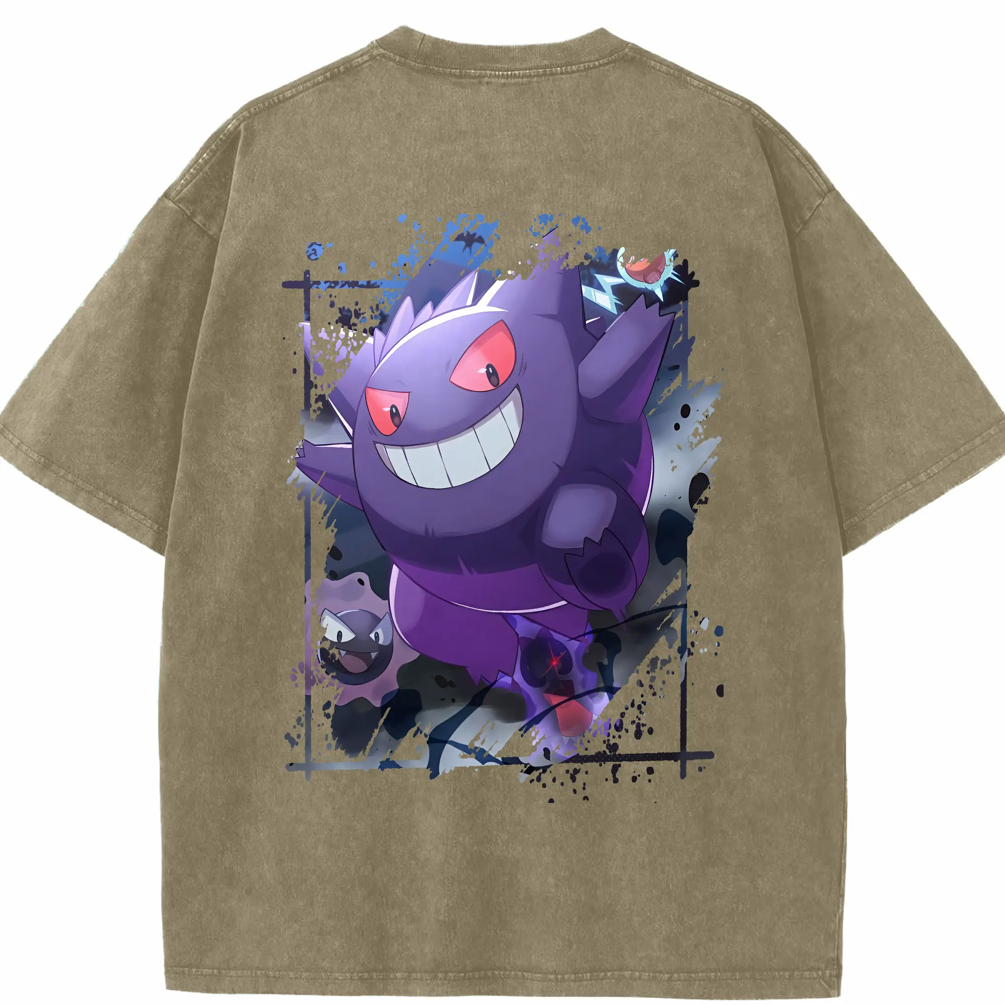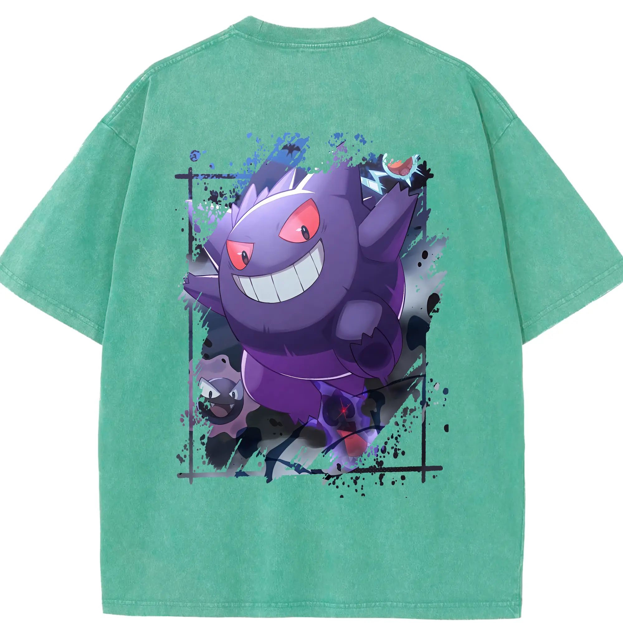 ポケモン グッズ,ゲンガー - 綿100% ヴィンテージ風 半袖Tシャツ ・ フロントプリント ・ 柔らか肌触り ・ 通気性 快適 ・ スポーツ カジュアル 外出用