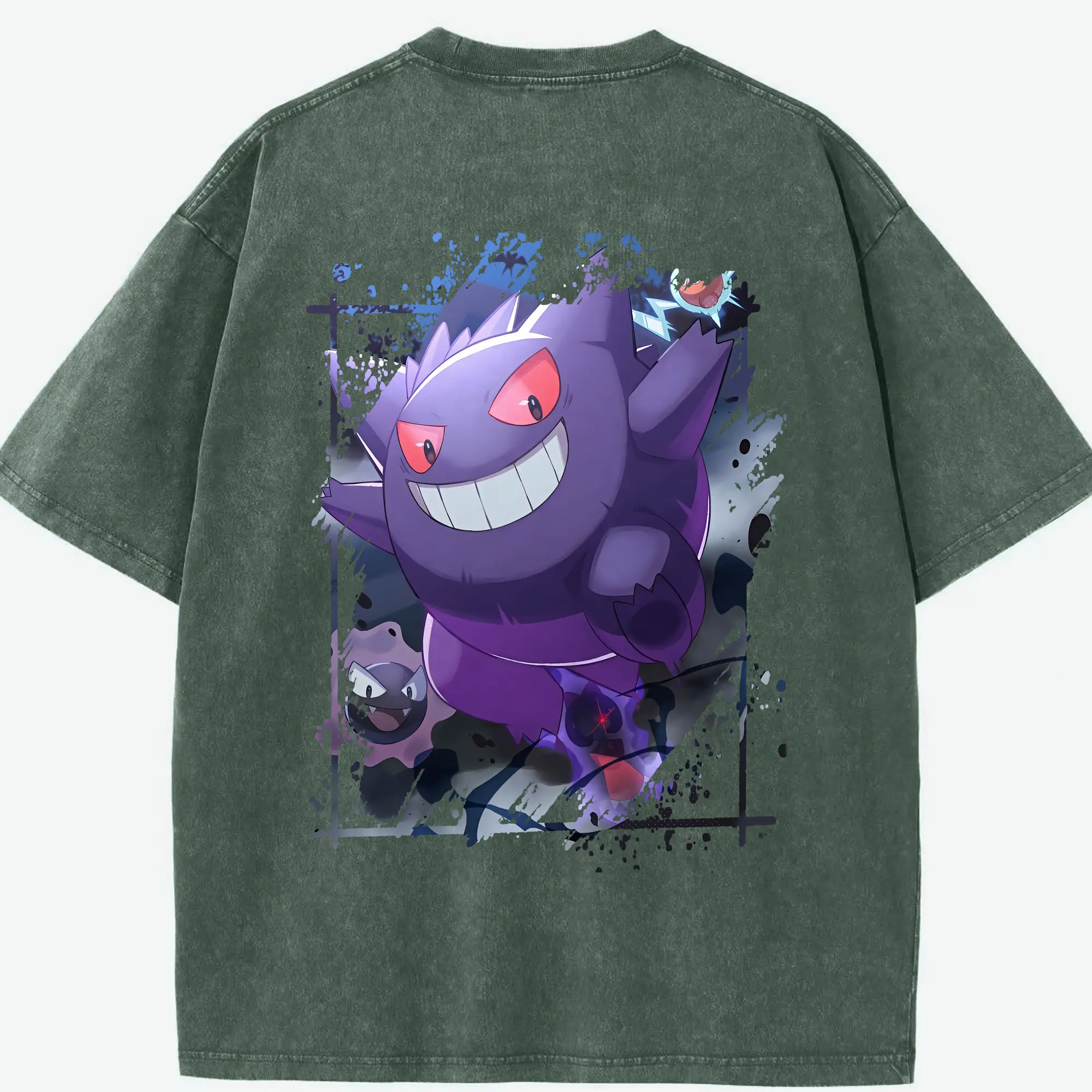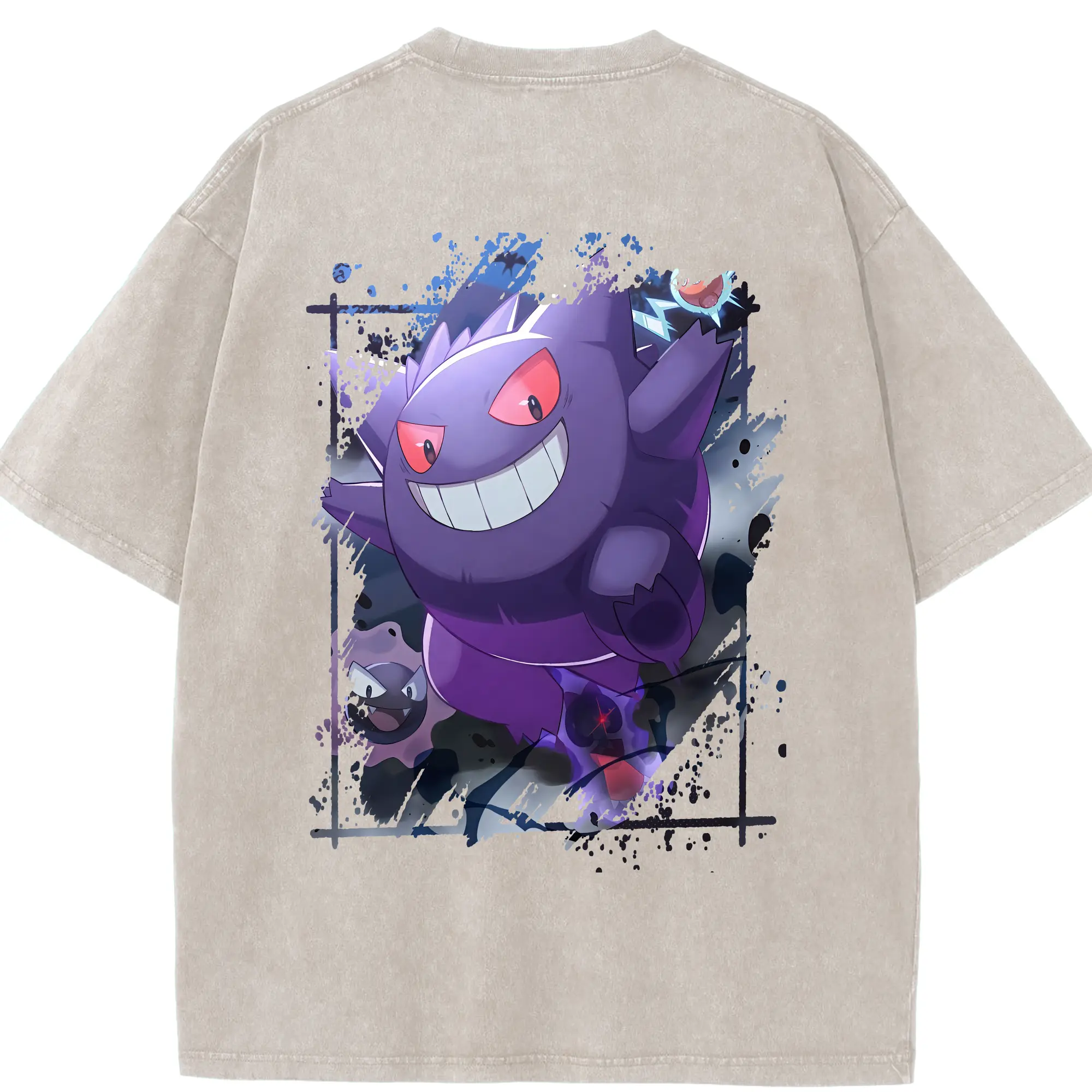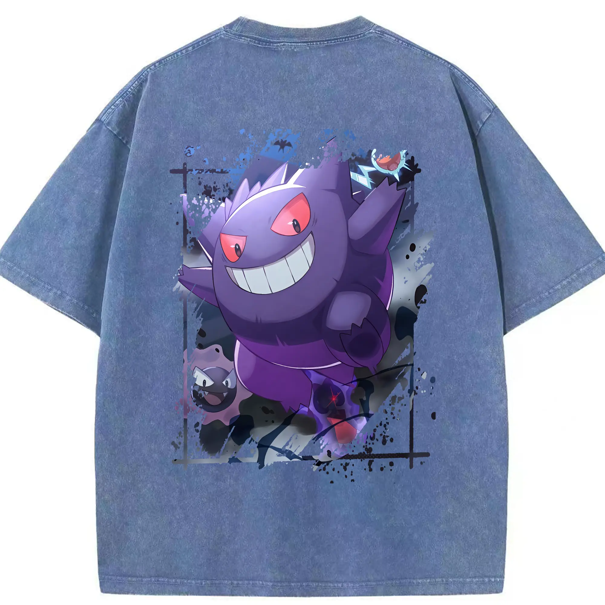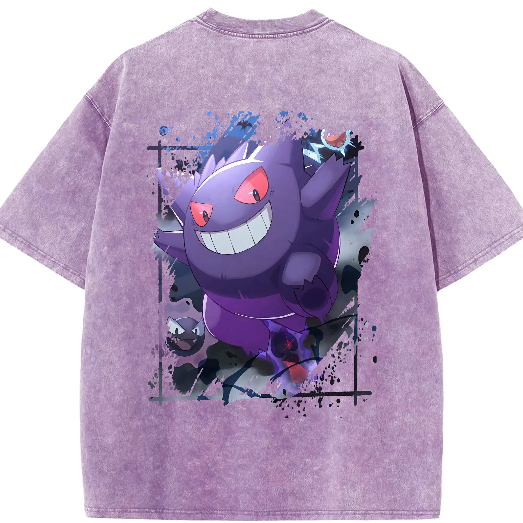 ポケモン グッズ,ゲンガー - 綿100% ヴィンテージ風 半袖Tシャツ ・ フロントプリント ・ 柔らか肌触り ・ 通気性 快適 ・ スポーツ カジュアル 外出用