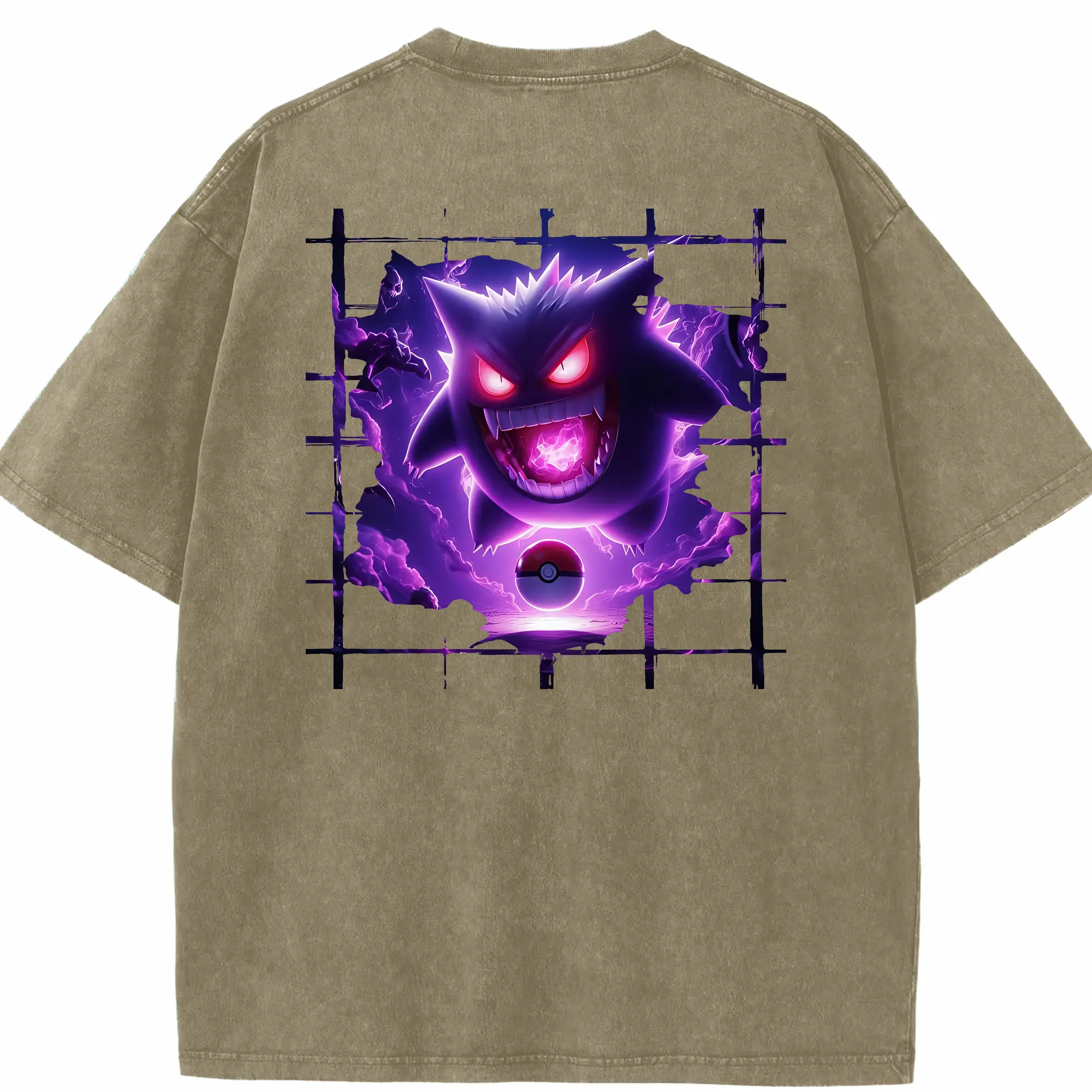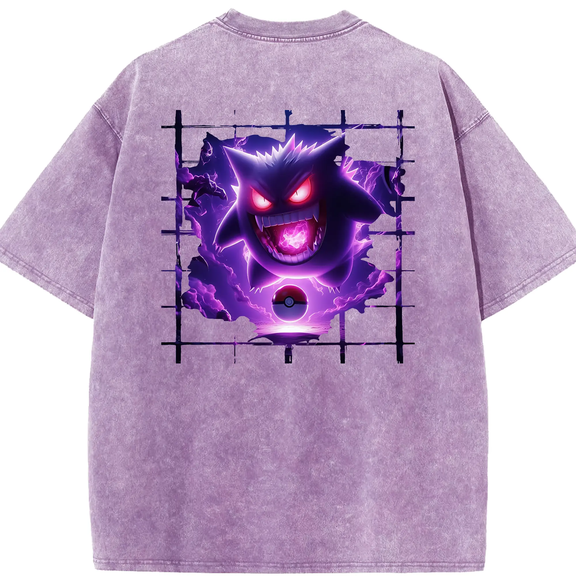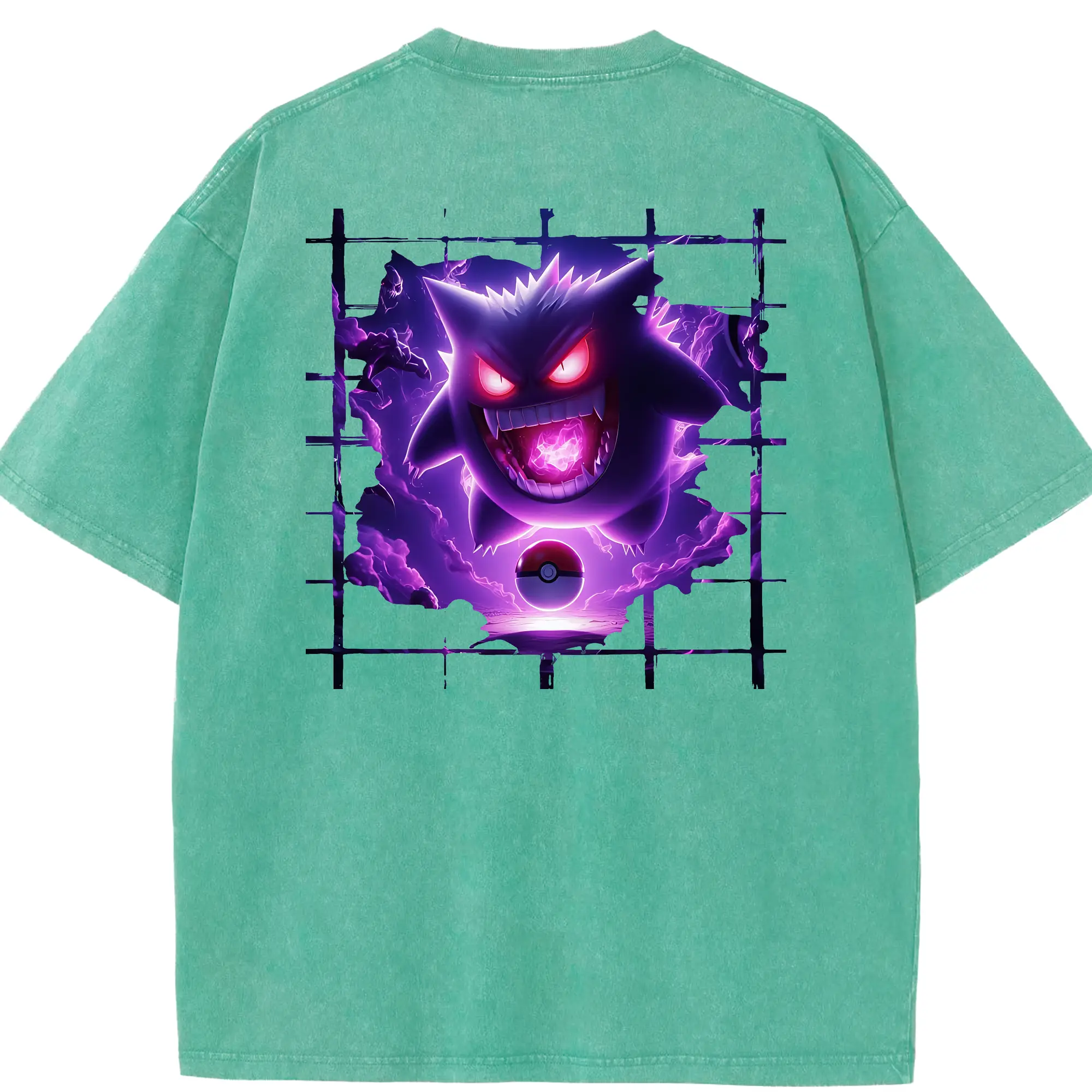 ポケモン グッズ,ゲンガー - 綿100% ヴィンテージ風 半袖Tシャツ ・ フロントプリント ・ 柔らか肌触り ・ 通気性 快適 ・ スポーツ カジュアル 外出用