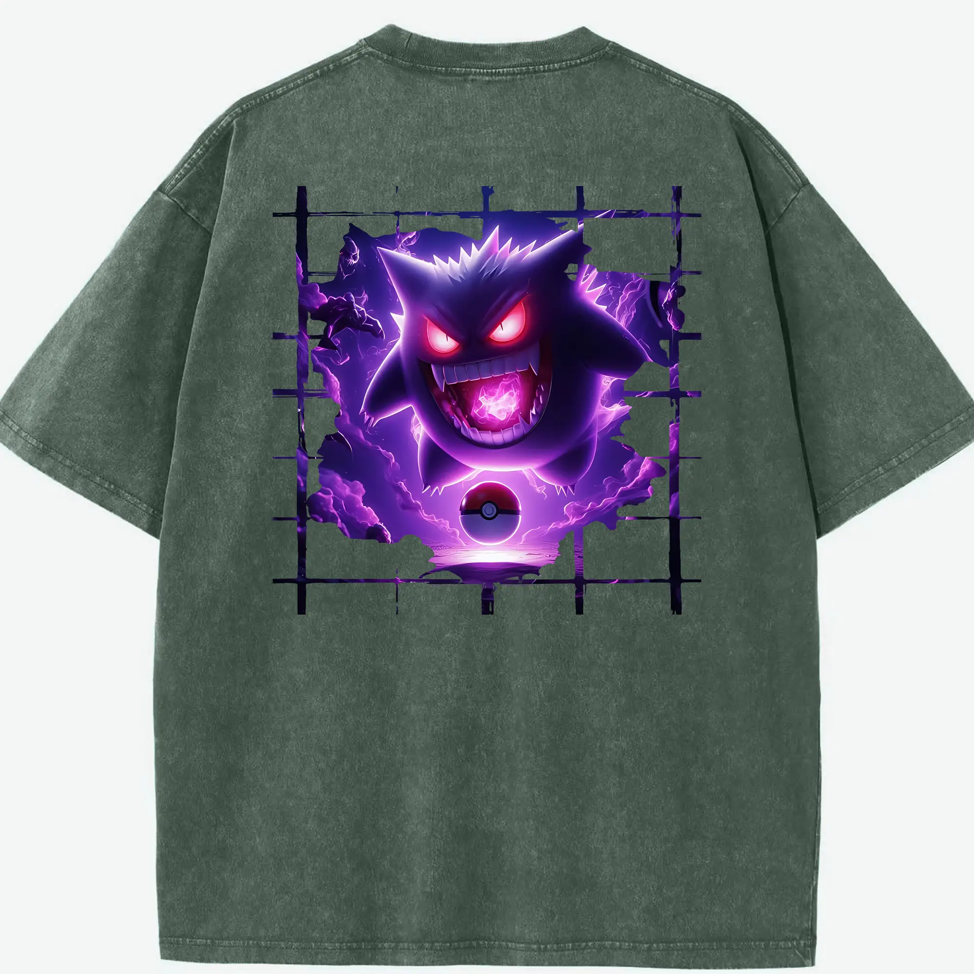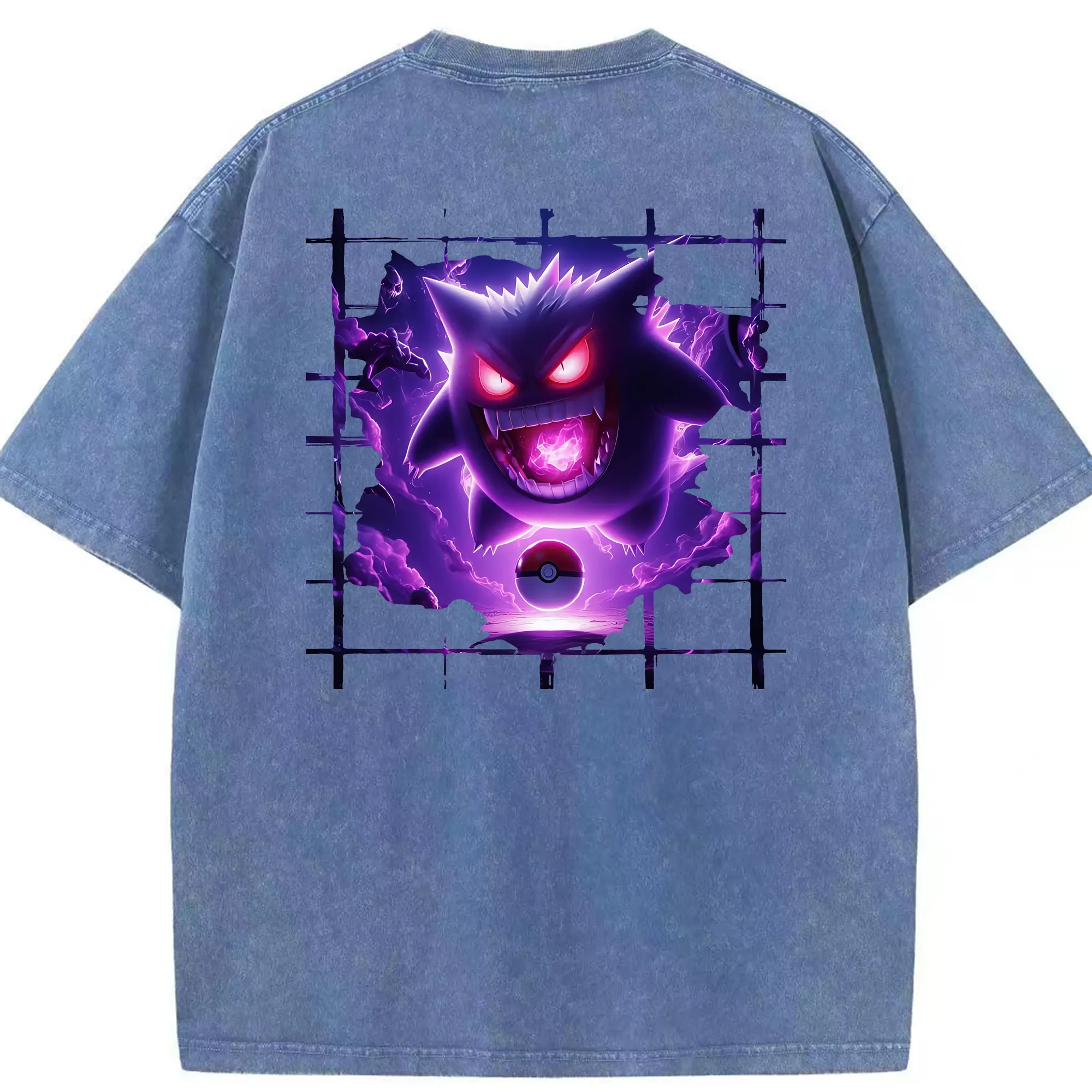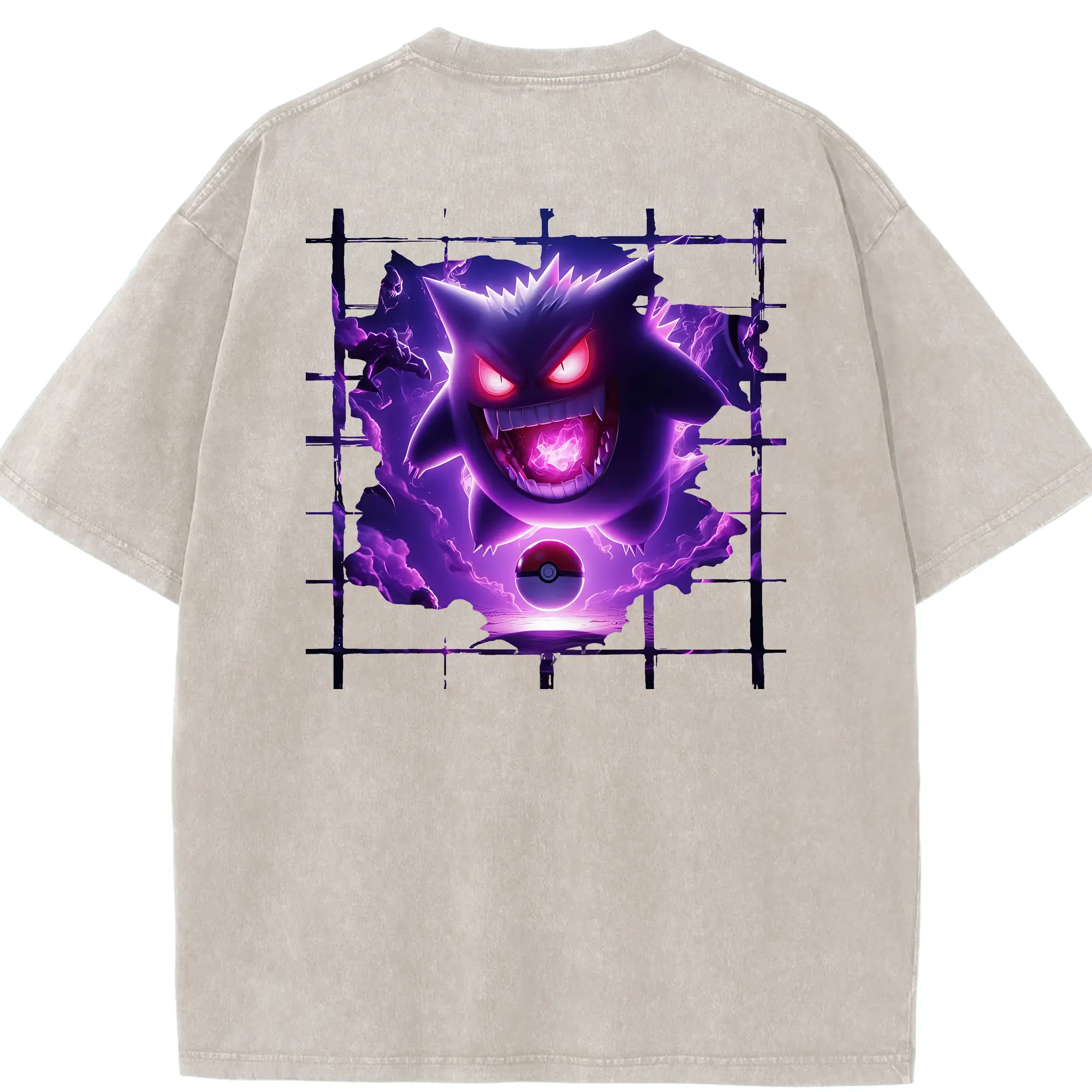 ポケモン グッズ,ゲンガー - 綿100% ヴィンテージ風 半袖Tシャツ ・ フロントプリント ・ 柔らか肌触り ・ 通気性 快適 ・ スポーツ カジュアル 外出用
