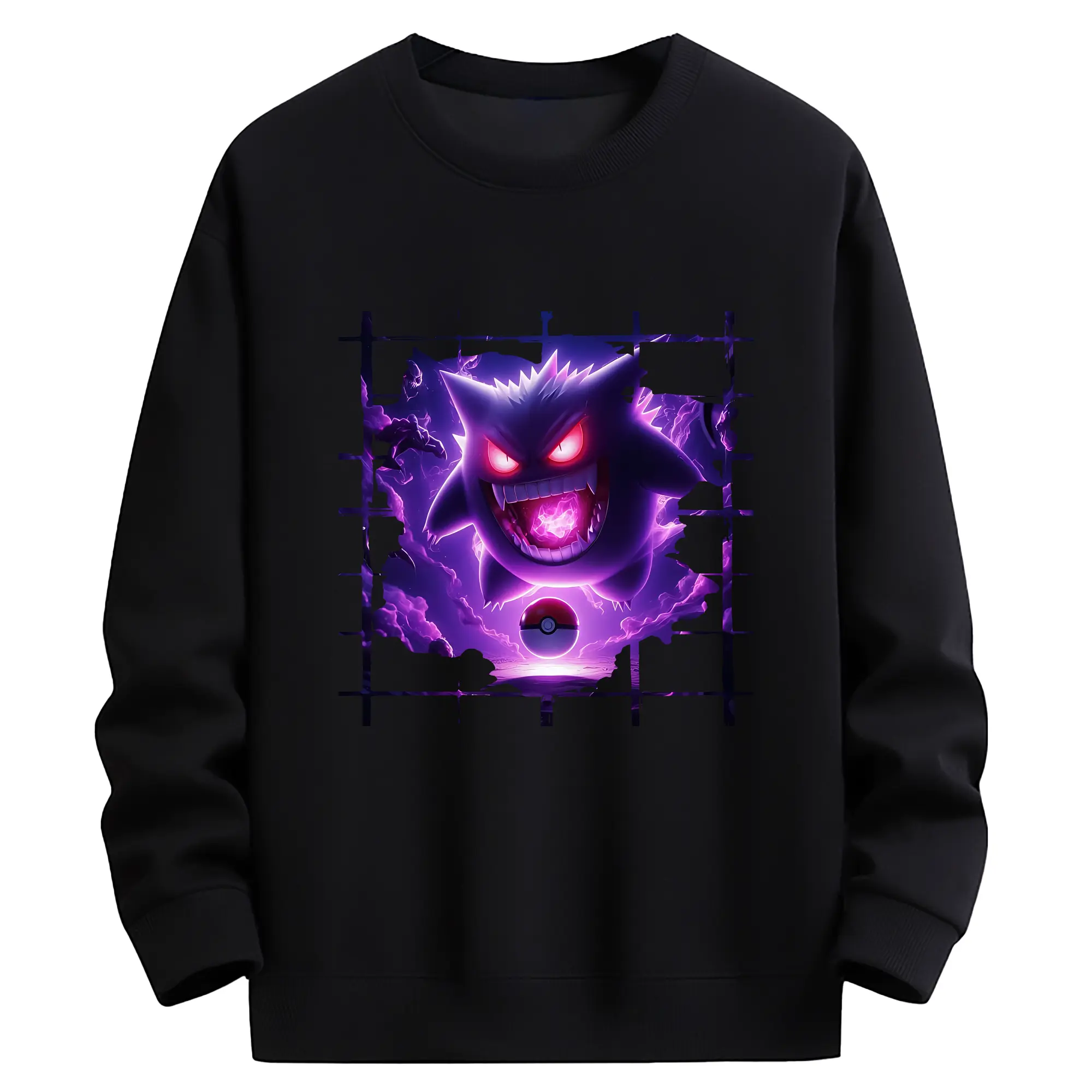 ポケモン グッズ,ゲンガー - 薄手 クルーネック スウェット 裏毛260g · ポリエステル 春秋向け カジュアル 男女兼用 · トレーナー デイリー スポーツ 散歩に最適