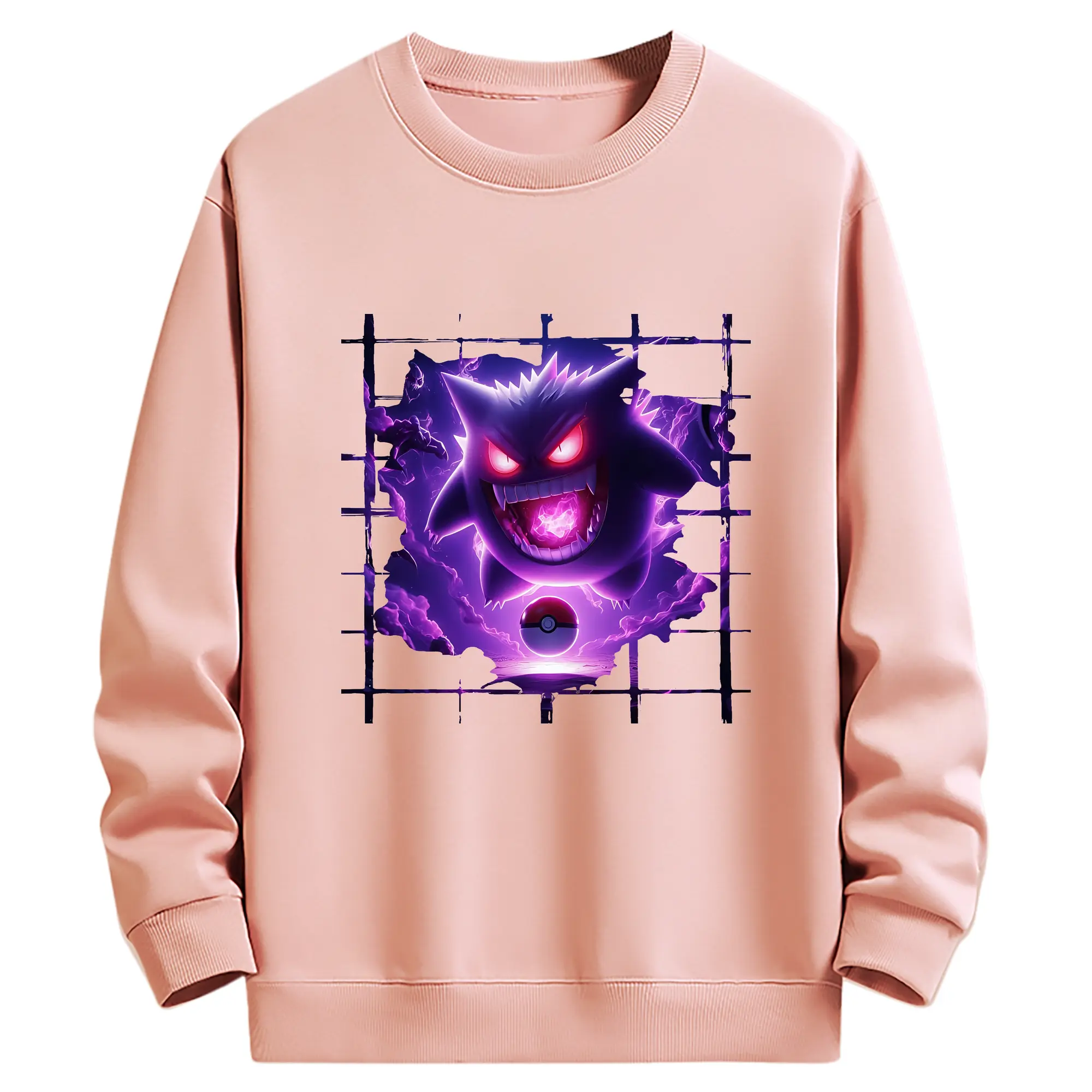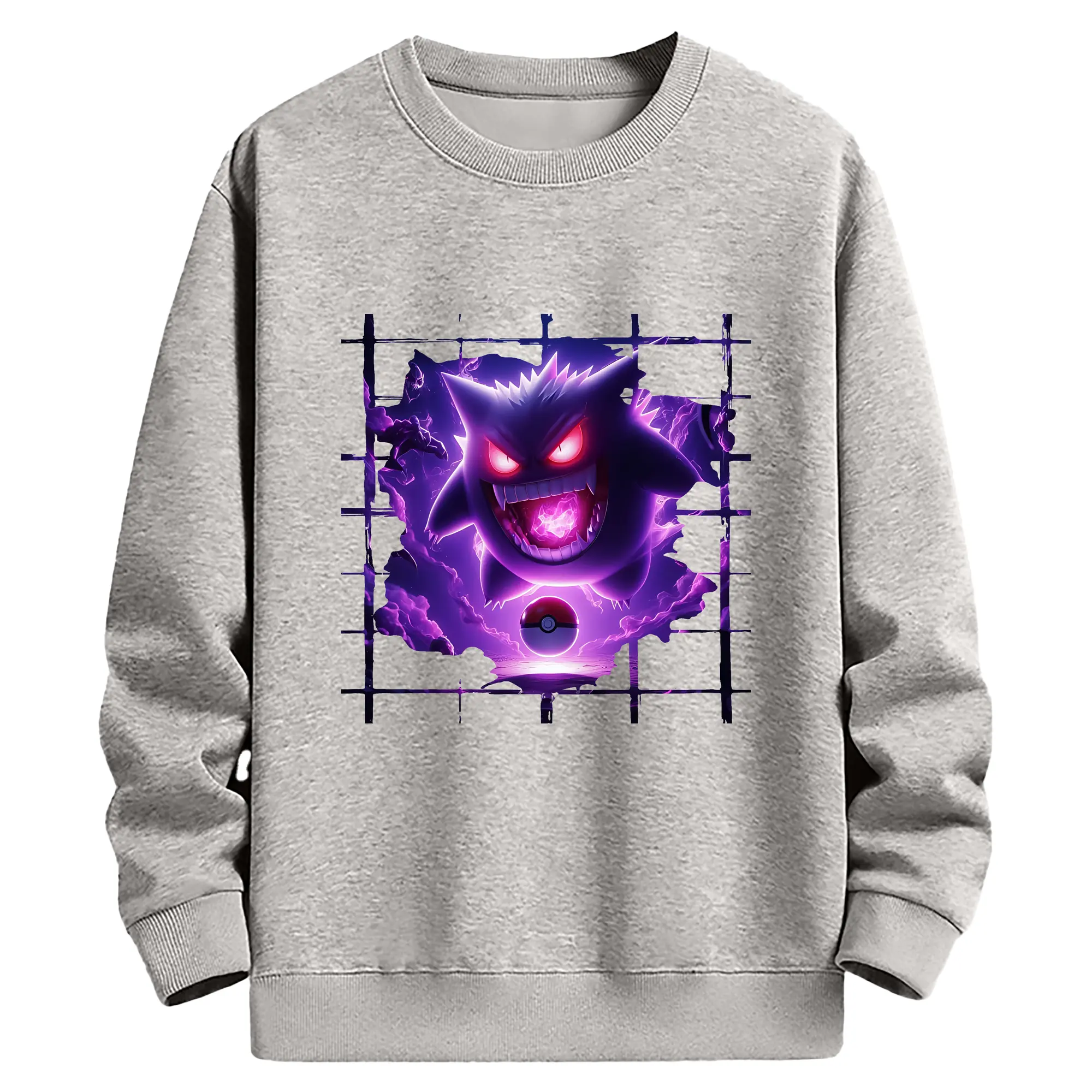 ポケモン グッズ,ゲンガー - 薄手 クルーネック スウェット 裏毛260g · ポリエステル 春秋向け カジュアル 男女兼用 · トレーナー デイリー スポーツ 散歩に最適