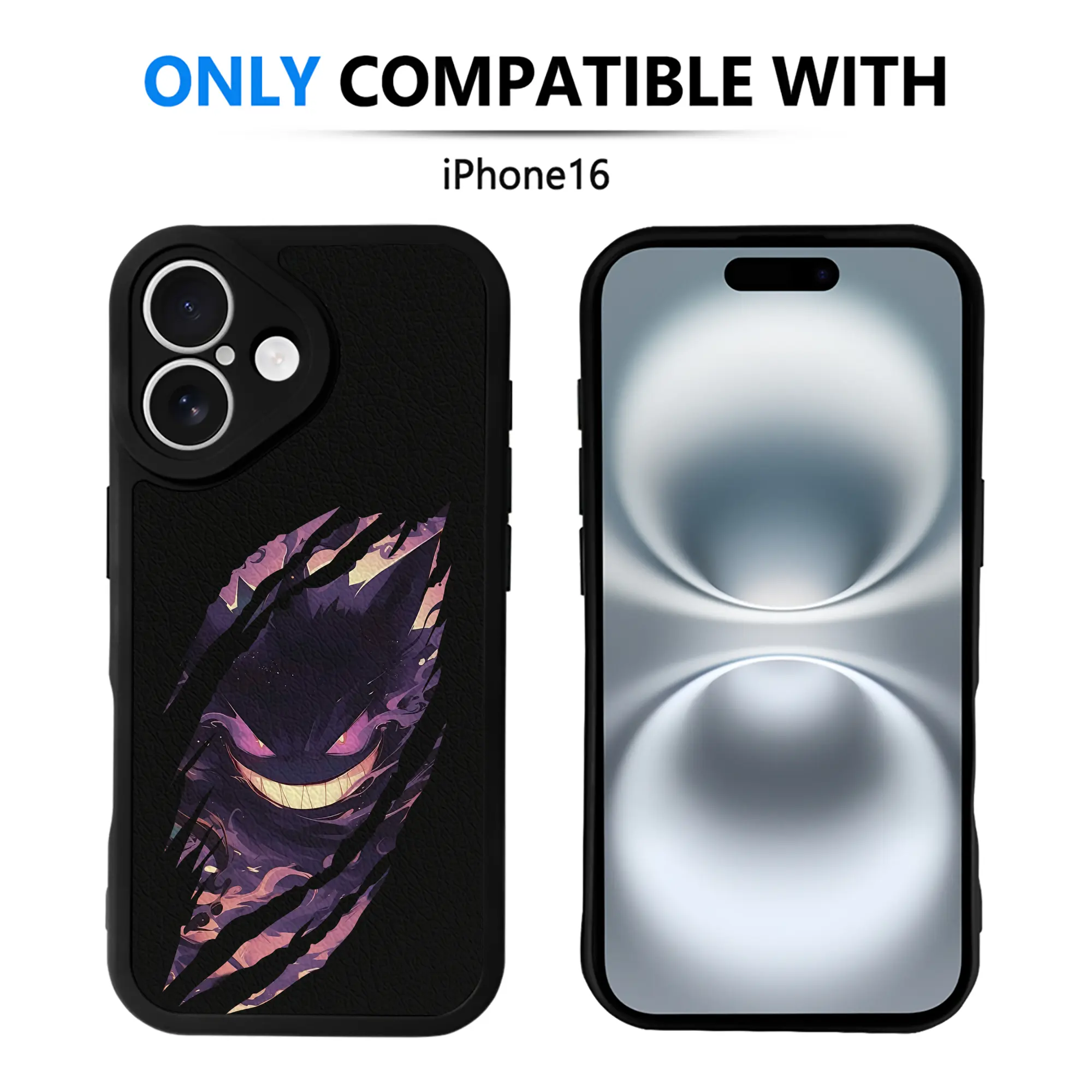 ポケモン グッズ,ゲンガー - IPhone 16シリーズ対応 ・ シリコンスマホケース ・ レザー調 ・ 高精度フィット ・ 耐衝撃 ・ ワイヤレス充電対応 ・ 精密カット