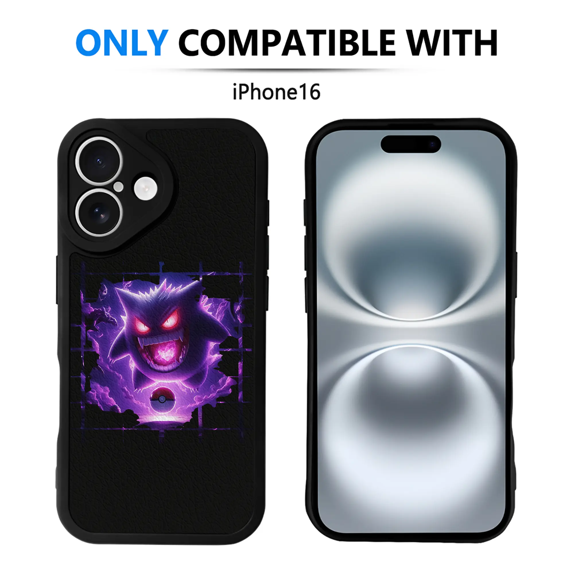 ポケモン グッズ,ゲンガー - IPhone 16シリーズ対応 ・ シリコンスマホケース ・ レザー調 ・ 高精度フィット ・ 耐衝撃 ・ ワイヤレス充電対応 ・ 精密カット