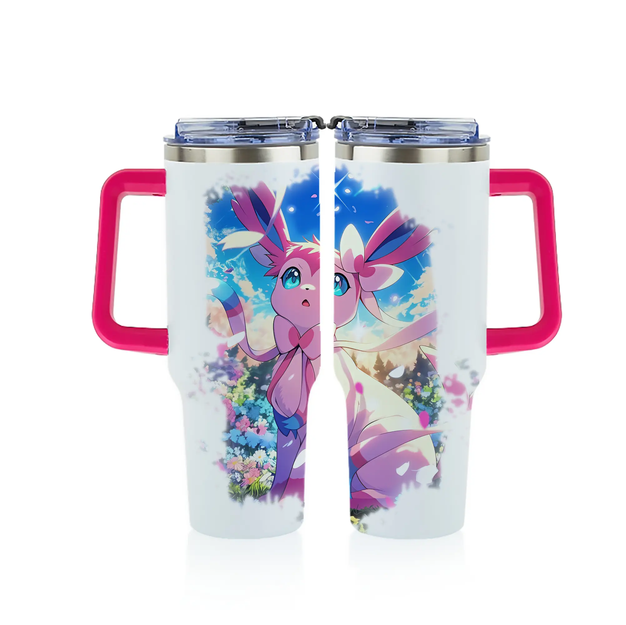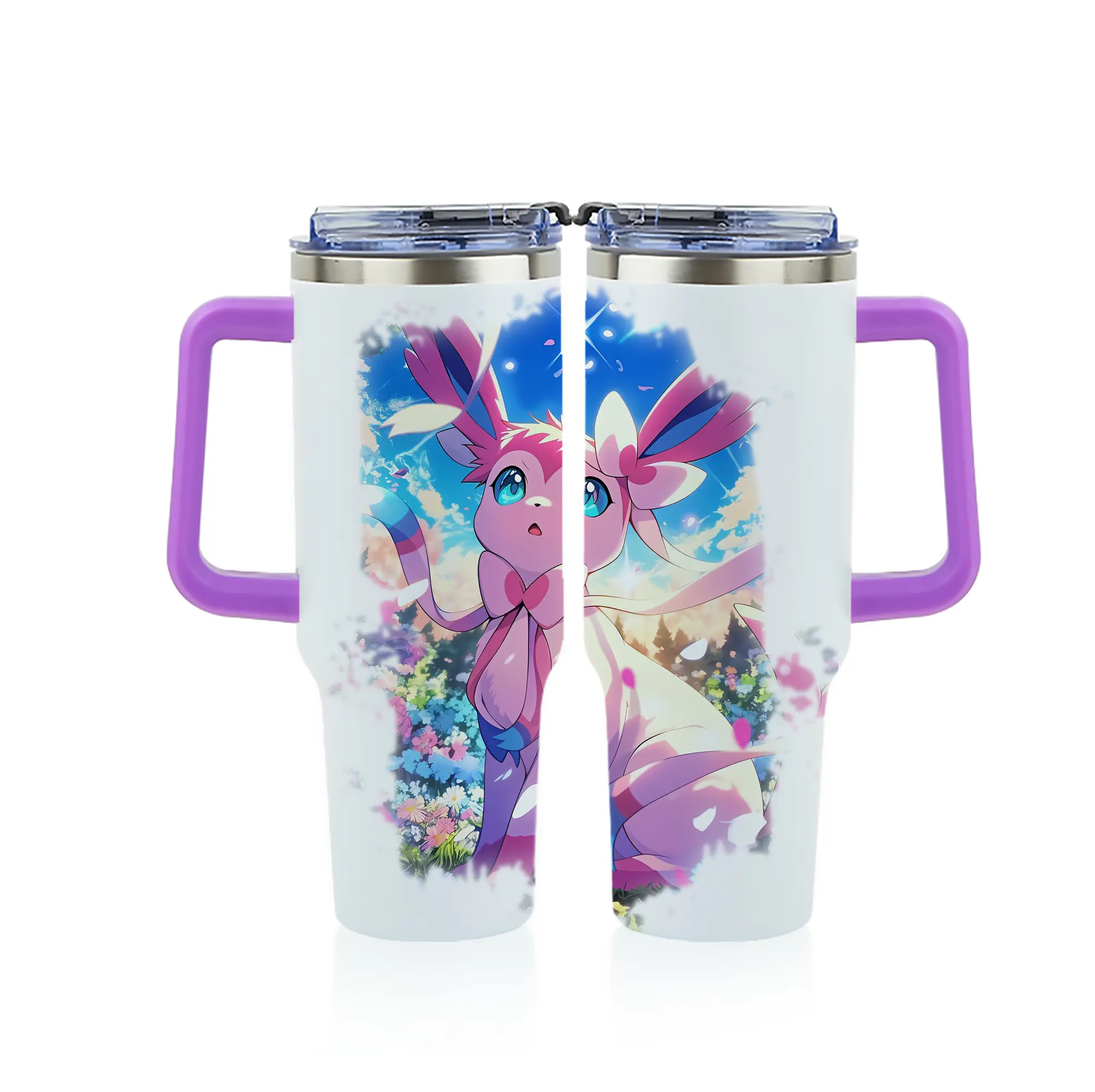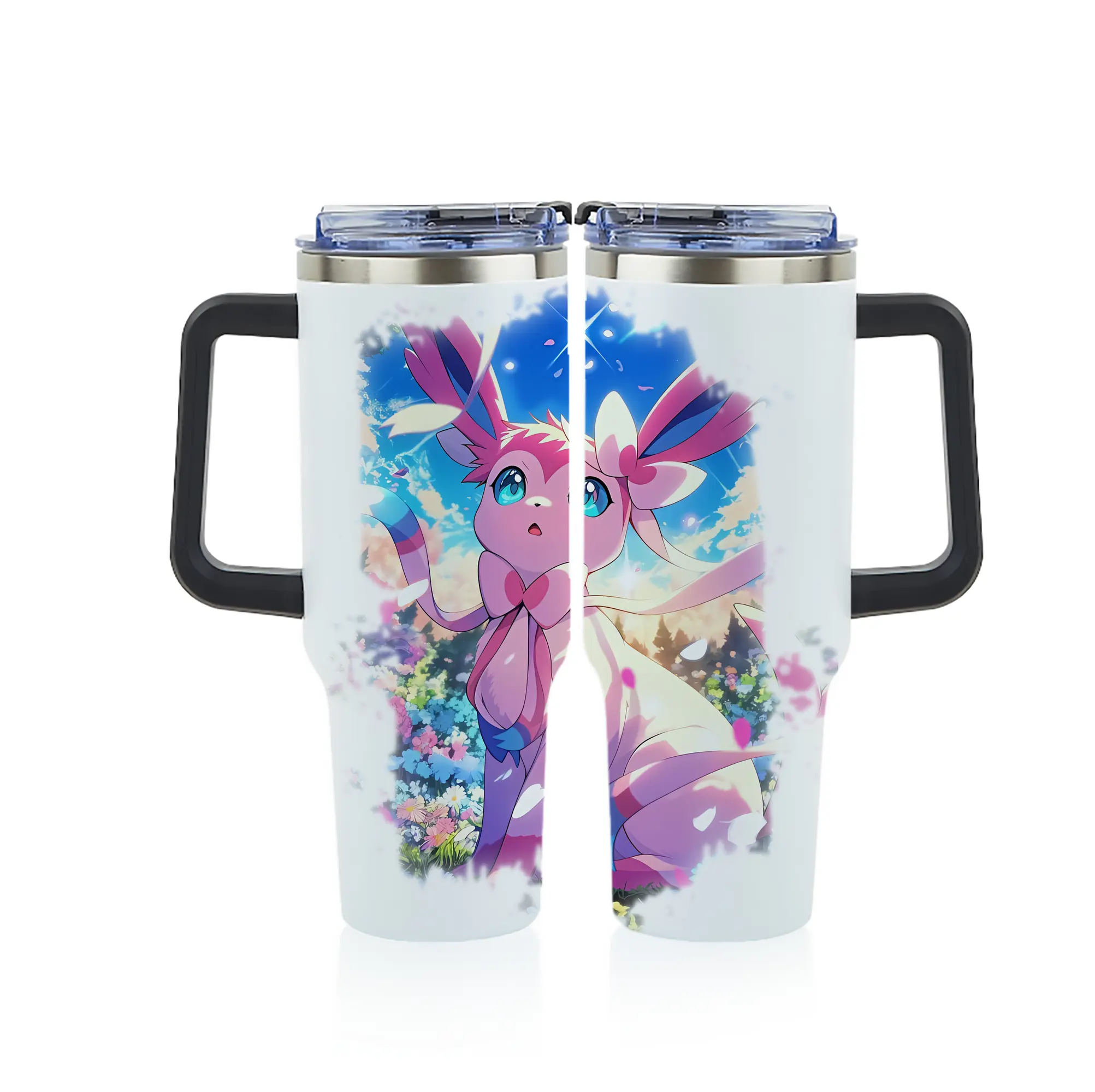 ポケモン グッズ,ニンフィア - 1200mL フルプリント車用タンブラー ・ 304ステンレス 内側 ・ 201ステンレス 外側 ・ 保温 保冷 ・ 通勤 ドライブ アウトドア用