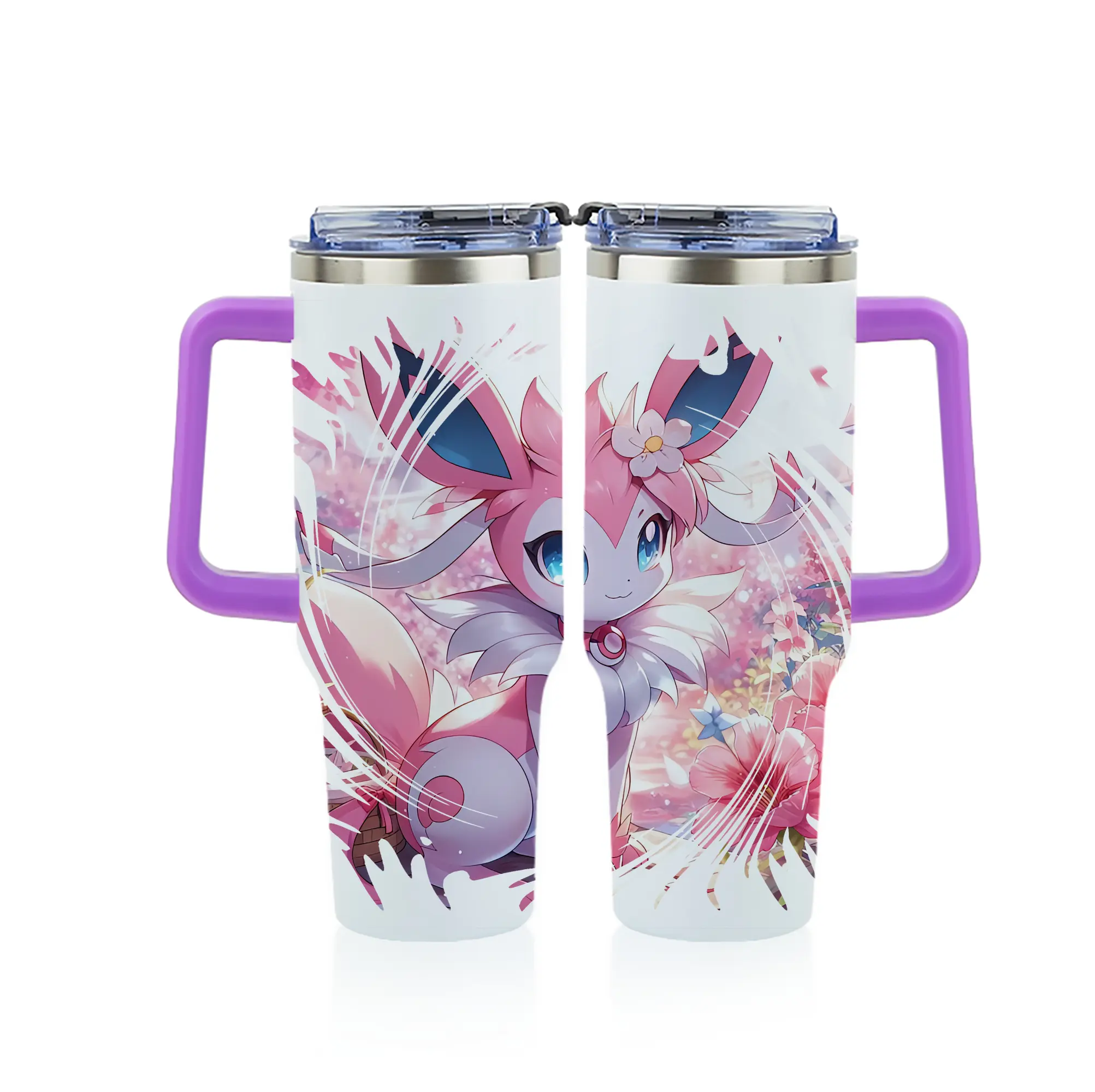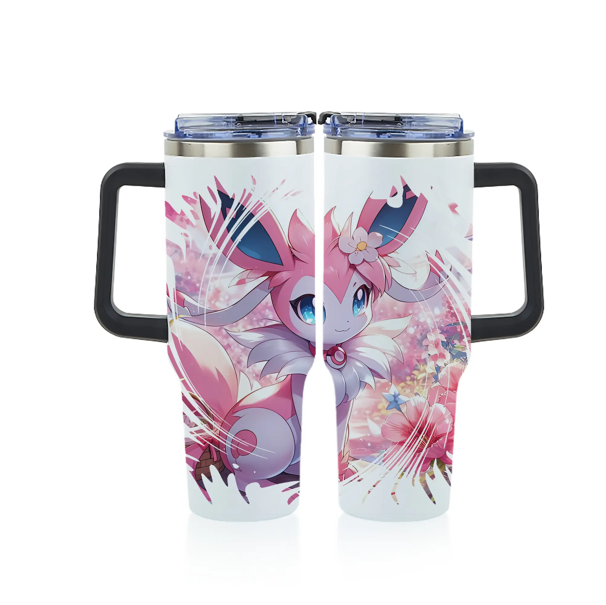 ポケモン グッズ,ニンフィア - 1200mL フルプリント車用タンブラー ・ 304ステンレス 内側 ・ 201ステンレス 外側 ・ 保温 保冷 ・ 通勤 ドライブ アウトドア用