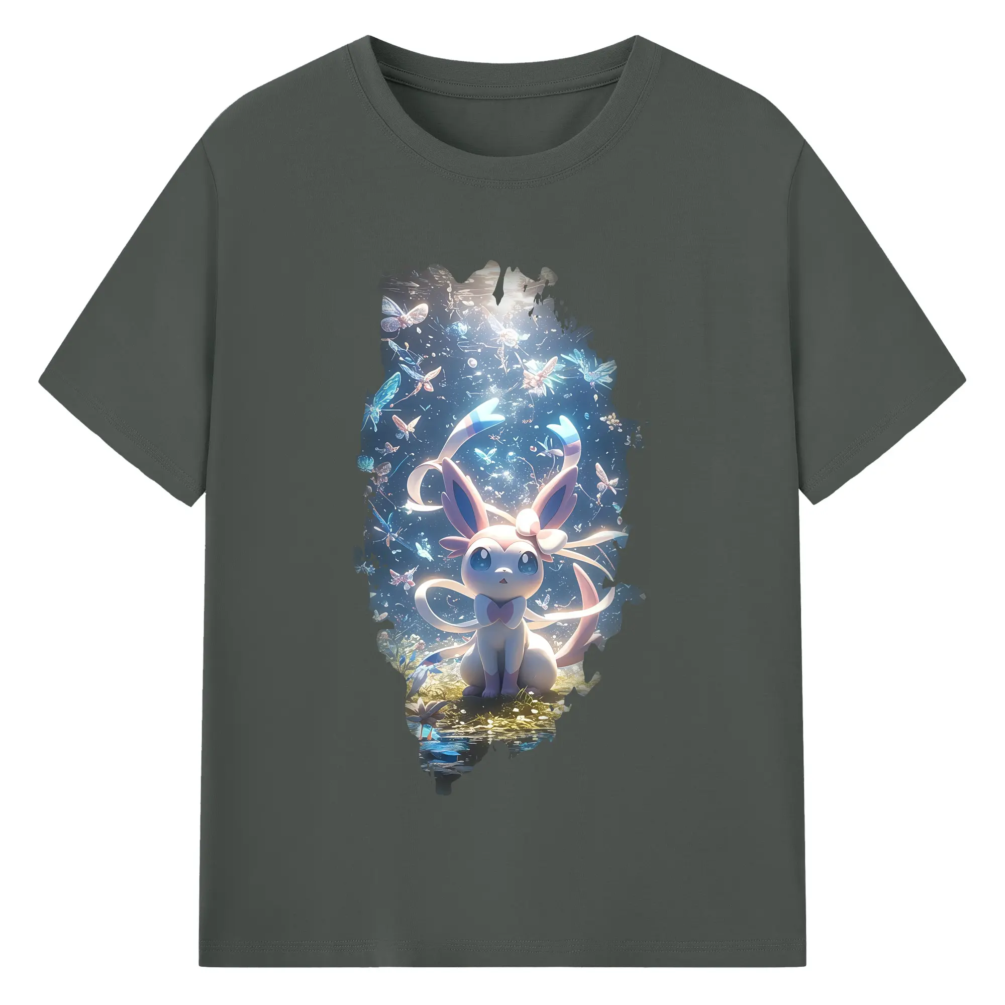 ポケモン グッズ,ニンフィア - 綿100% 半袖Tシャツ ・ バックプリント ・ 快適 通気性 ・ 日常使い 散歩 スポーツ用
