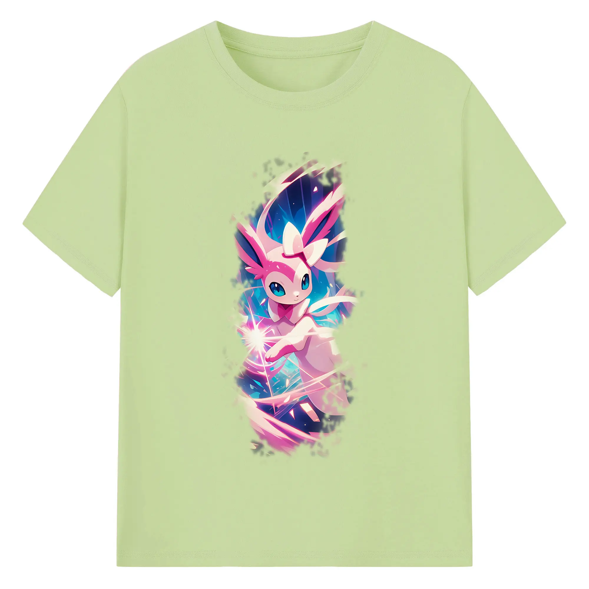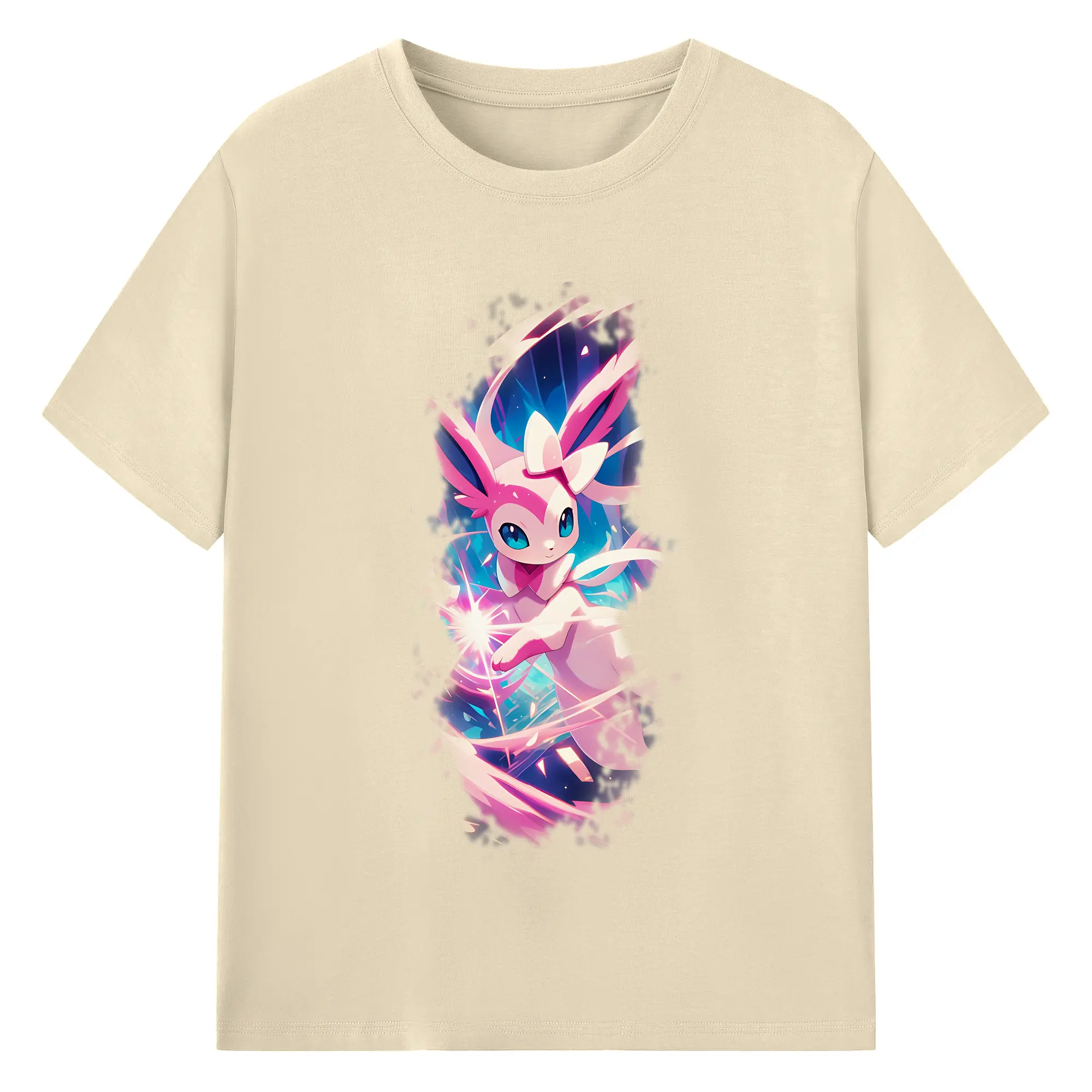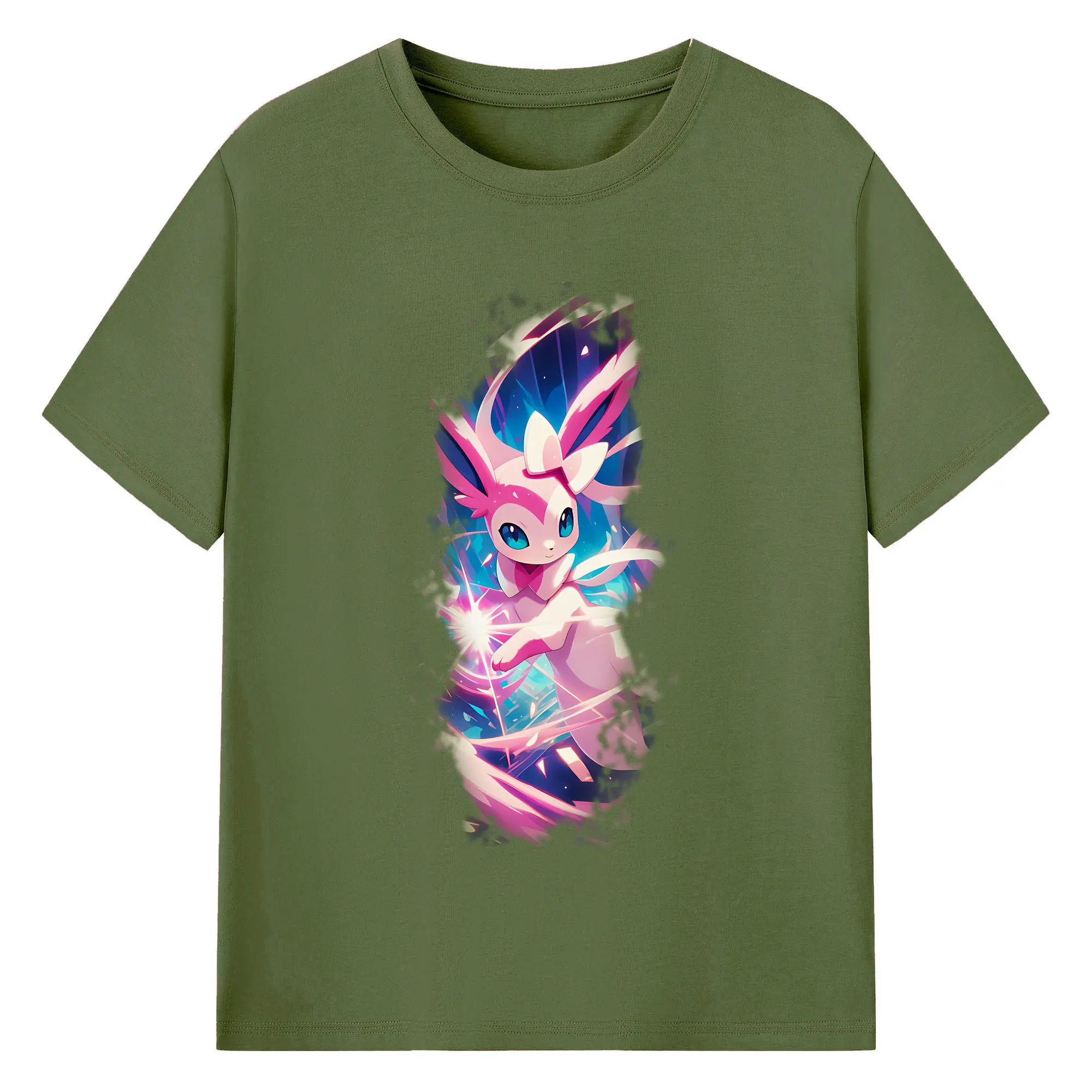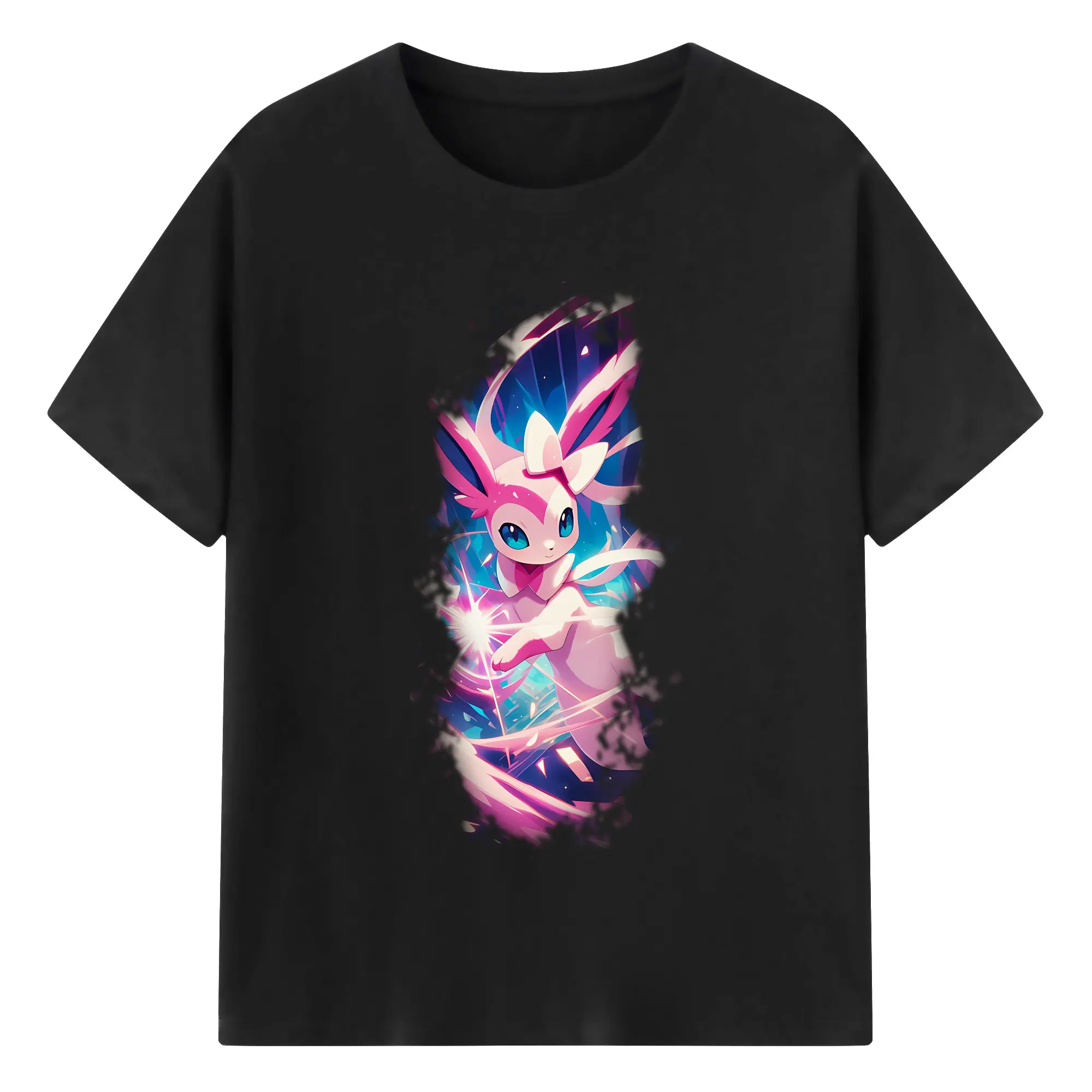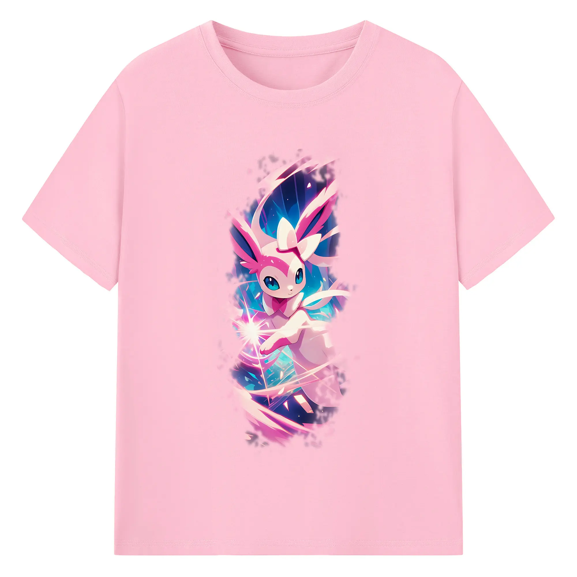 ポケモン グッズ,ニンフィア - 綿100% 半袖Tシャツ ・ バックプリント ・ 快適 通気性 ・ 日常使い 散歩 スポーツ用