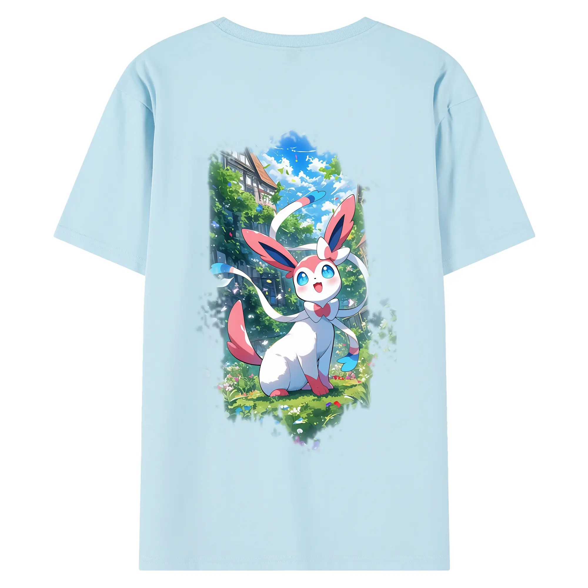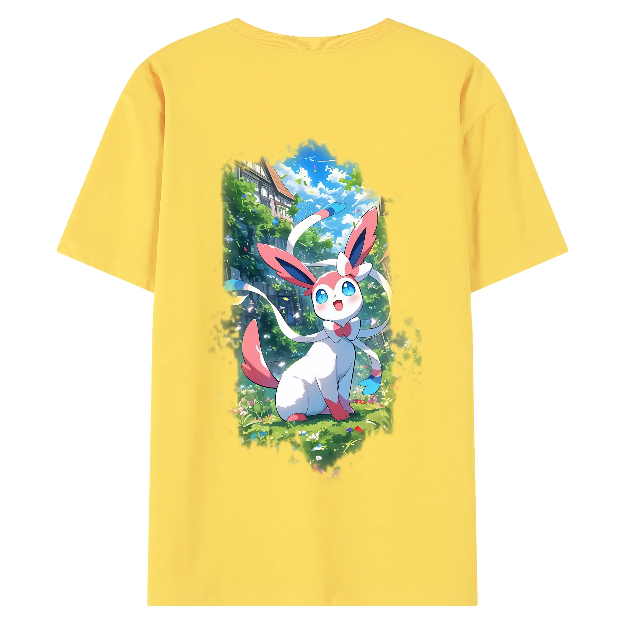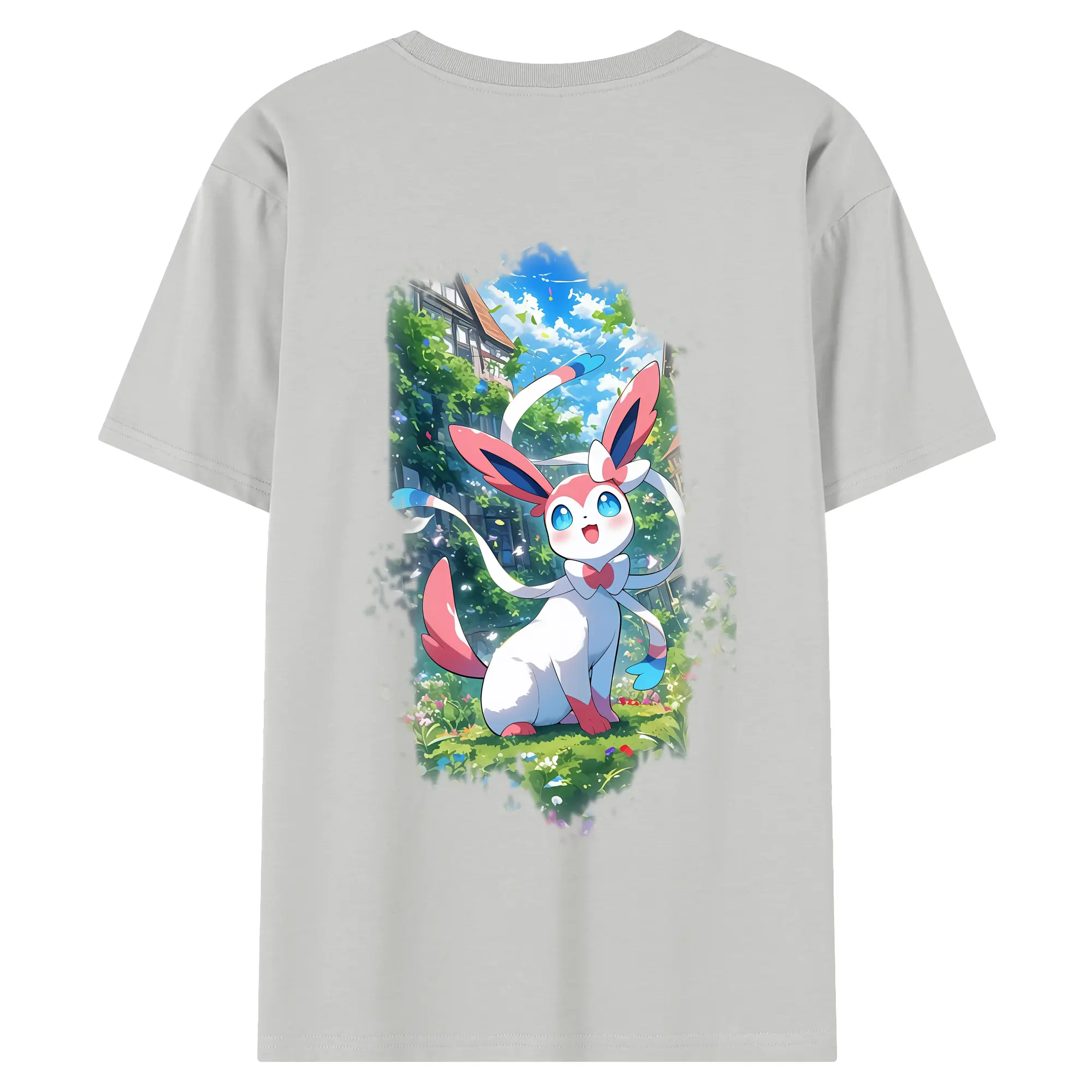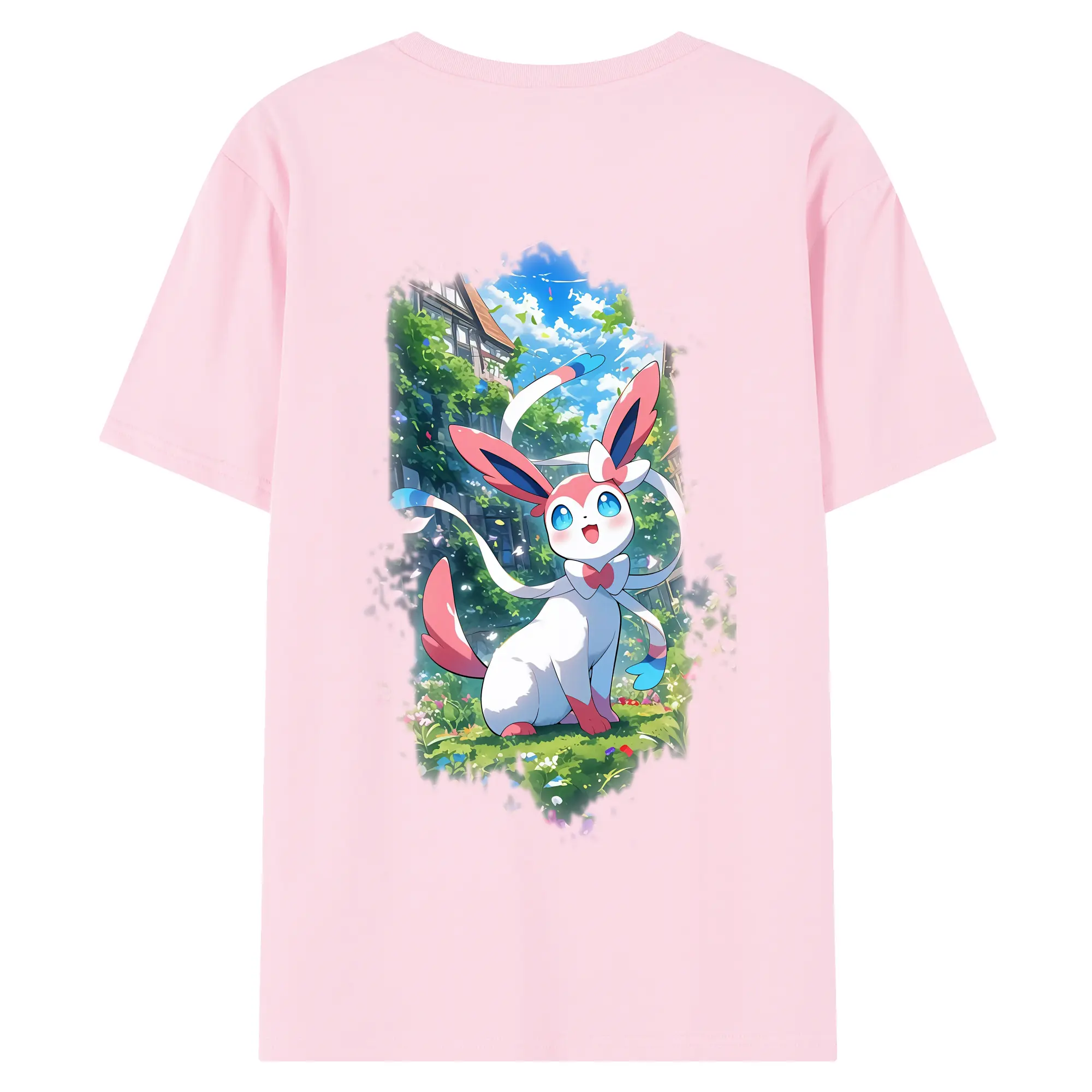 ポケモン グッズ,ニンフィア - 綿100% ヴィンテージ風 半袖Tシャツ ・ 背面プリント ・ 柔らか肌触り ・ 通気性 快適 ・ スポーツ カジュアル 外出用