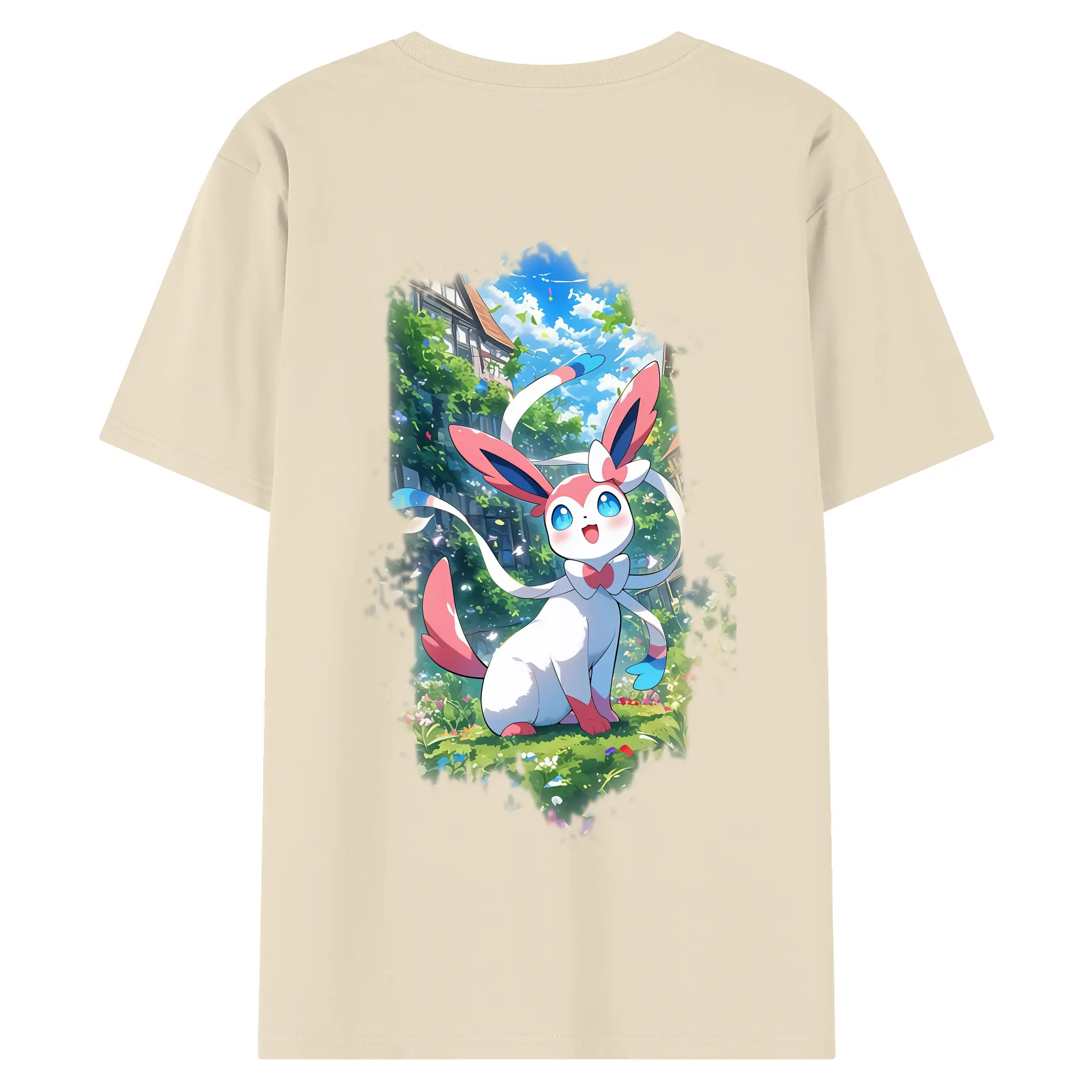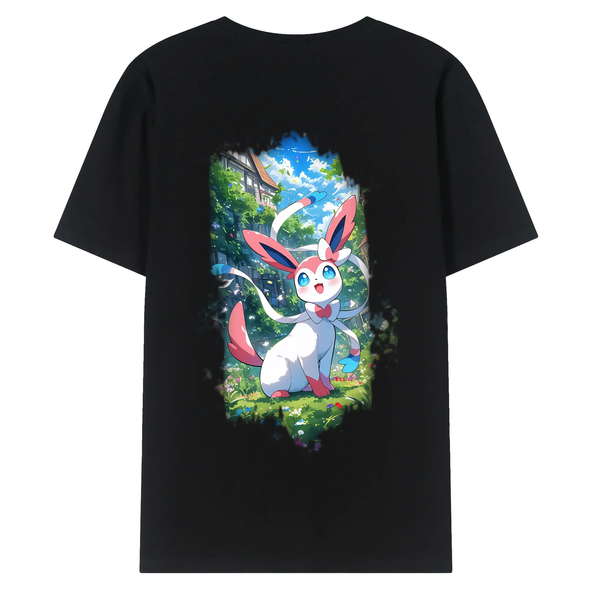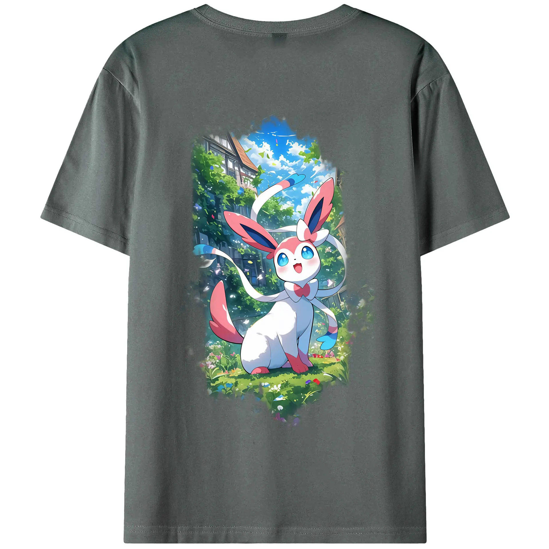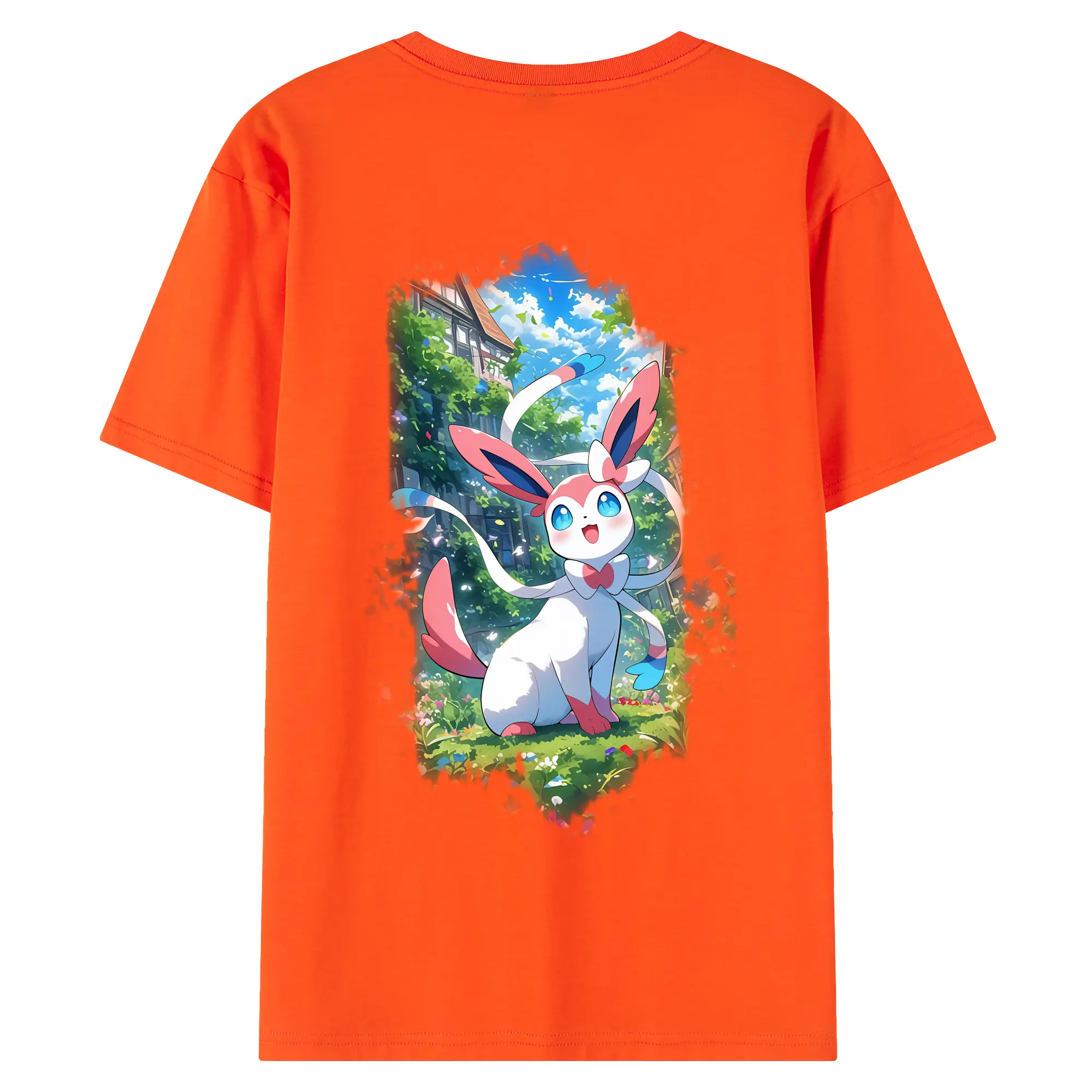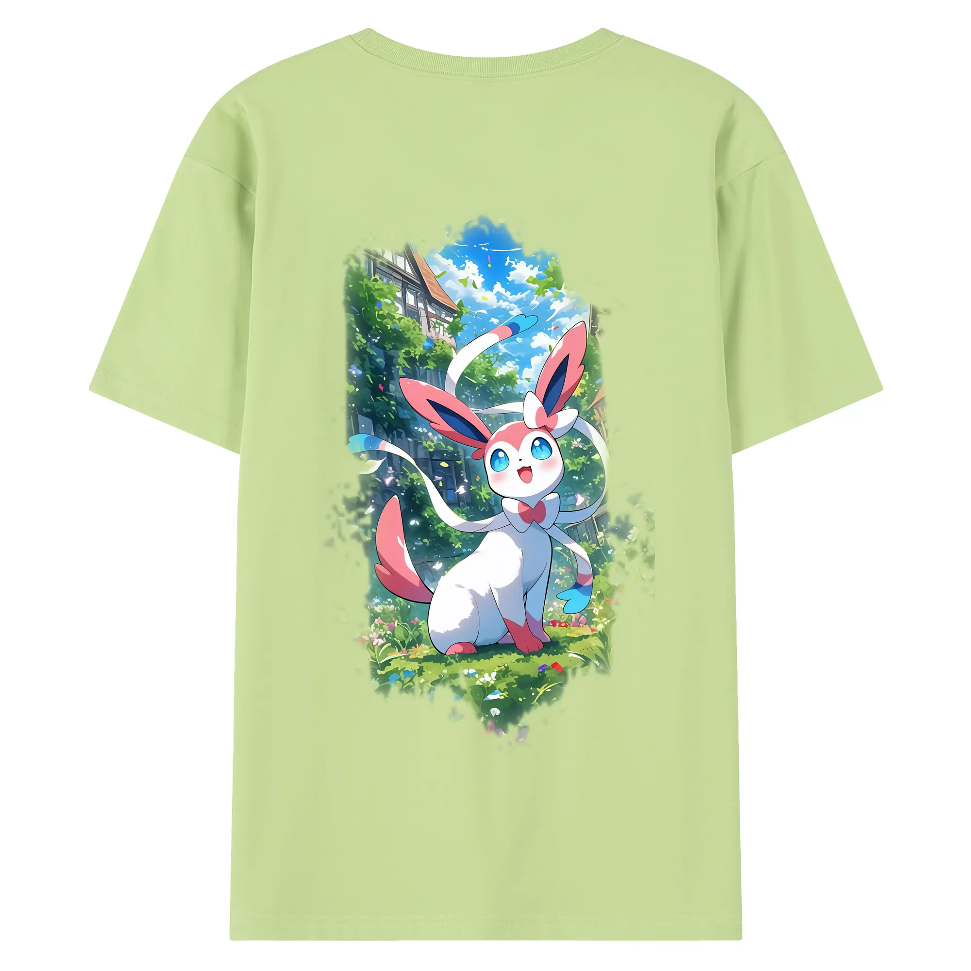 ポケモン グッズ,ニンフィア - 綿100% ヴィンテージ風 半袖Tシャツ ・ 背面プリント ・ 柔らか肌触り ・ 通気性 快適 ・ スポーツ カジュアル 外出用