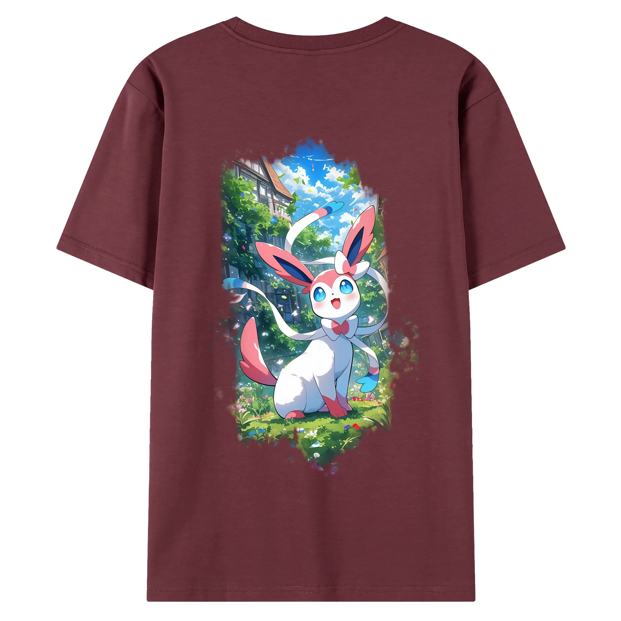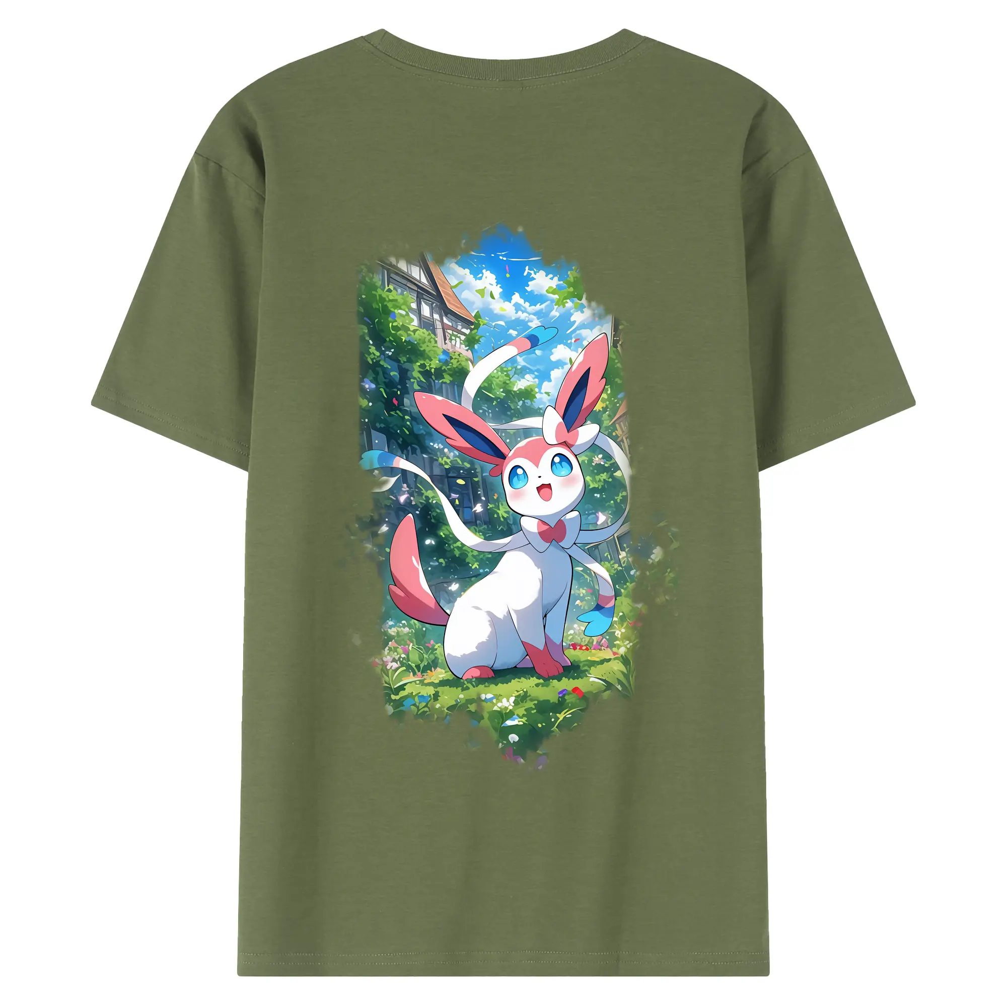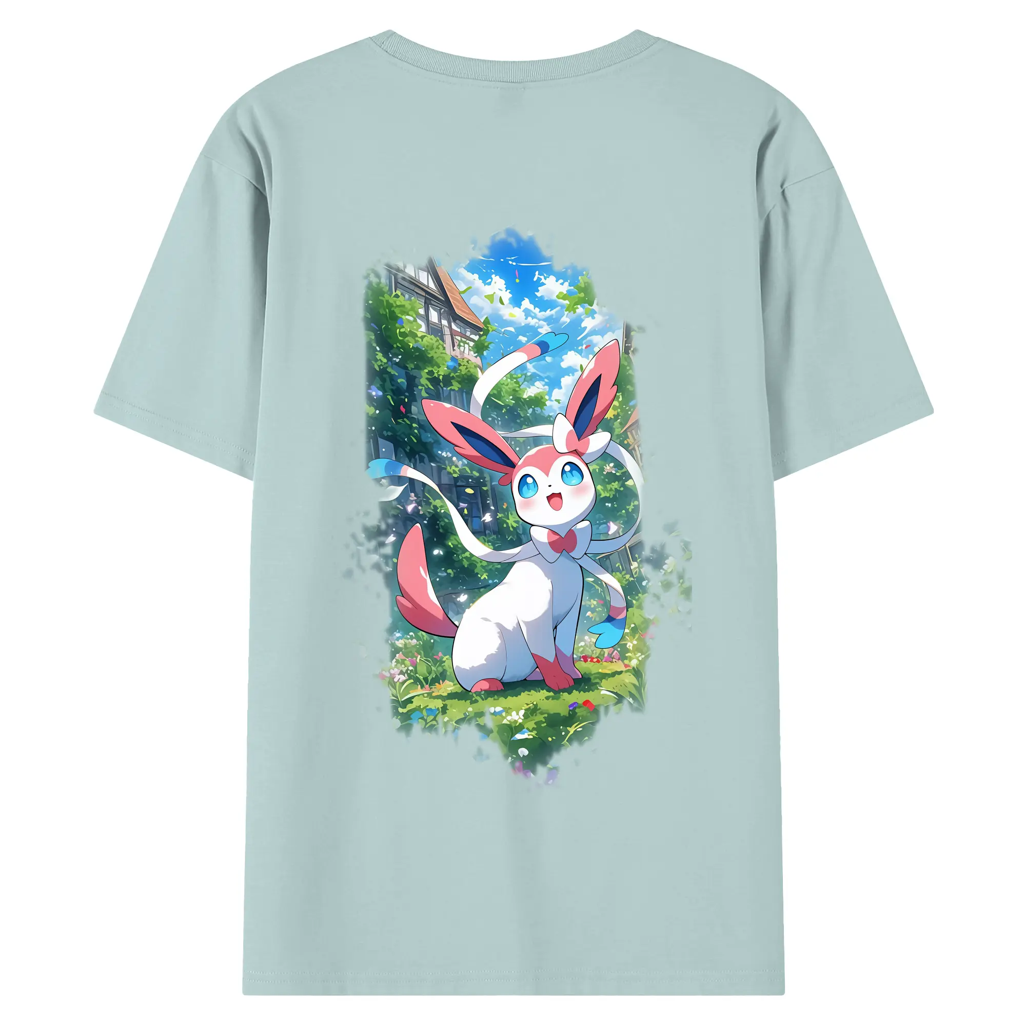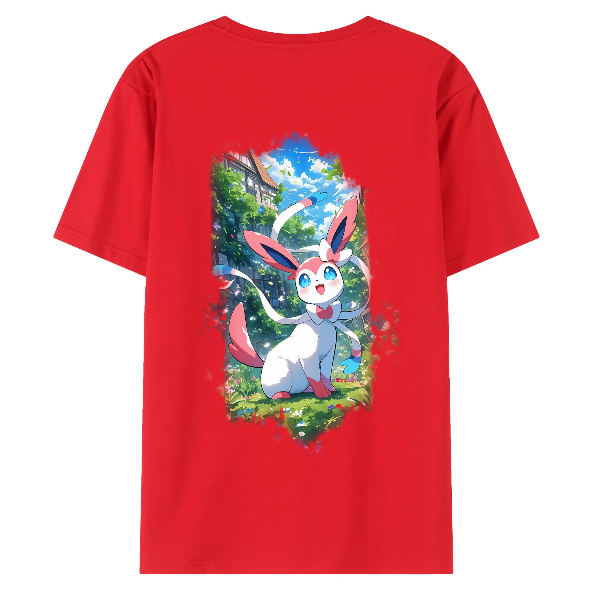 ポケモン グッズ,ニンフィア - 綿100% ヴィンテージ風 半袖Tシャツ ・ 背面プリント ・ 柔らか肌触り ・ 通気性 快適 ・ スポーツ カジュアル 外出用