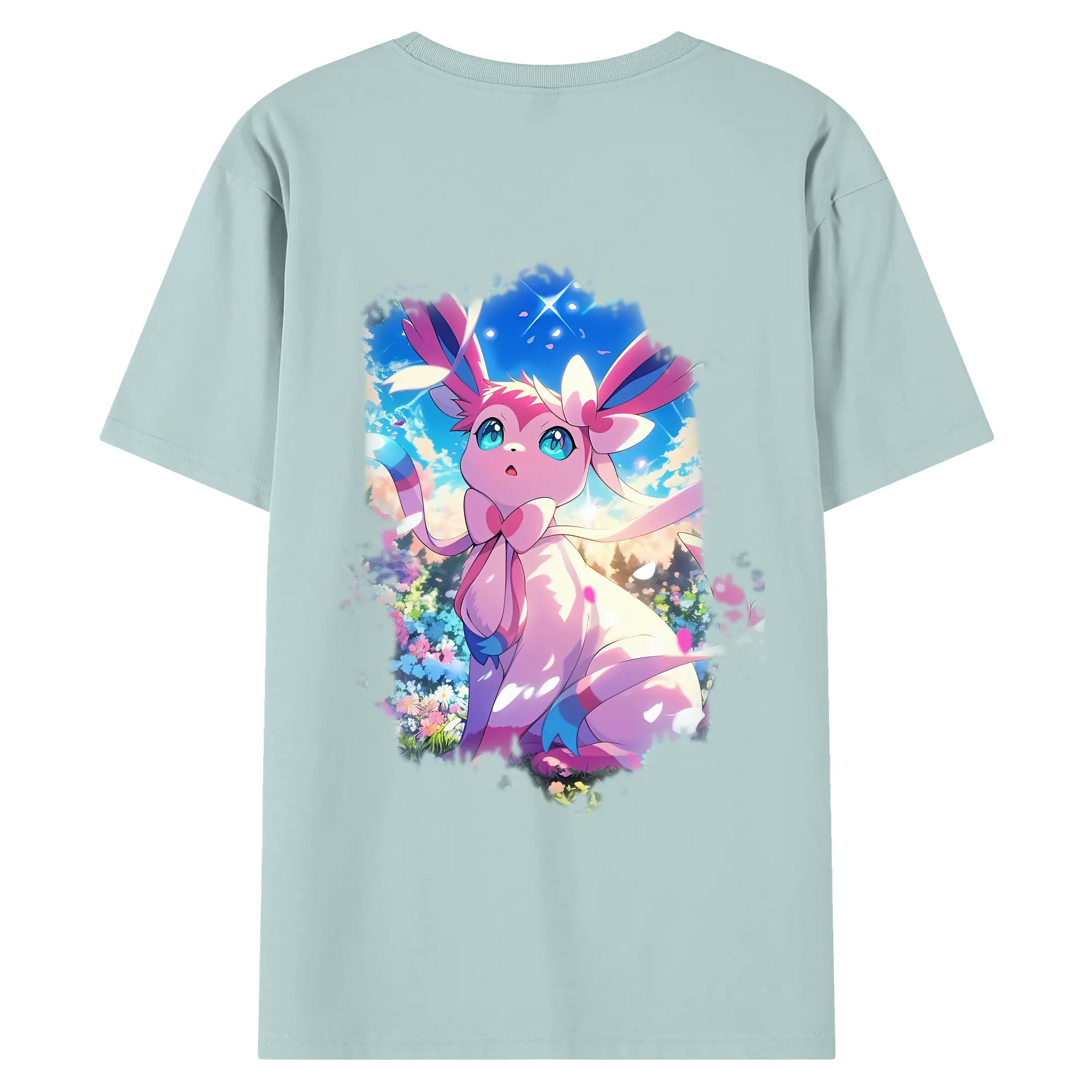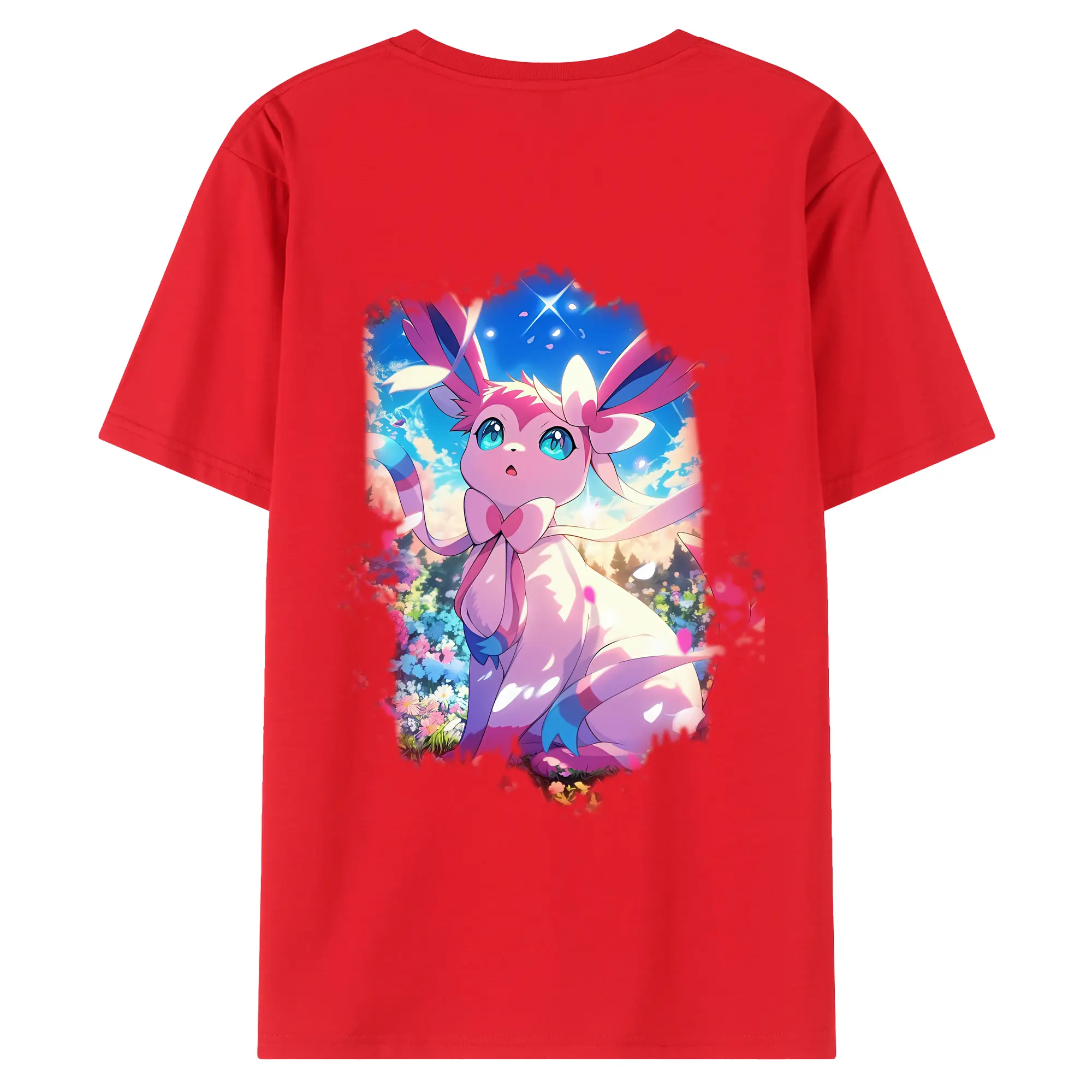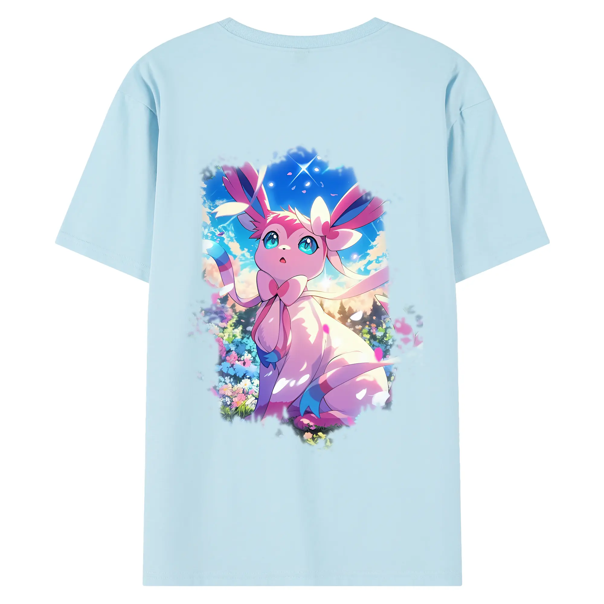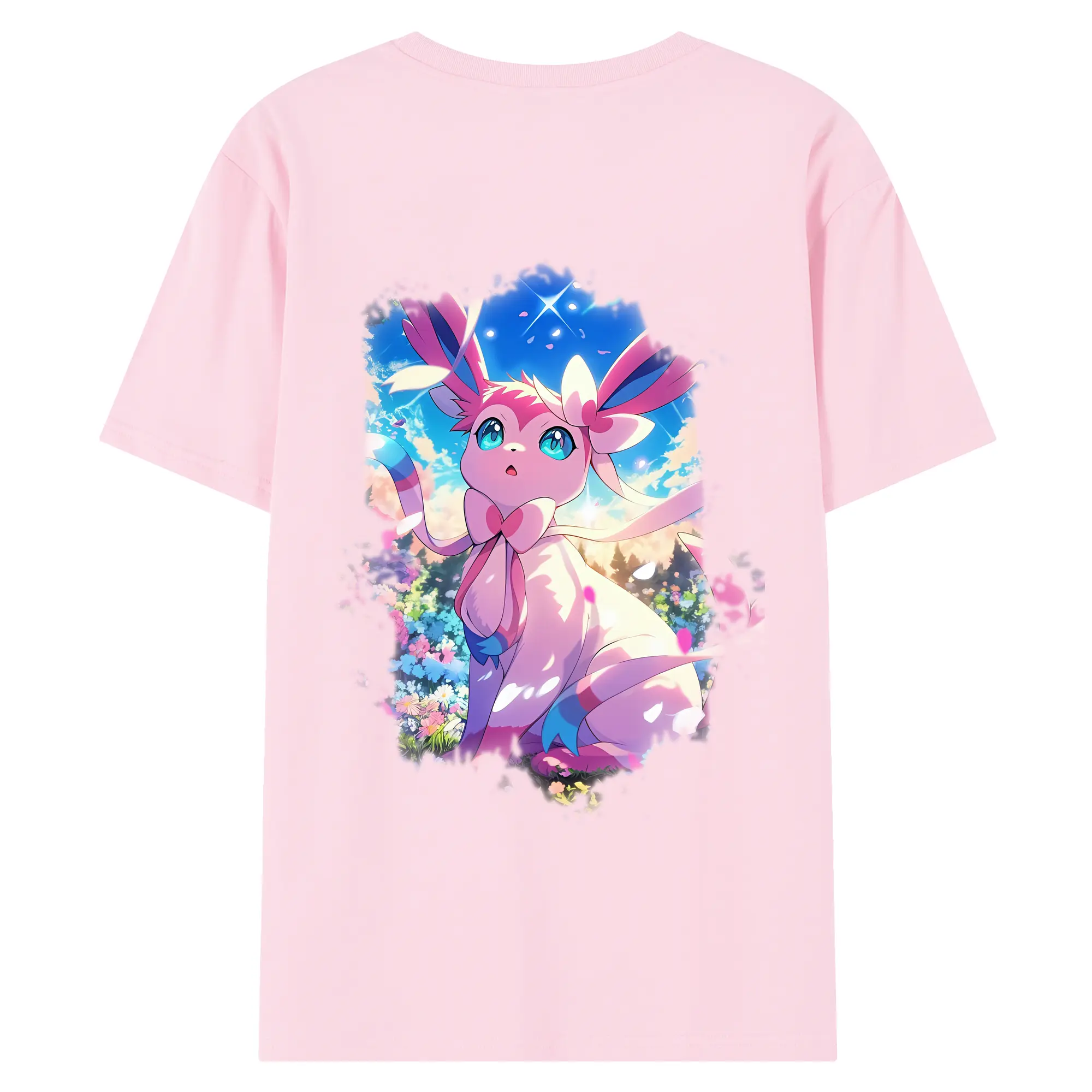 ポケモン グッズ,ニンフィア - 綿100% 半袖Tシャツ ・ フロントプリント ・ 快適 通気性 ・ 日常使い 散歩 スポーツ用