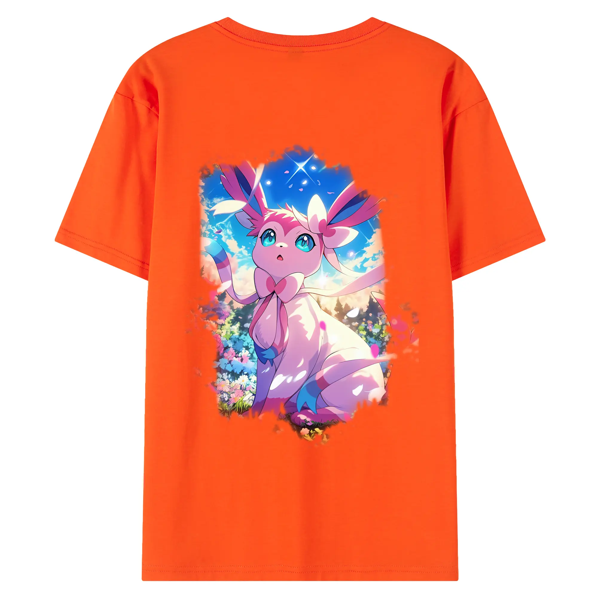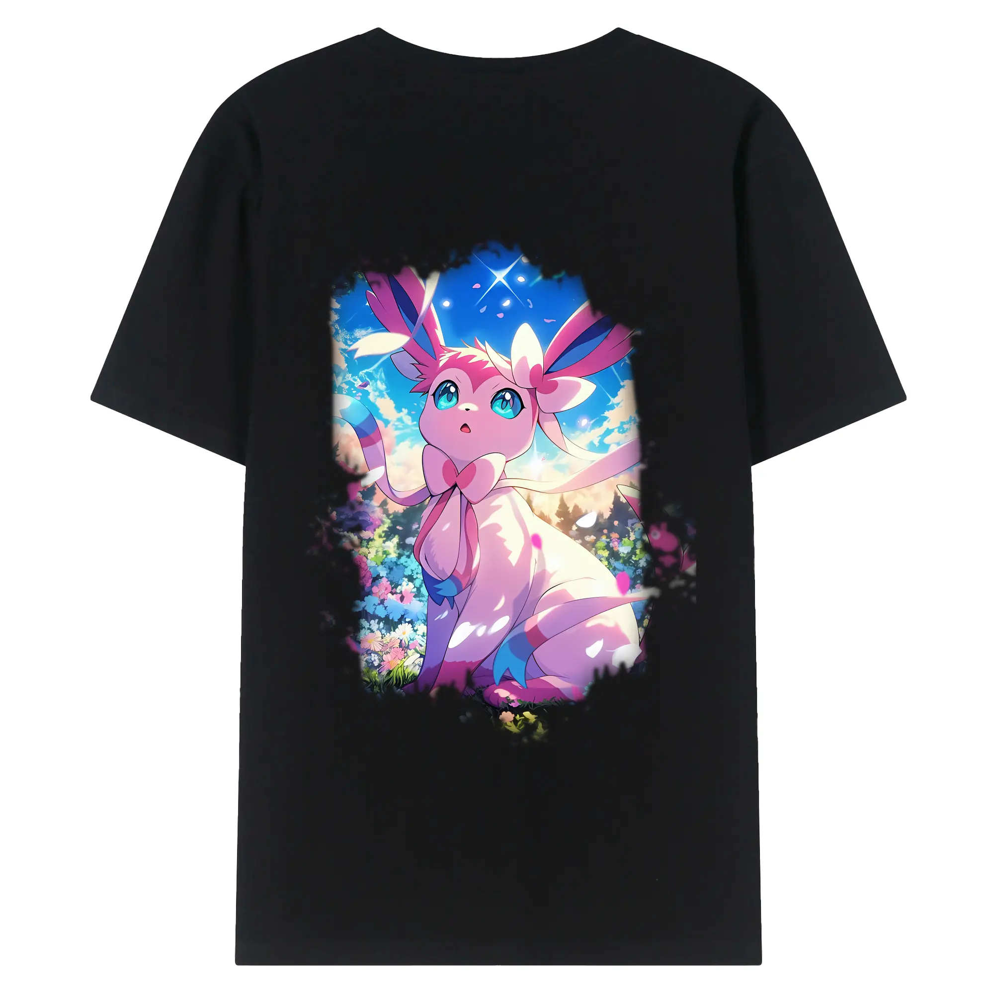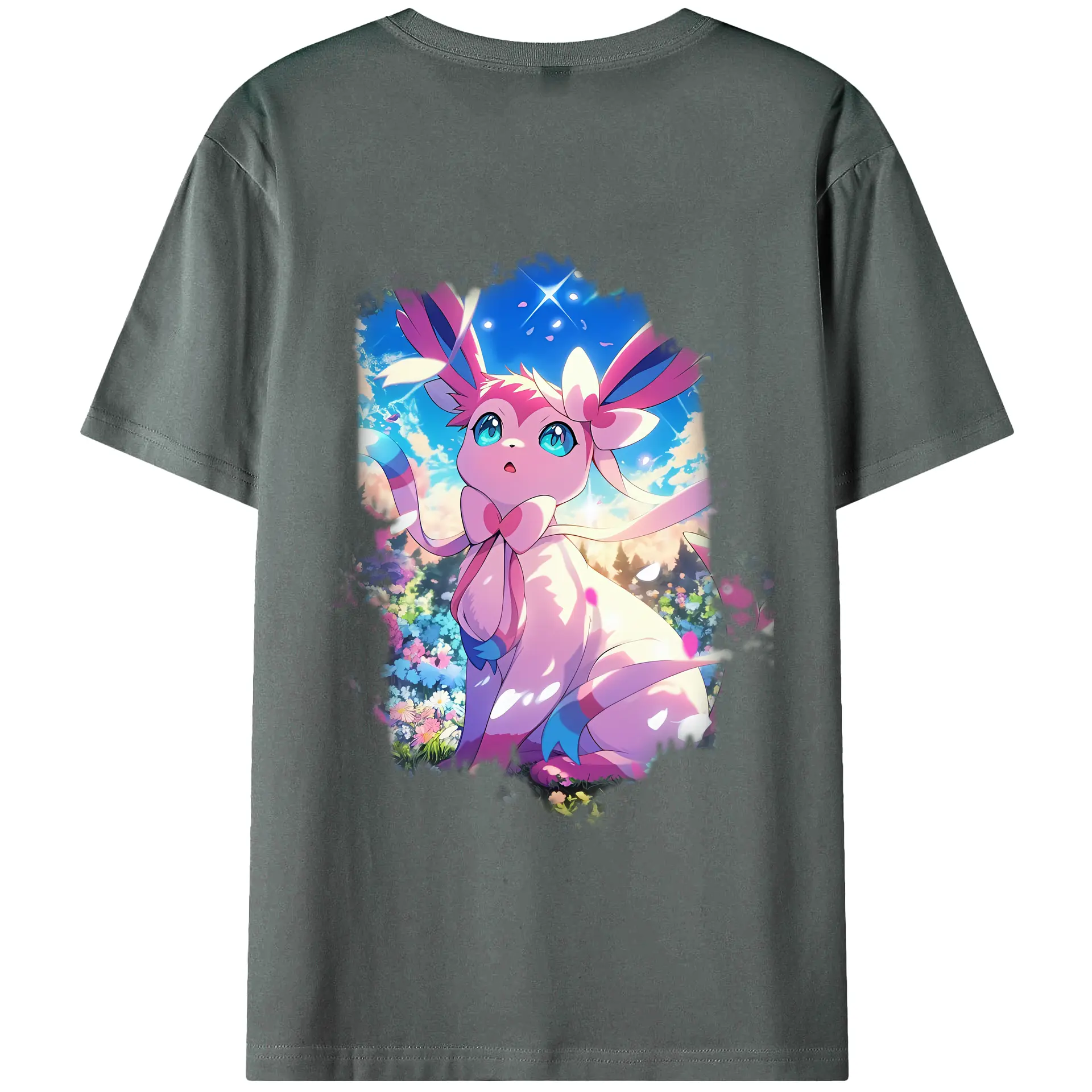 ポケモン グッズ,ニンフィア - 綿100% 半袖Tシャツ ・ フロントプリント ・ 快適 通気性 ・ 日常使い 散歩 スポーツ用
