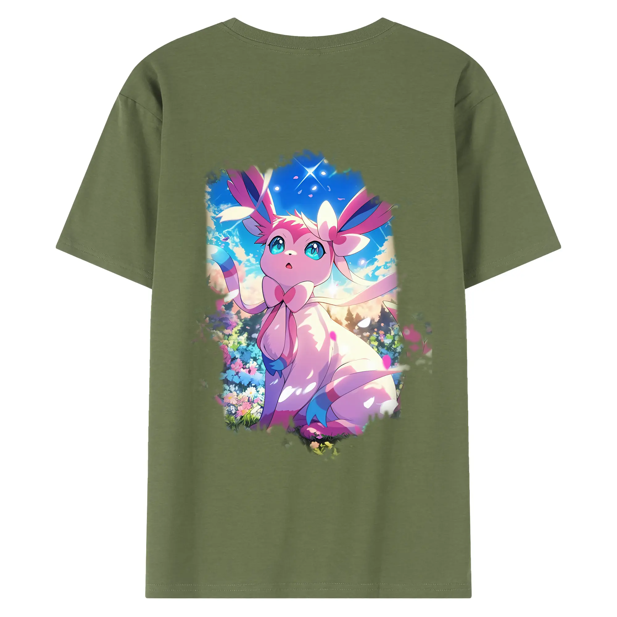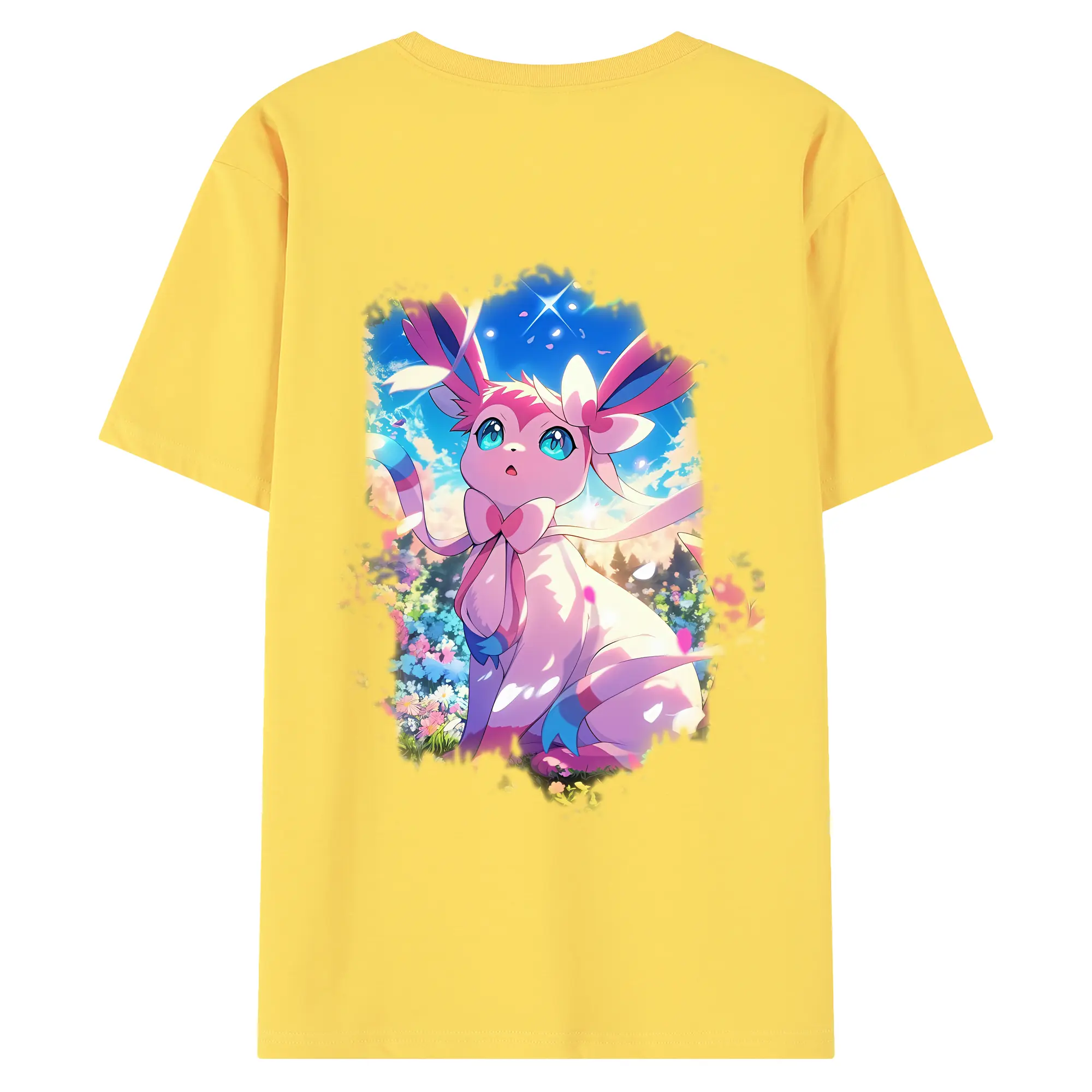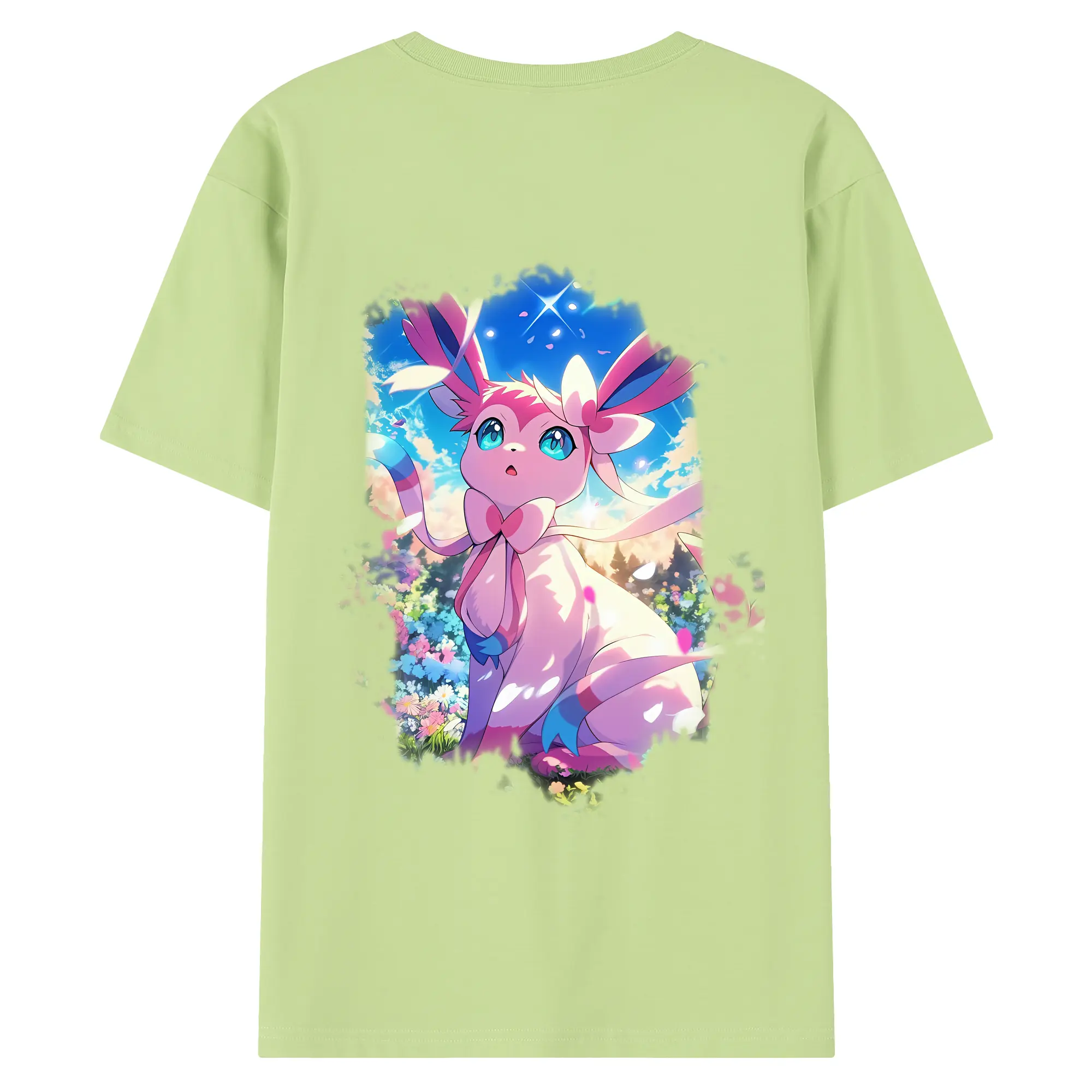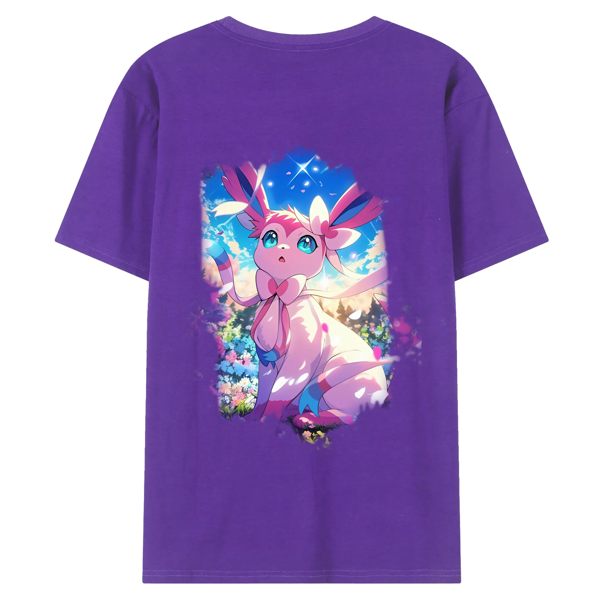 ポケモン グッズ,ニンフィア - 綿100% 半袖Tシャツ ・ フロントプリント ・ 快適 通気性 ・ 日常使い 散歩 スポーツ用