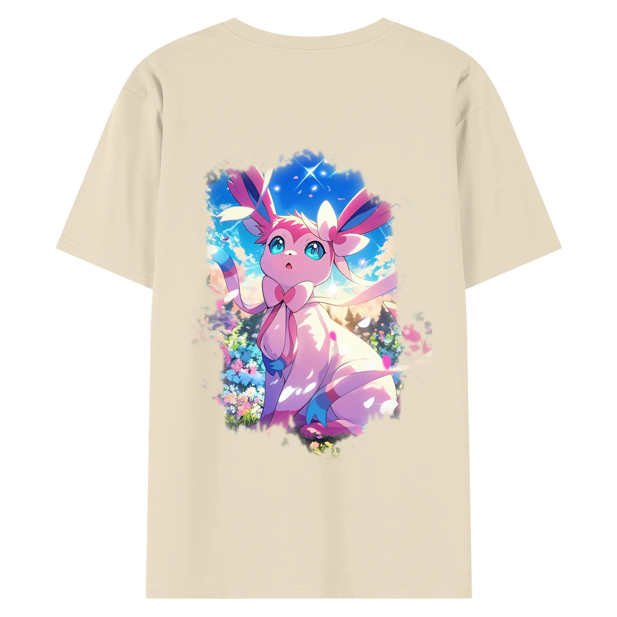 ポケモン グッズ,ニンフィア - 綿100% ヴィンテージ風 半袖Tシャツ ・ 背面プリント ・ 柔らか肌触り ・ 通気性 快適 ・ スポーツ カジュアル 外出用