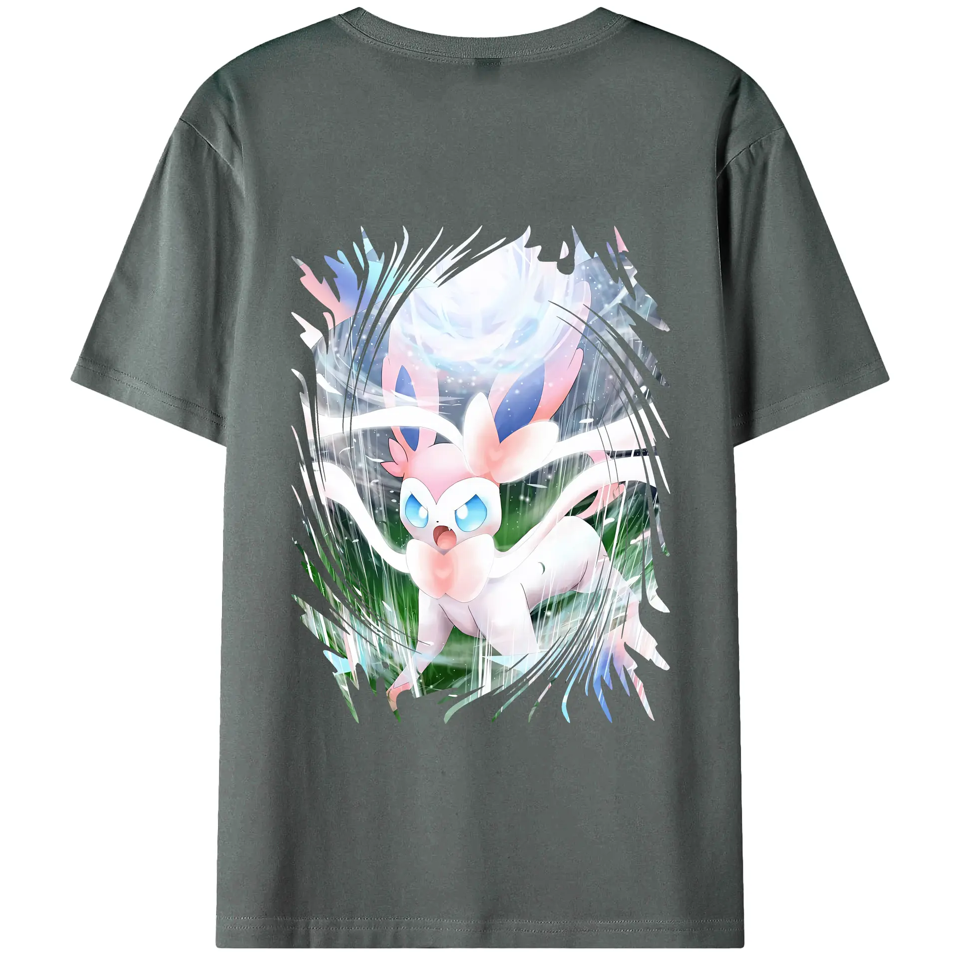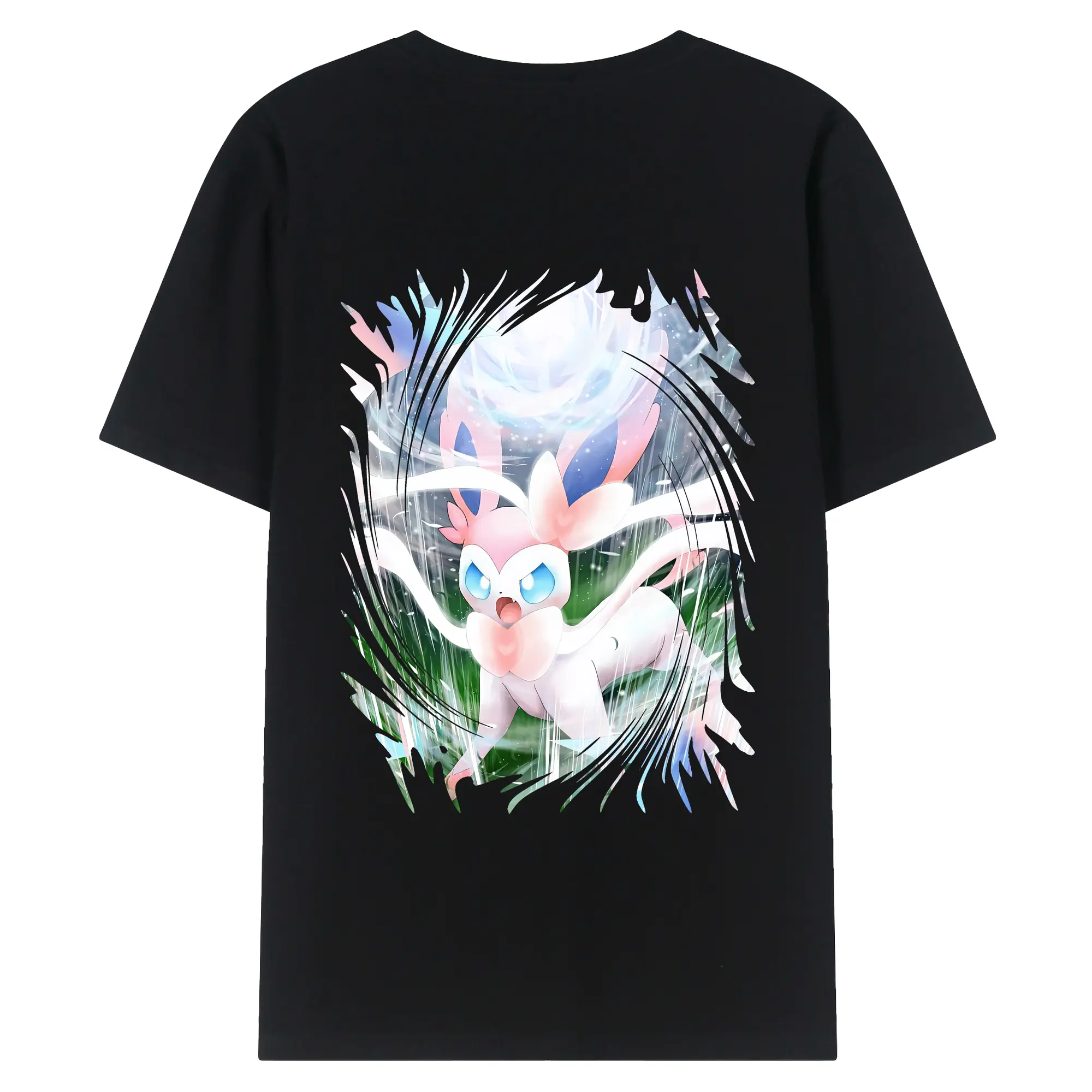 ポケモン グッズ,ニンフィア - 綿100% ヴィンテージ風 半袖Tシャツ ・ 背面プリント ・ 柔らか肌触り ・ 通気性 快適 ・ スポーツ カジュアル 外出用