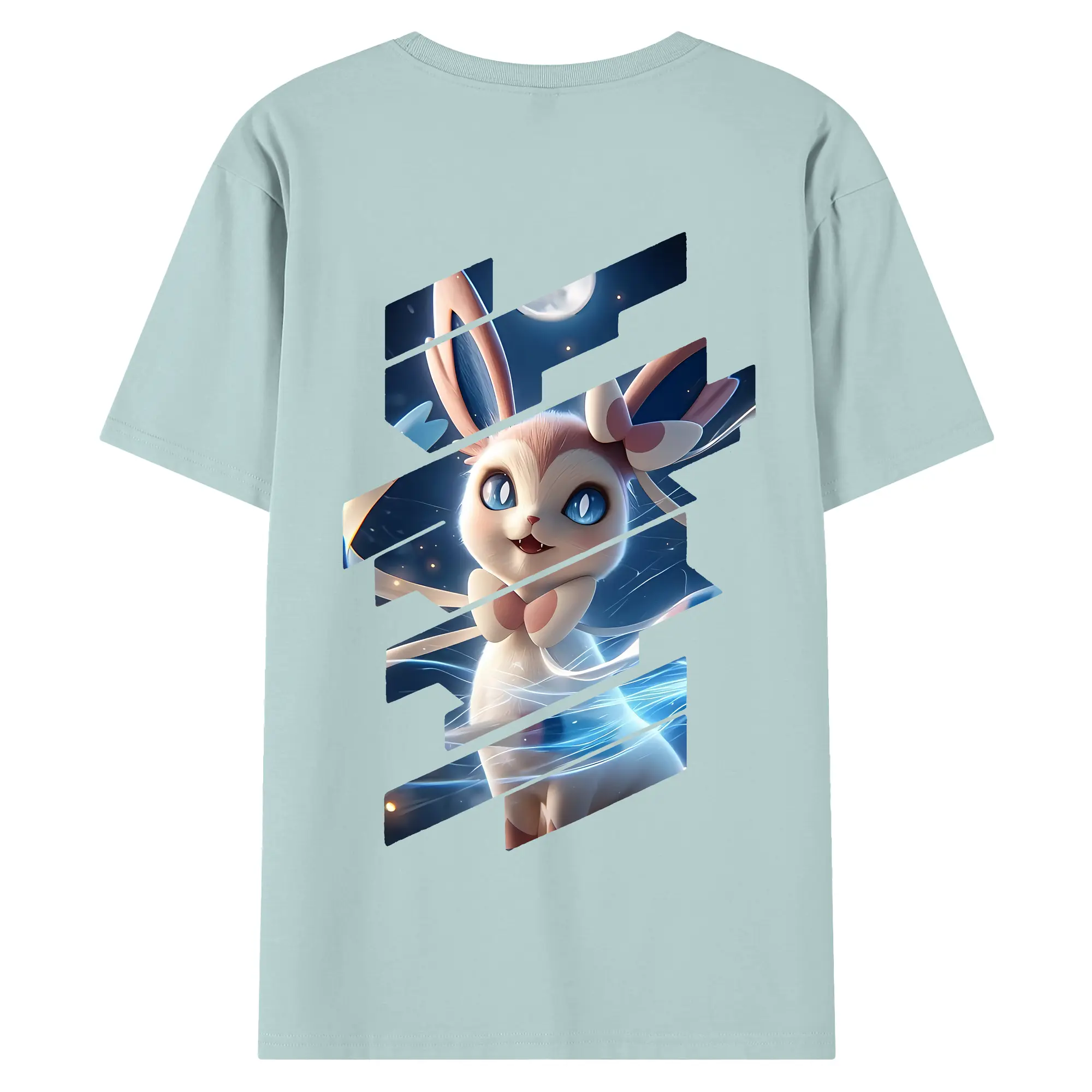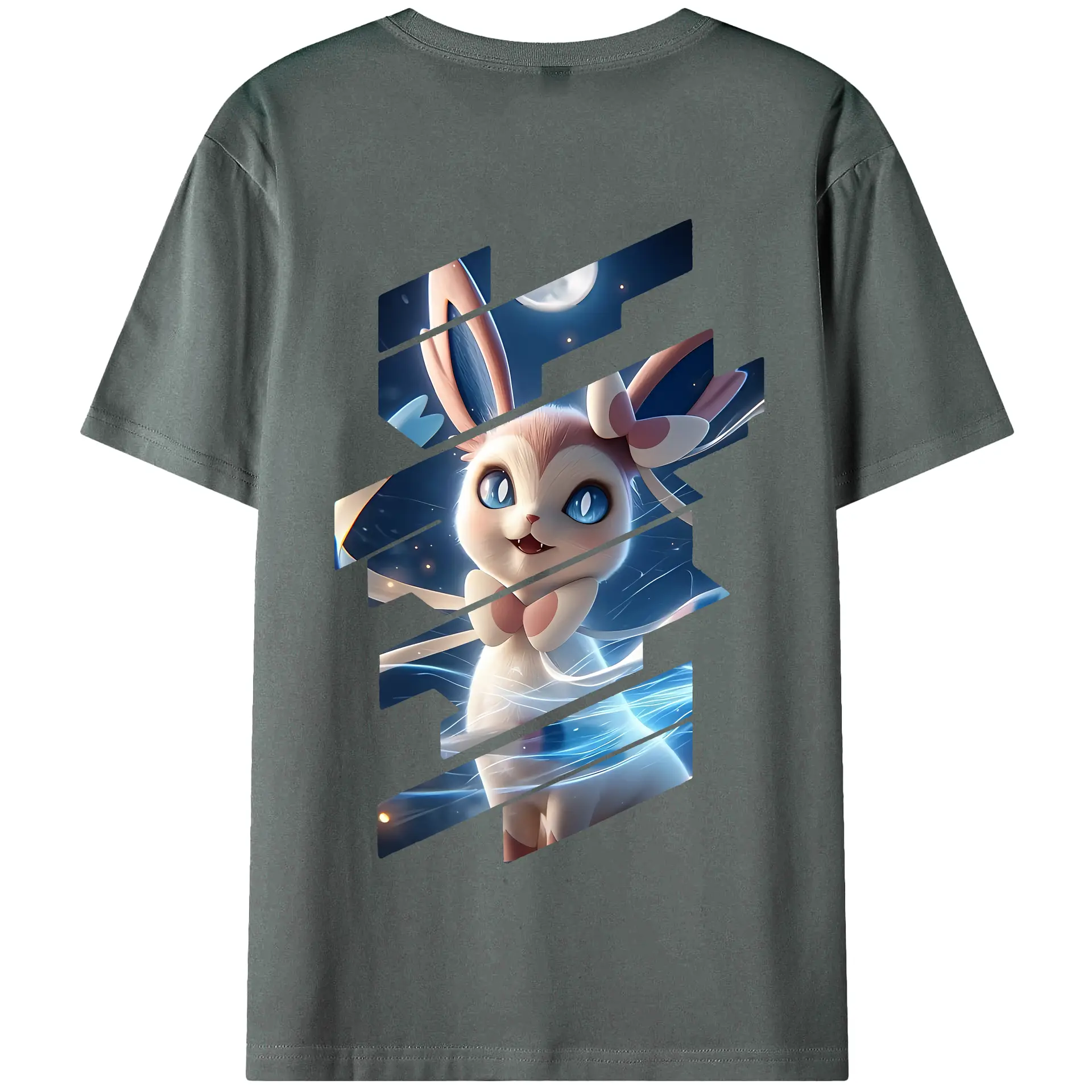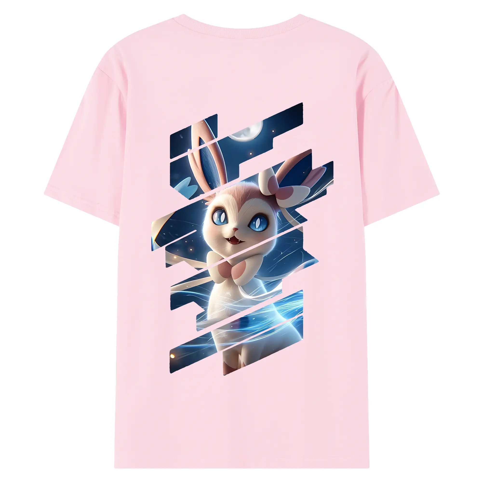 ポケモン グッズ,ニンフィア - 綿100% 半袖Tシャツ ・ フロントプリント ・ 快適 通気性 ・ 日常使い 散歩 スポーツ用