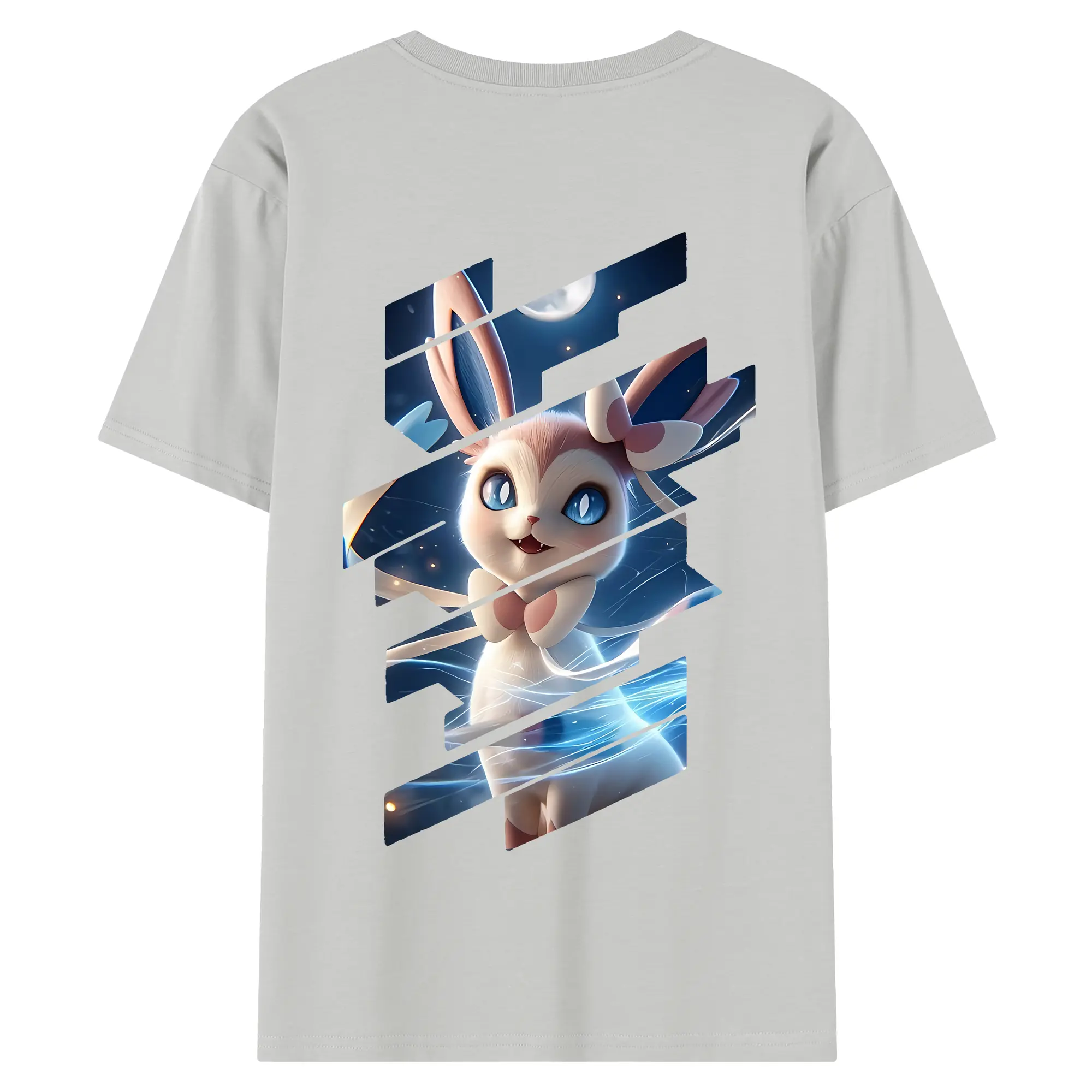 ポケモン グッズ,ニンフィア - 綿100% ヴィンテージ風 半袖Tシャツ ・ 背面プリント ・ 柔らか肌触り ・ 通気性 快適 ・ スポーツ カジュアル 外出用