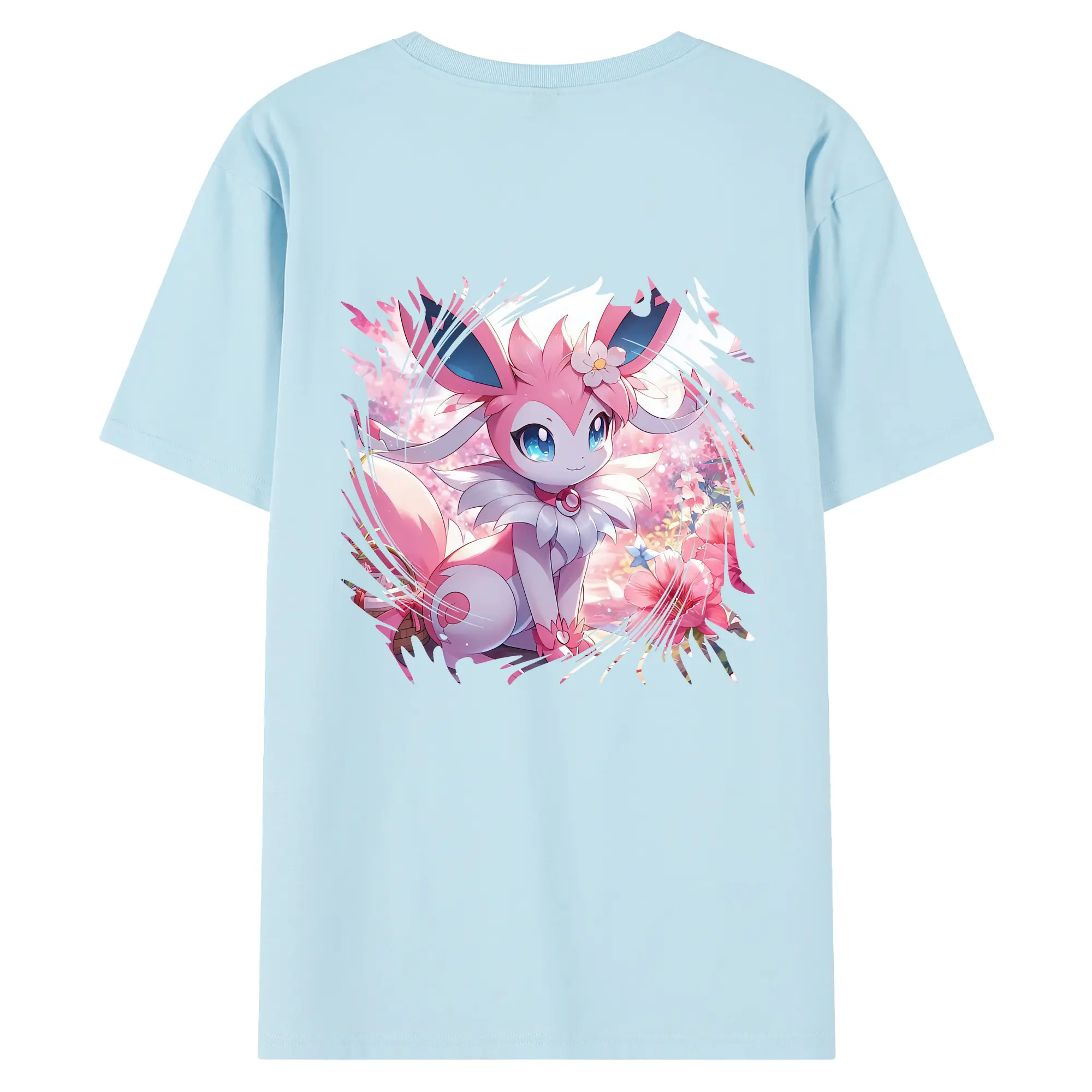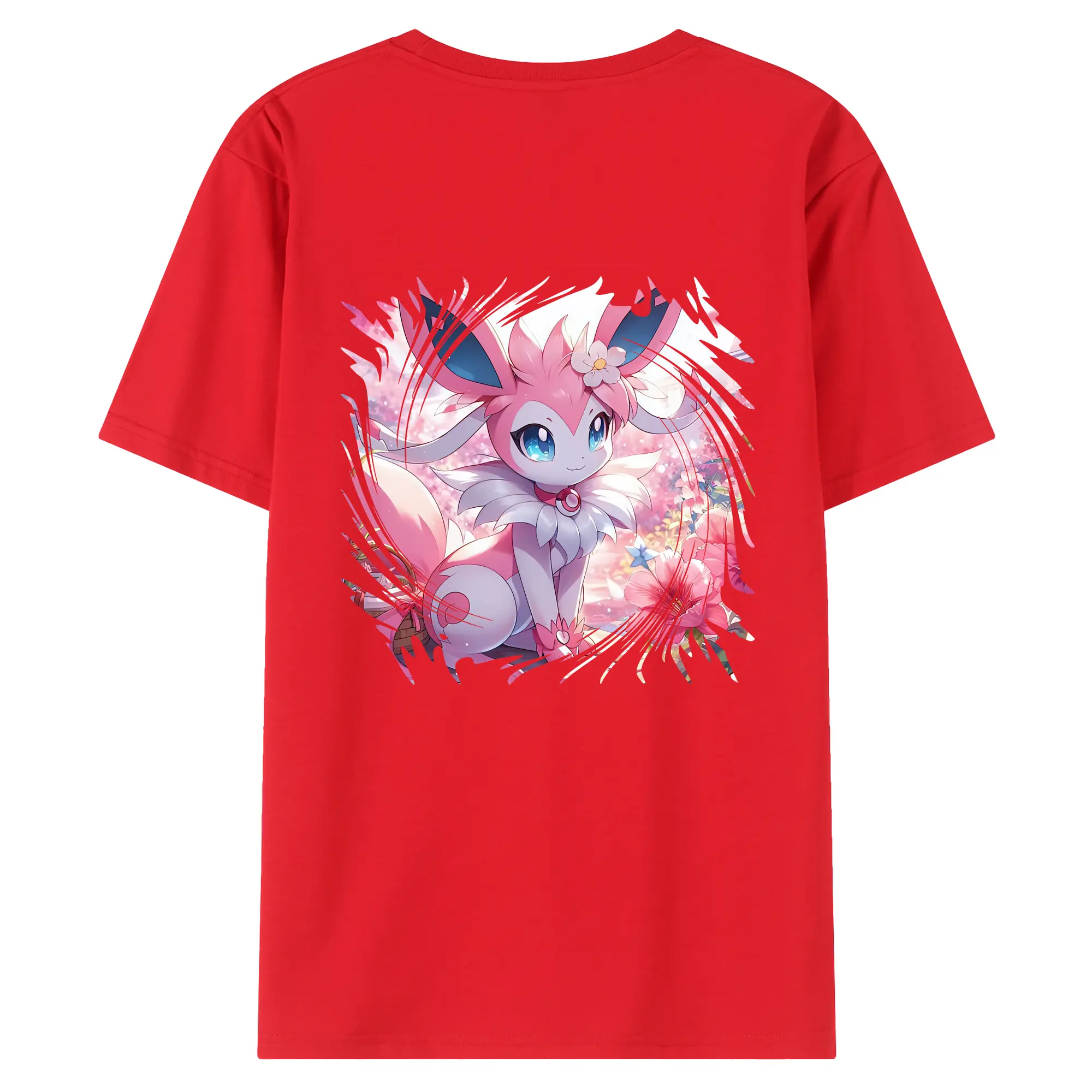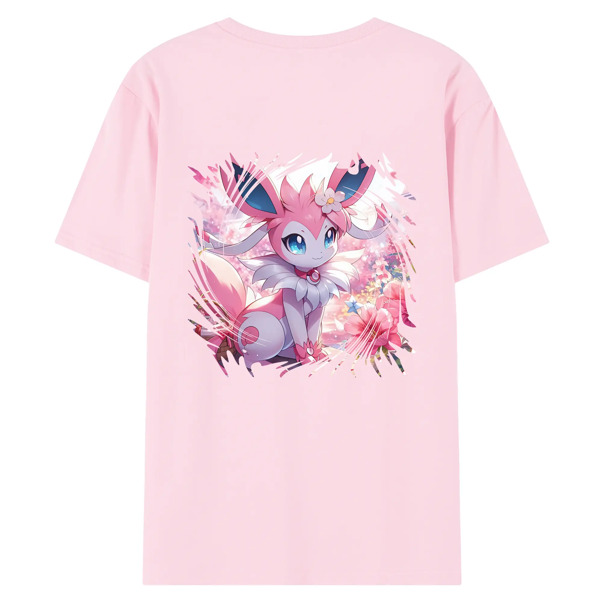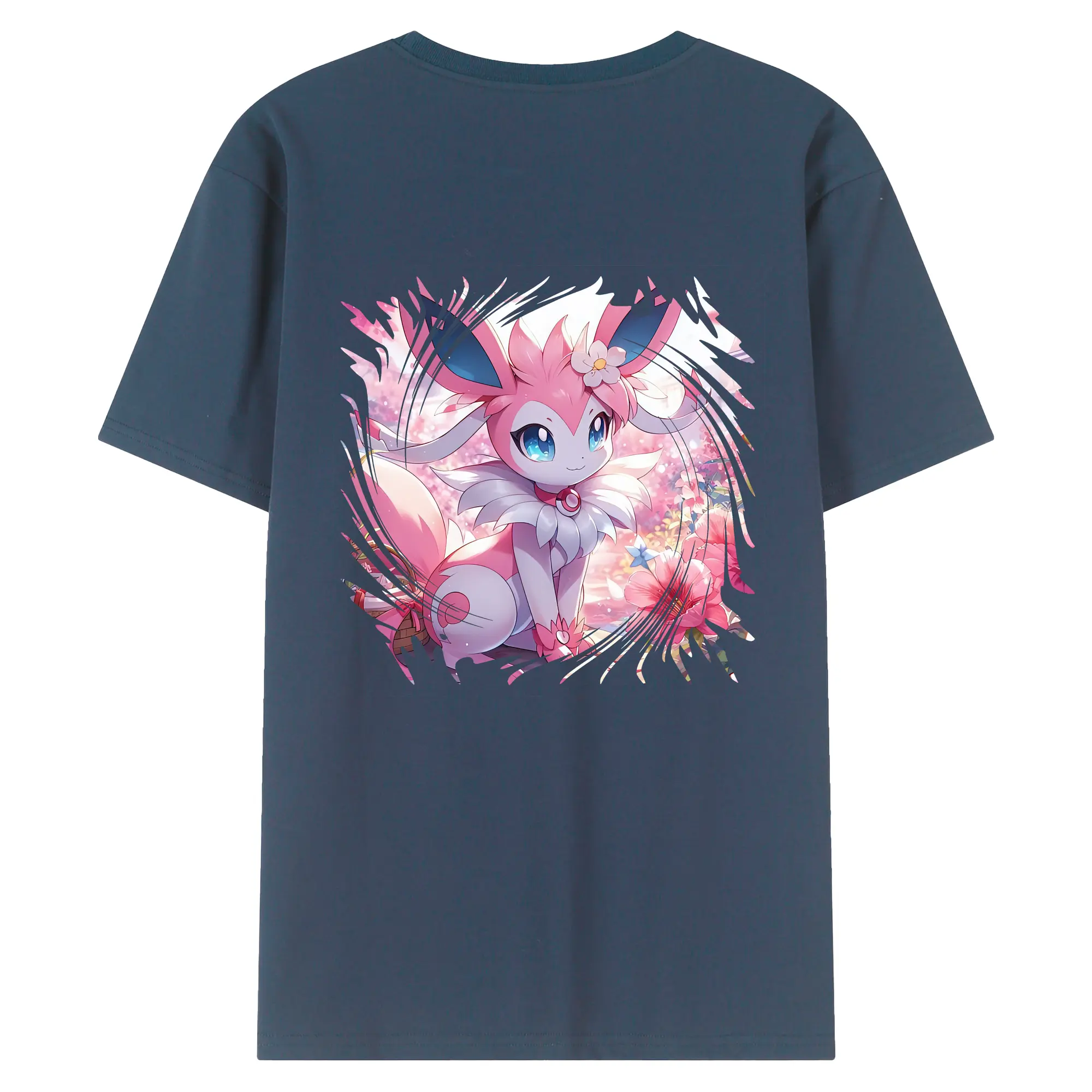ポケモン グッズ,ニンフィア - 綿100% 半袖Tシャツ ・ フロントプリント ・ 快適 通気性 ・ 日常使い 散歩 スポーツ用