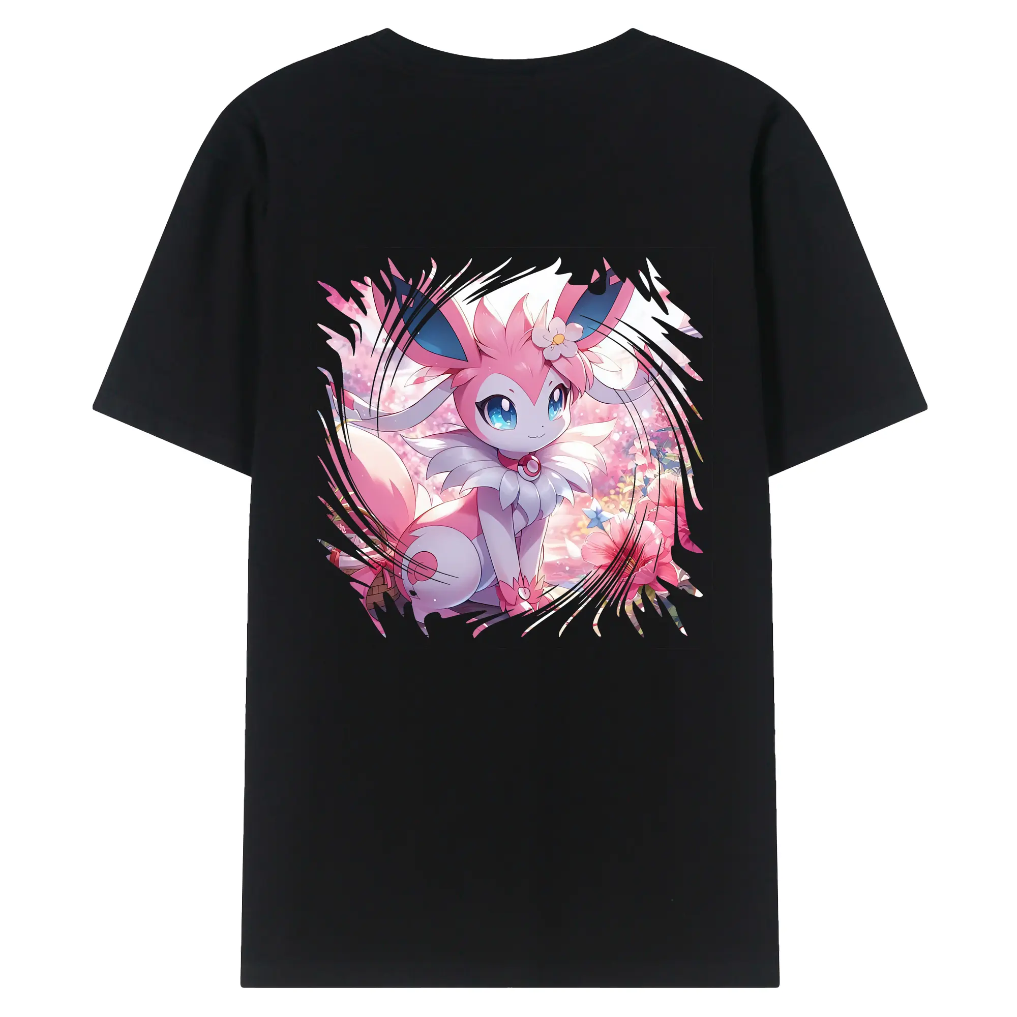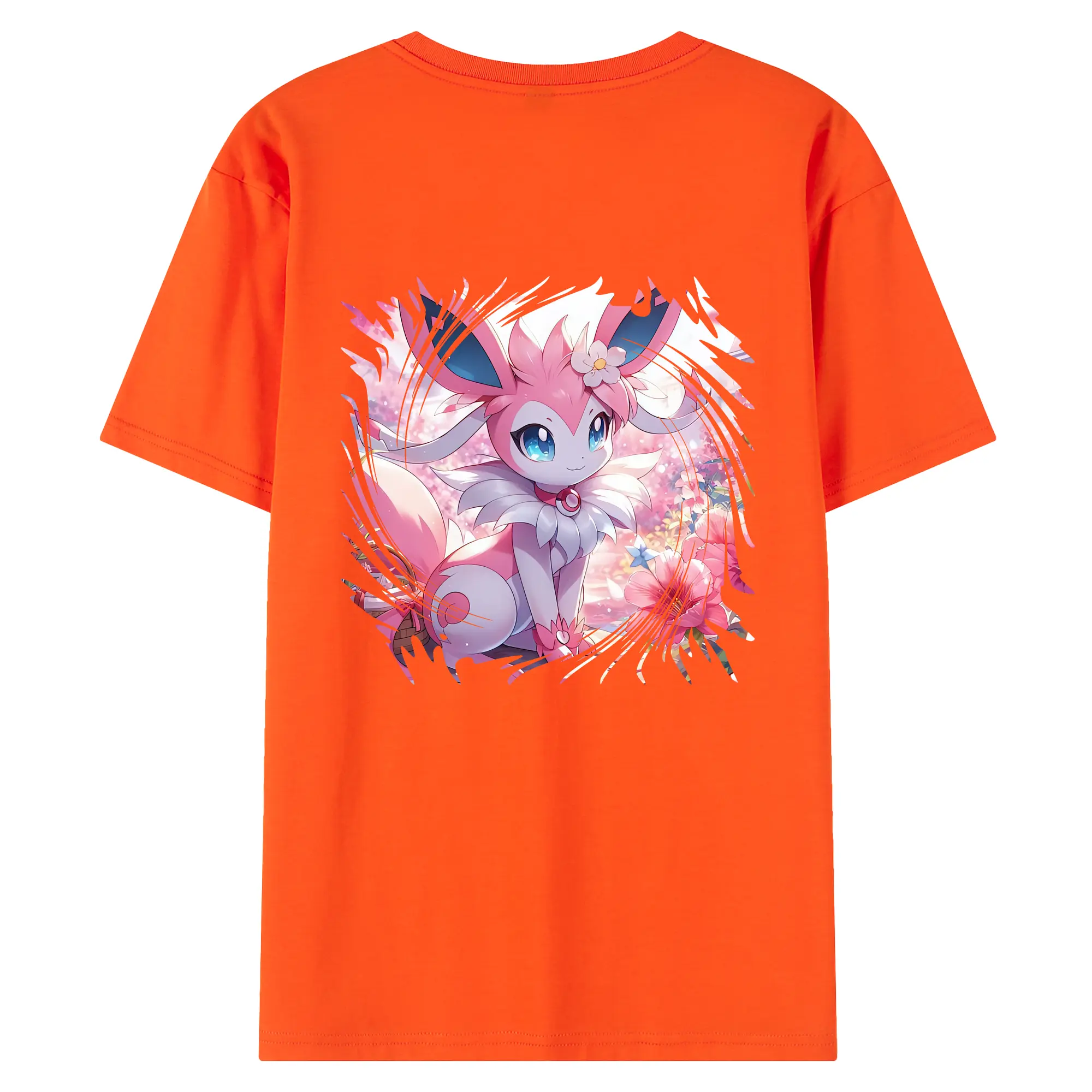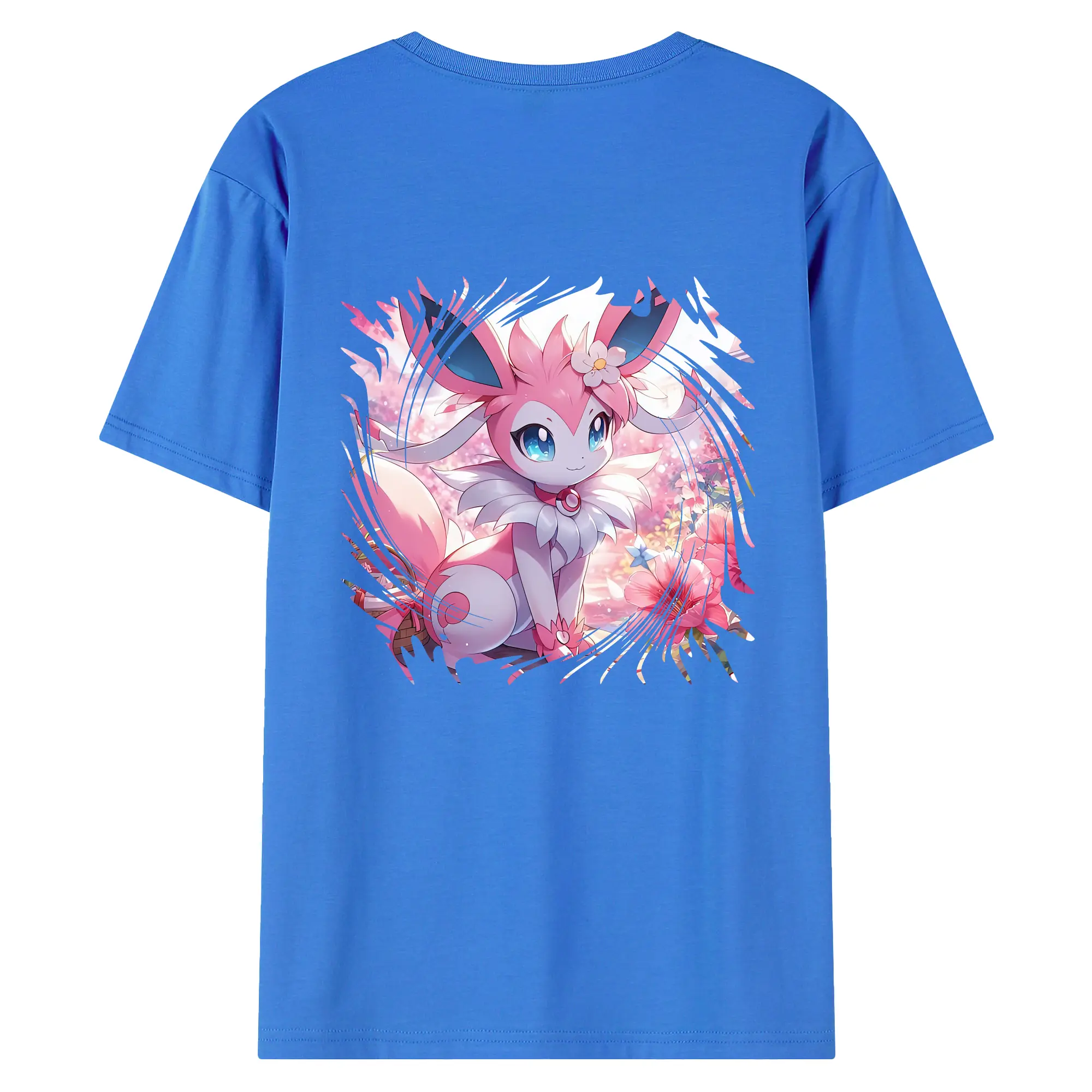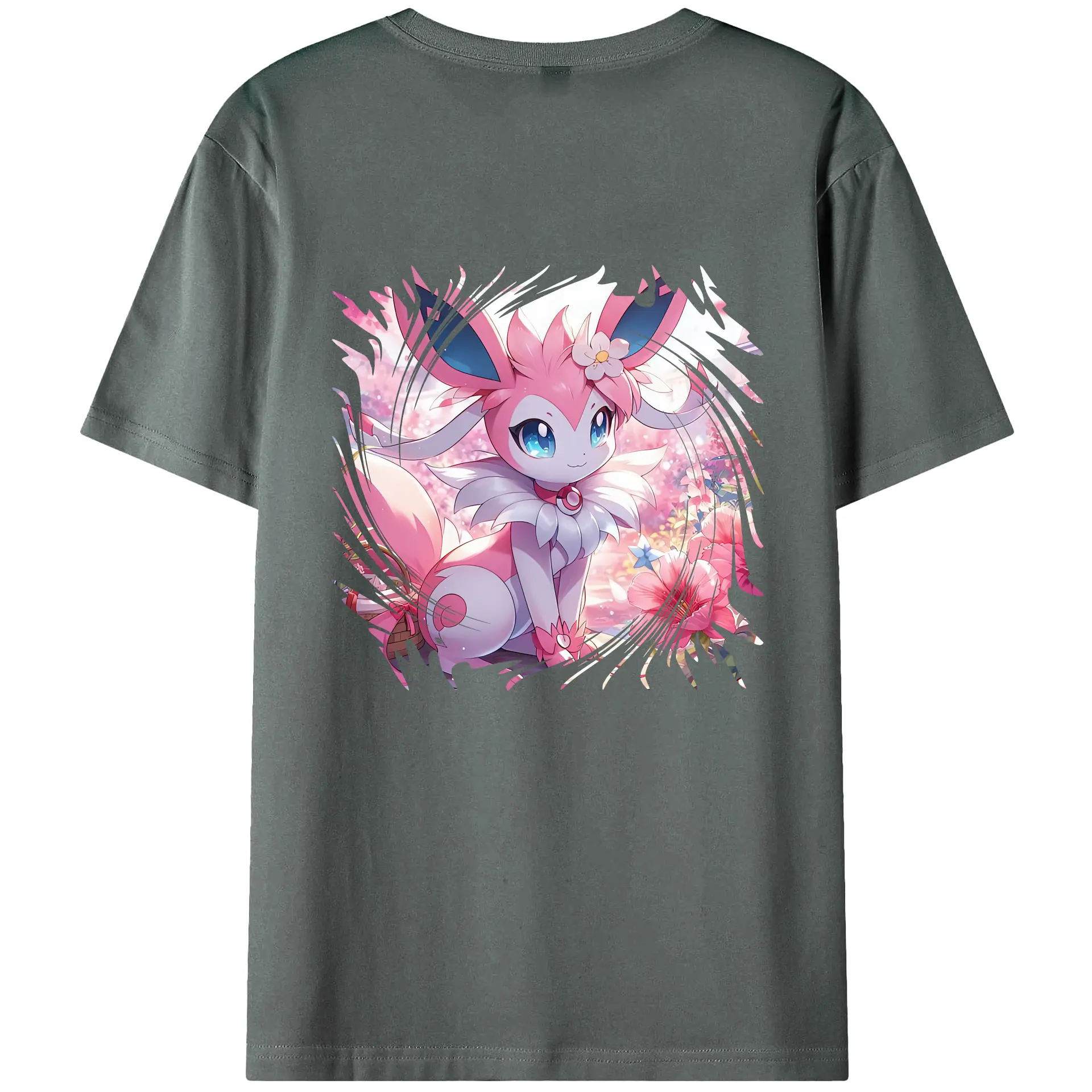ポケモン グッズ,ニンフィア - 綿100% 半袖Tシャツ ・ フロントプリント ・ 快適 通気性 ・ 日常使い 散歩 スポーツ用