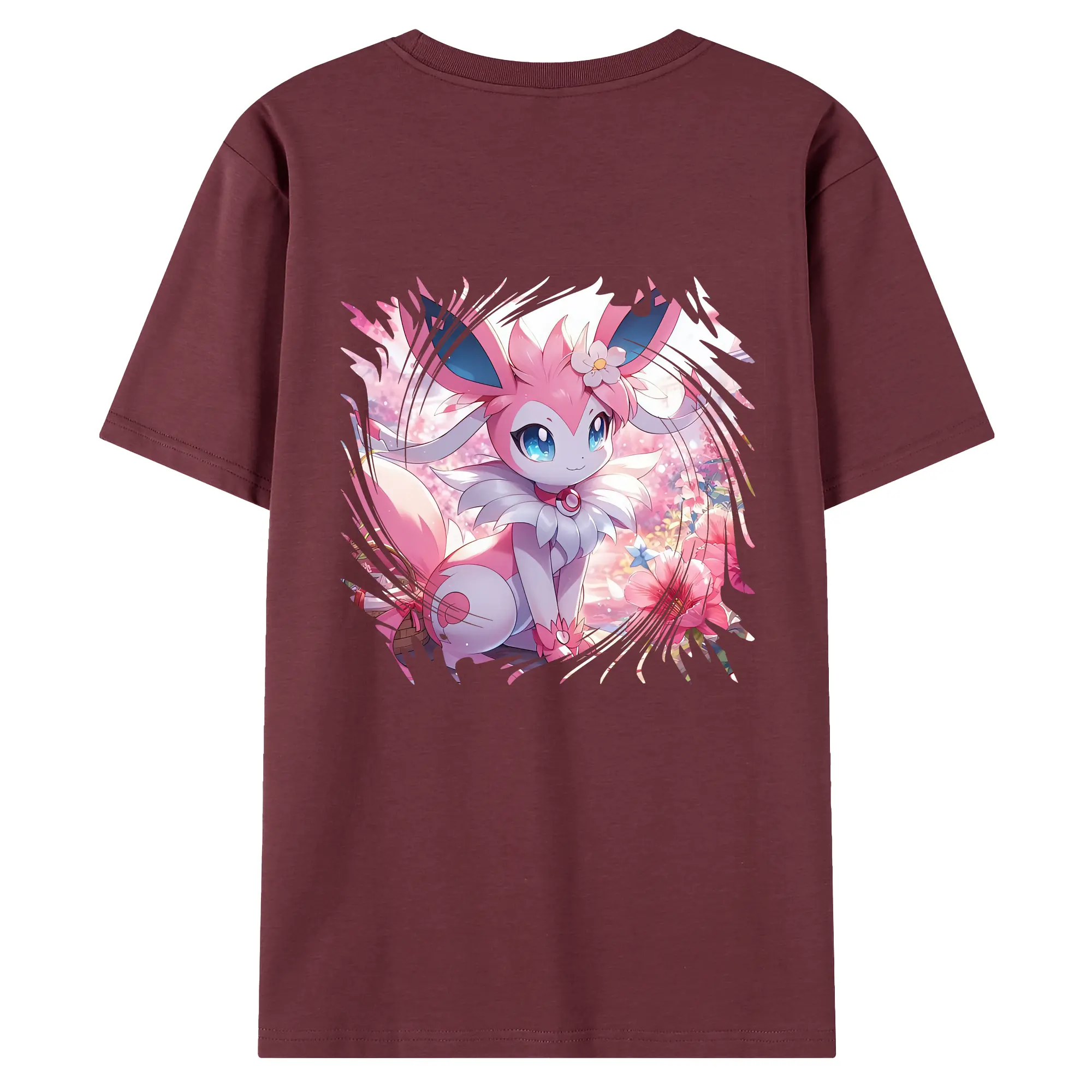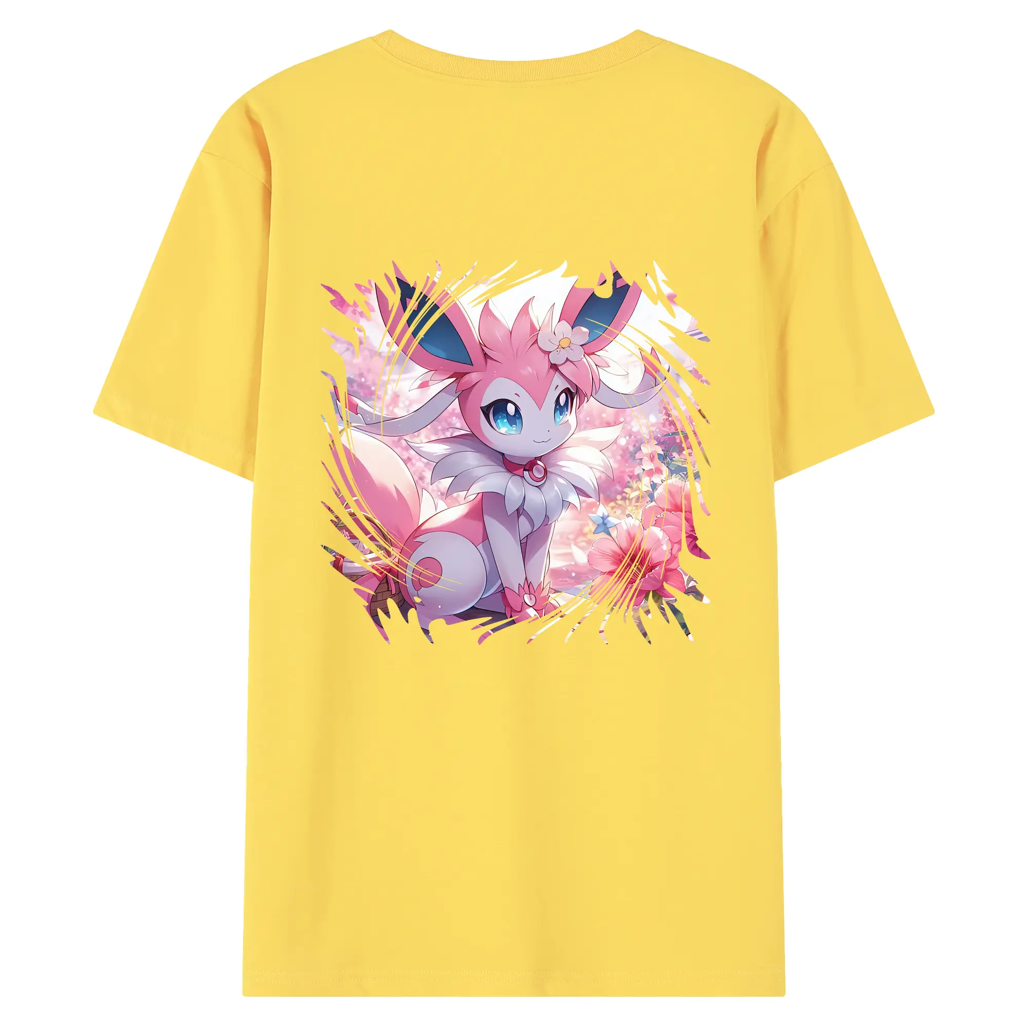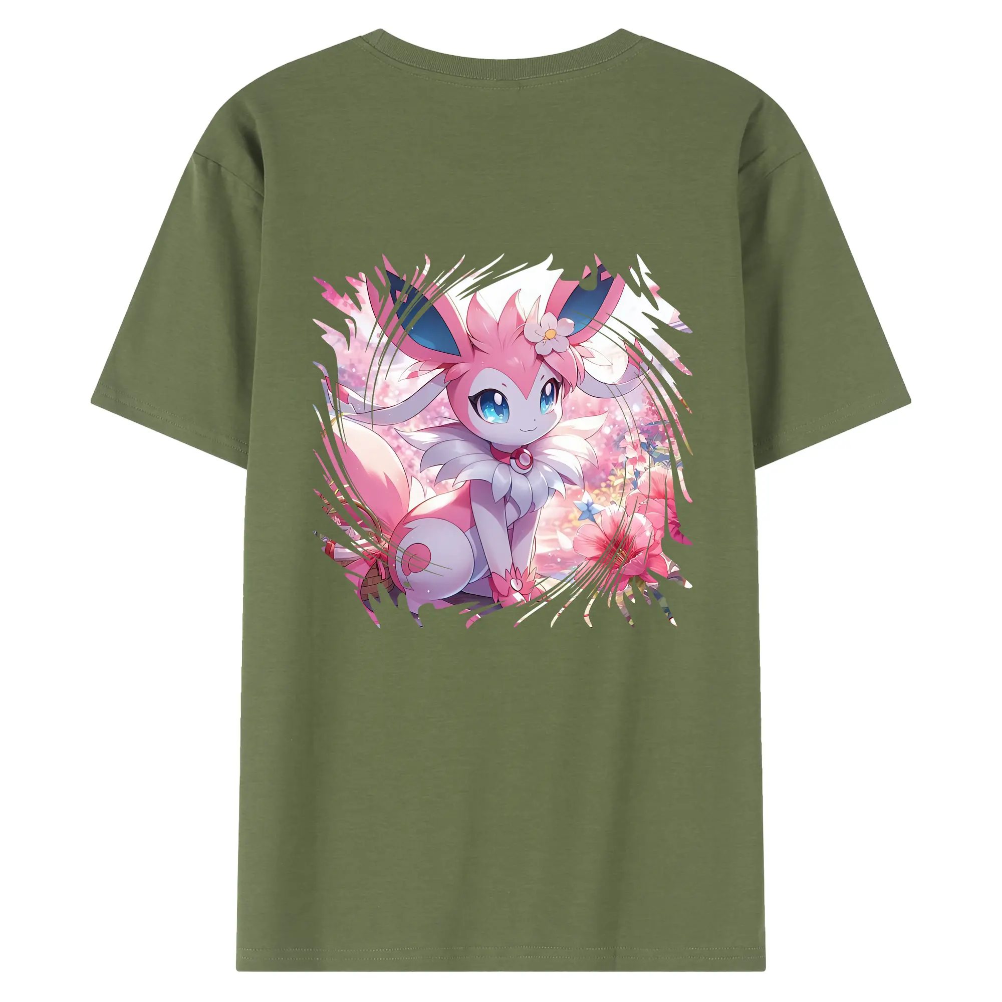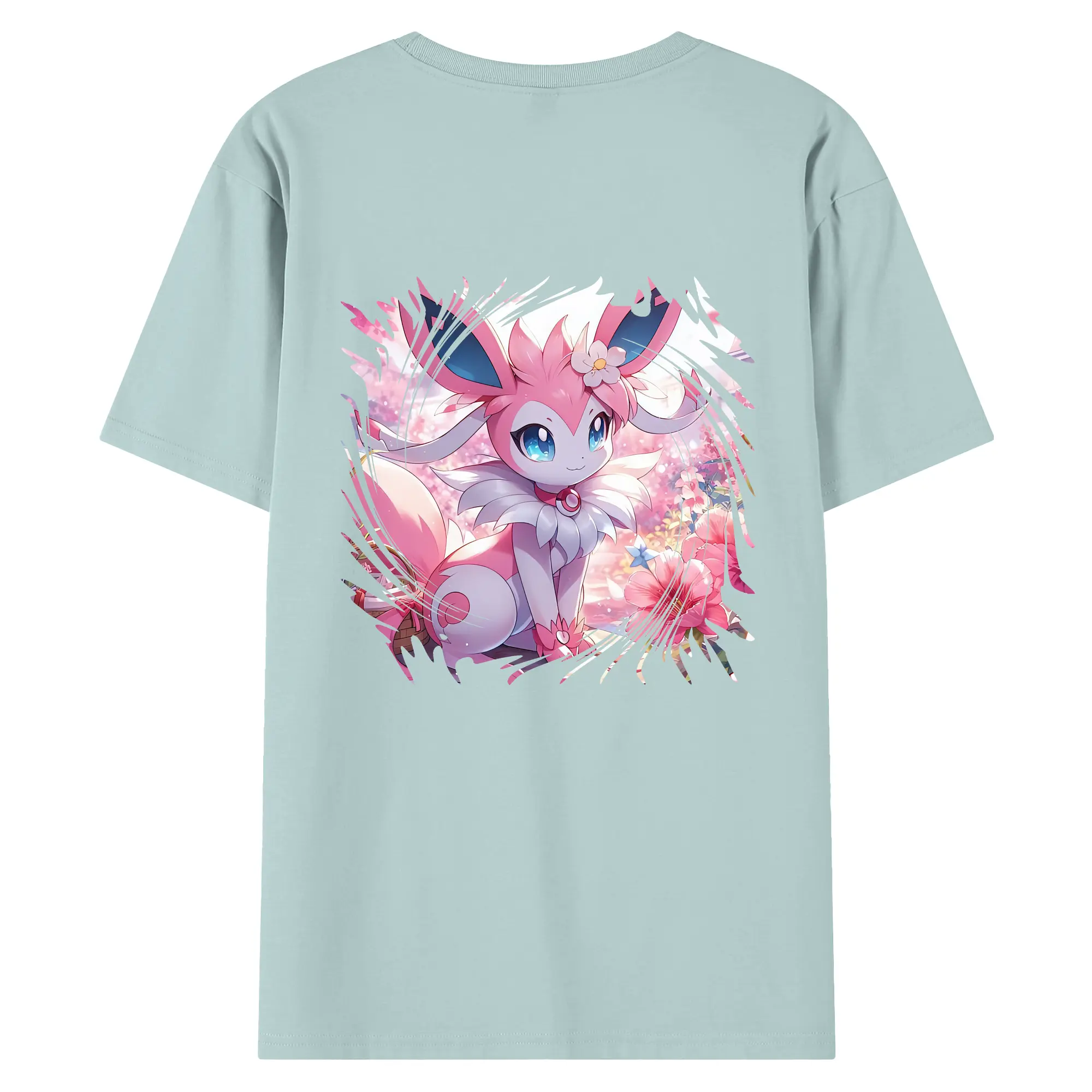 ポケモン グッズ,ニンフィア - 綿100% 半袖Tシャツ ・ フロントプリント ・ 快適 通気性 ・ 日常使い 散歩 スポーツ用