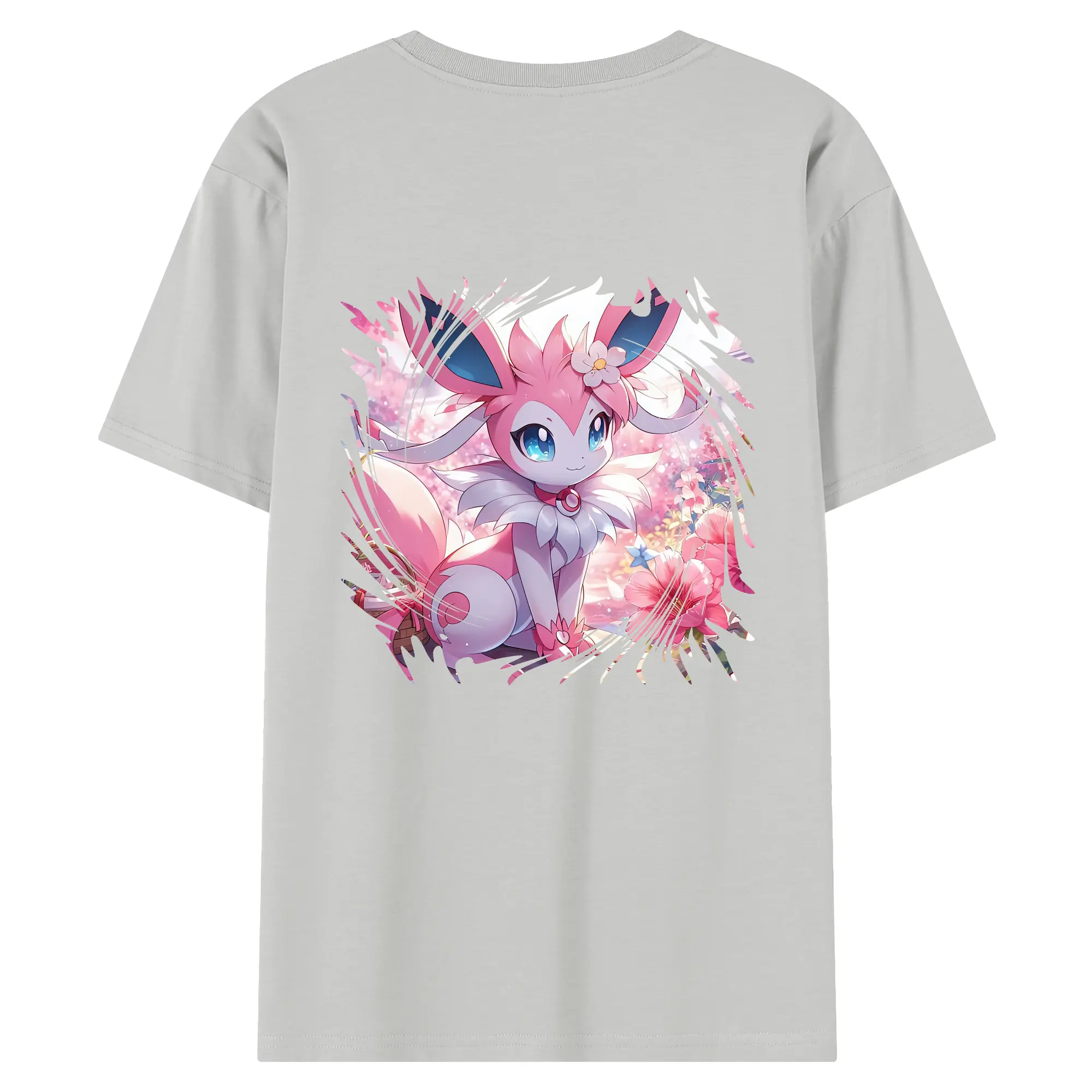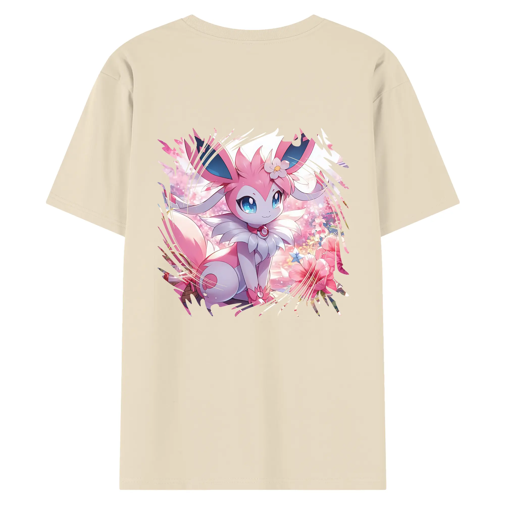ポケモン グッズ,ニンフィア - 綿100% ヴィンテージ風 半袖Tシャツ ・ 背面プリント ・ 柔らか肌触り ・ 通気性 快適 ・ スポーツ カジュアル 外出用
