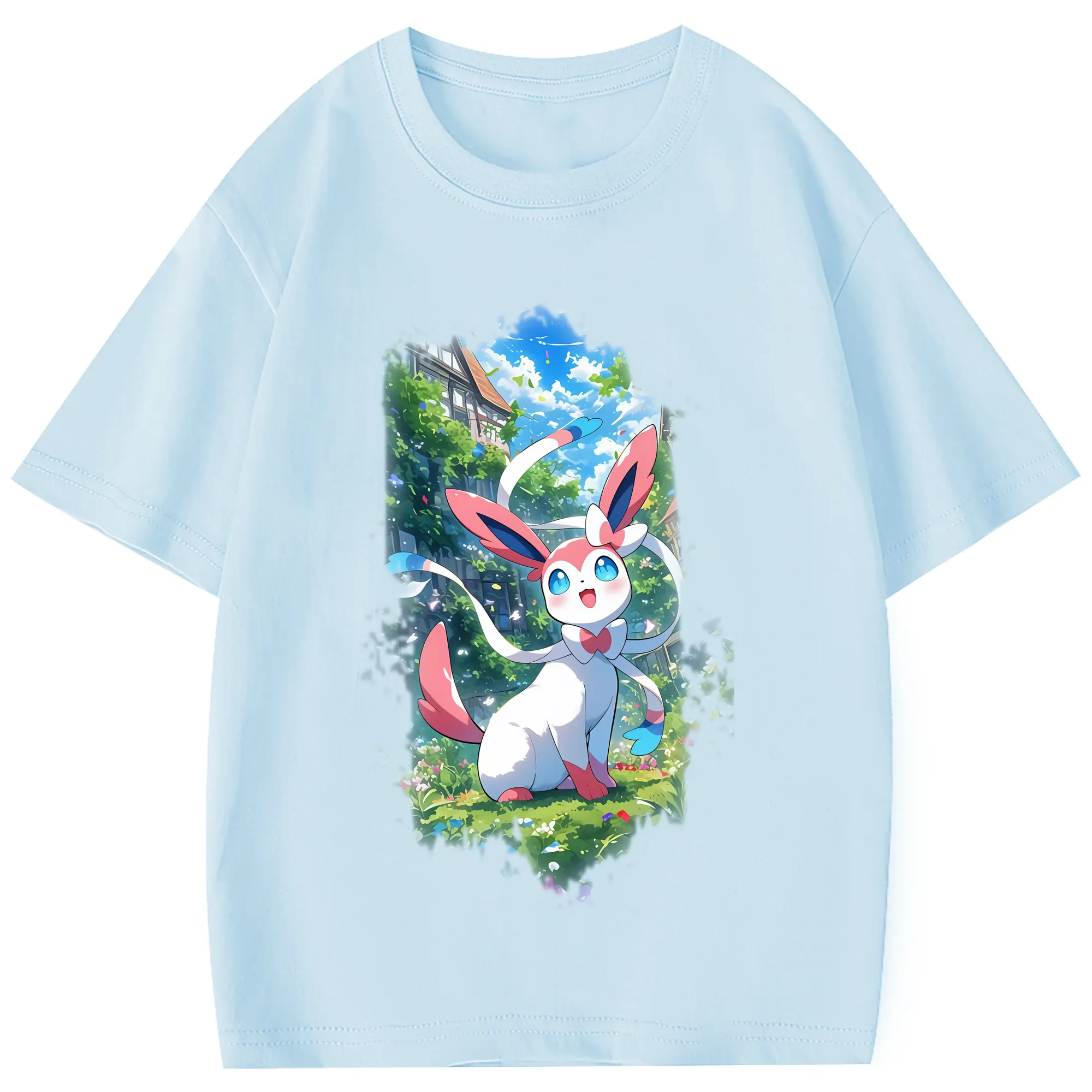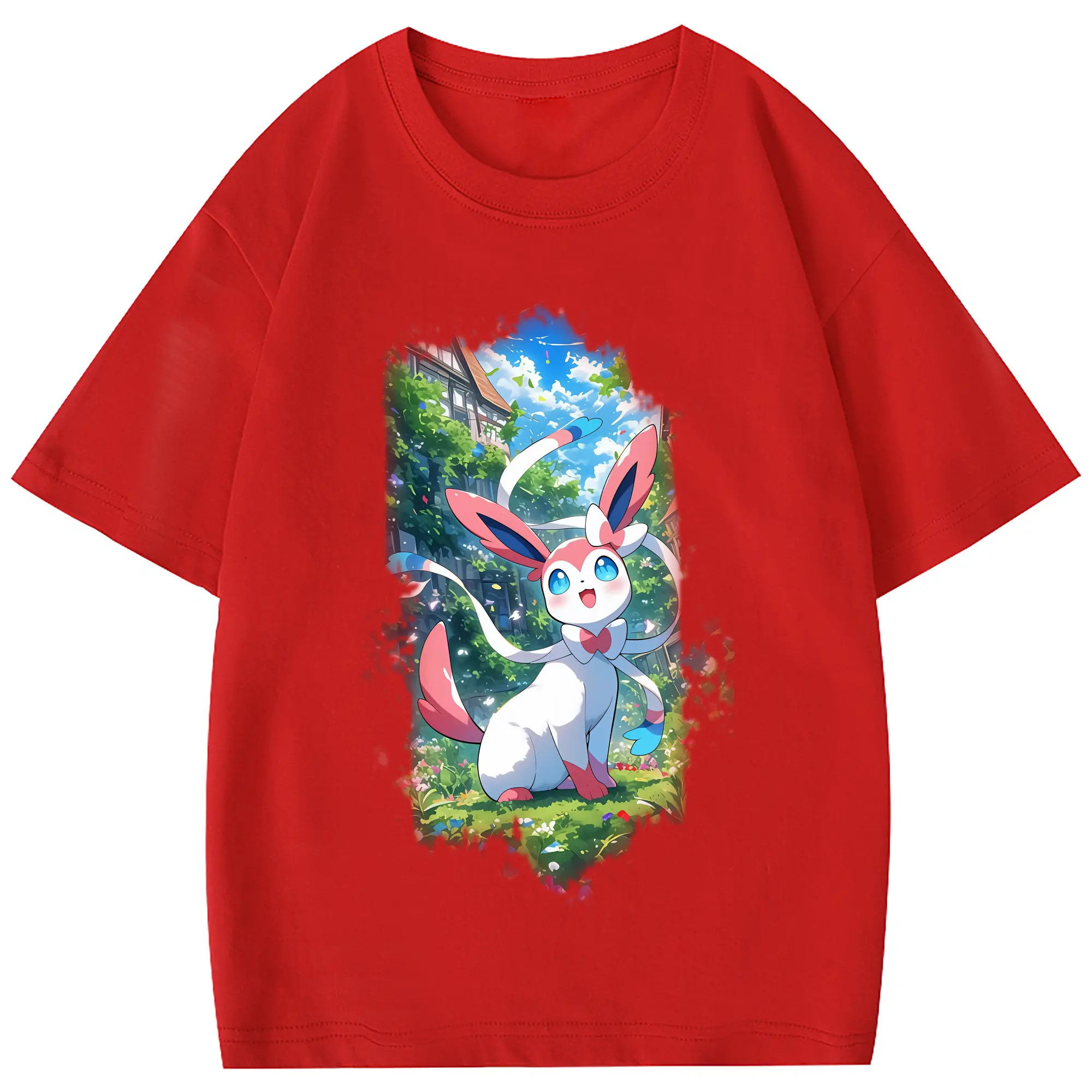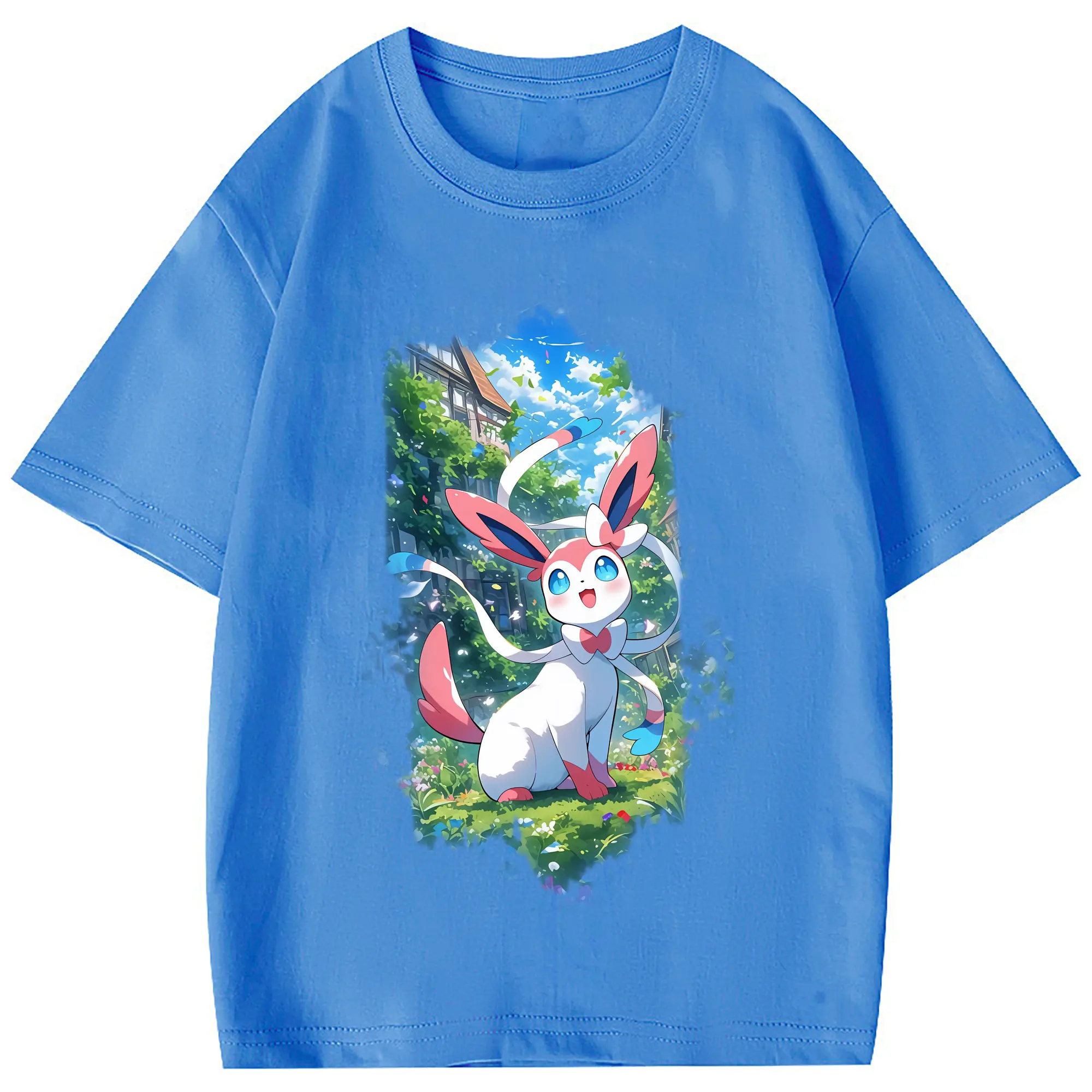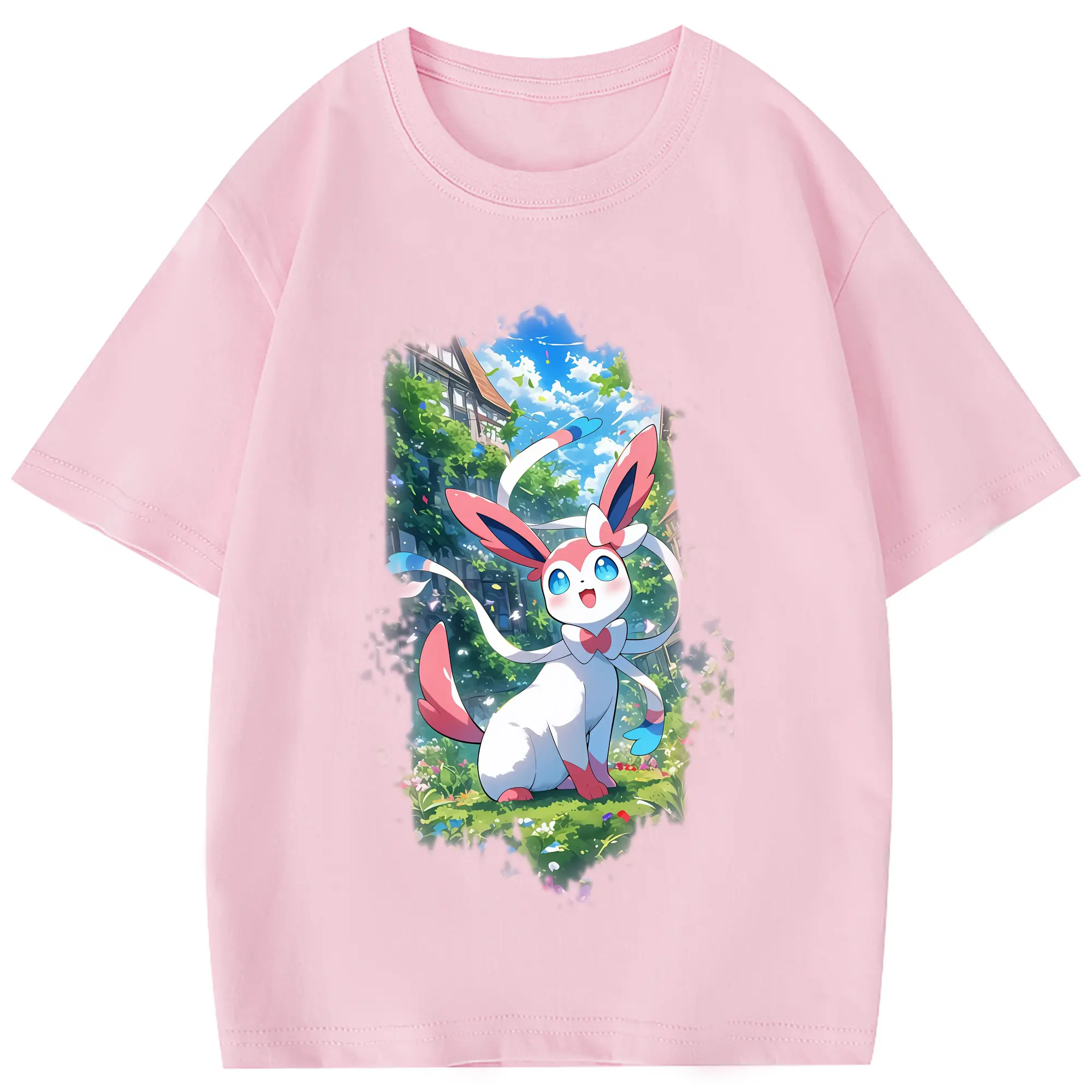 ポケモン グッズ,ニンフィア - 綿100% 半袖Tシャツ ・ フロントプリント ・ 快適 通気性 ・ 日常使い 散歩 スポーツ用