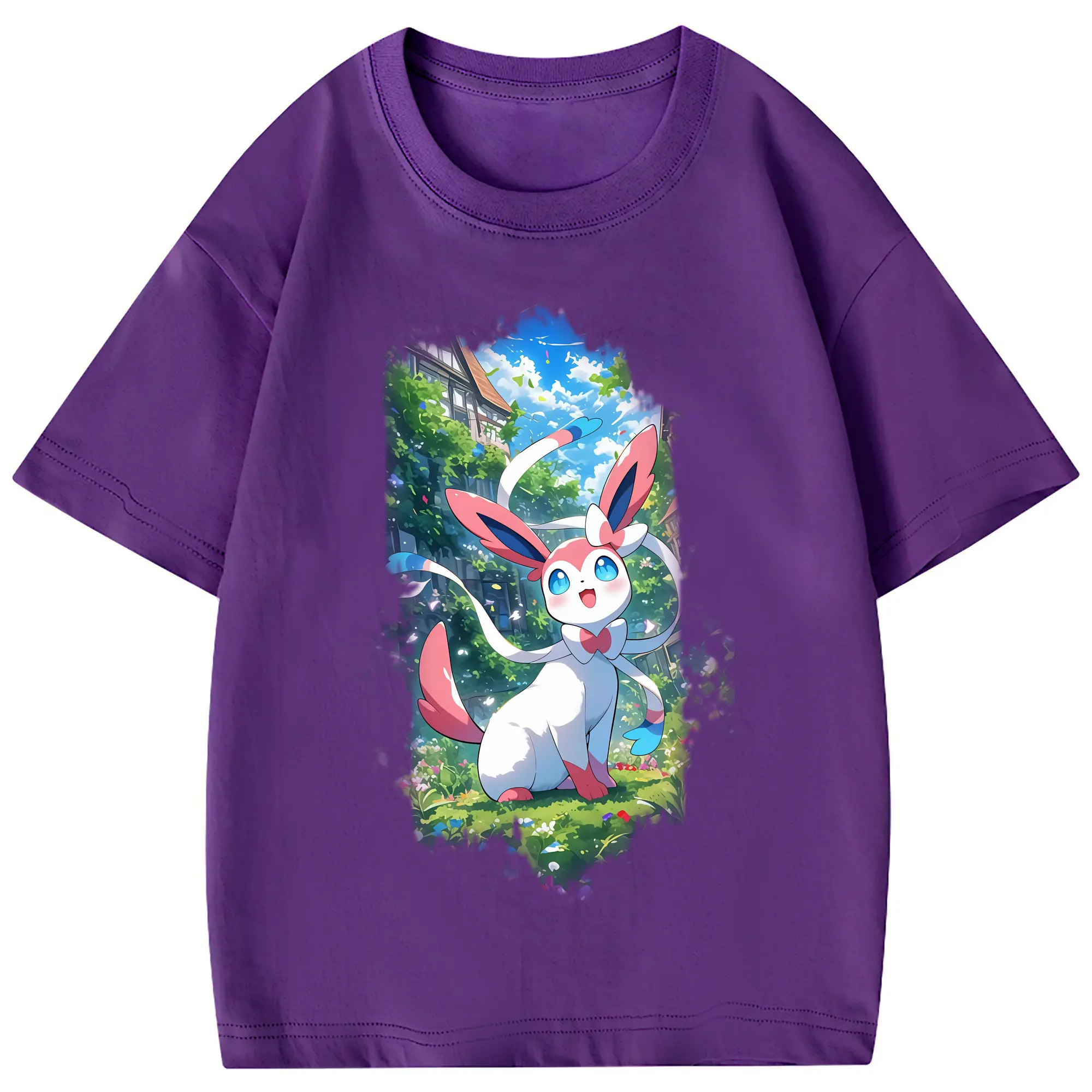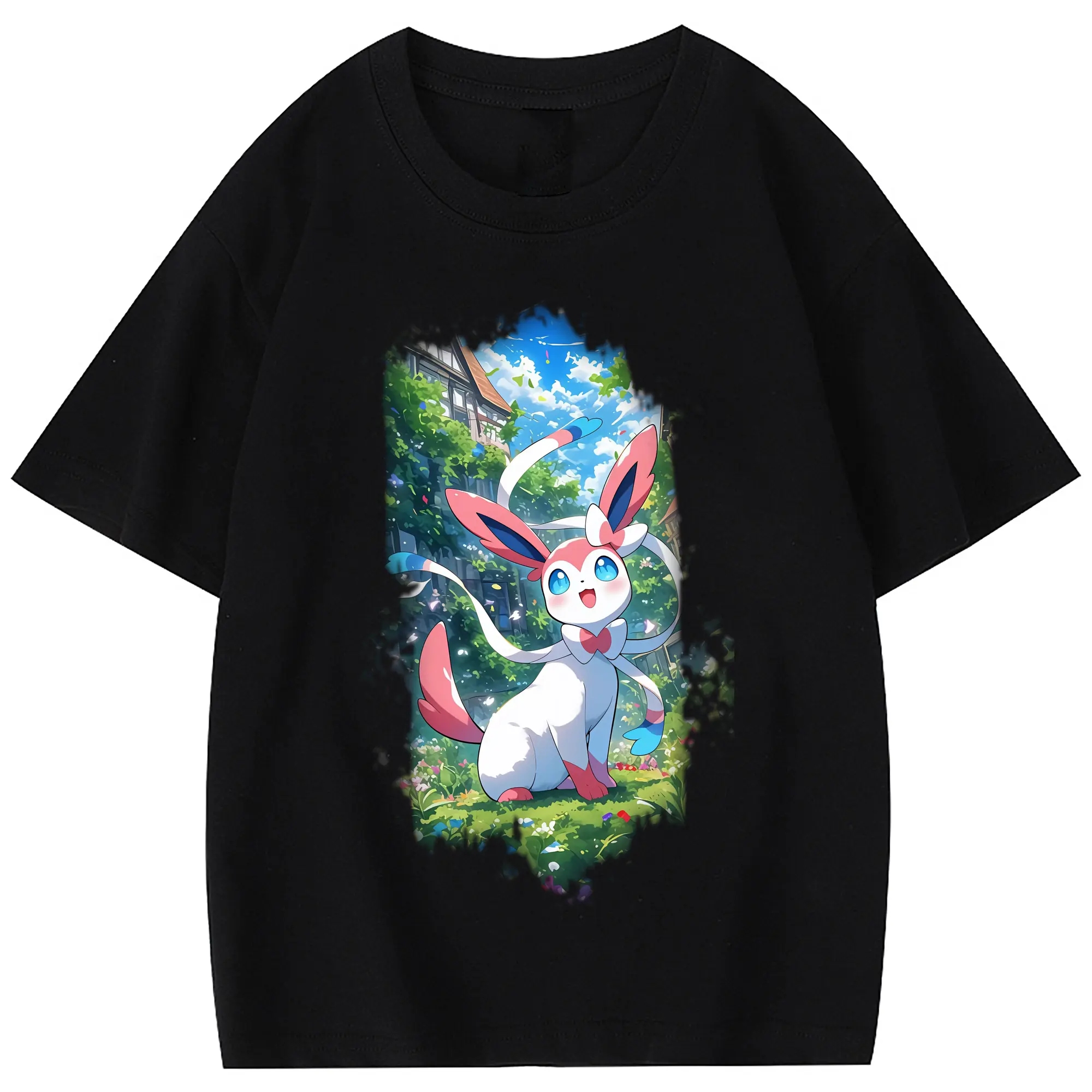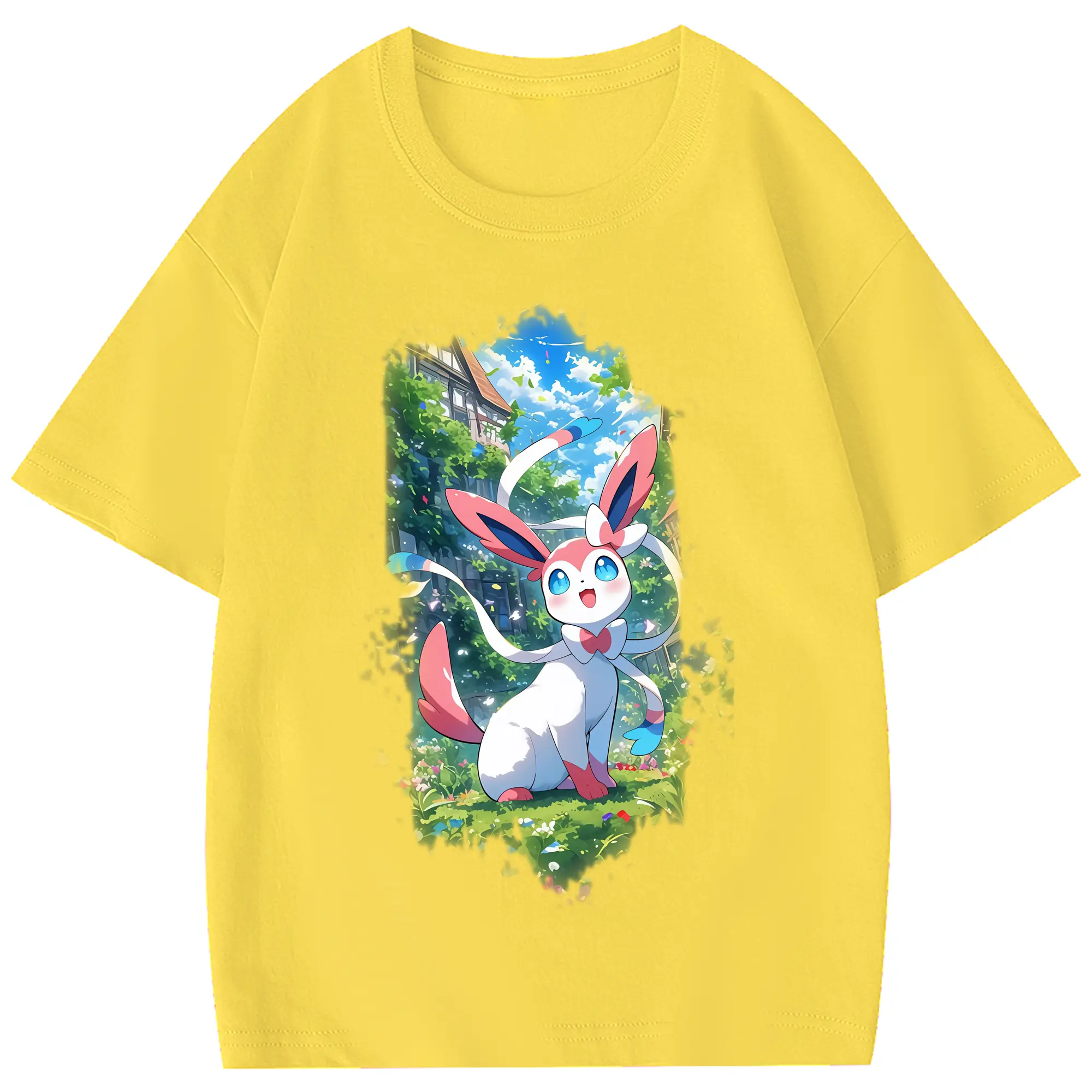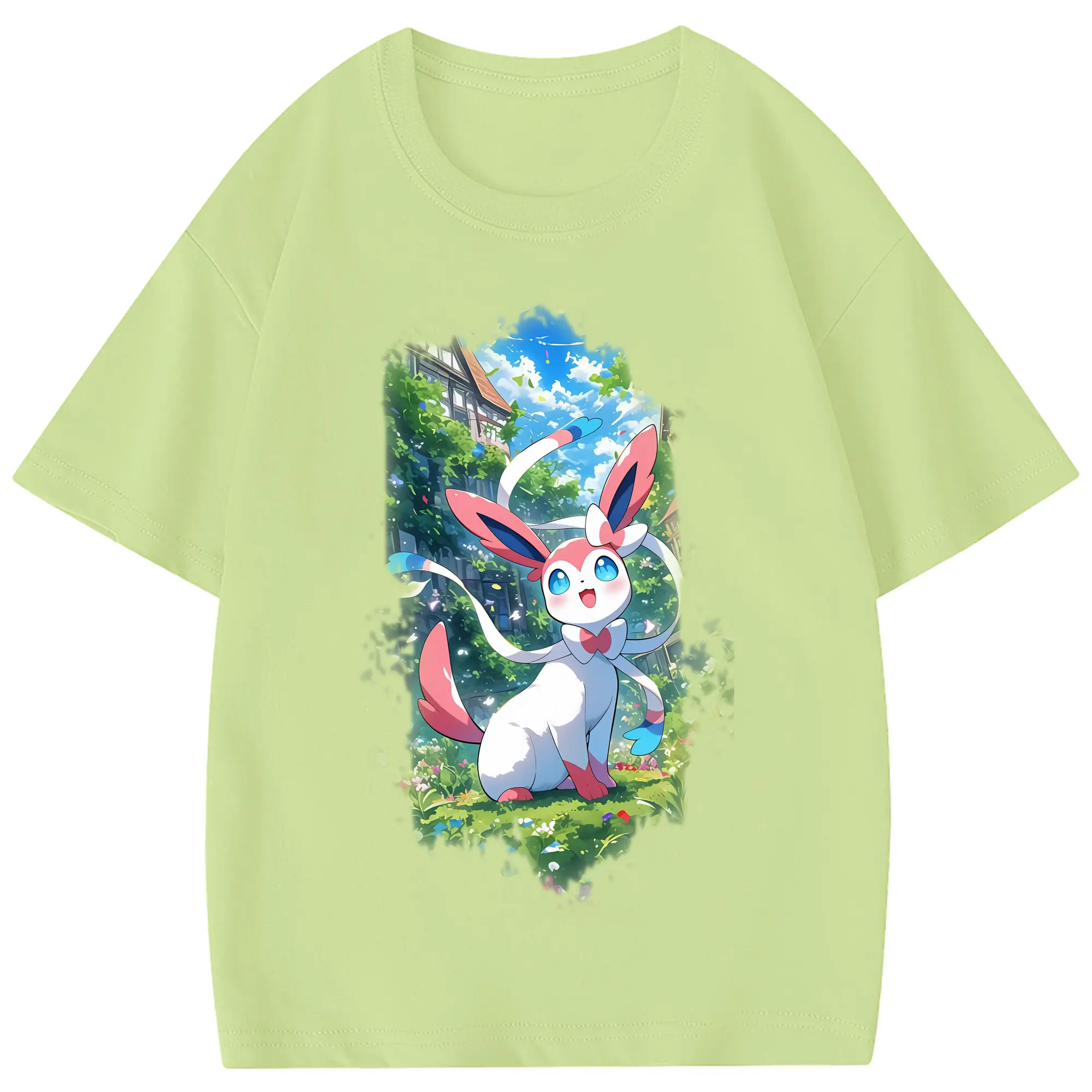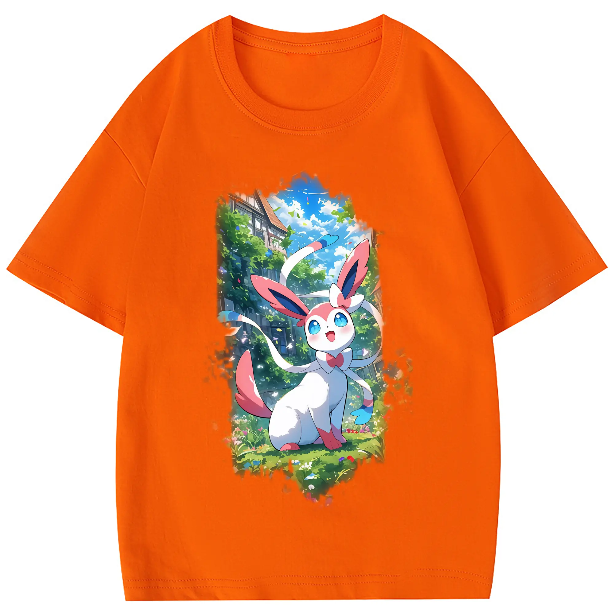 ポケモン グッズ,ニンフィア - 綿100% 半袖Tシャツ ・ フロントプリント ・ 快適 通気性 ・ 日常使い 散歩 スポーツ用