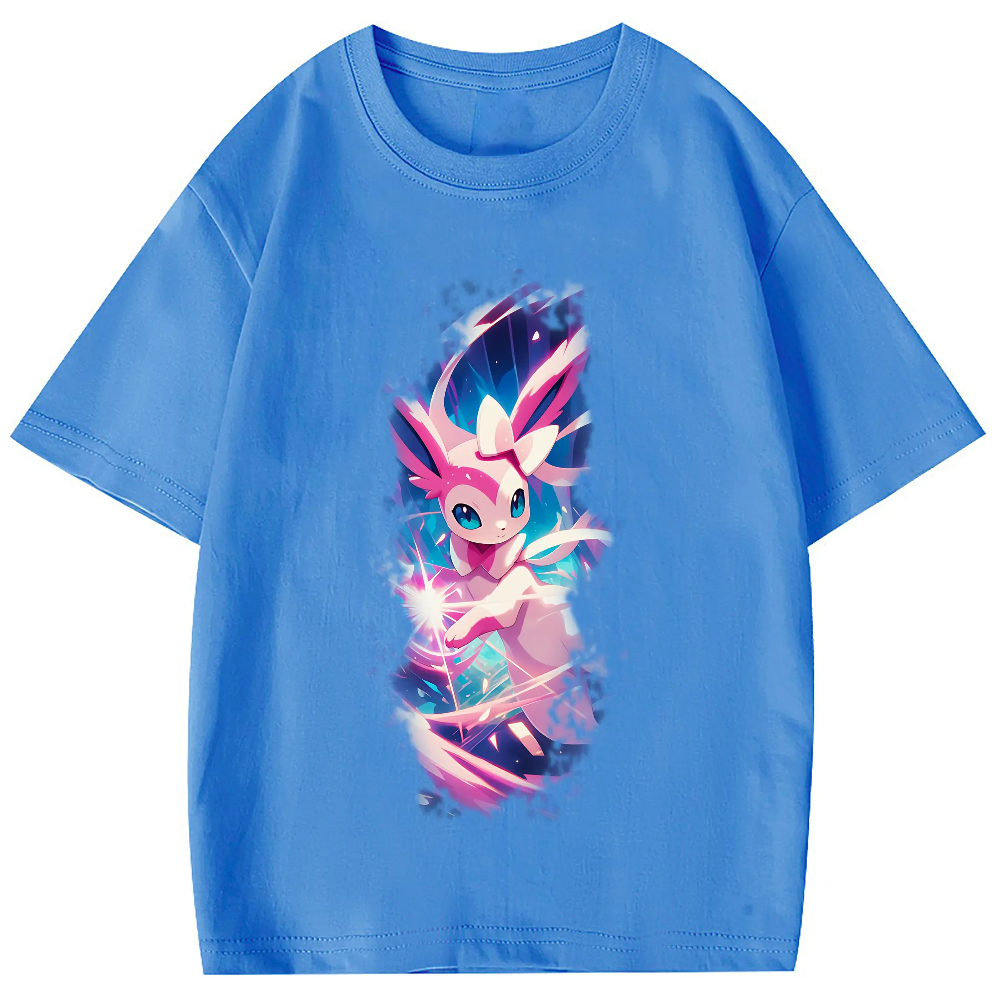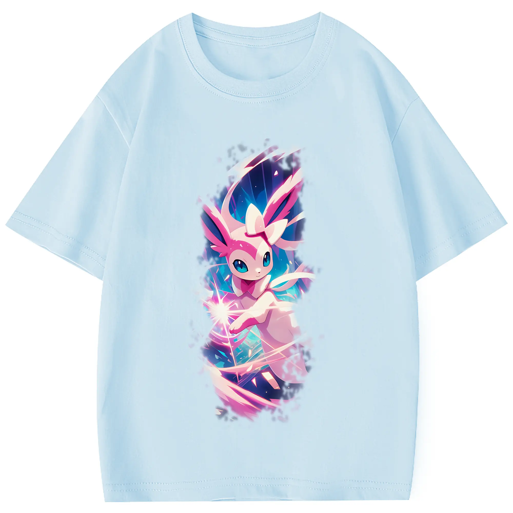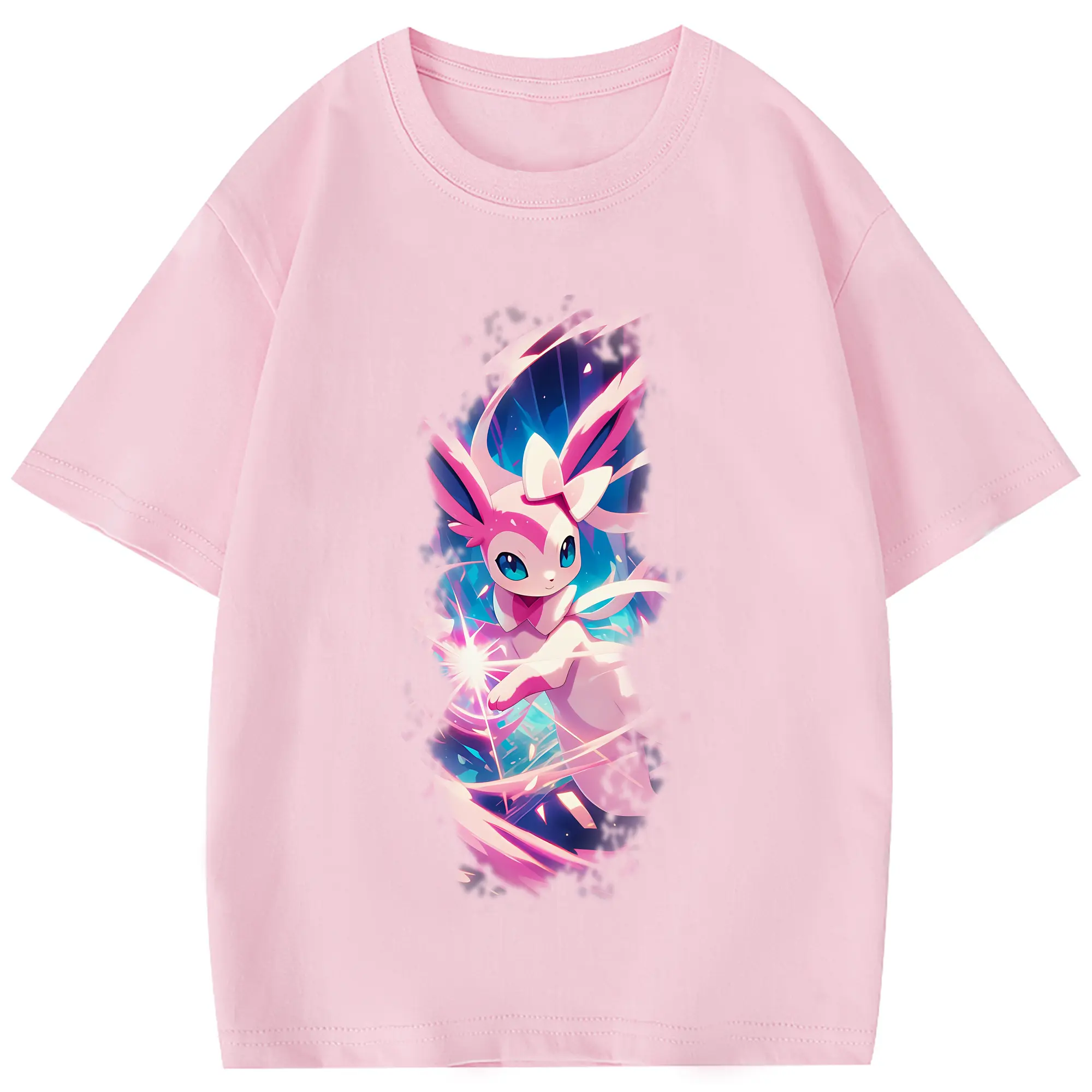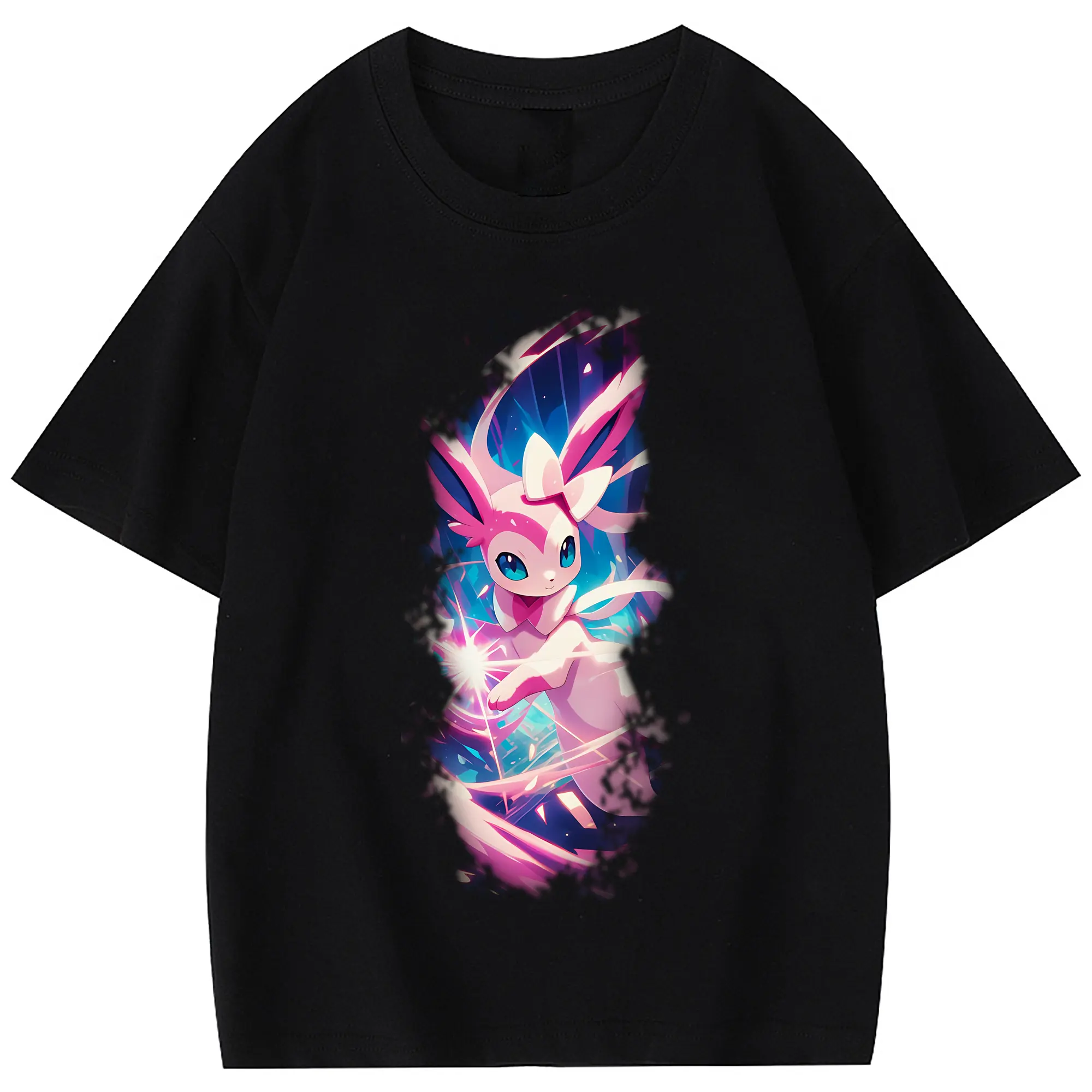 ポケモン グッズ,ニンフィア - 綿100% 半袖Tシャツ ・ フロントプリント ・ 快適 通気性 ・ 日常使い 散歩 スポーツ用