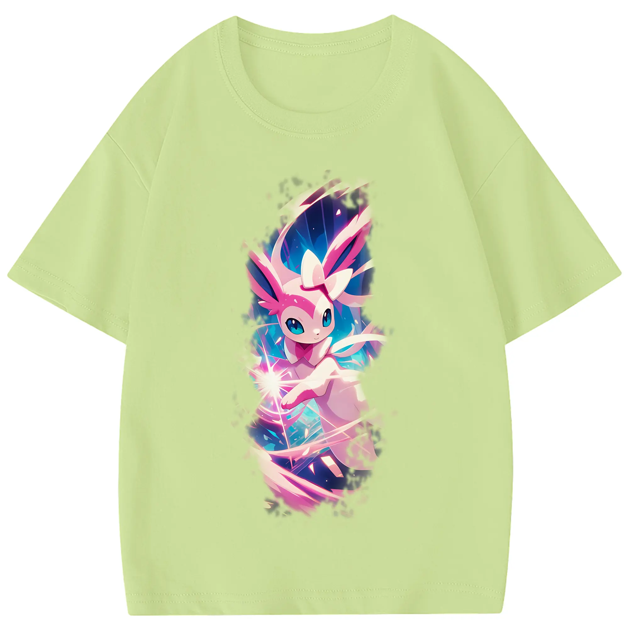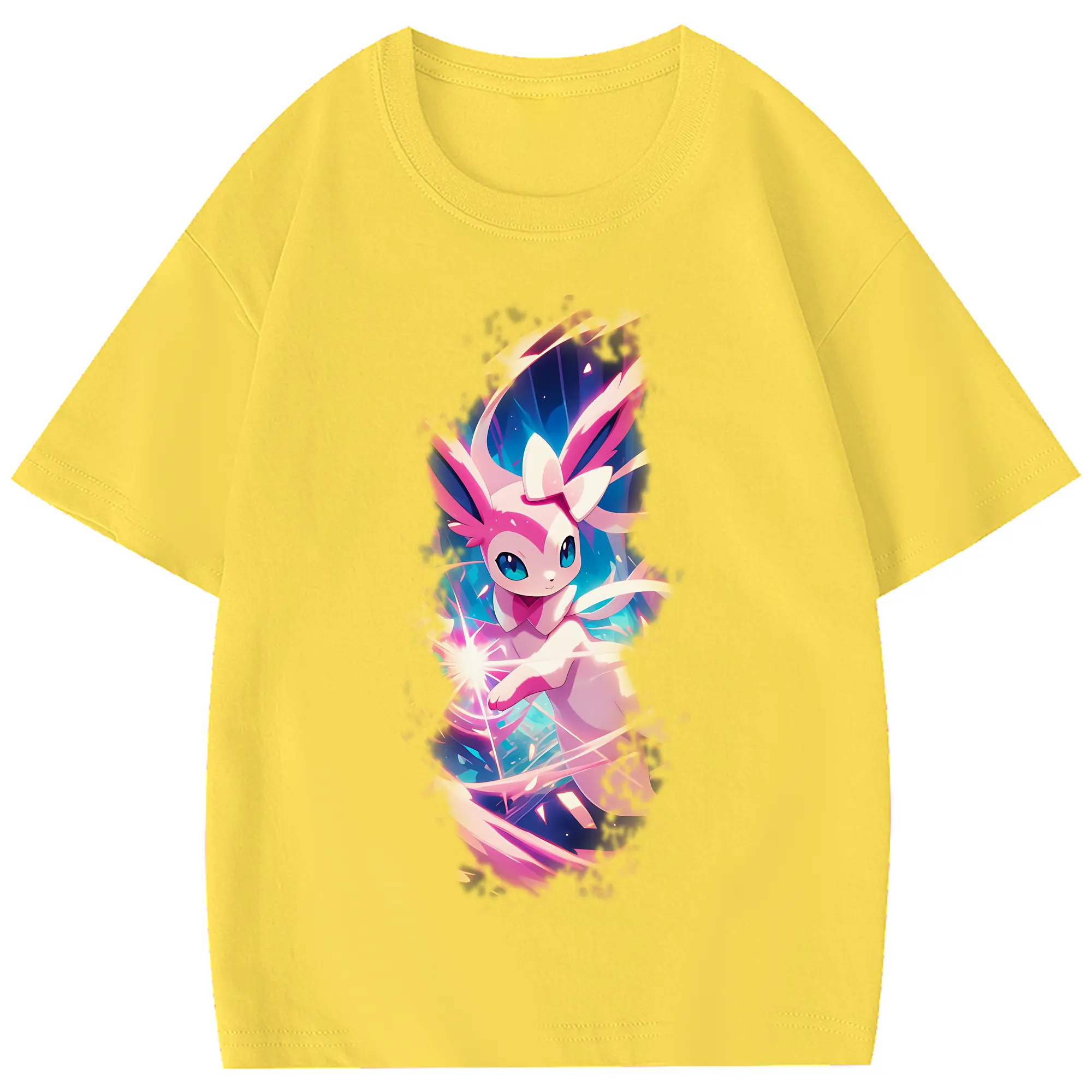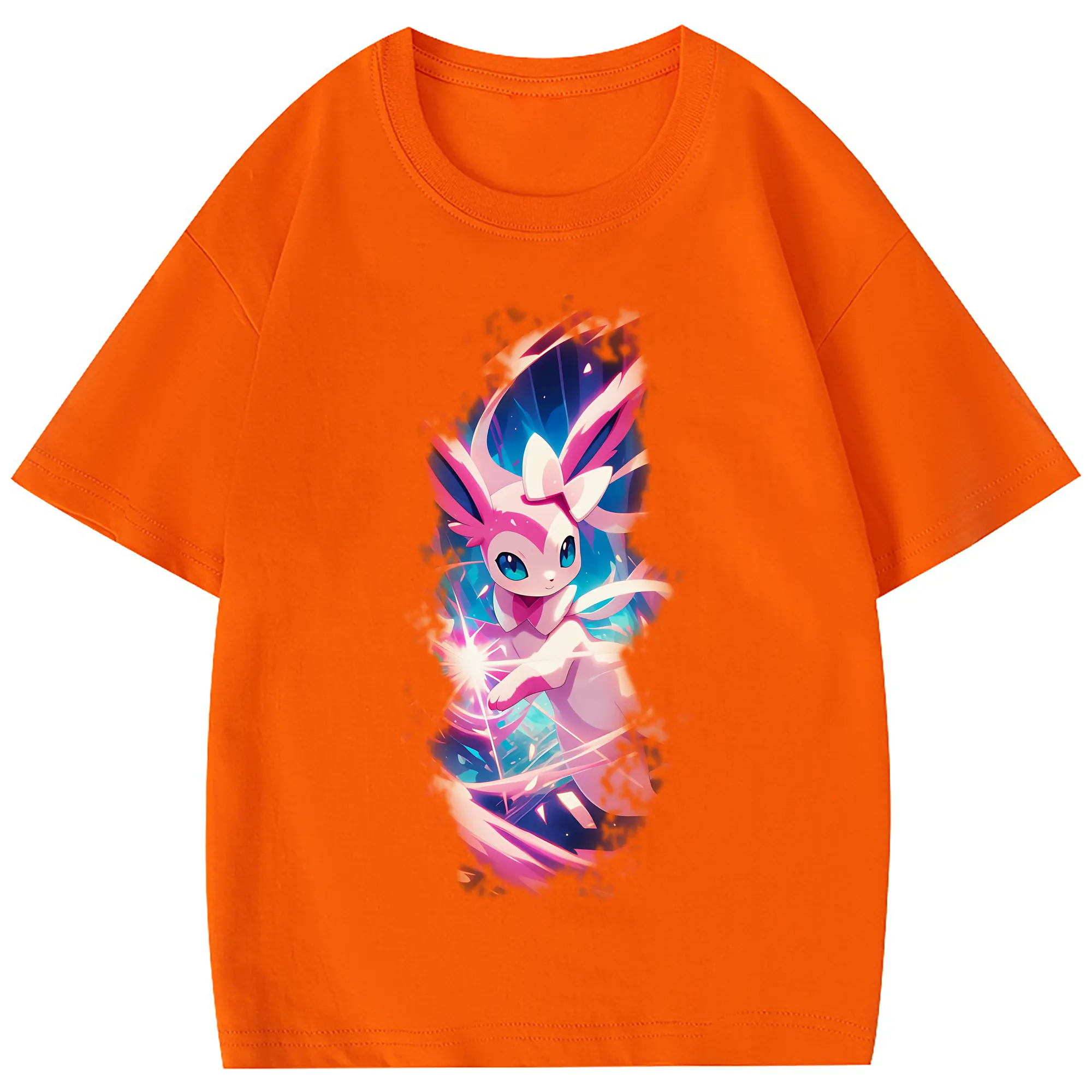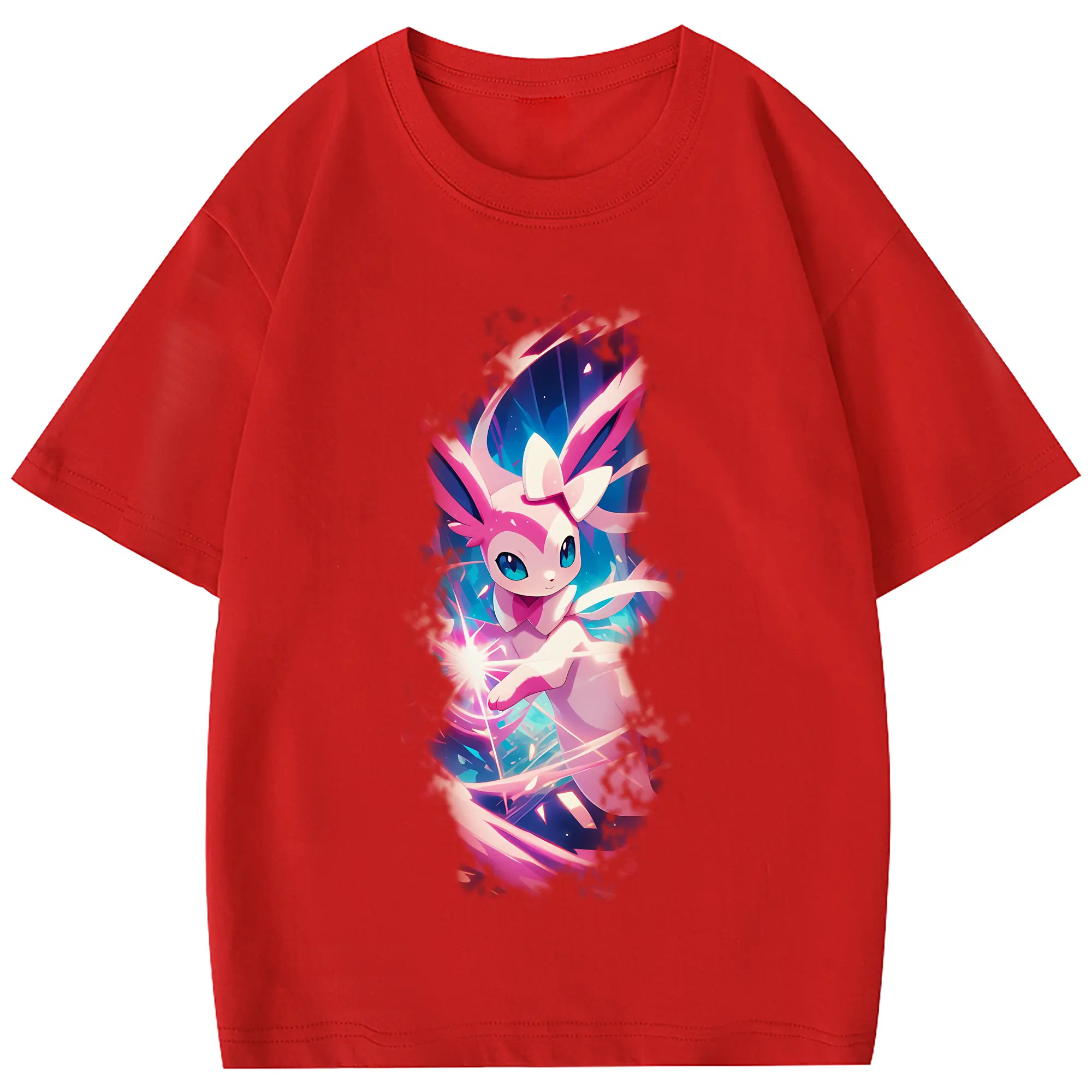 ポケモン グッズ,ニンフィア - 綿100% 半袖Tシャツ ・ フロントプリント ・ 快適 通気性 ・ 日常使い 散歩 スポーツ用