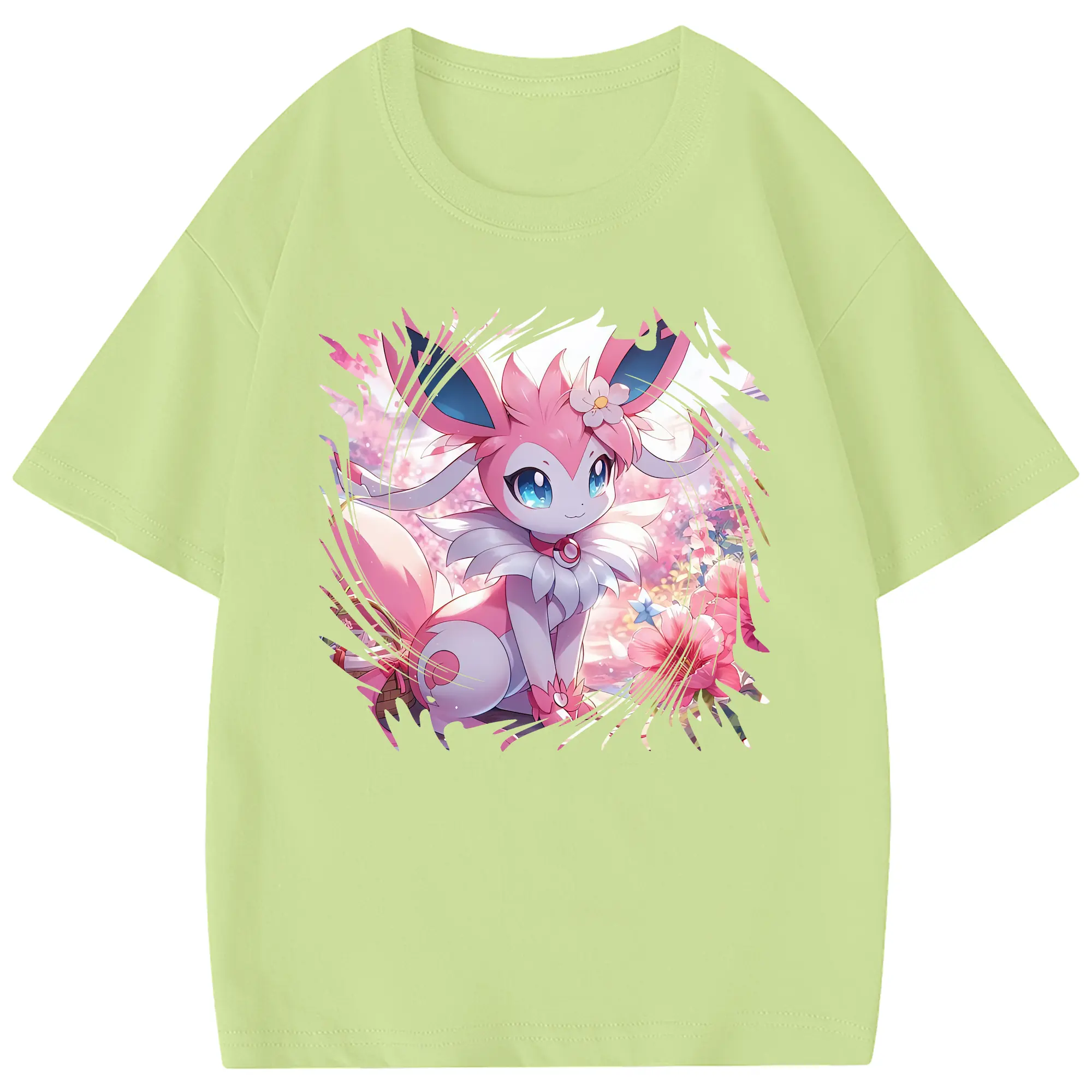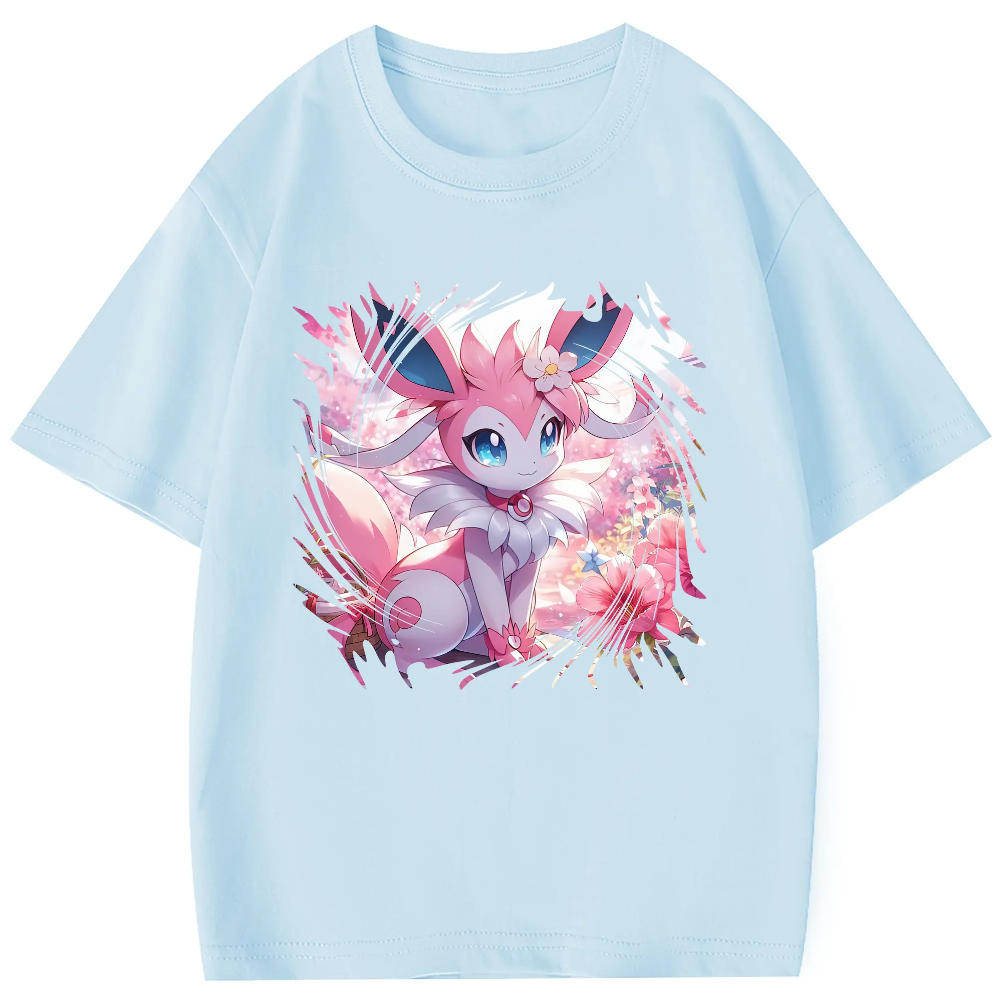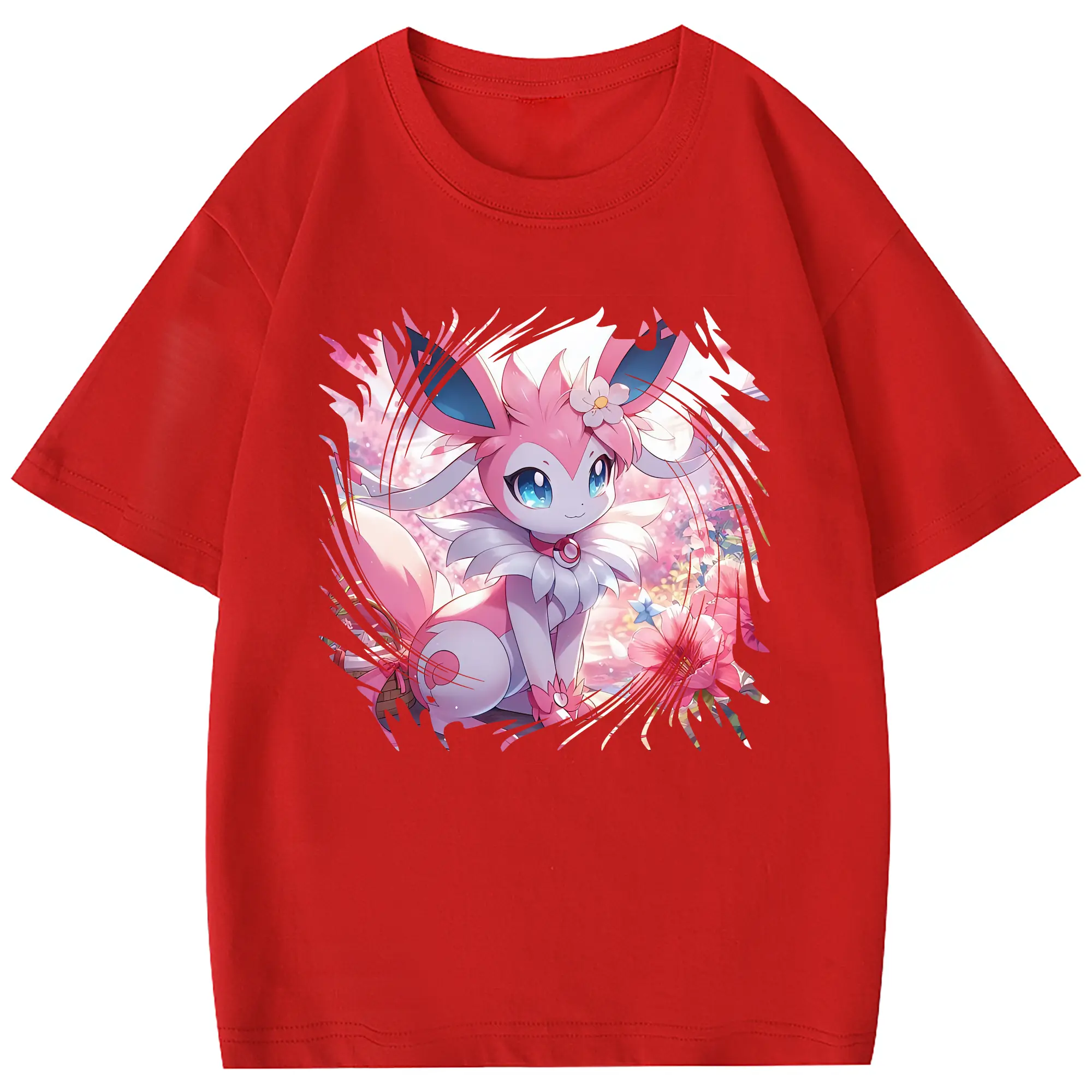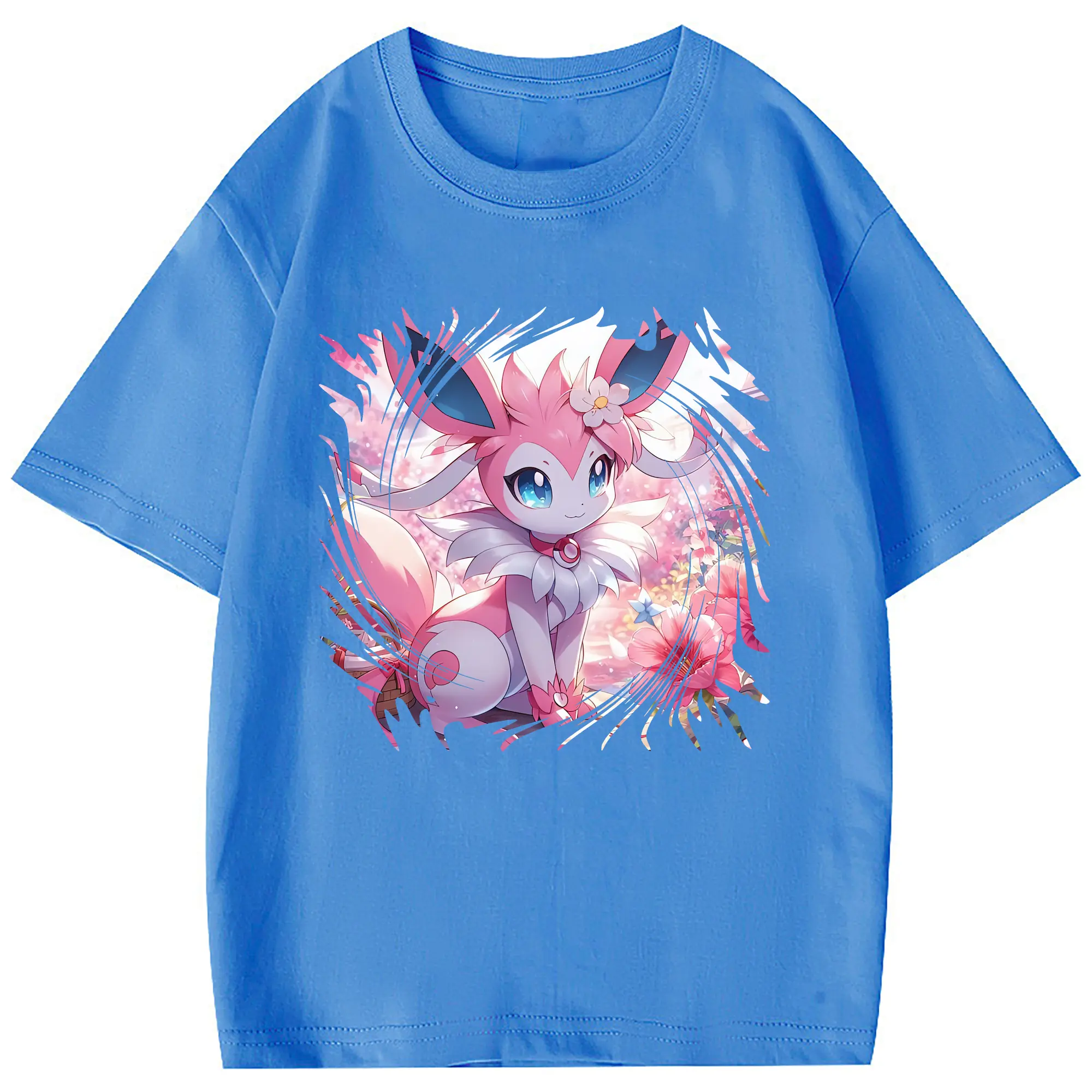 ポケモン グッズ,ニンフィア - 綿100% 半袖Tシャツ ・ フロントプリント ・ 快適 通気性 ・ 日常使い 散歩 スポーツ用