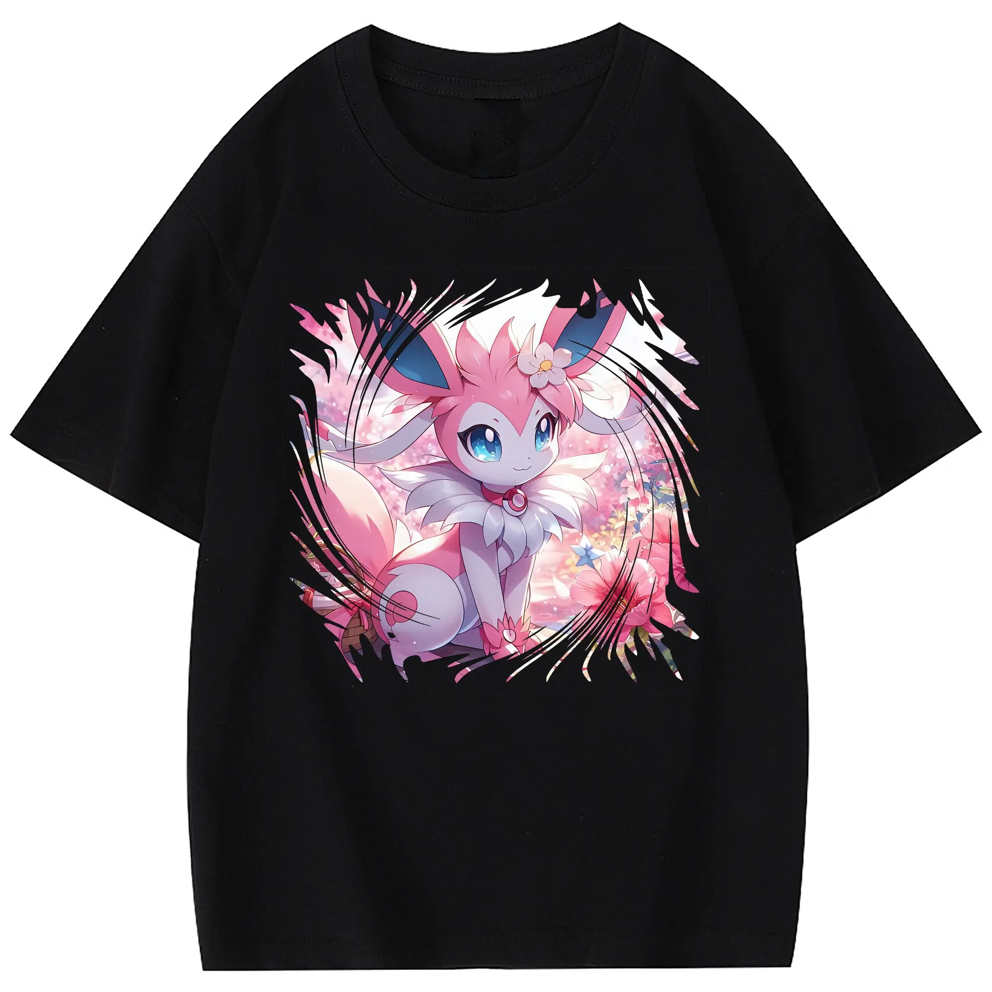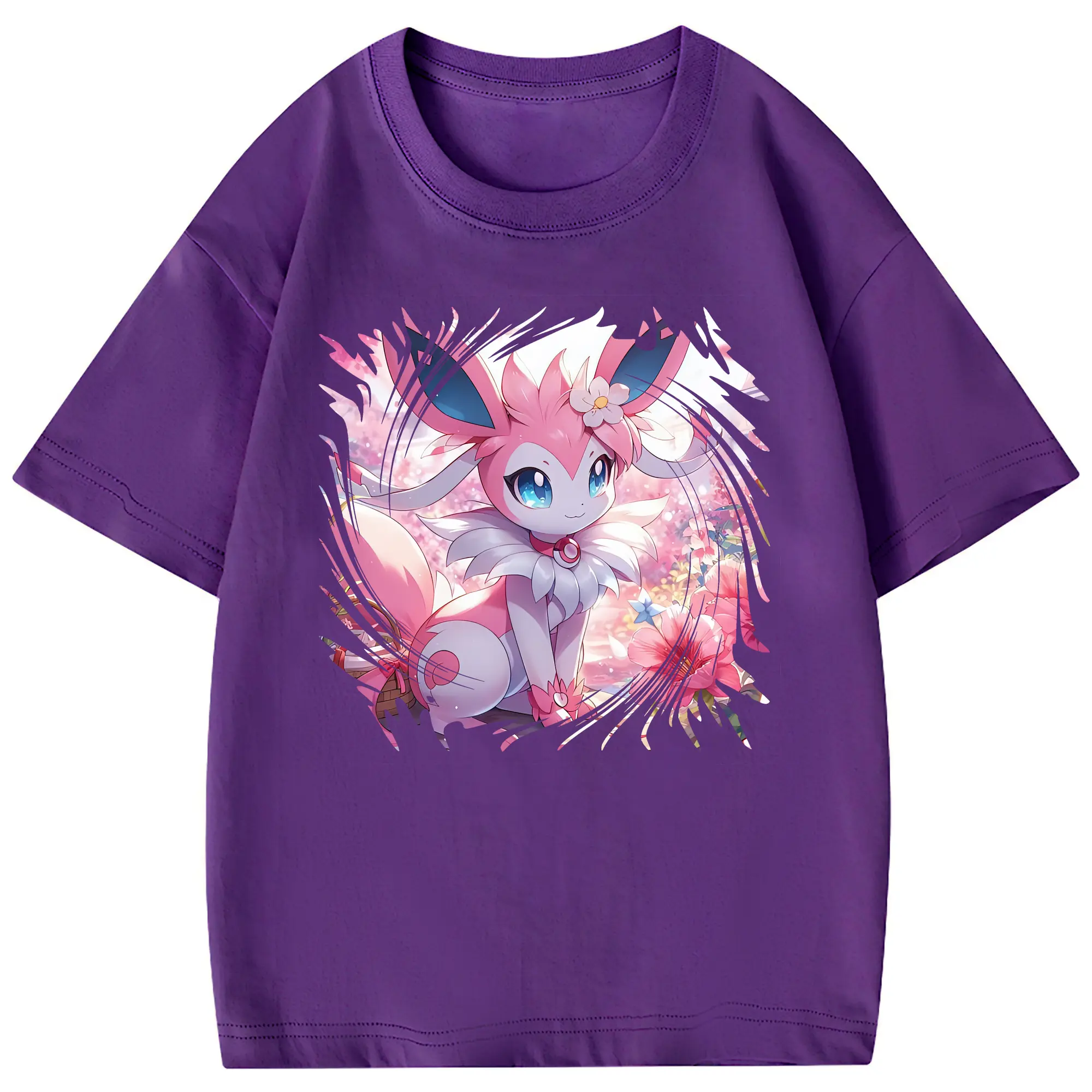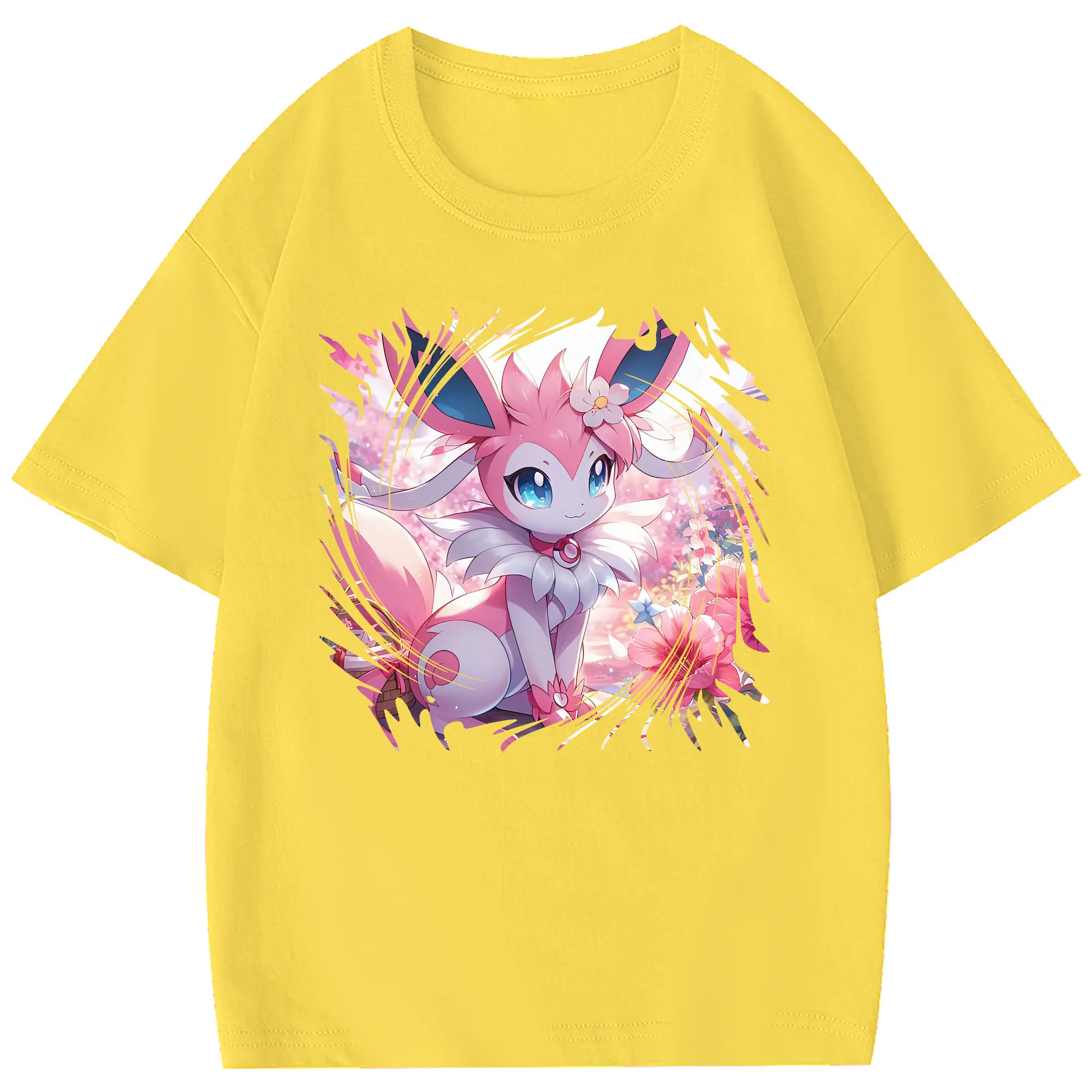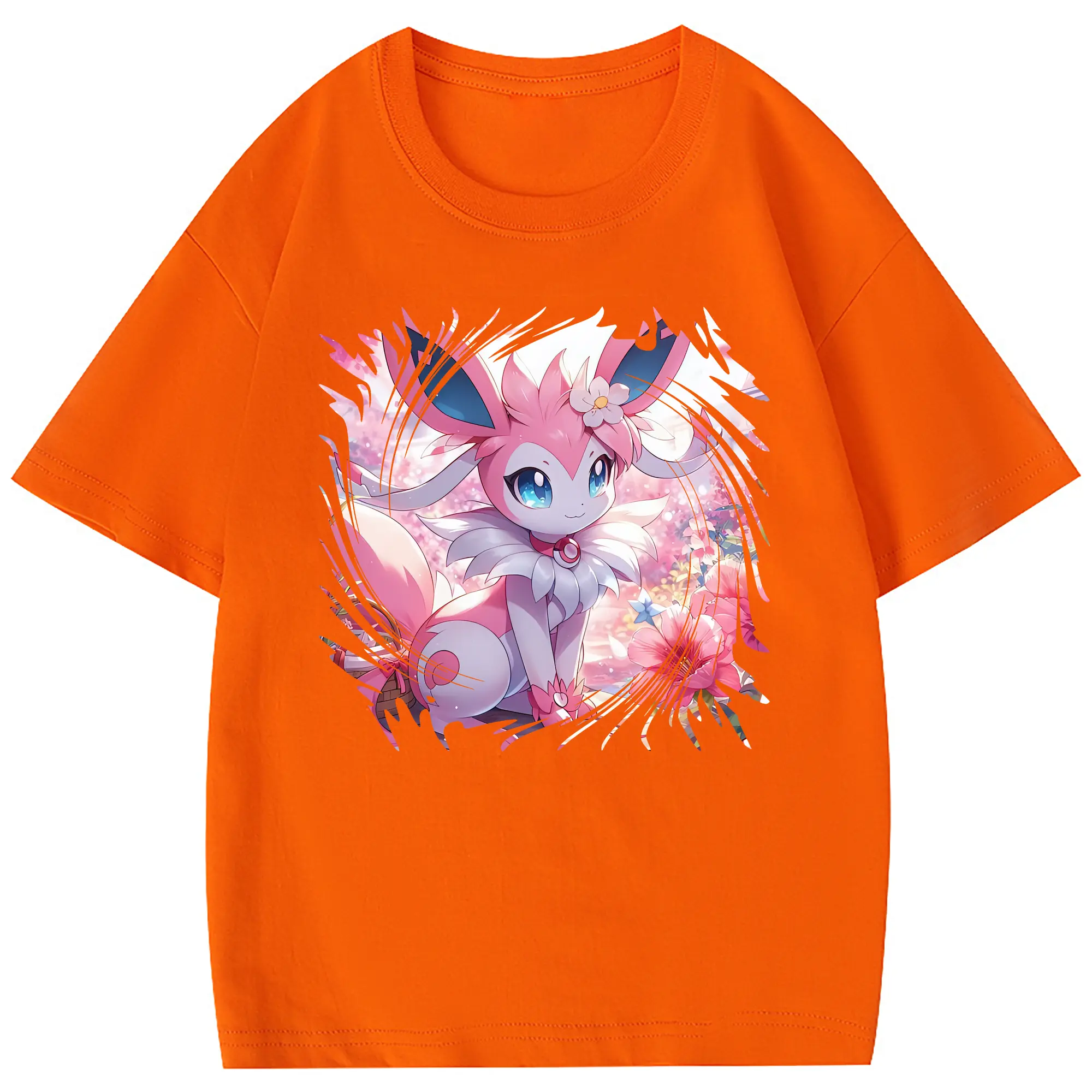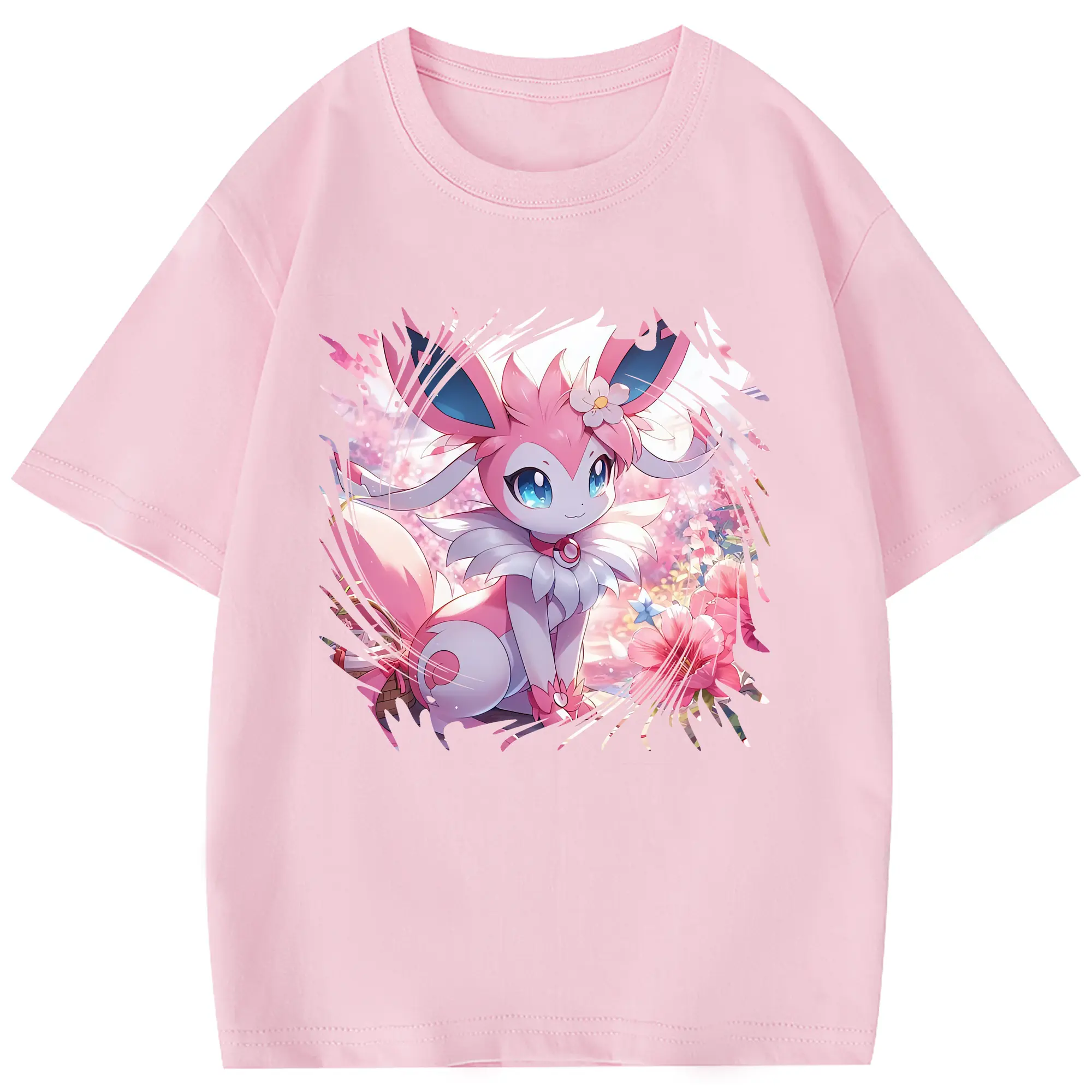 ポケモン グッズ,ニンフィア - 綿100% 半袖Tシャツ ・ フロントプリント ・ 快適 通気性 ・ 日常使い 散歩 スポーツ用
