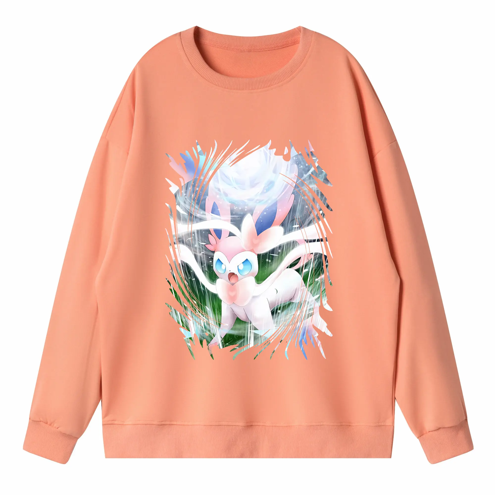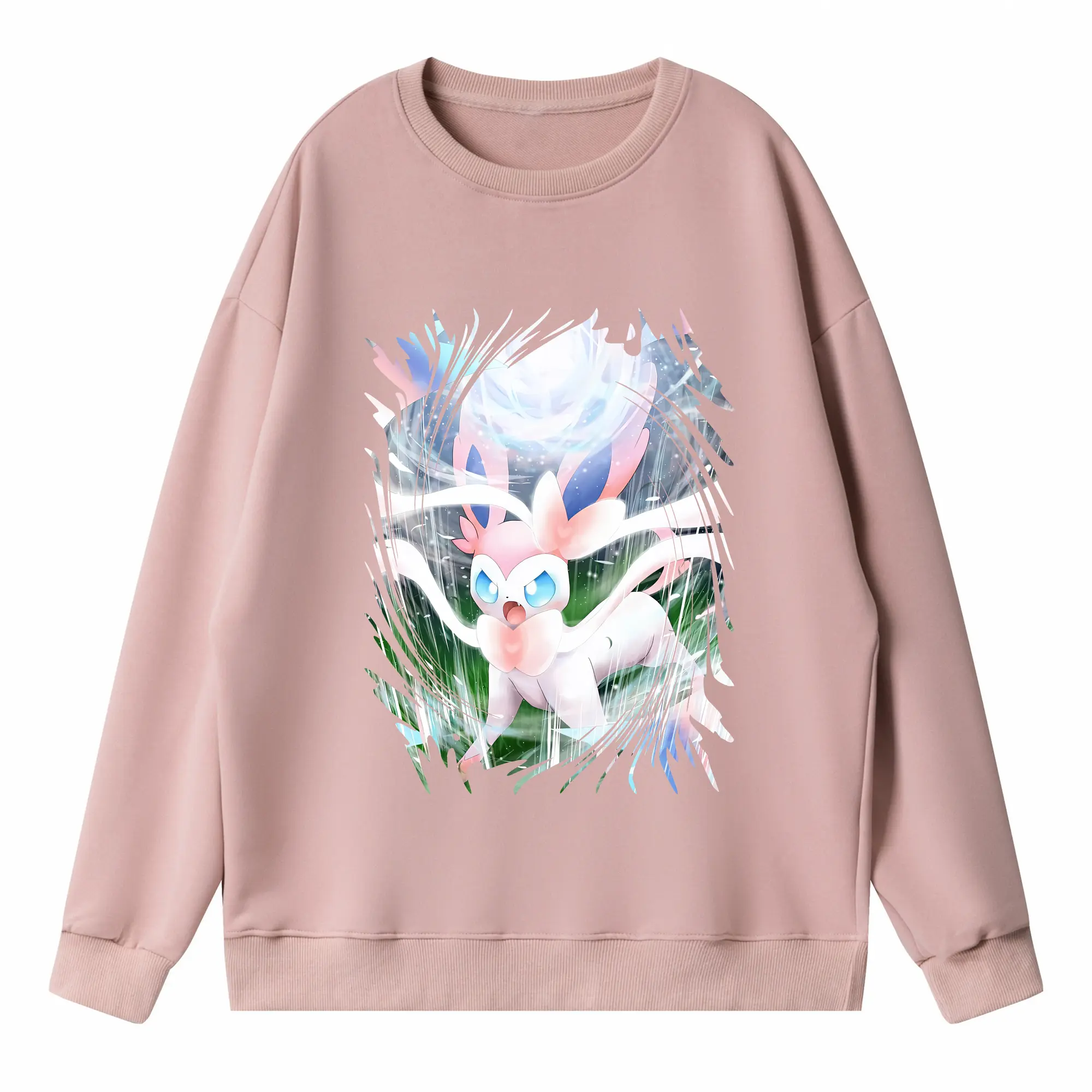 ポケモン グッズ,ニンフィア - 高品質 クルーネック スウェット ・ コットン59% ポリエステル41% ・ ユニセックス 長袖 トレーナー ・ カジュアル デイリー スポーツ 散歩用