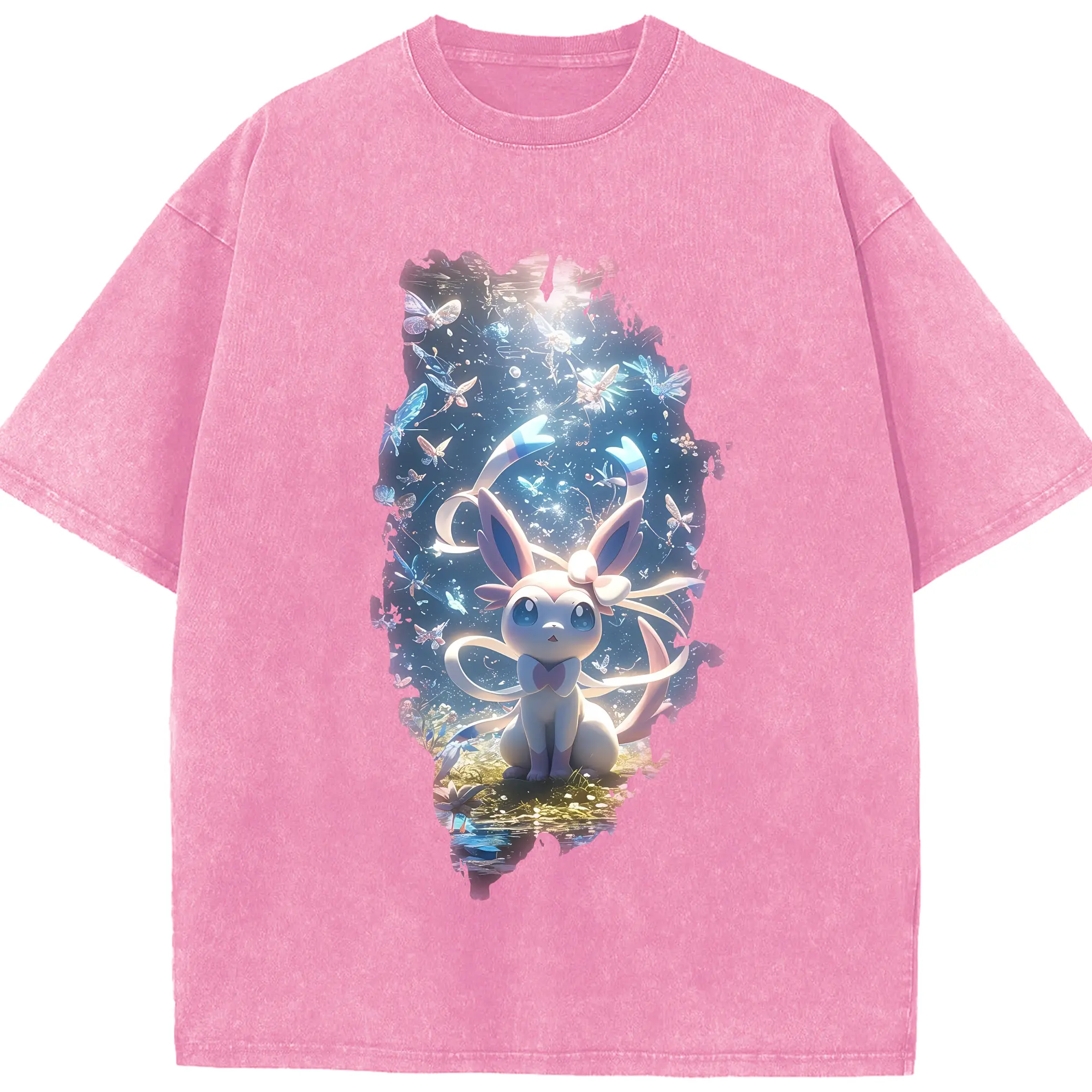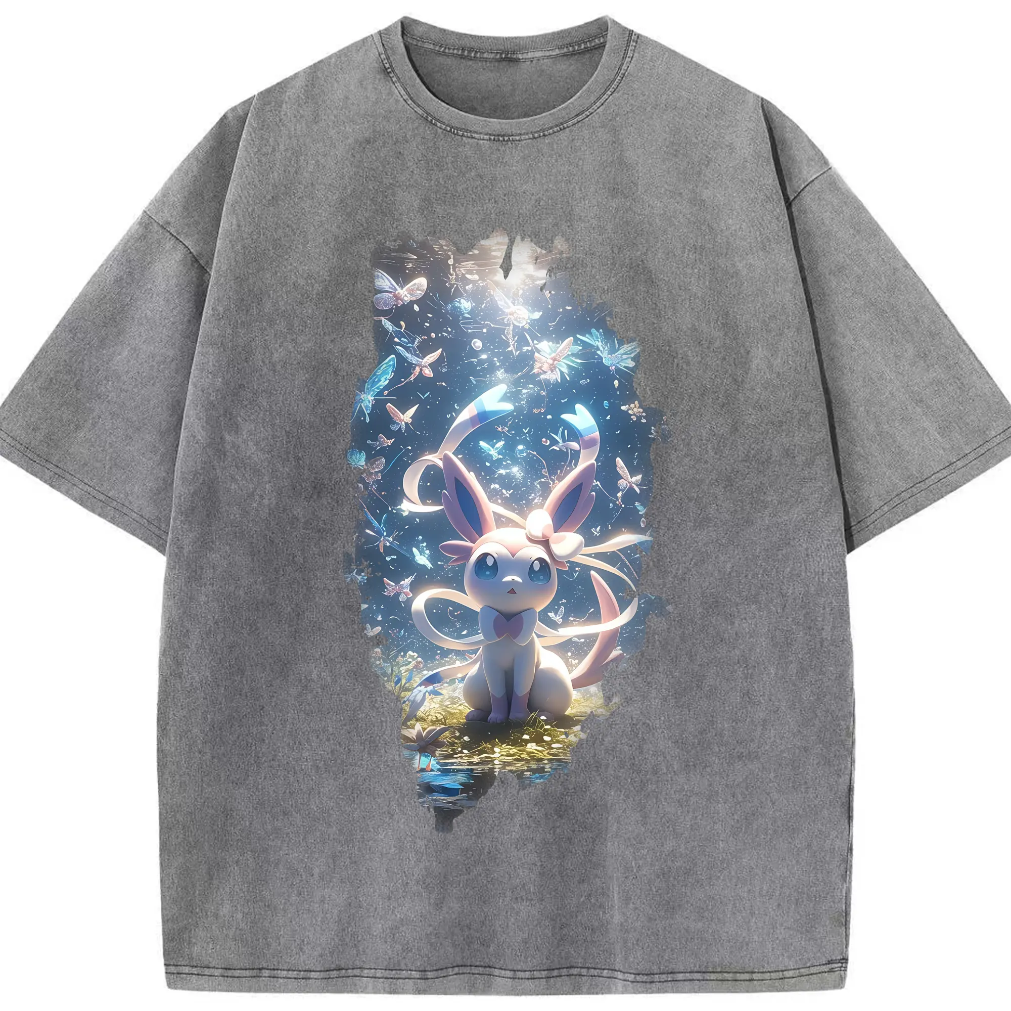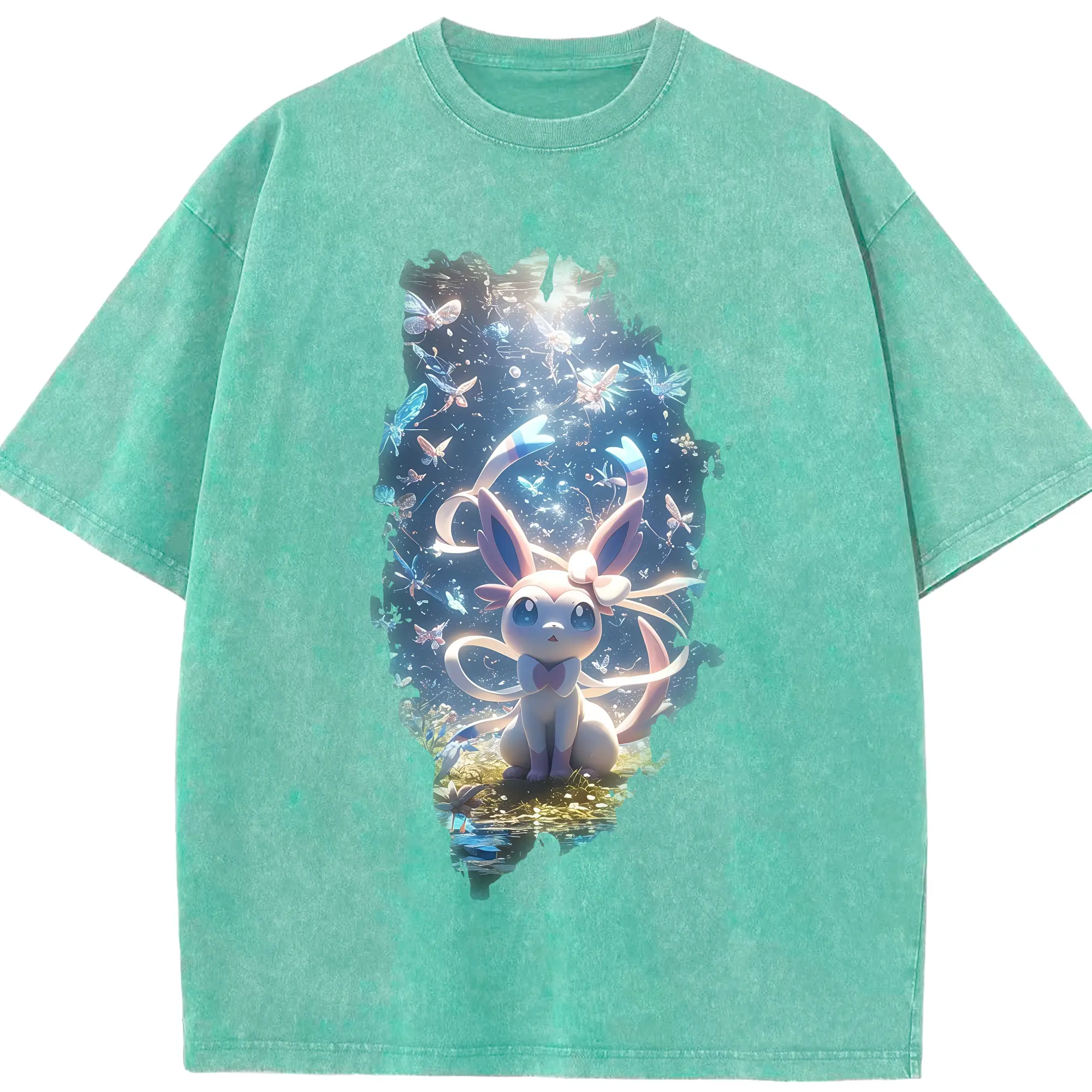 ポケモン グッズ,ニンフィア - 綿100% ヴィンテージ風 半袖Tシャツ ・ 背面プリント ・ 柔らか肌触り ・ 通気性 快適 ・ スポーツ カジュアル 外出用