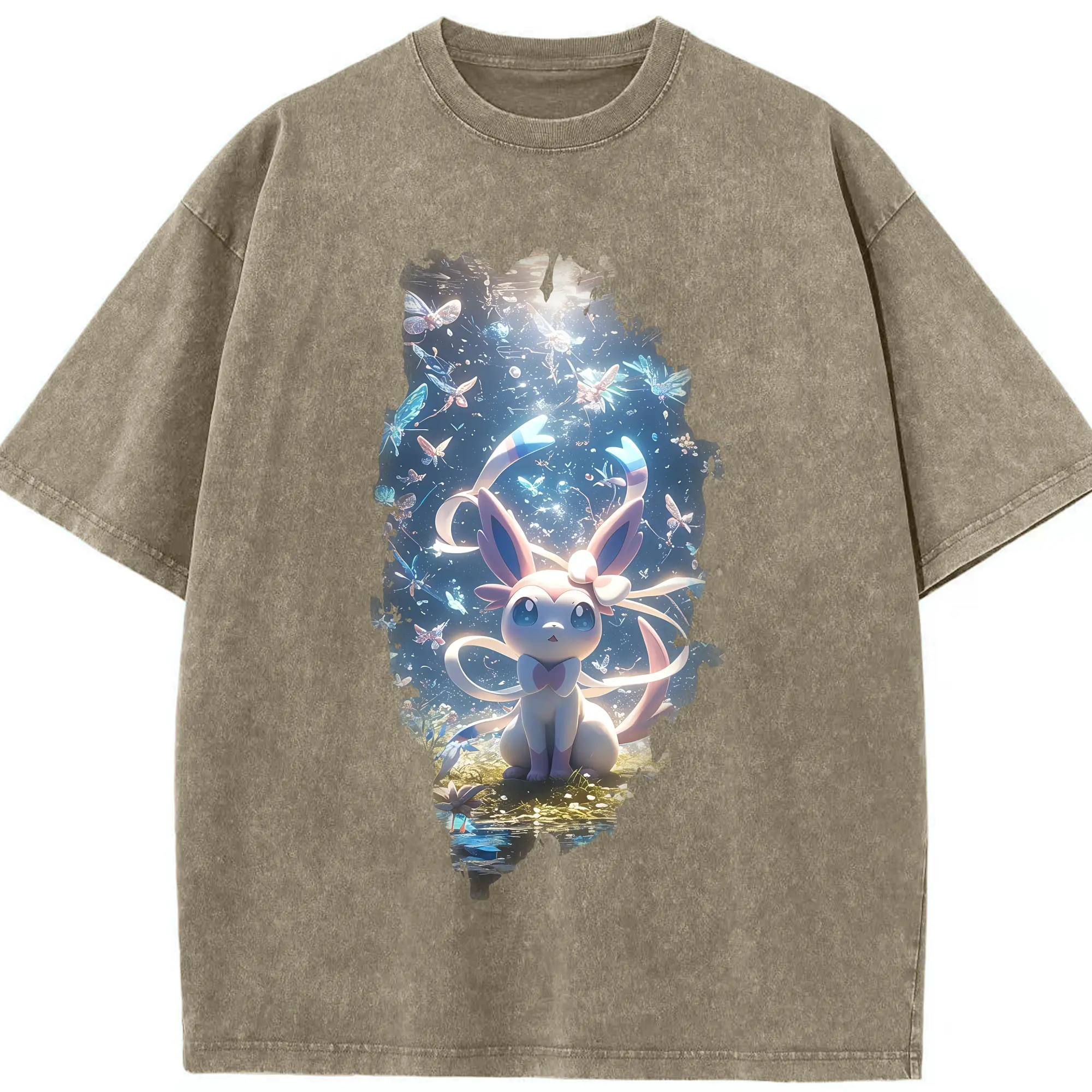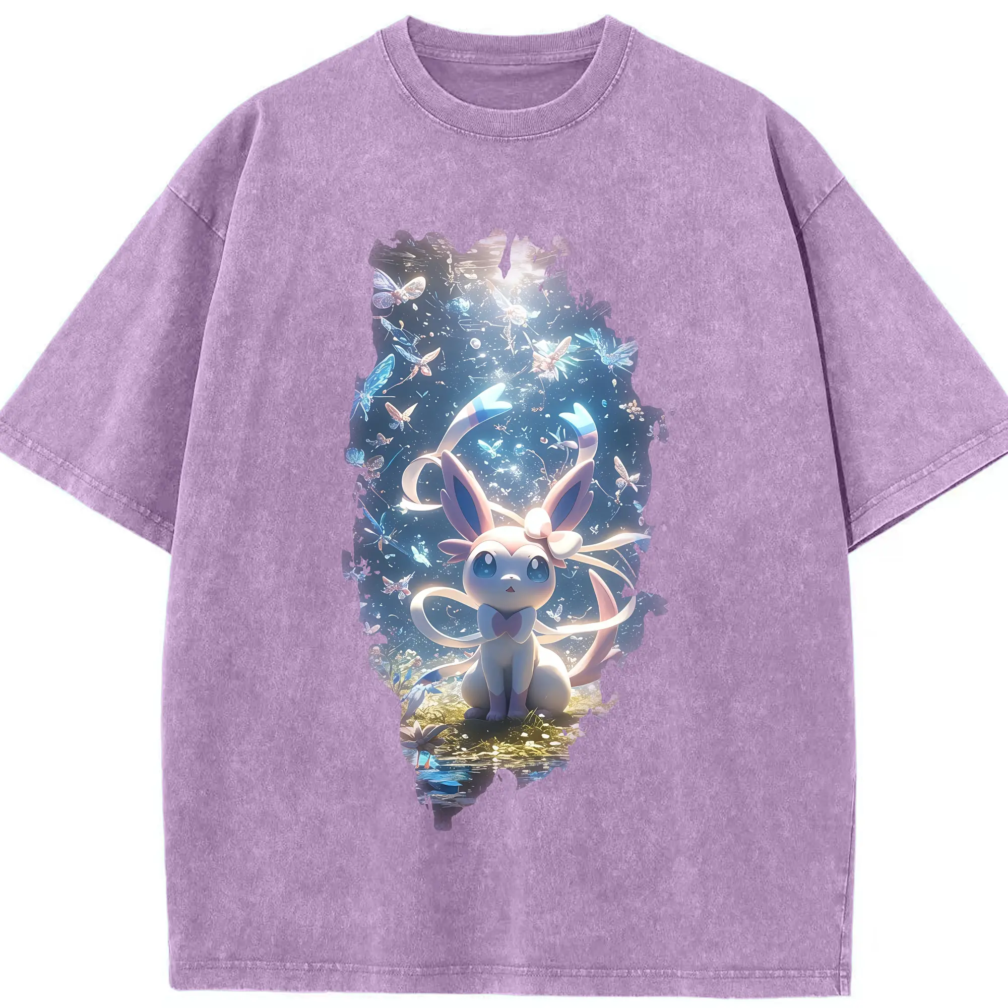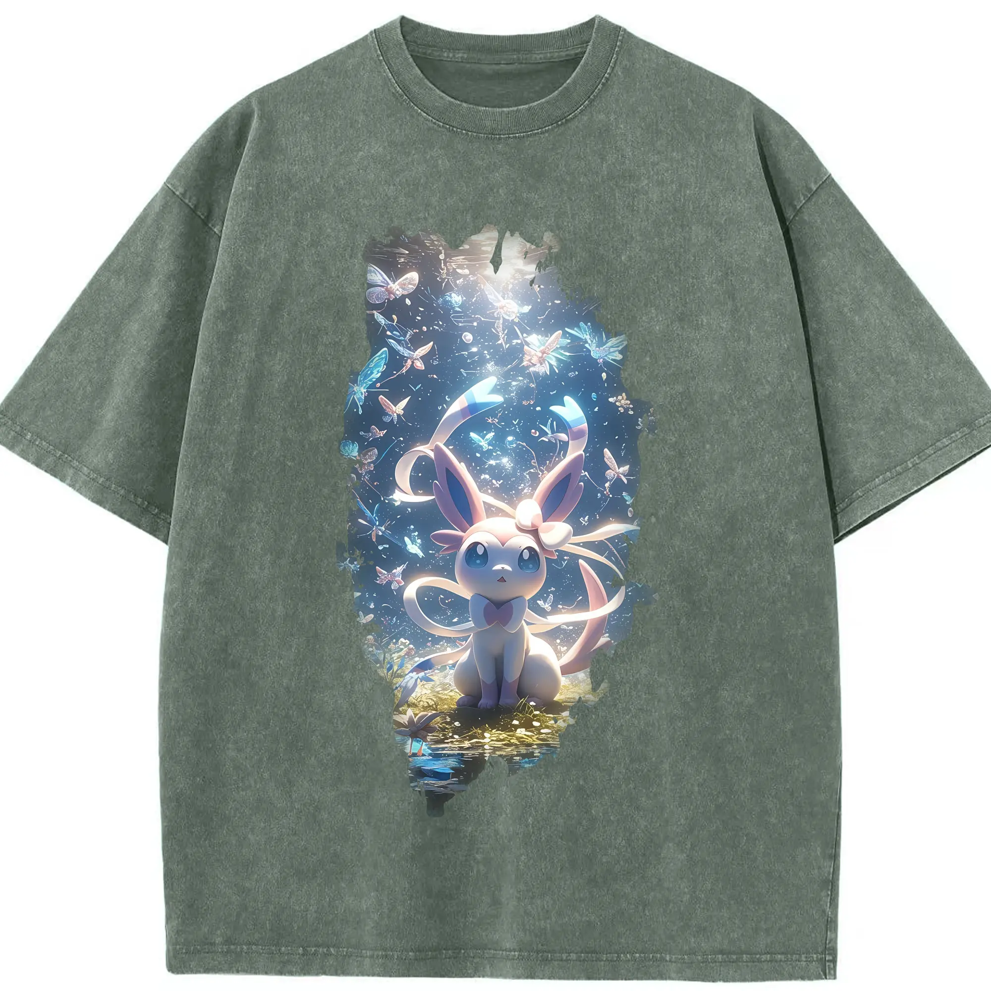 ポケモン グッズ,ニンフィア - 綿100% ヴィンテージ風 半袖Tシャツ ・ 背面プリント ・ 柔らか肌触り ・ 通気性 快適 ・ スポーツ カジュアル 外出用