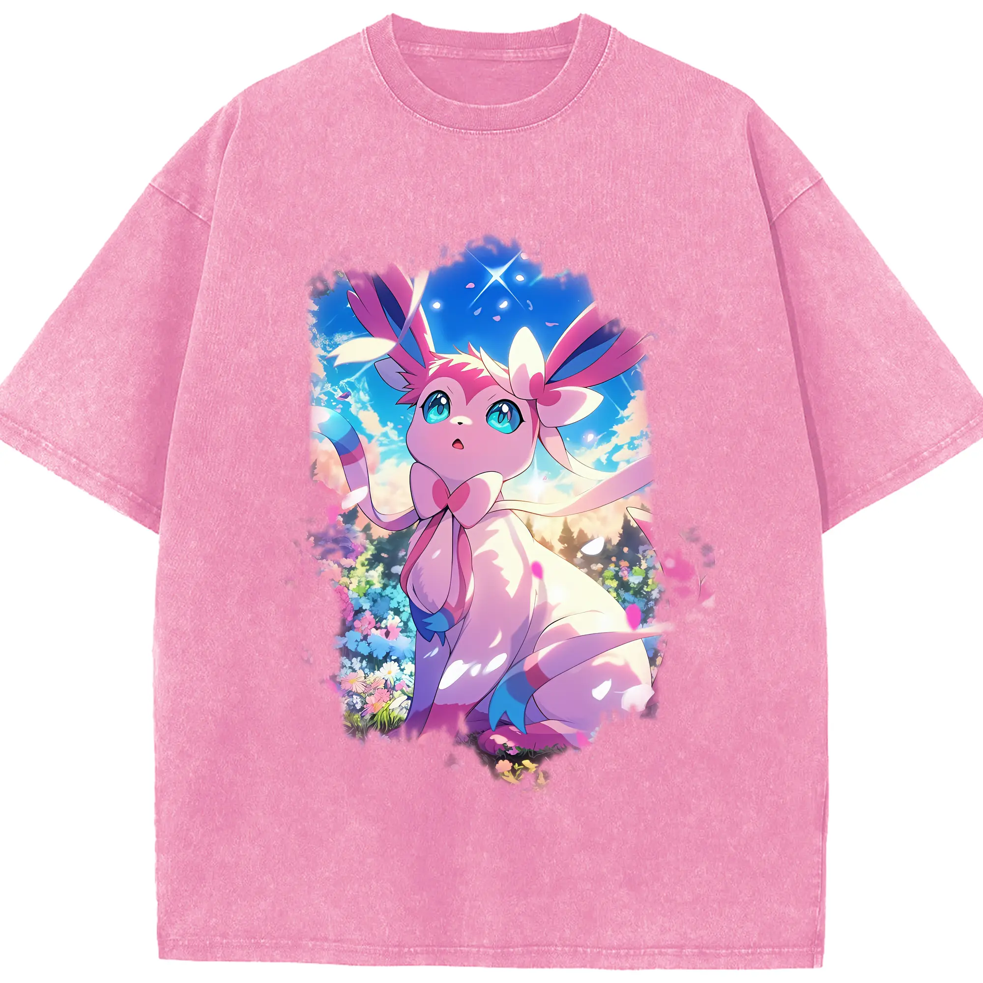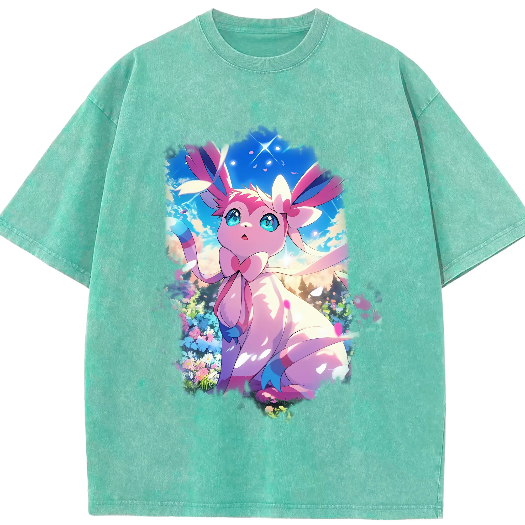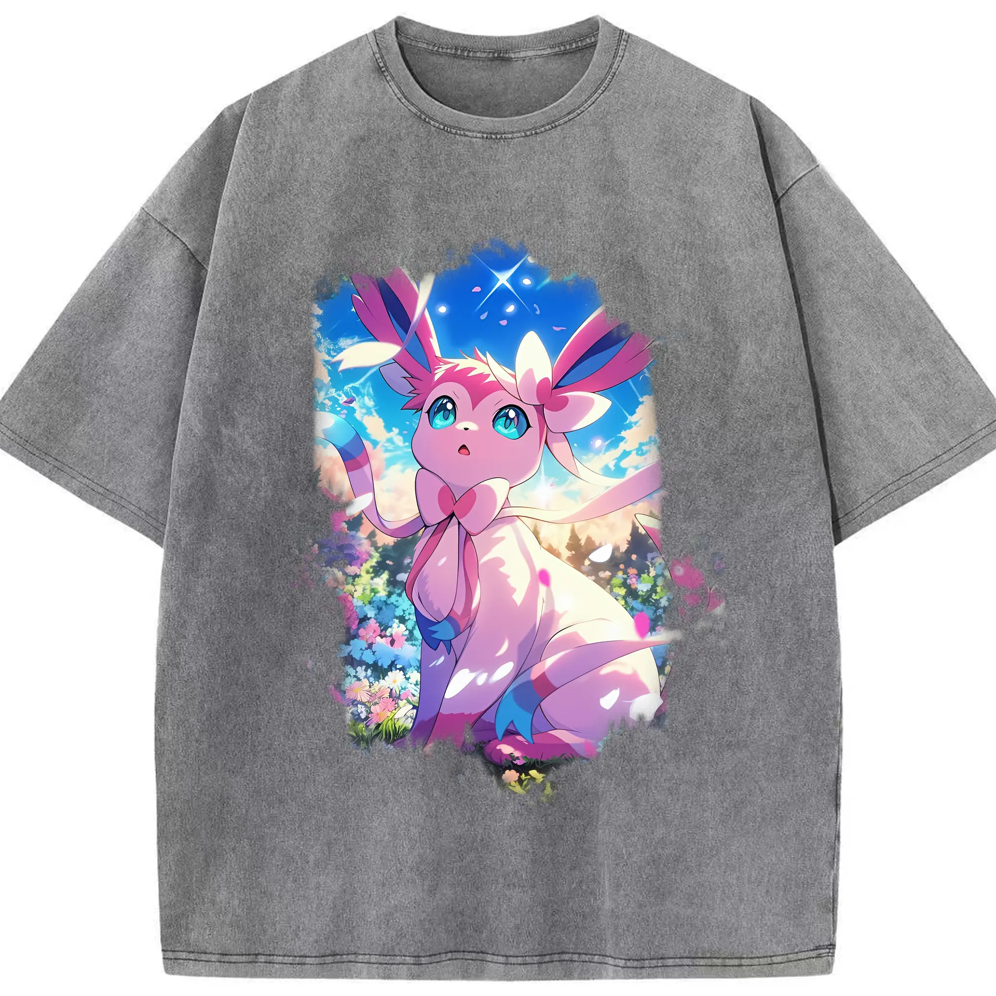 ポケモン グッズ,ニンフィア - 綿100% ヴィンテージ風 半袖Tシャツ ・ 背面プリント ・ 柔らか肌触り ・ 通気性 快適 ・ スポーツ カジュアル 外出用
