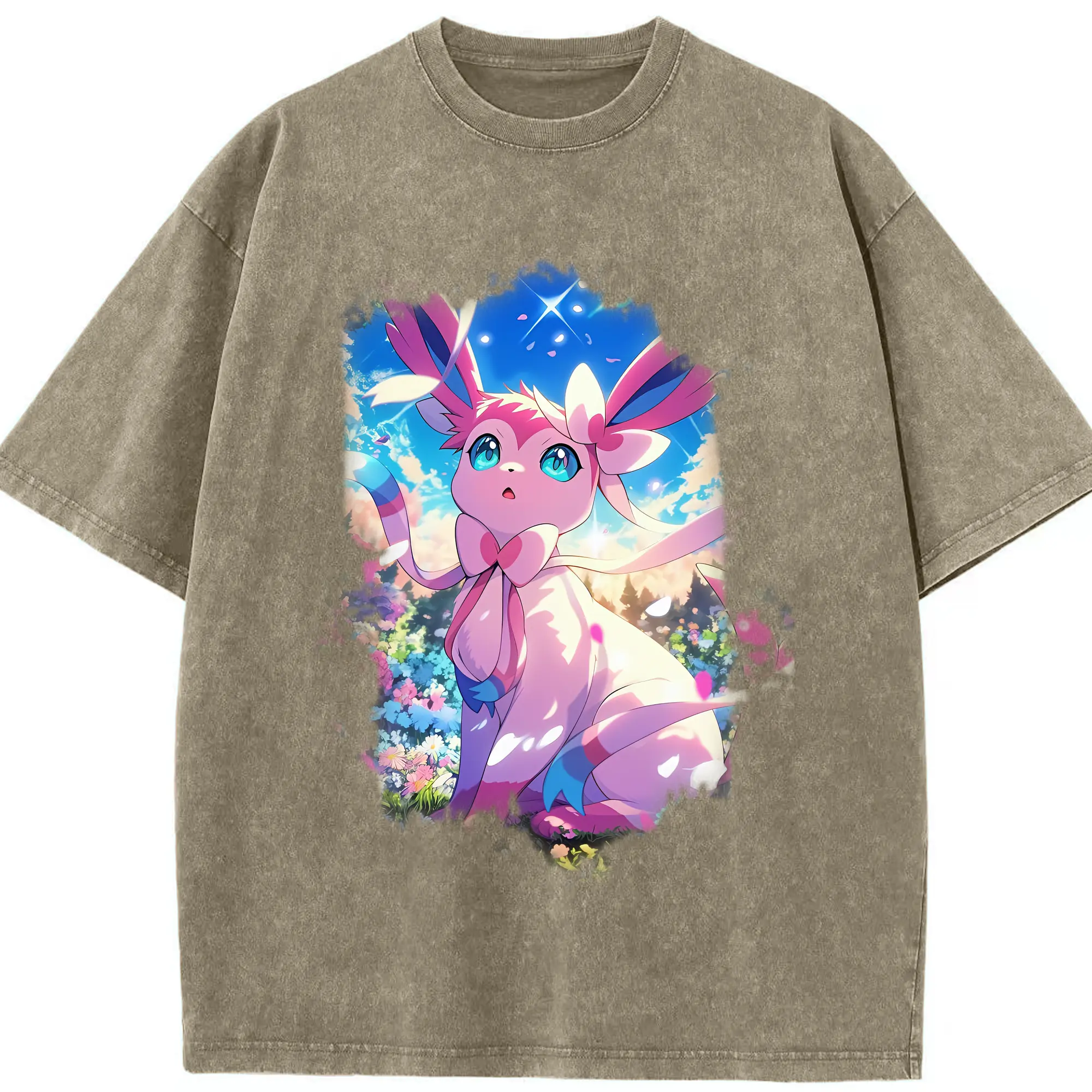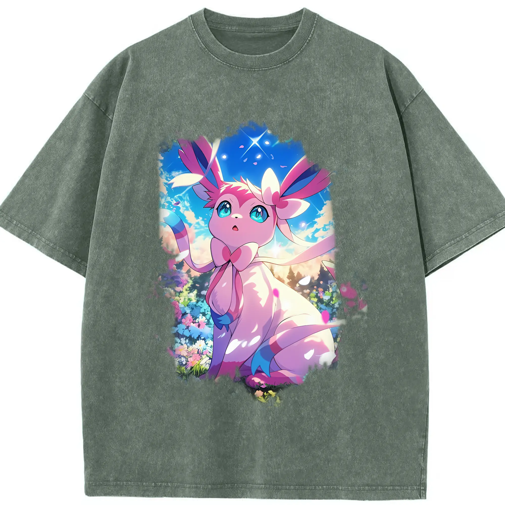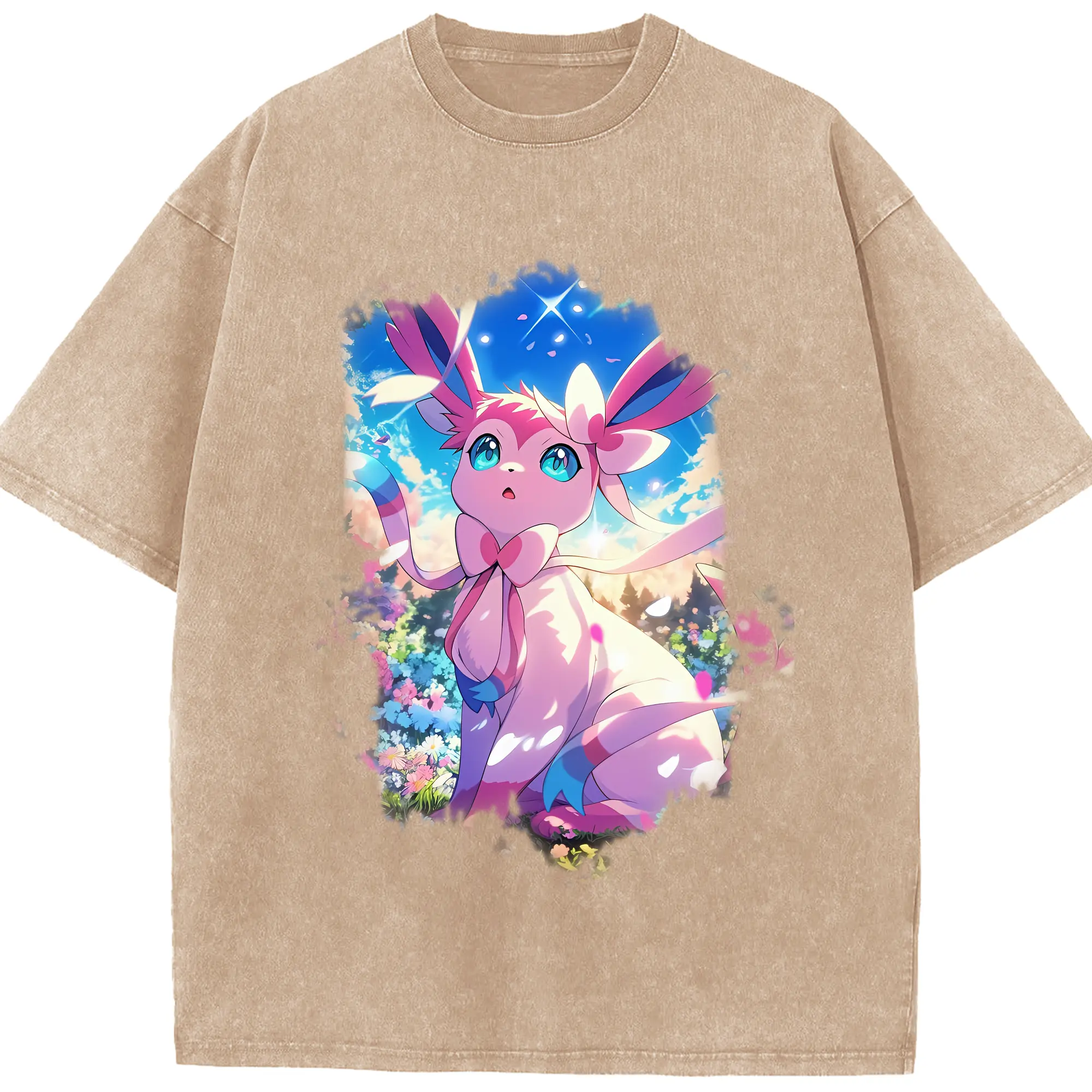 ポケモン グッズ,ニンフィア - 綿100% ヴィンテージ風 半袖Tシャツ ・ 背面プリント ・ 柔らか肌触り ・ 通気性 快適 ・ スポーツ カジュアル 外出用