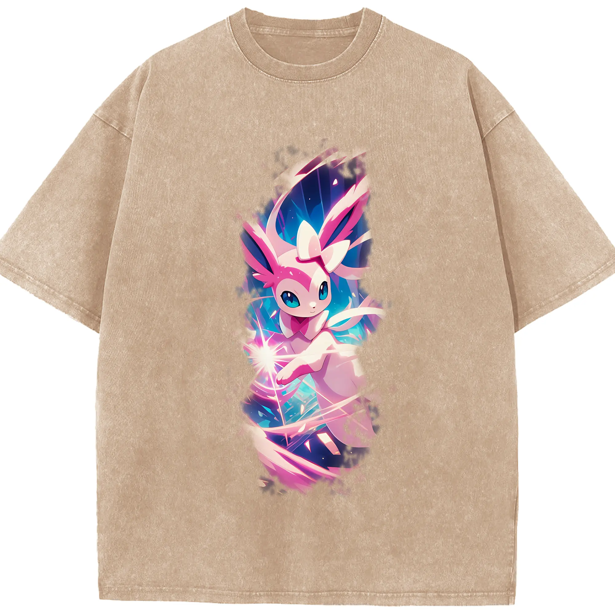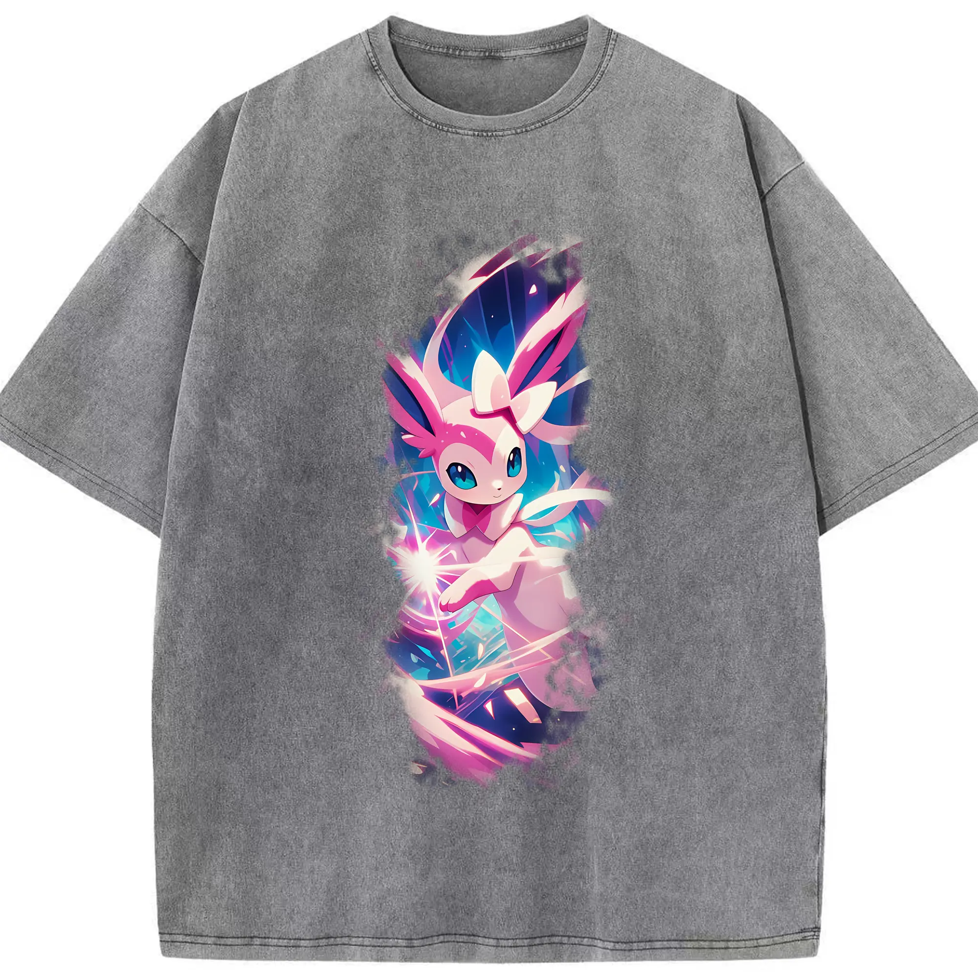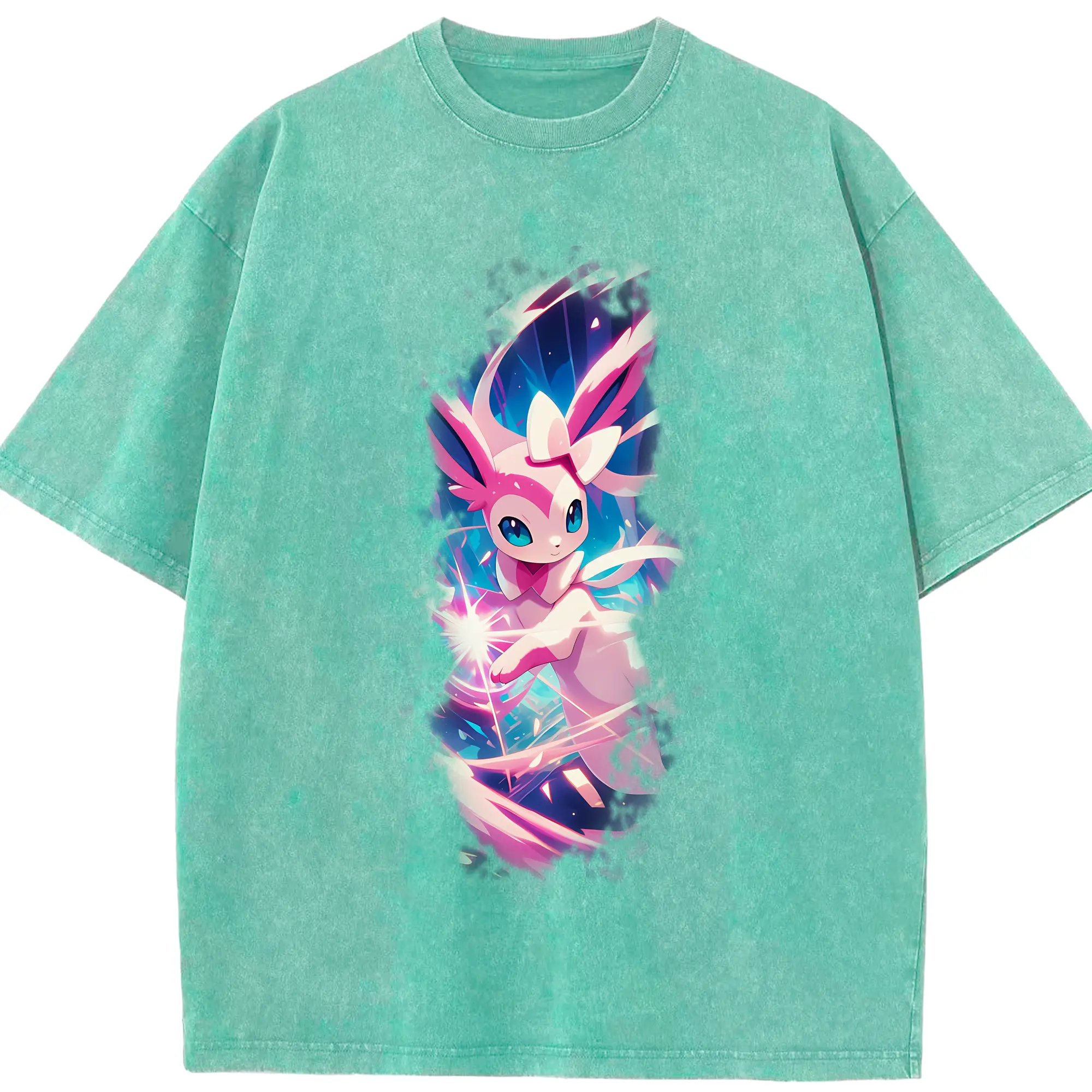 ポケモン グッズ,ニンフィア - 綿100% ヴィンテージ風 半袖Tシャツ ・ 背面プリント ・ 柔らか肌触り ・ 通気性 快適 ・ スポーツ カジュアル 外出用