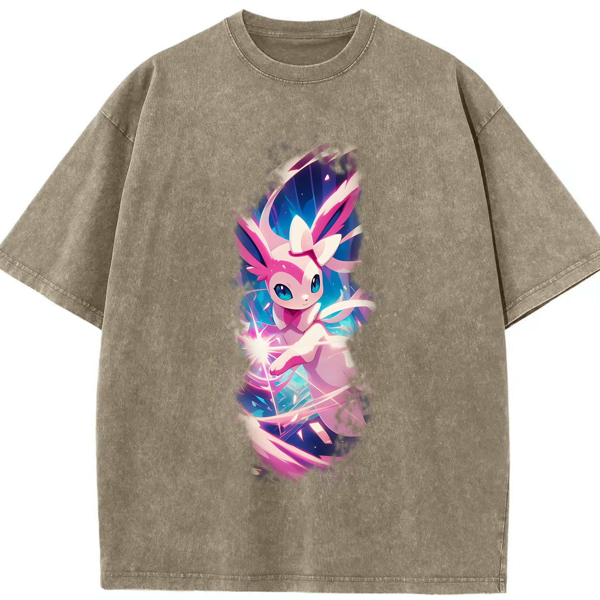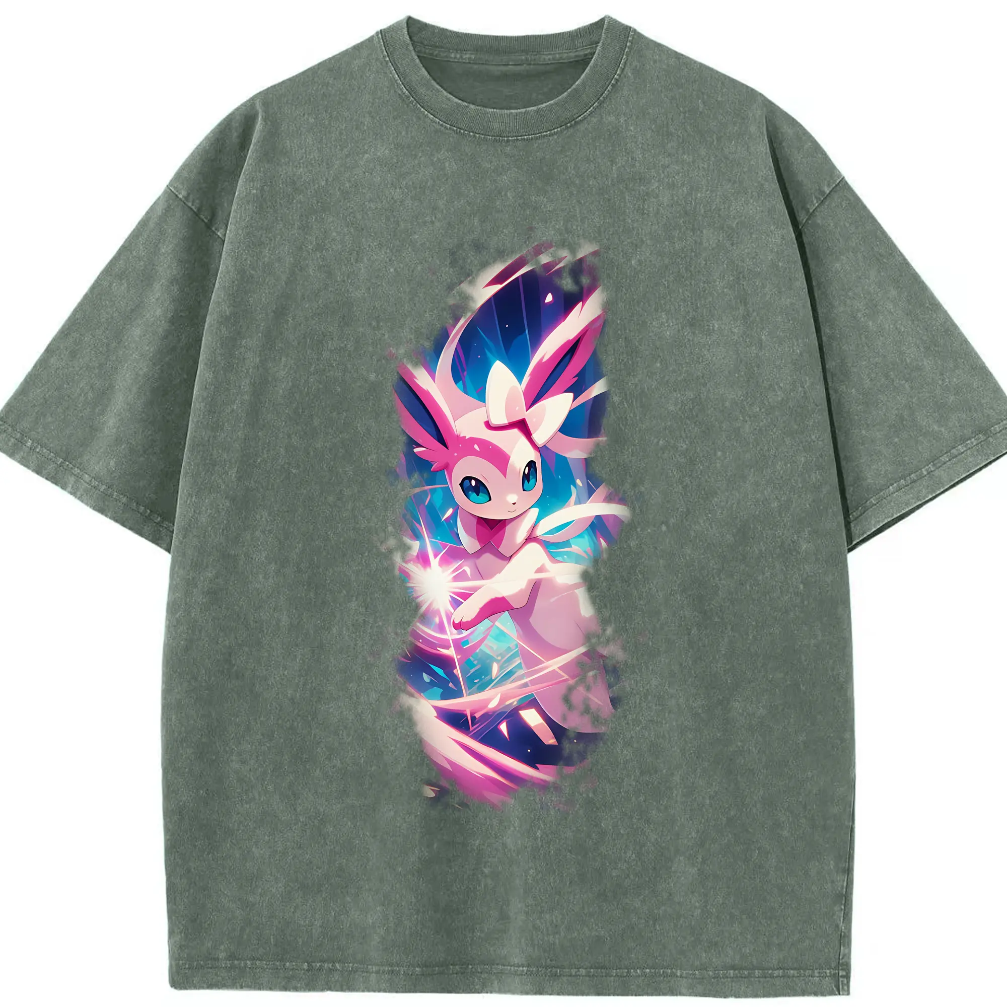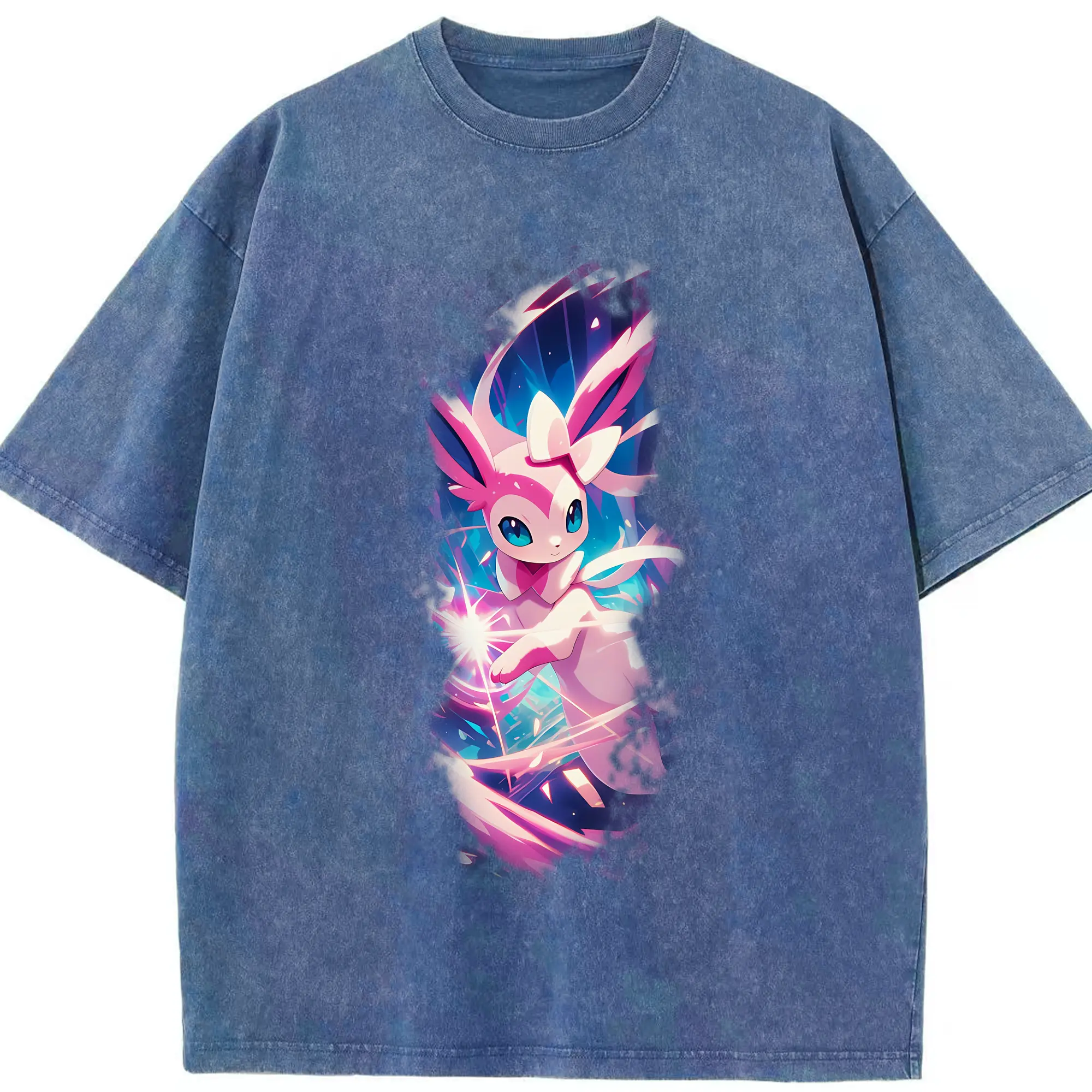 ポケモン グッズ,ニンフィア - 綿100% ヴィンテージ風 半袖Tシャツ ・ 背面プリント ・ 柔らか肌触り ・ 通気性 快適 ・ スポーツ カジュアル 外出用