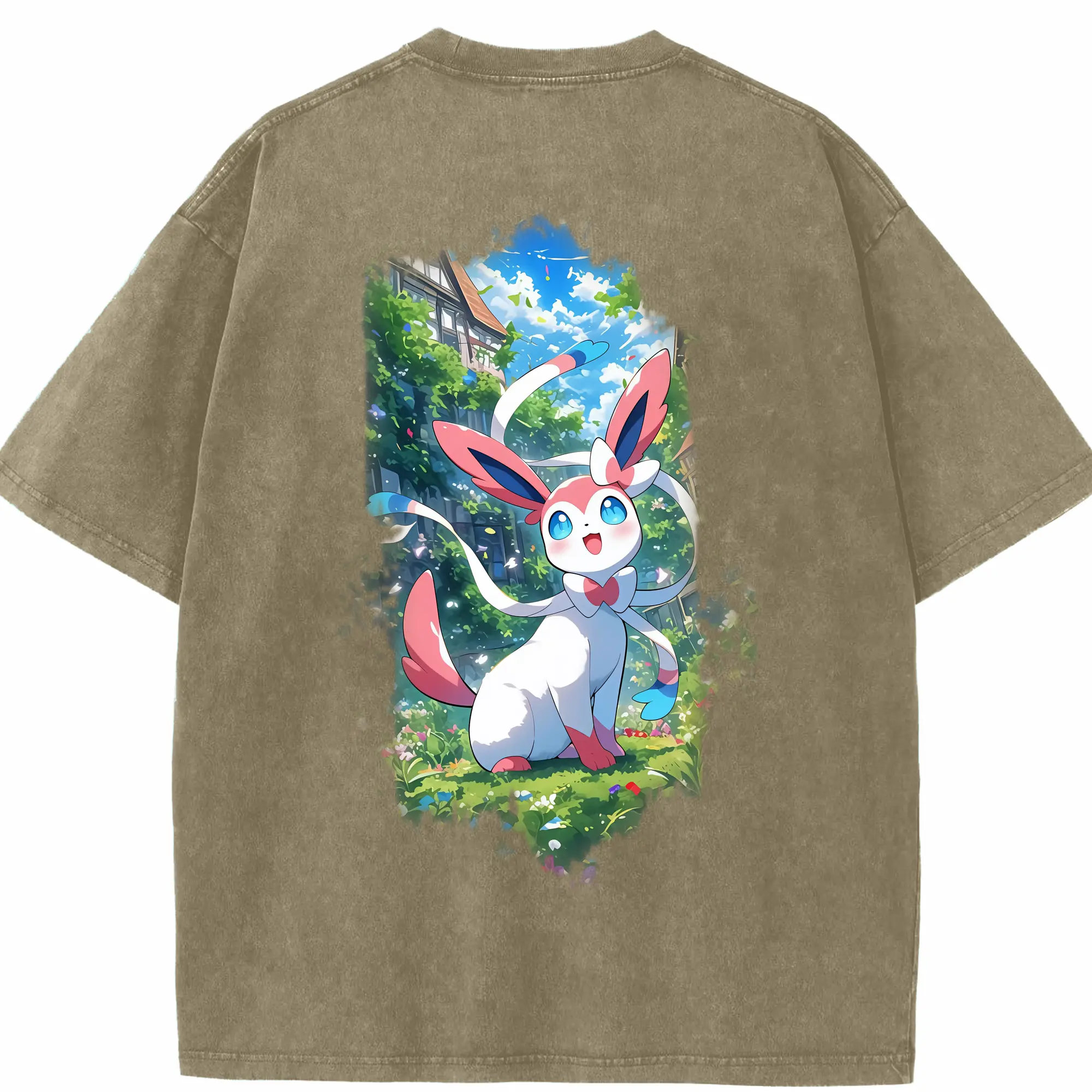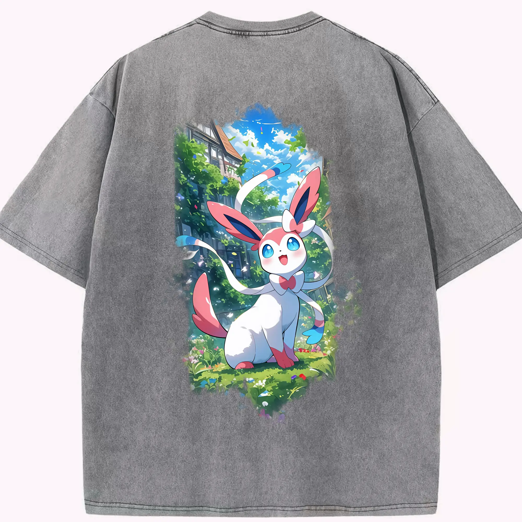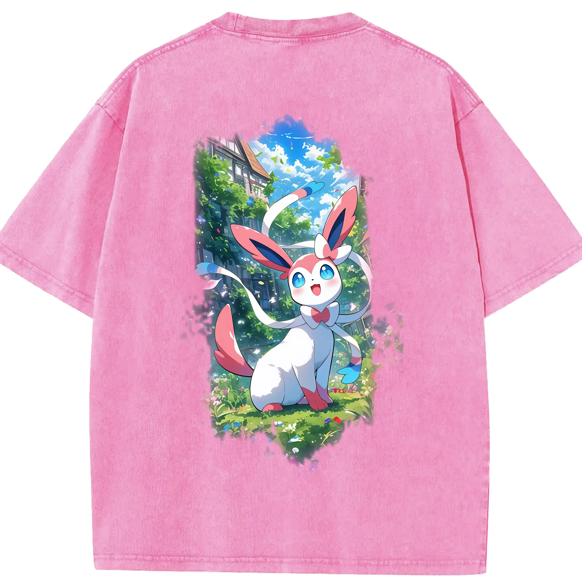 ポケモン グッズ,ニンフィア - 綿100% 半袖Tシャツ ・ バックプリント ・ 快適 通気性 ・ 日常使い 散歩 スポーツ用