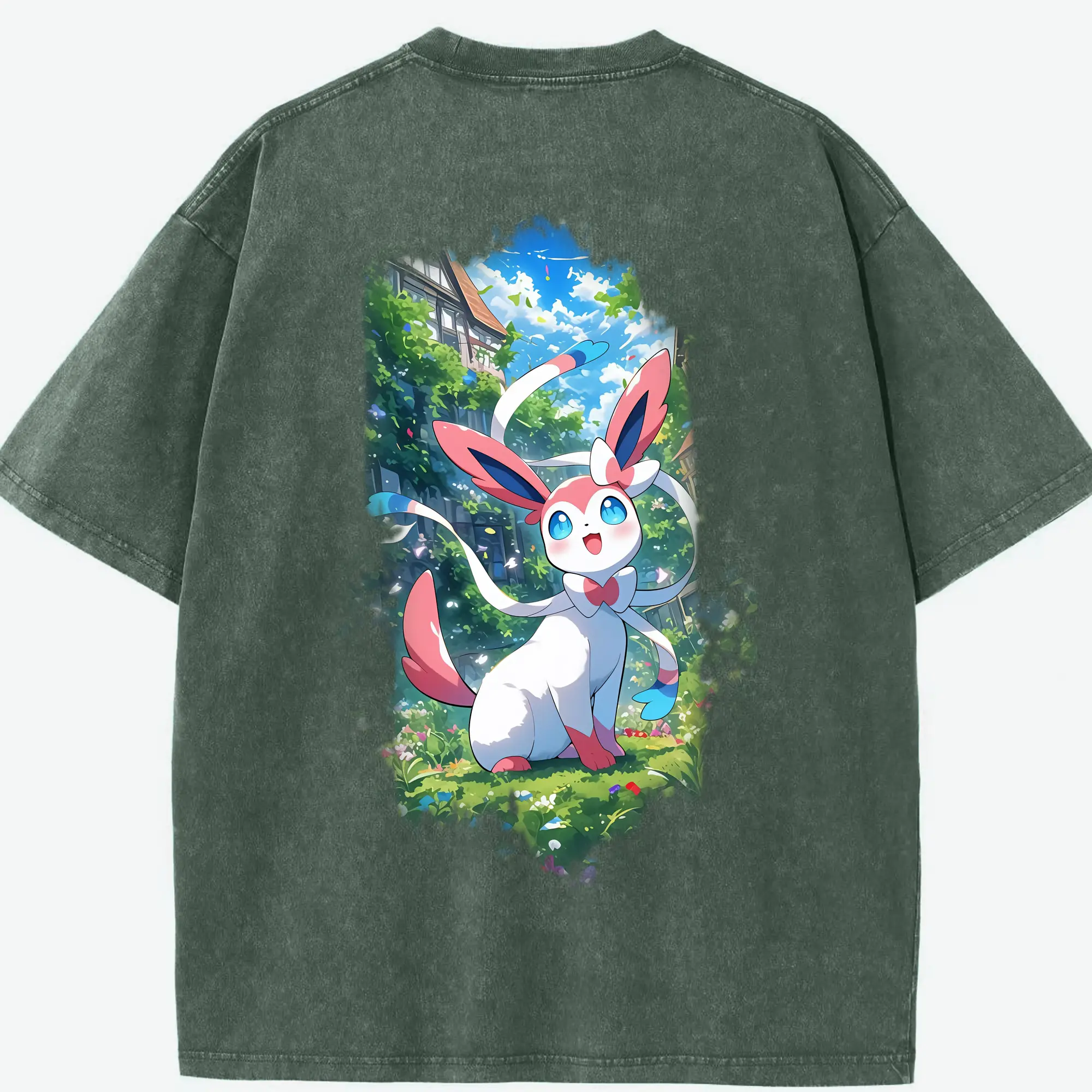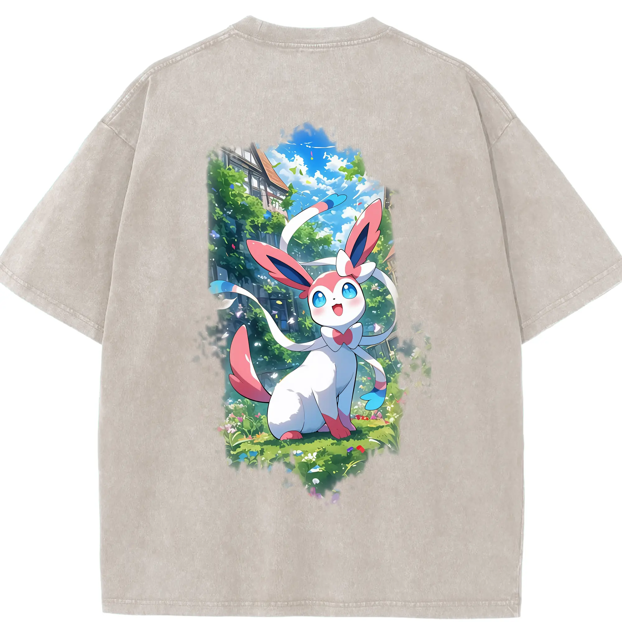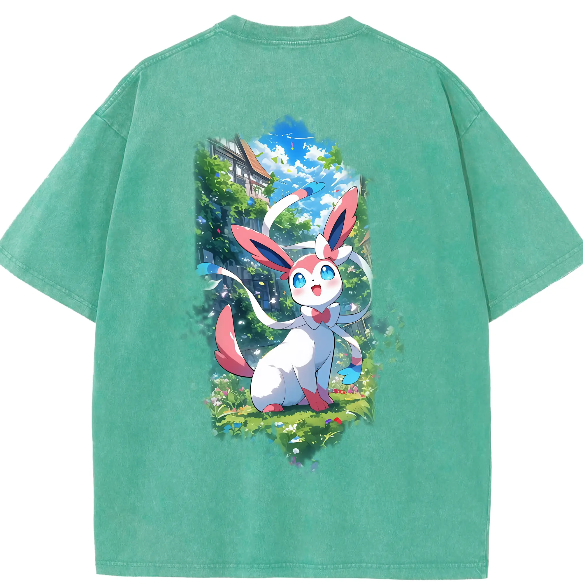 ポケモン グッズ,ニンフィア - 綿100% 半袖Tシャツ ・ バックプリント ・ 快適 通気性 ・ 日常使い 散歩 スポーツ用