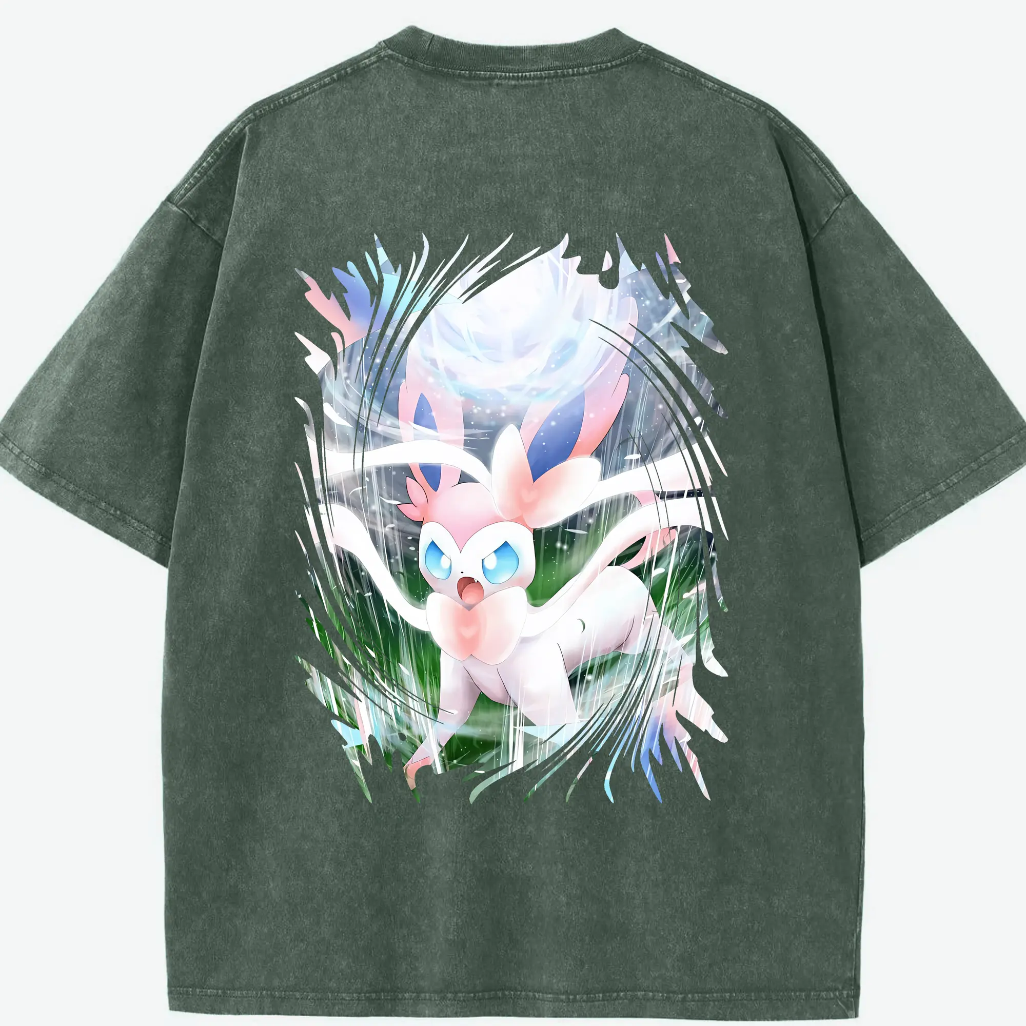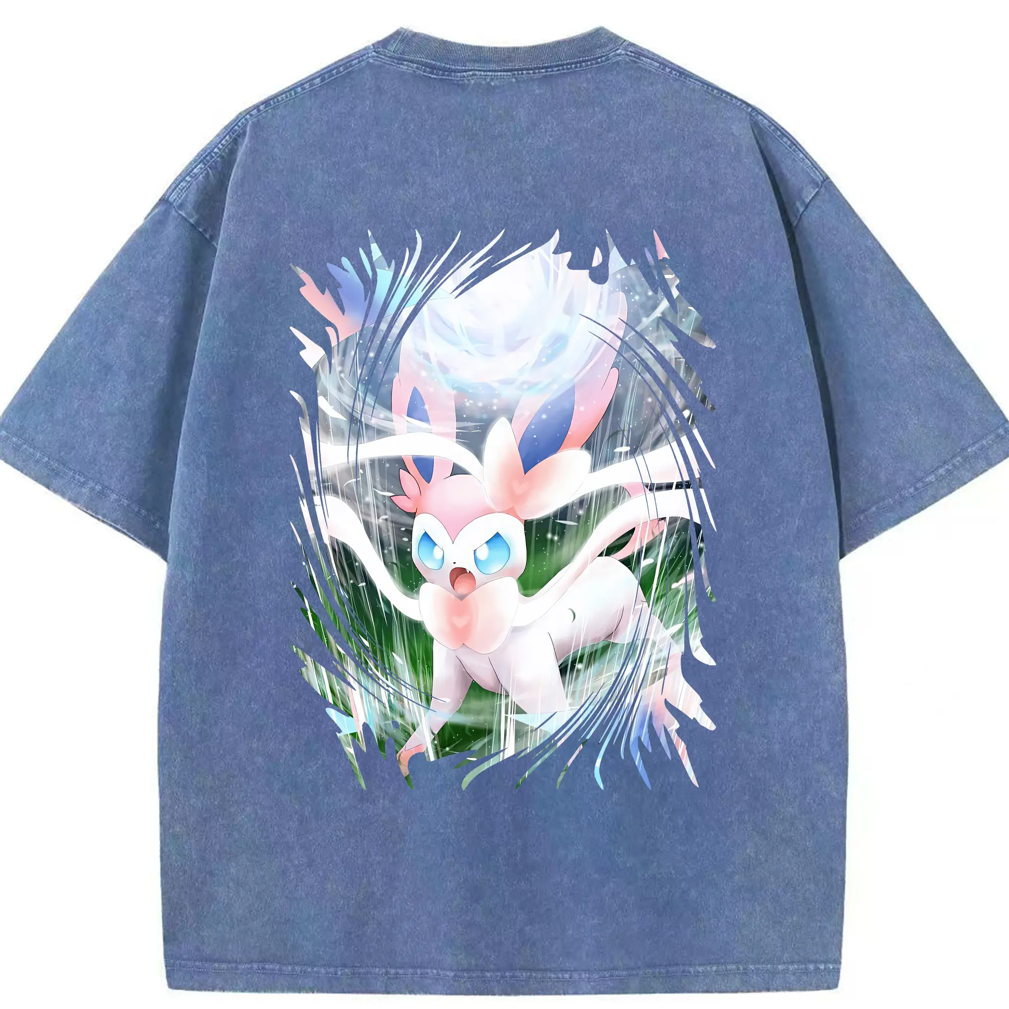 ポケモン グッズ,ニンフィア - 綿100% ヴィンテージ風 半袖Tシャツ ・ フロントプリント ・ 柔らか肌触り ・ 通気性 快適 ・ スポーツ カジュアル 外出用